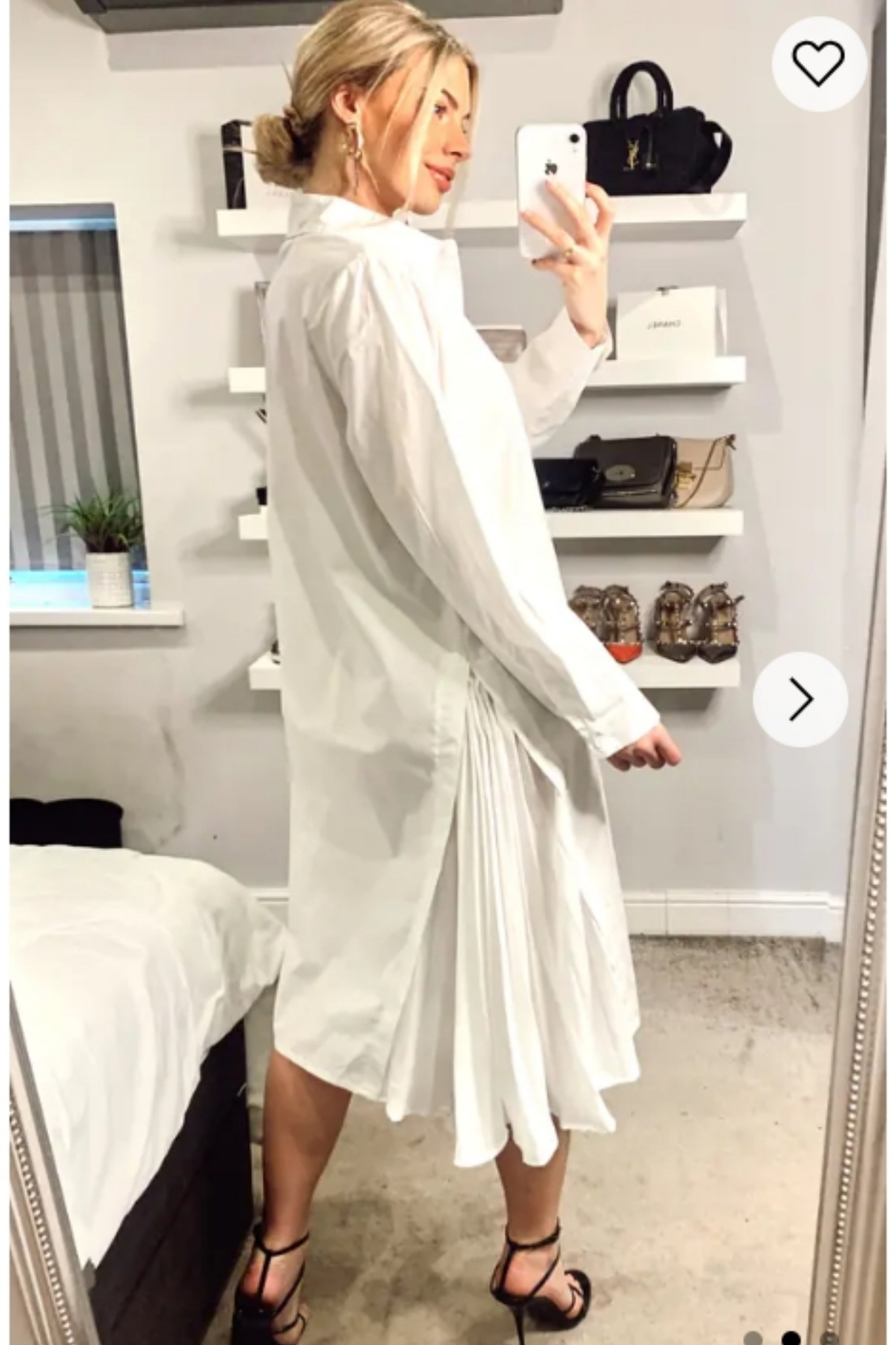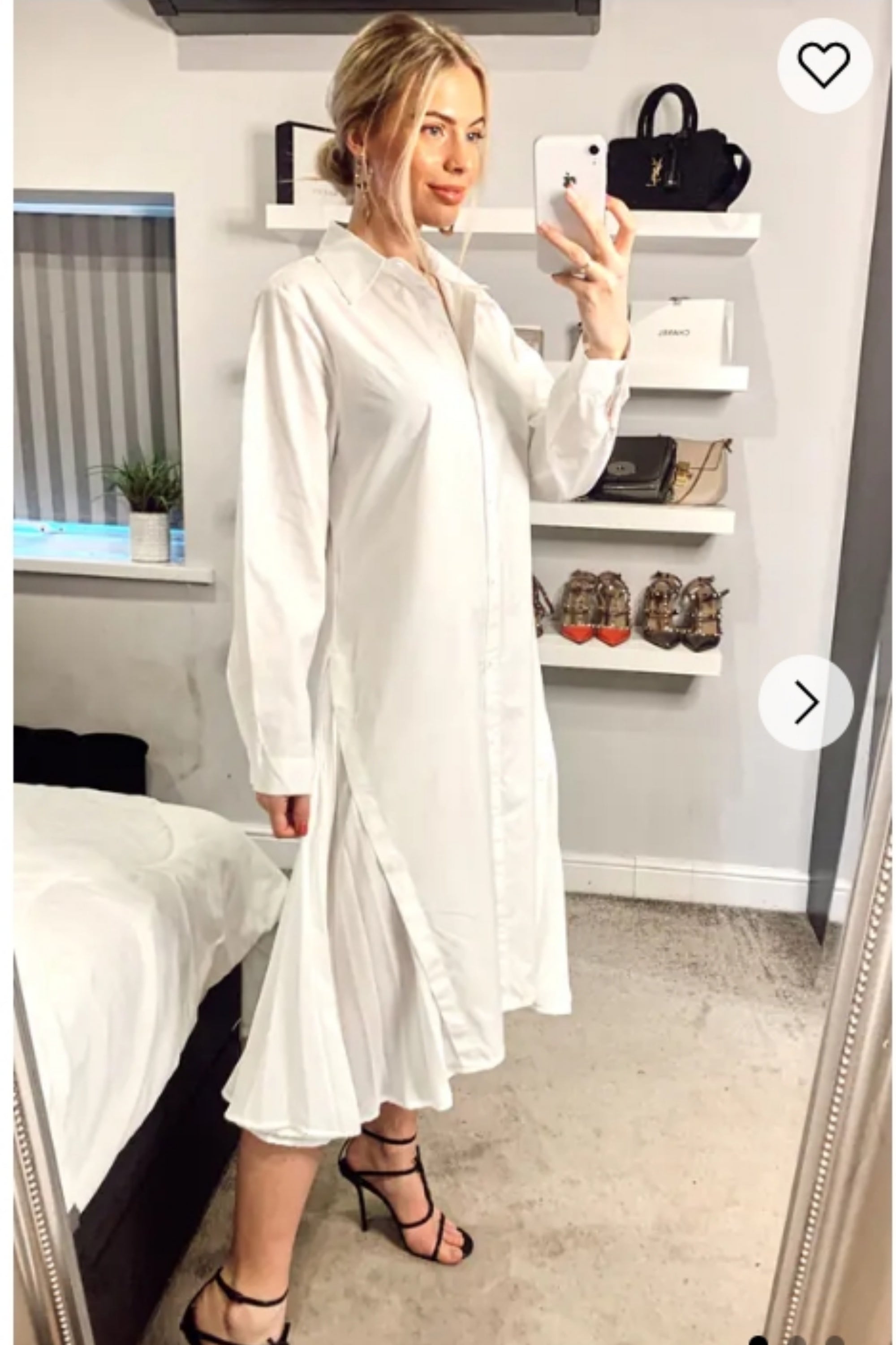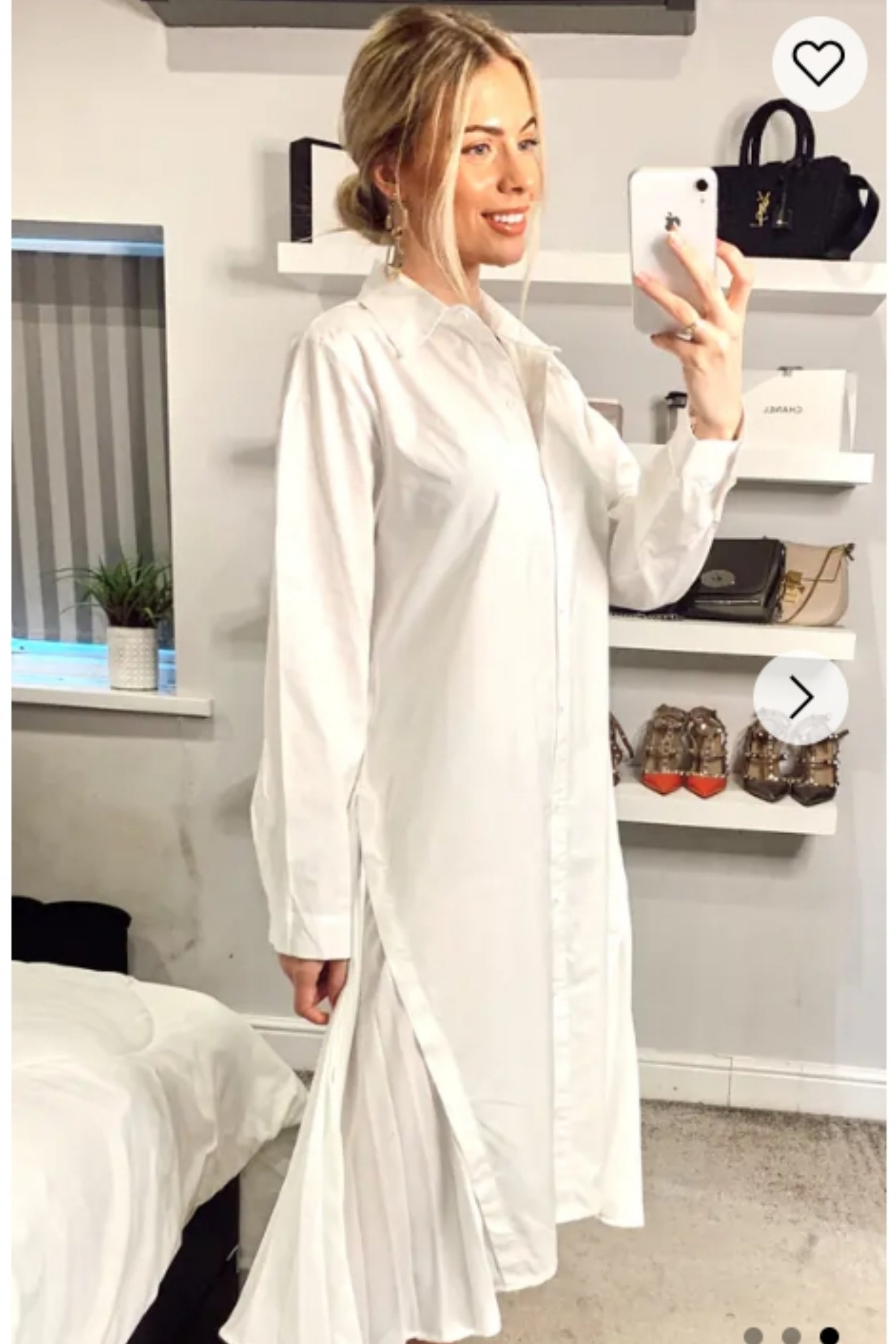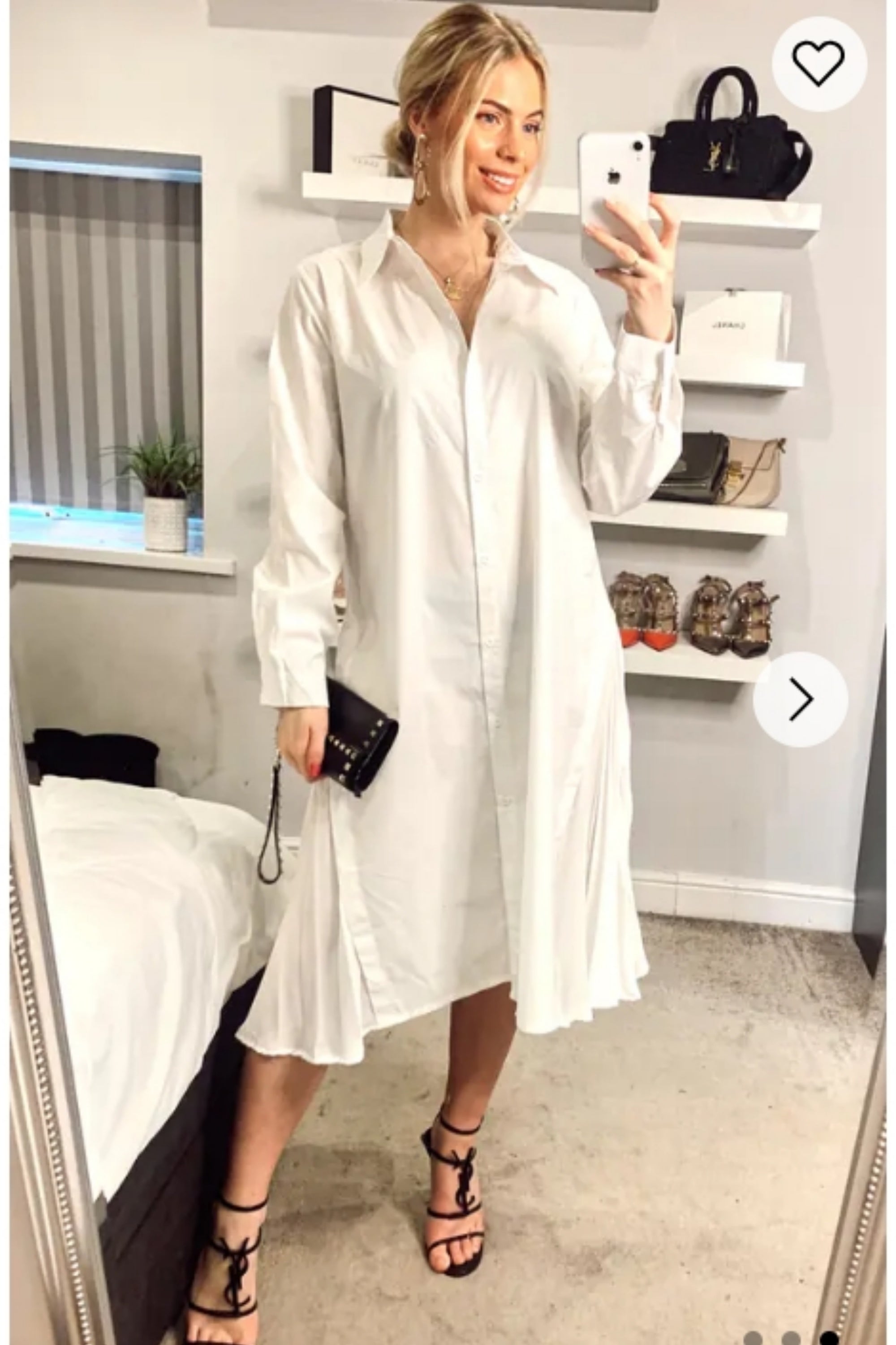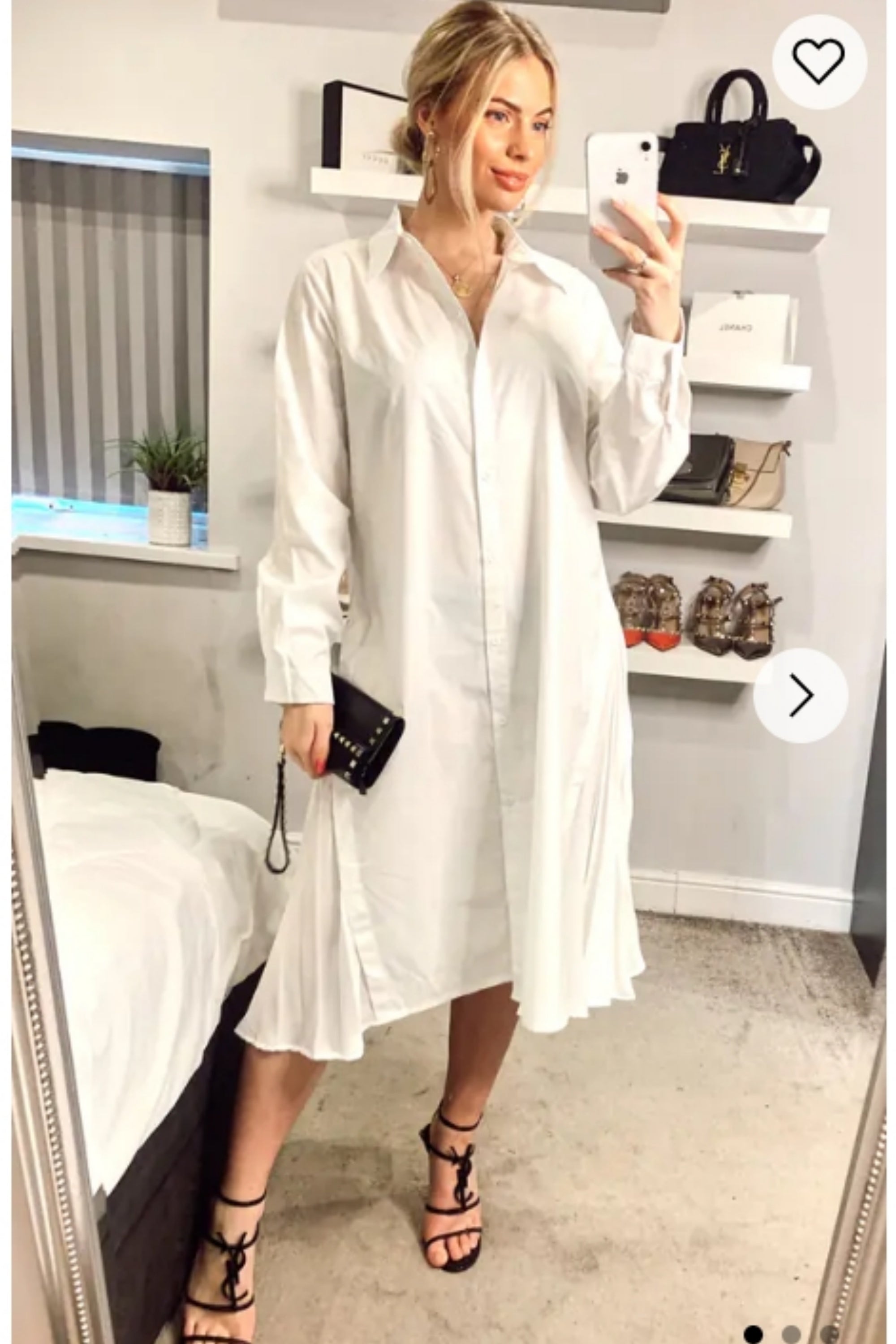 Cotton shirt dress with Pleated chiffon hem design in white