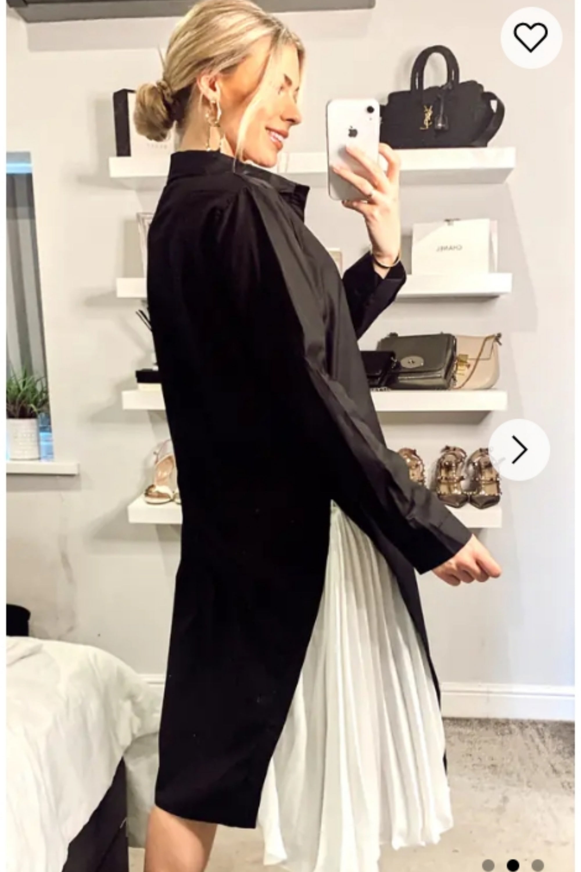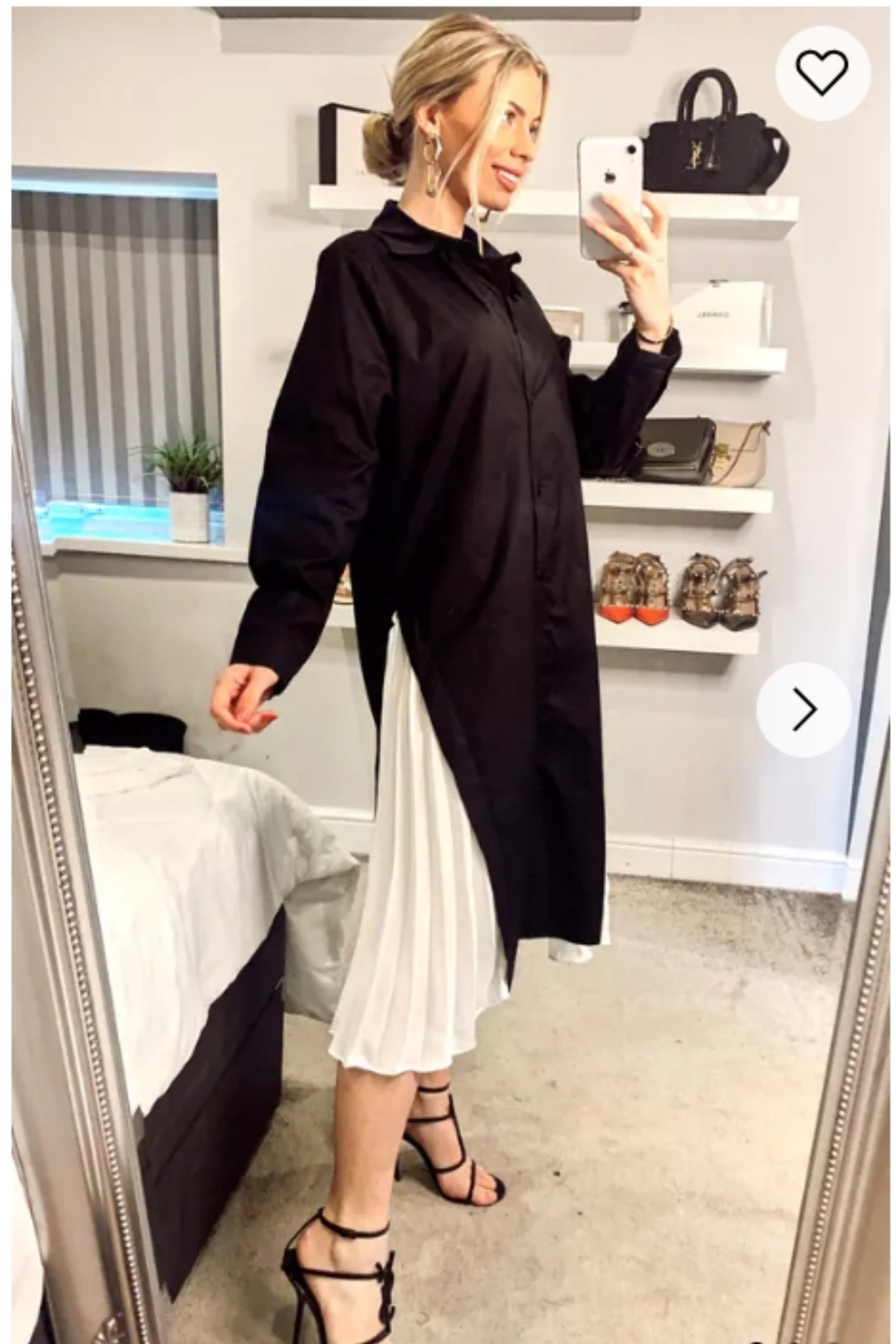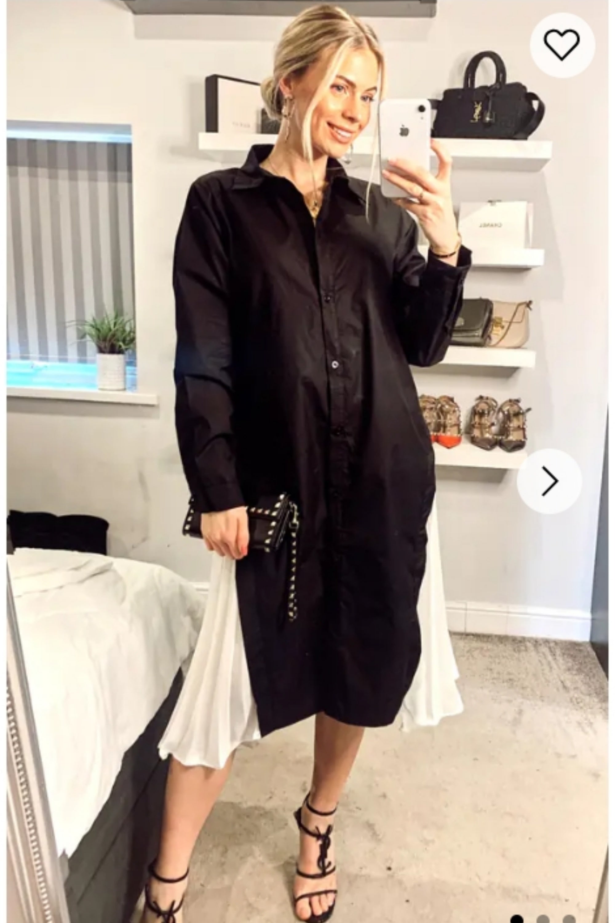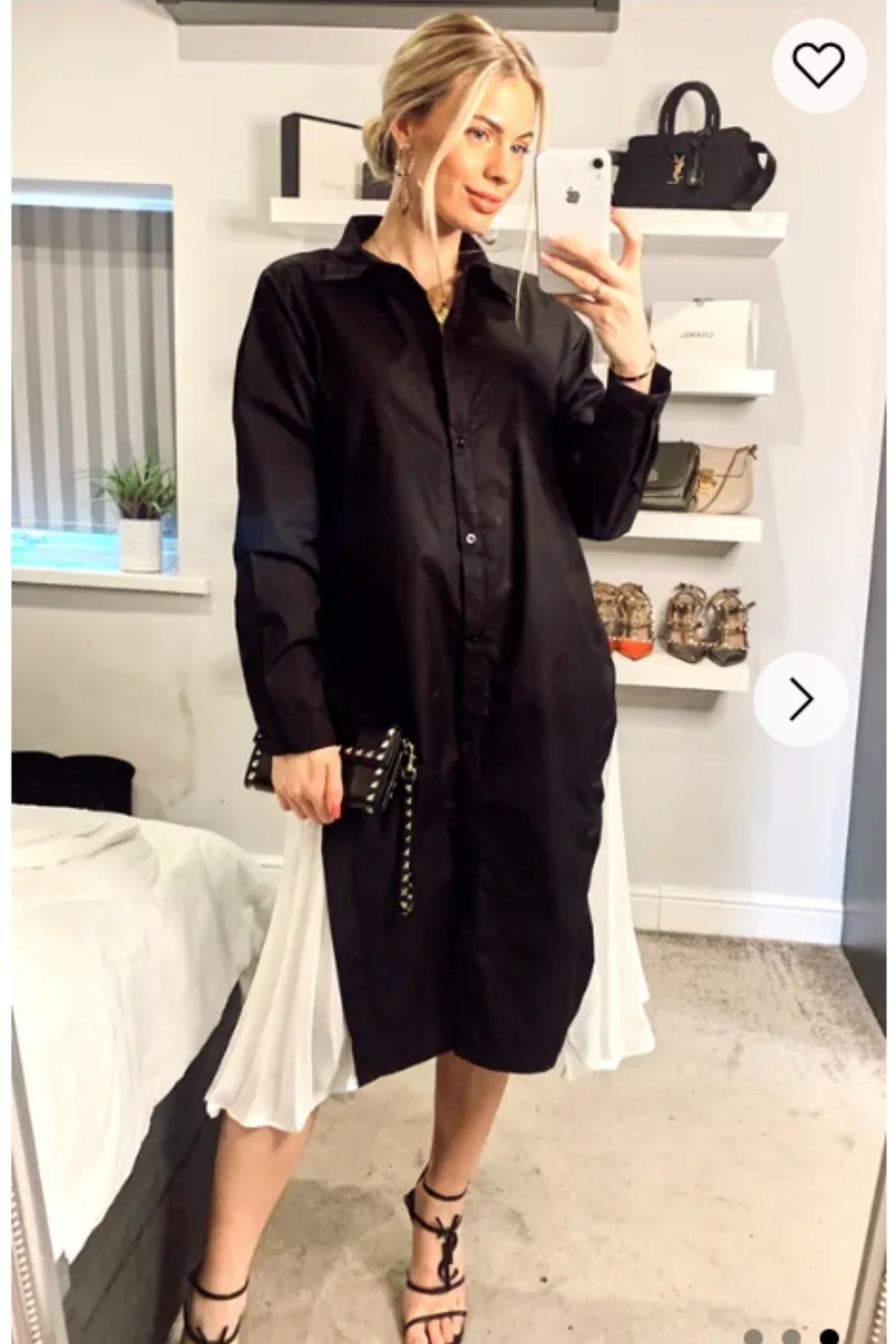 Cotton shirt dress with Pleated chiffon hem design in black