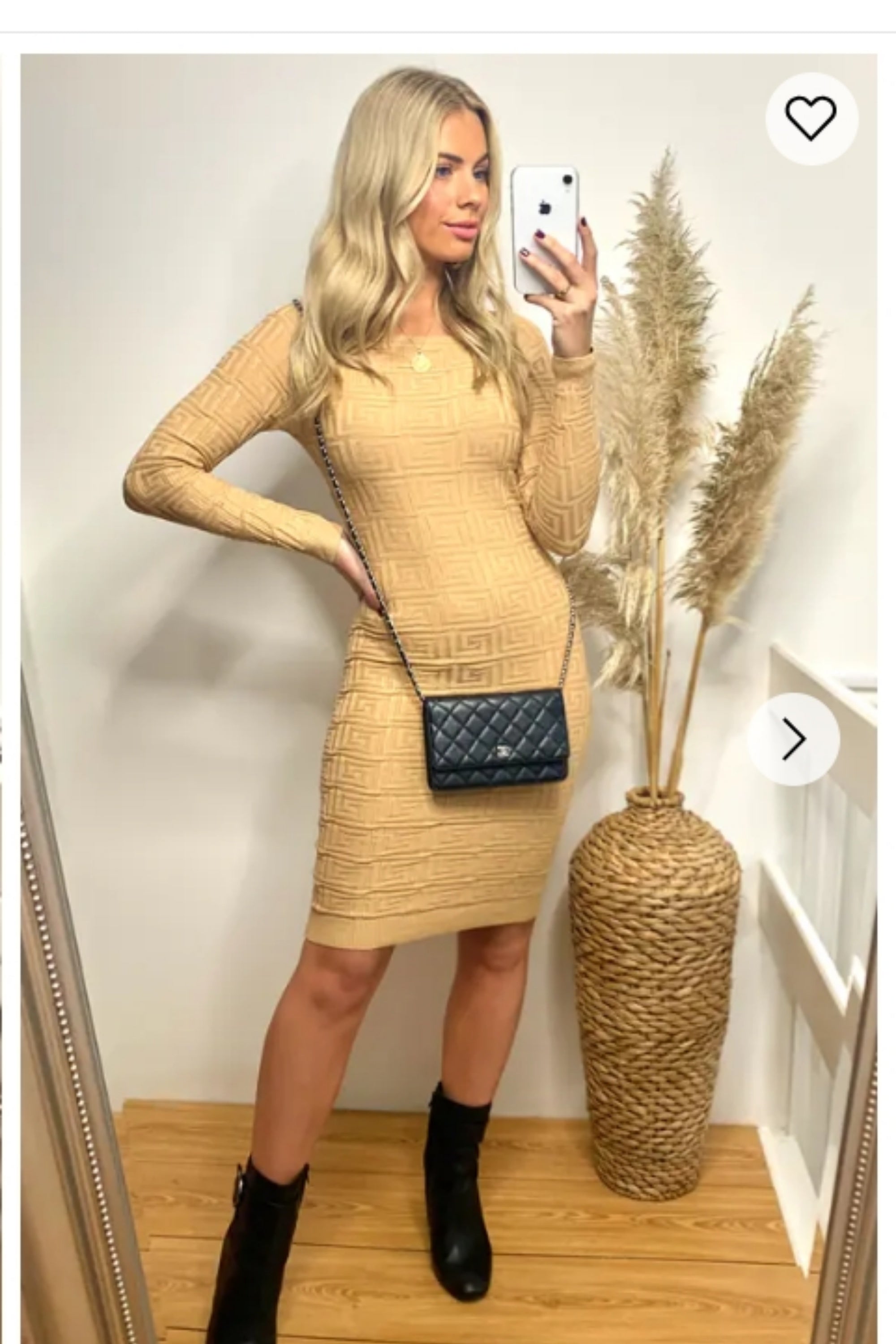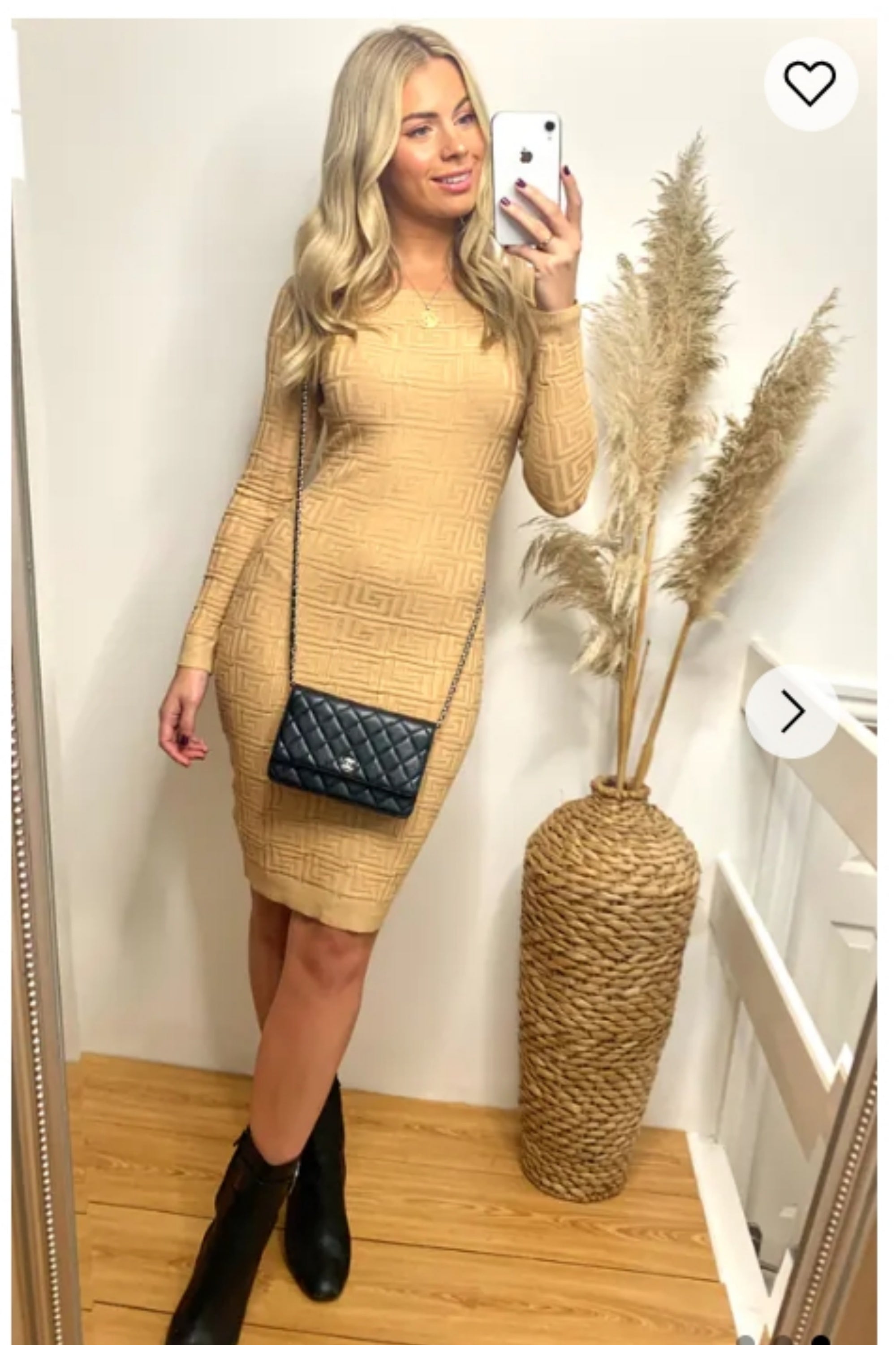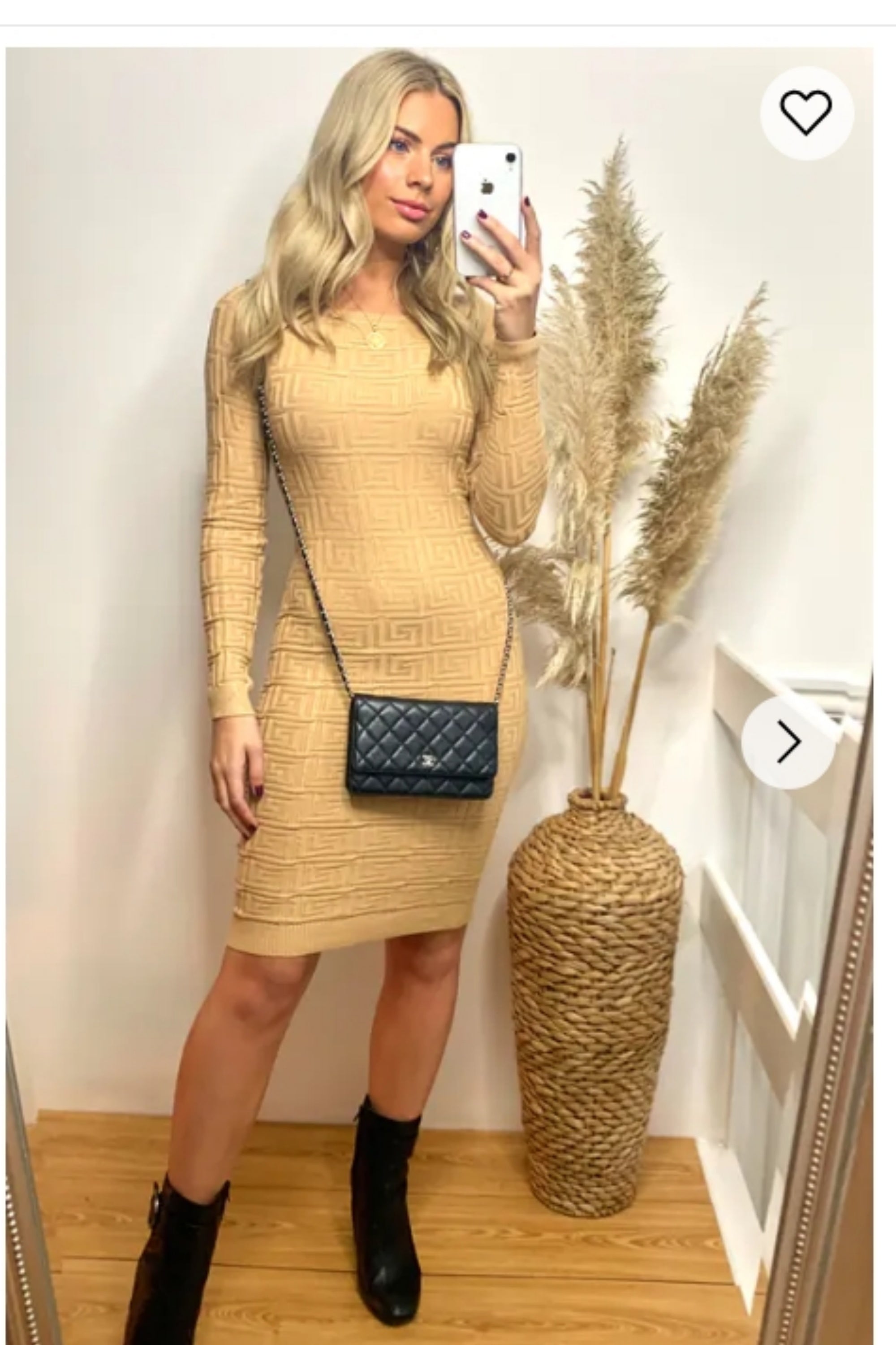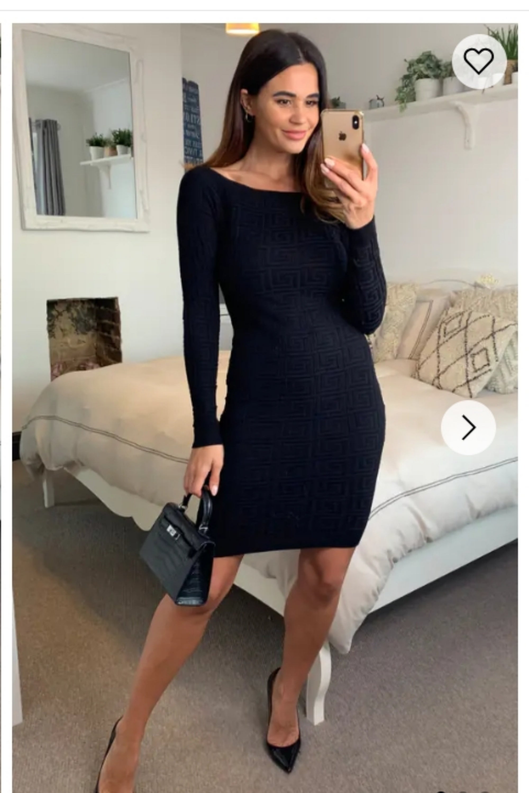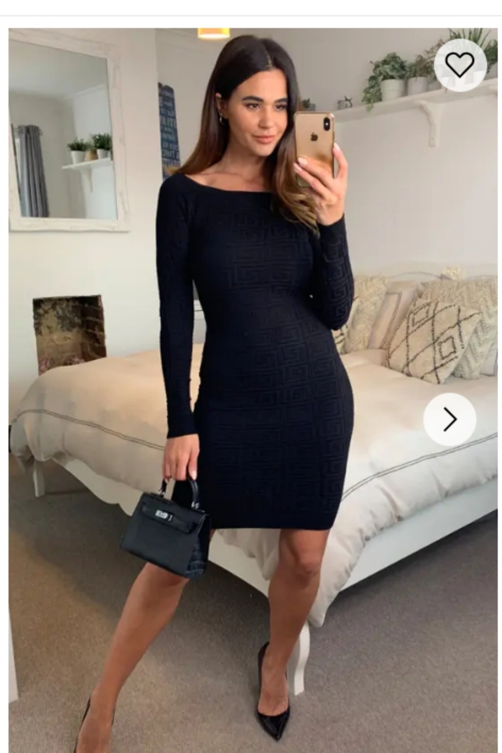 Classic Square check print soft knit off shoulder little black dress