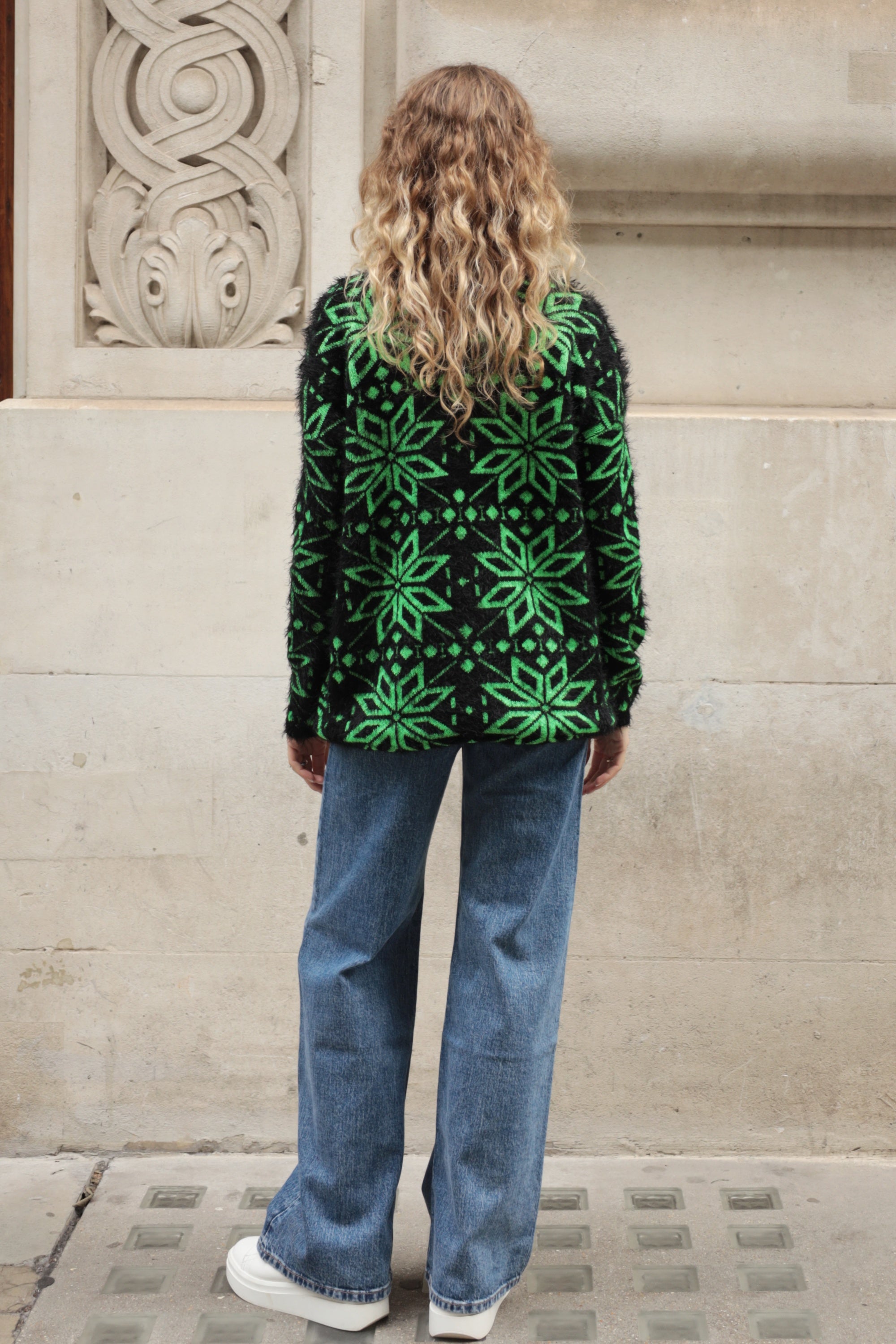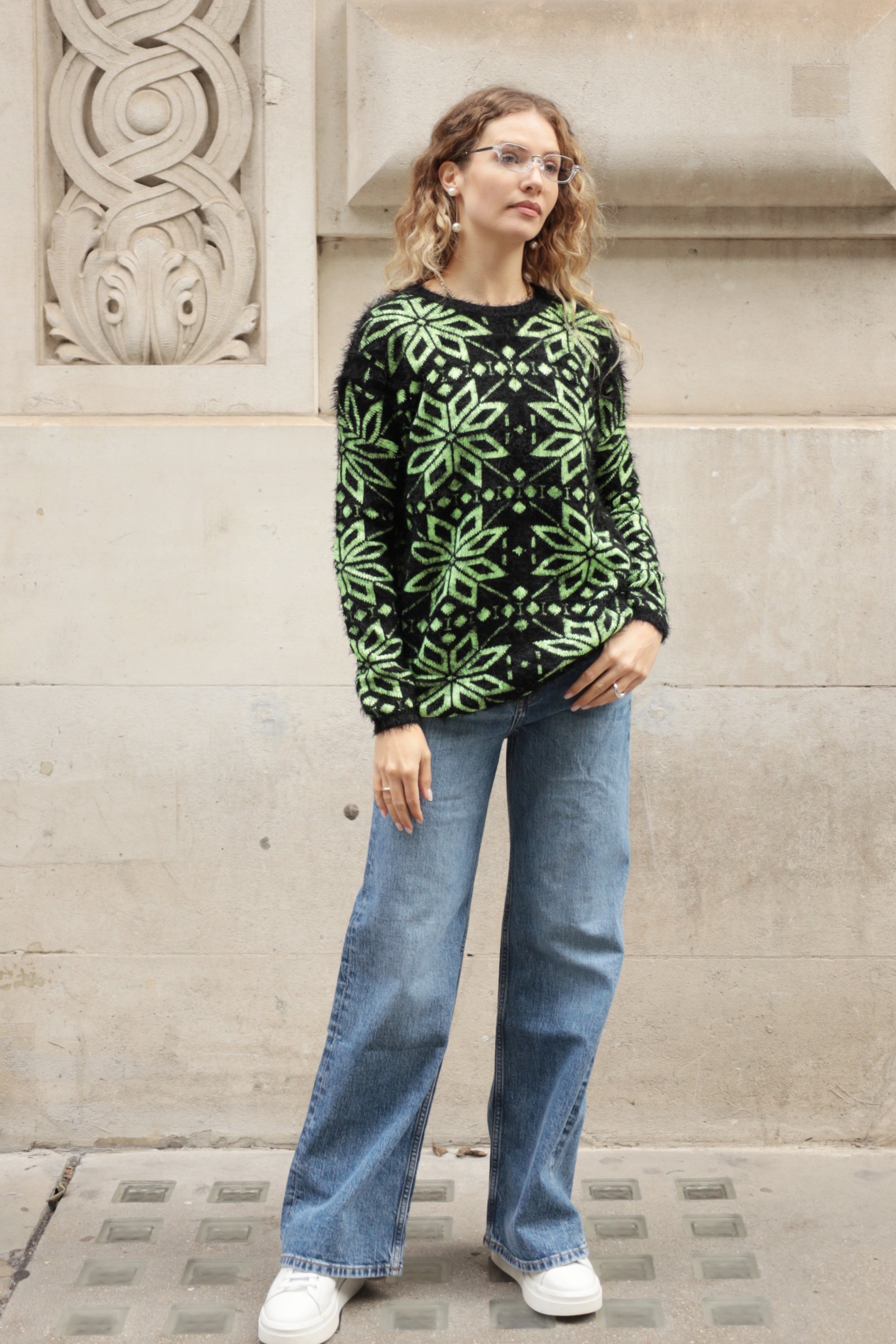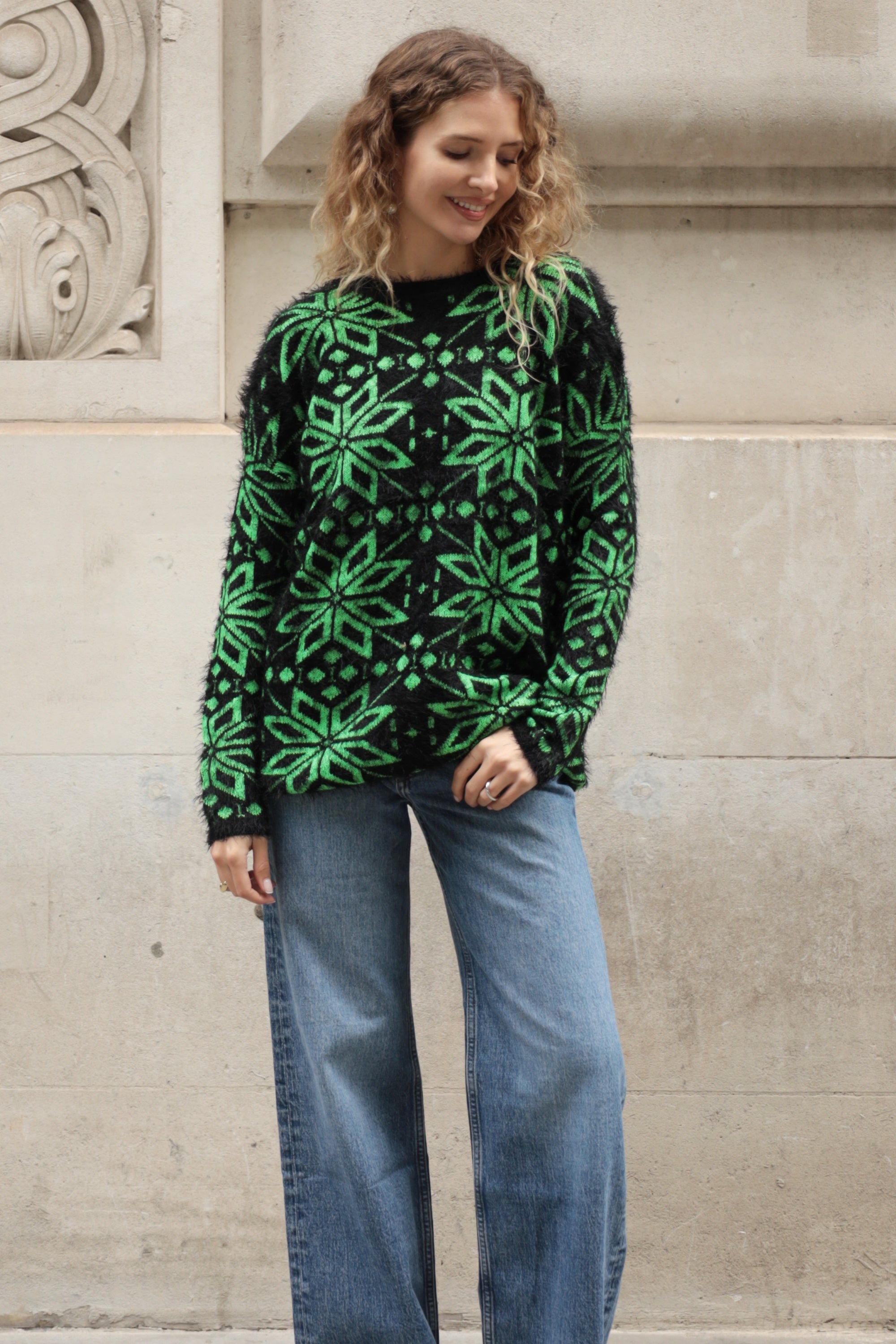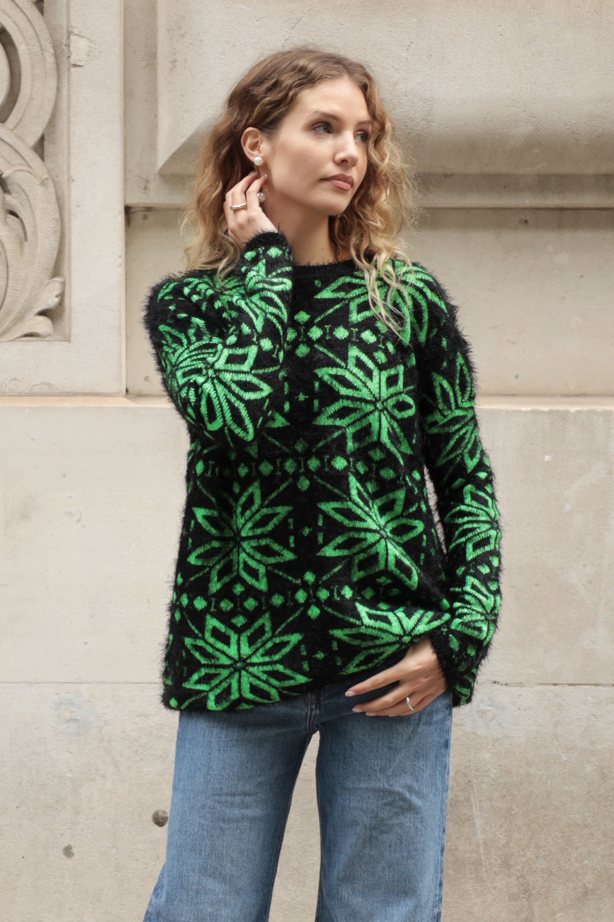 Fluffy Maple Leaves Print Neon Colour Jumper