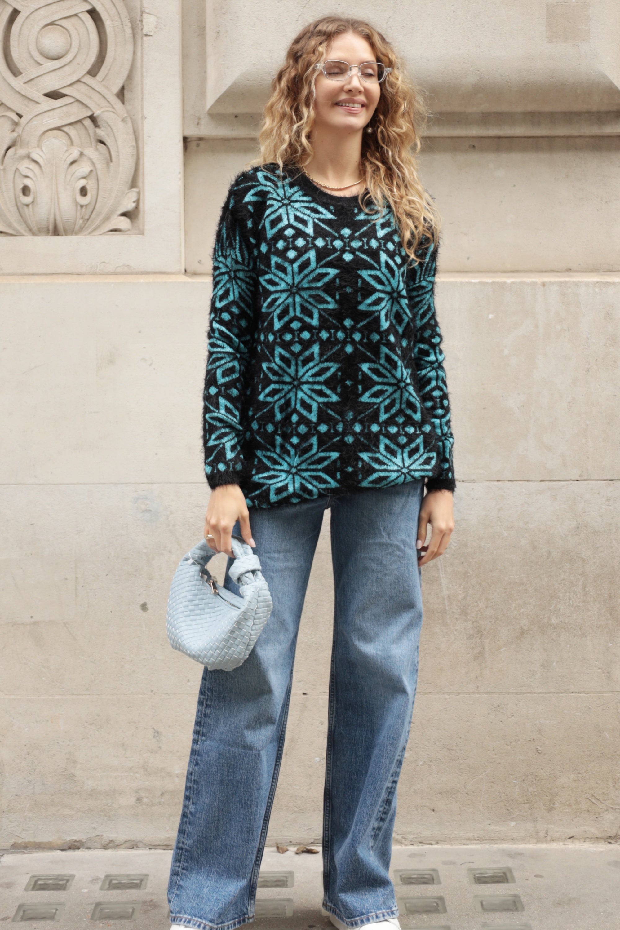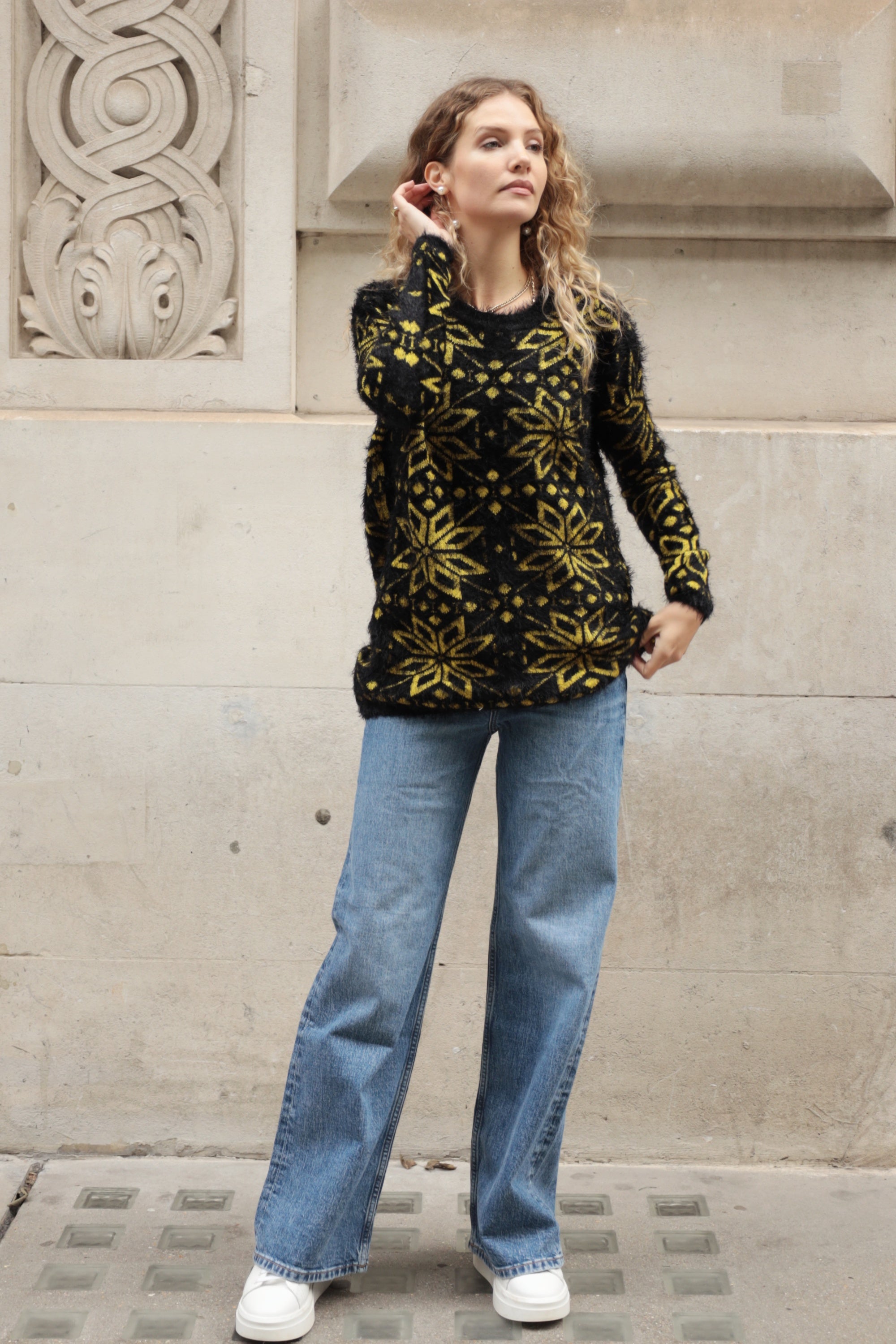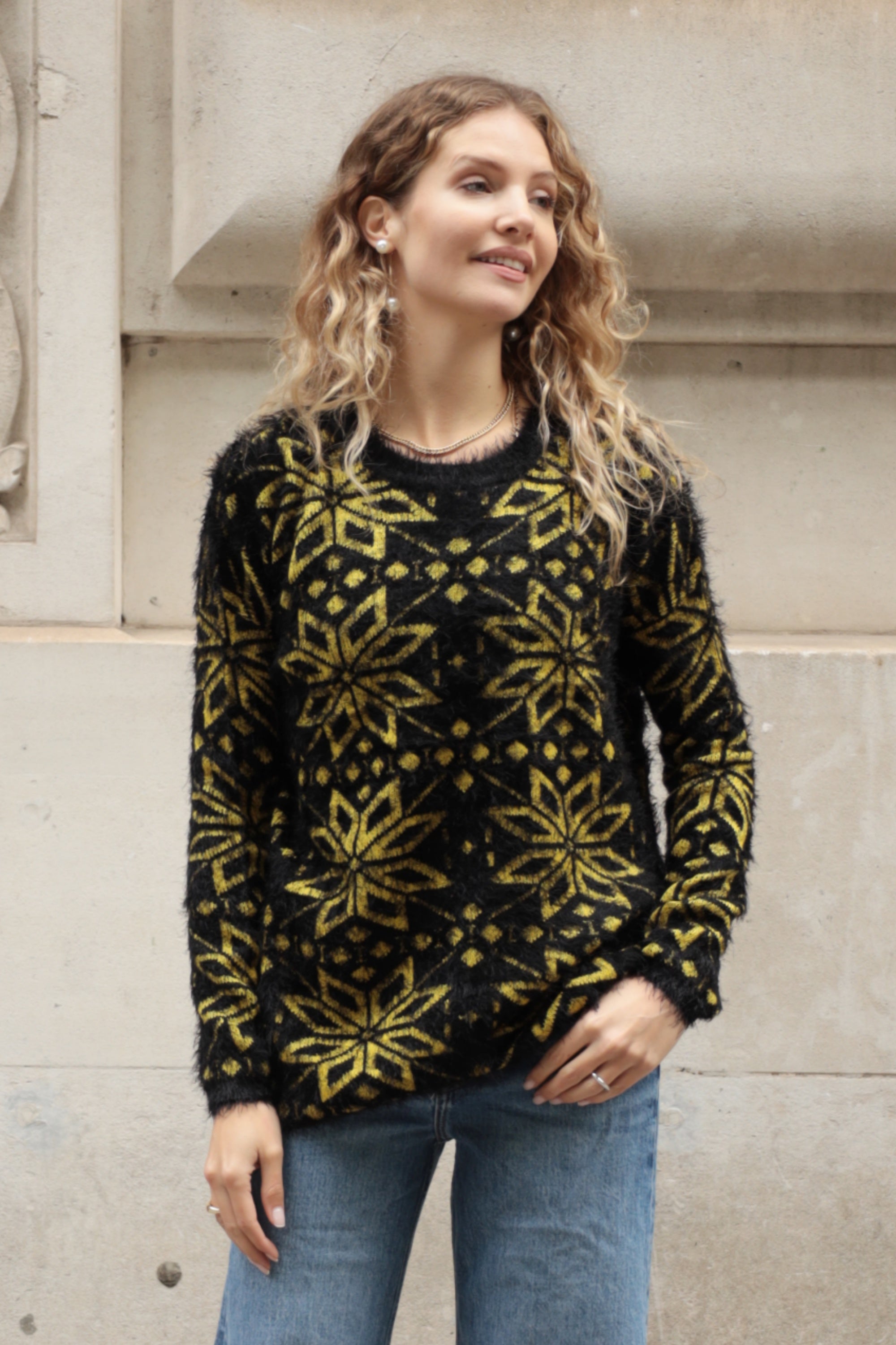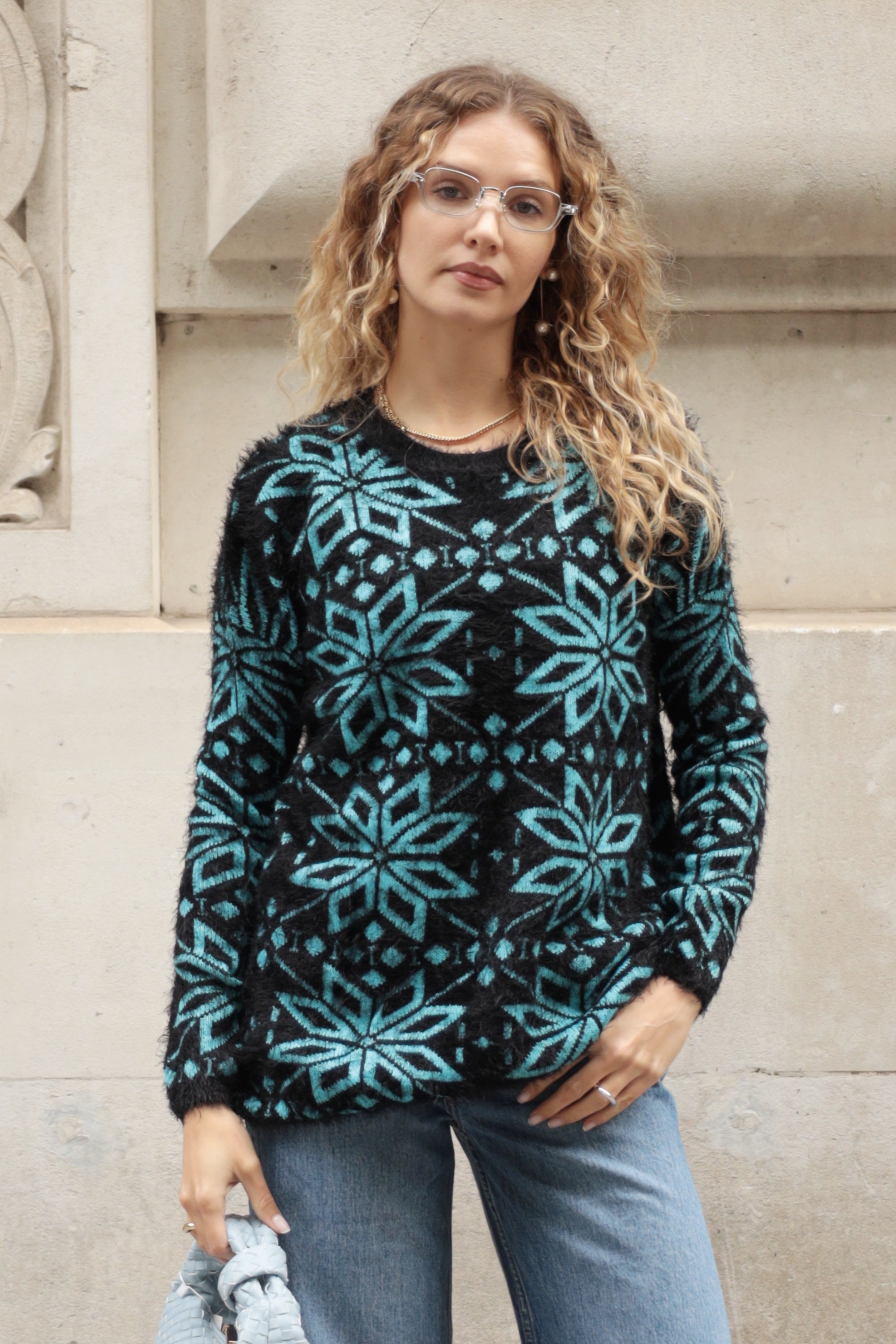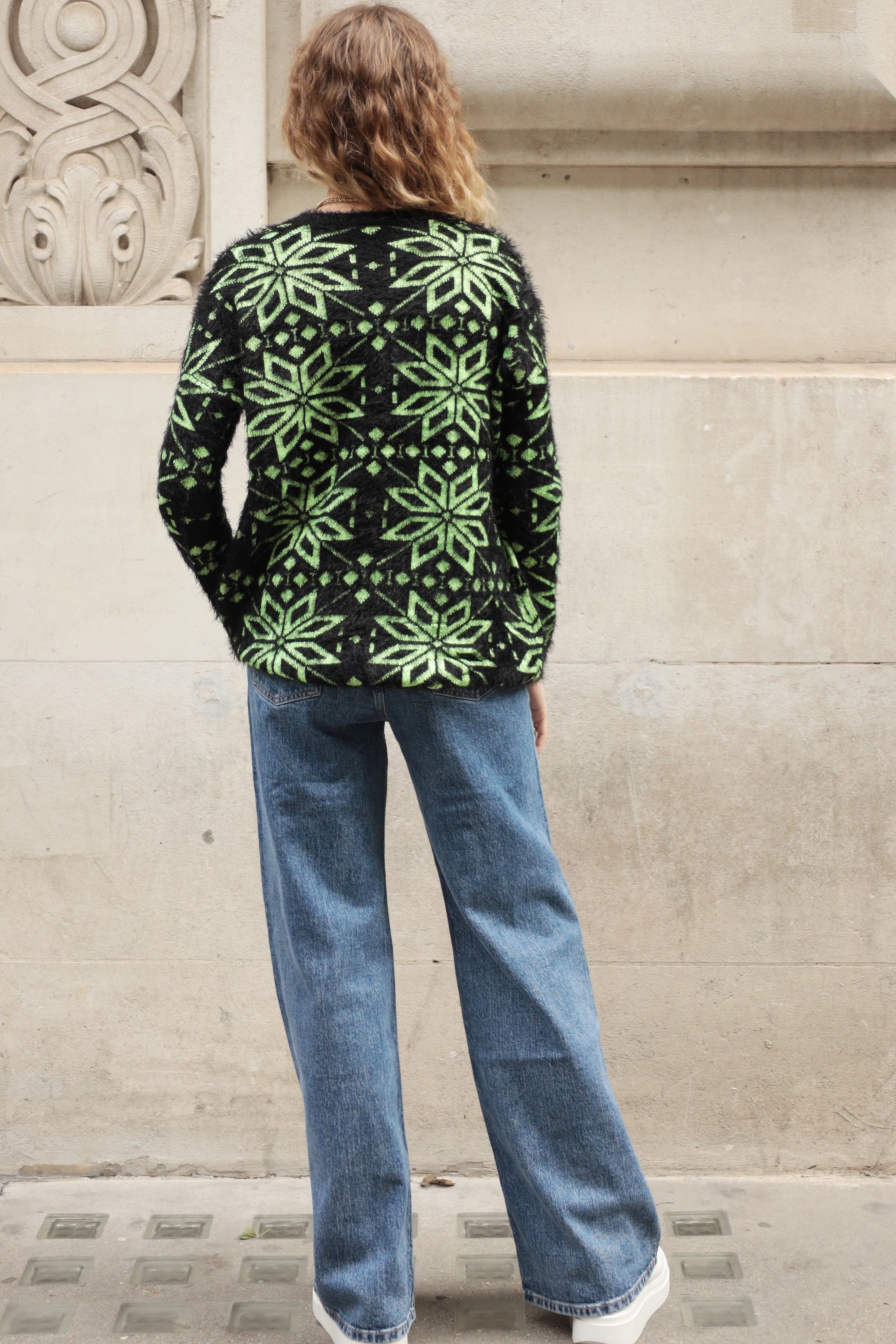 Fluffy Maple Leaves Print Neon Colour Jumper