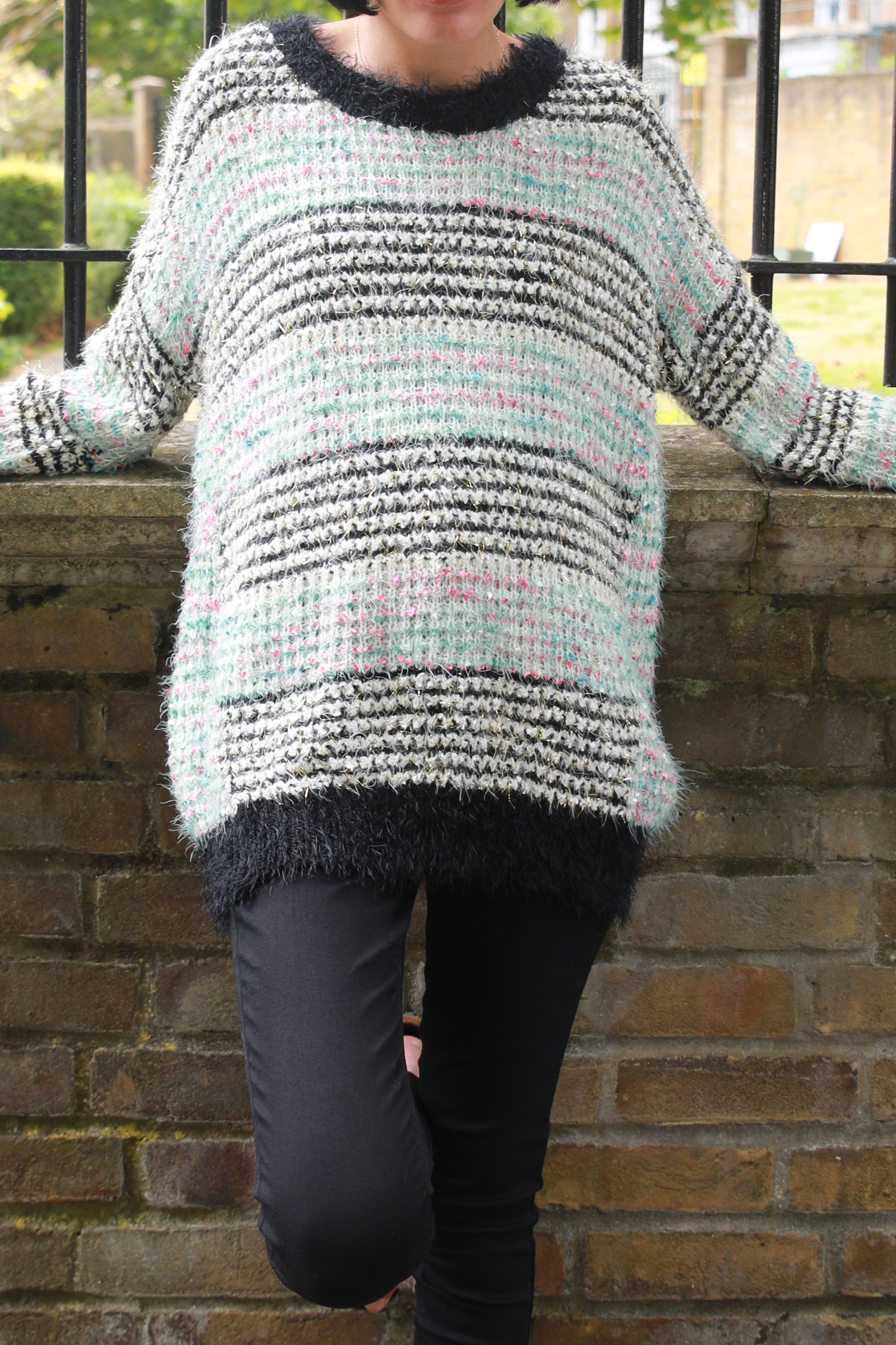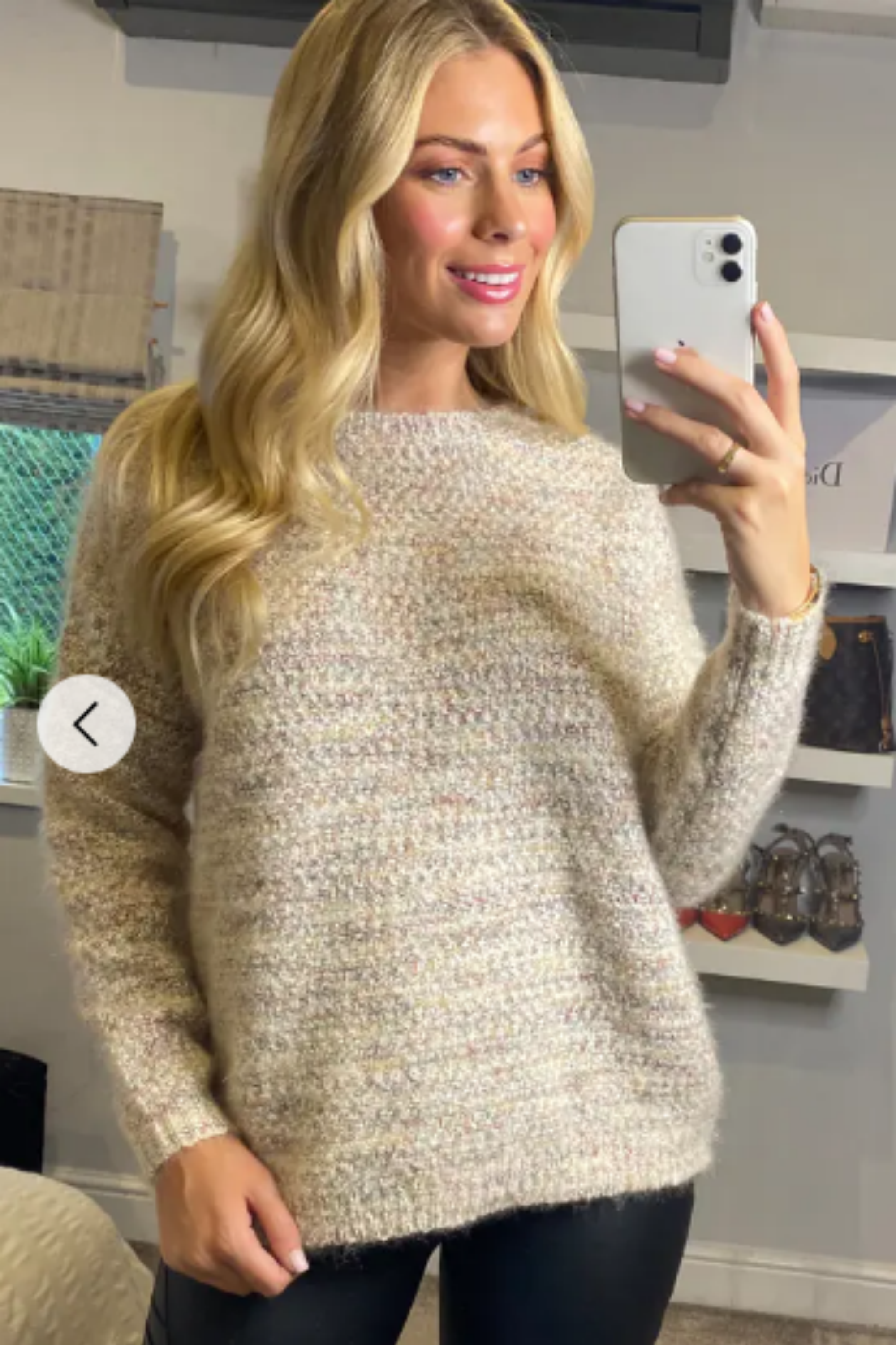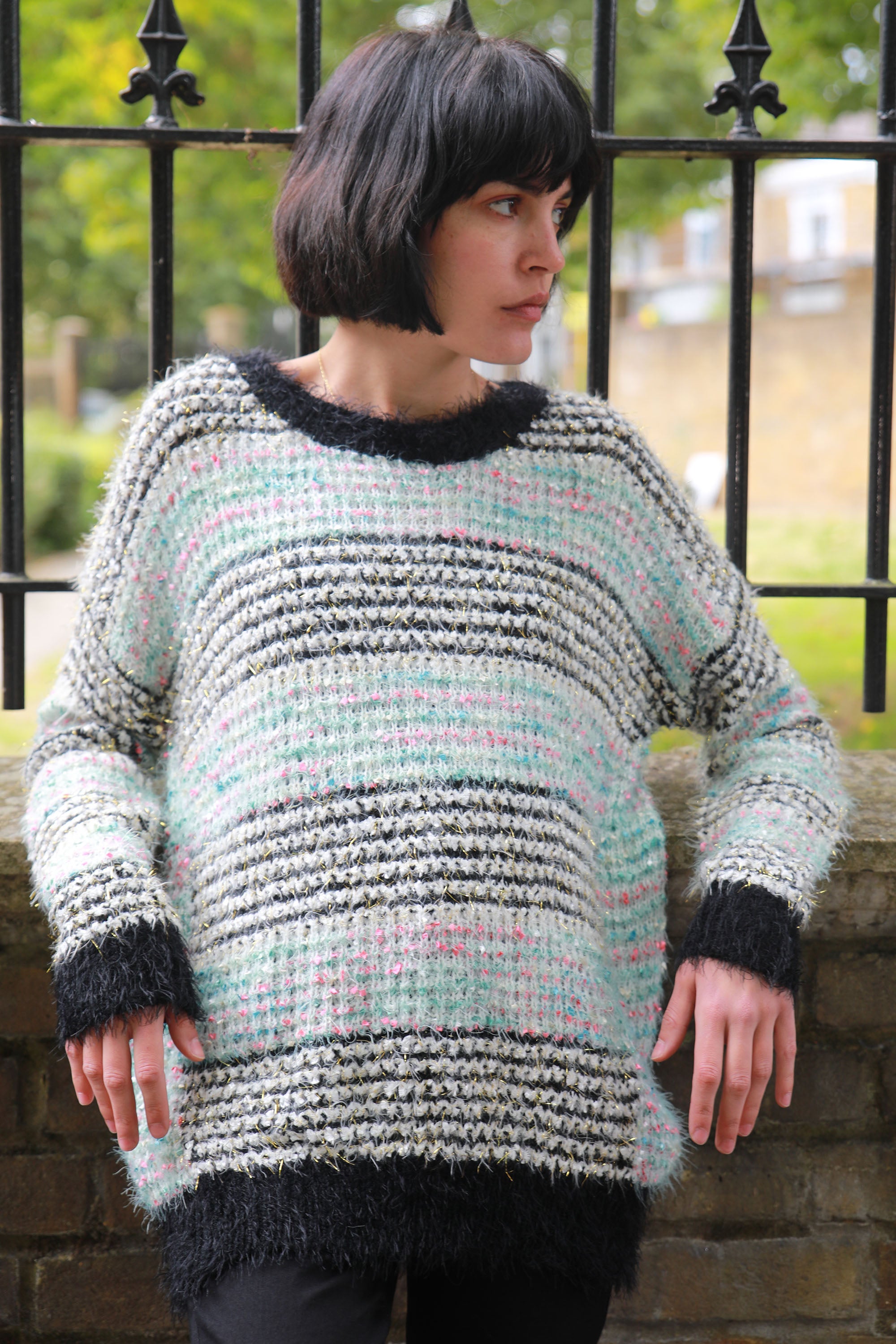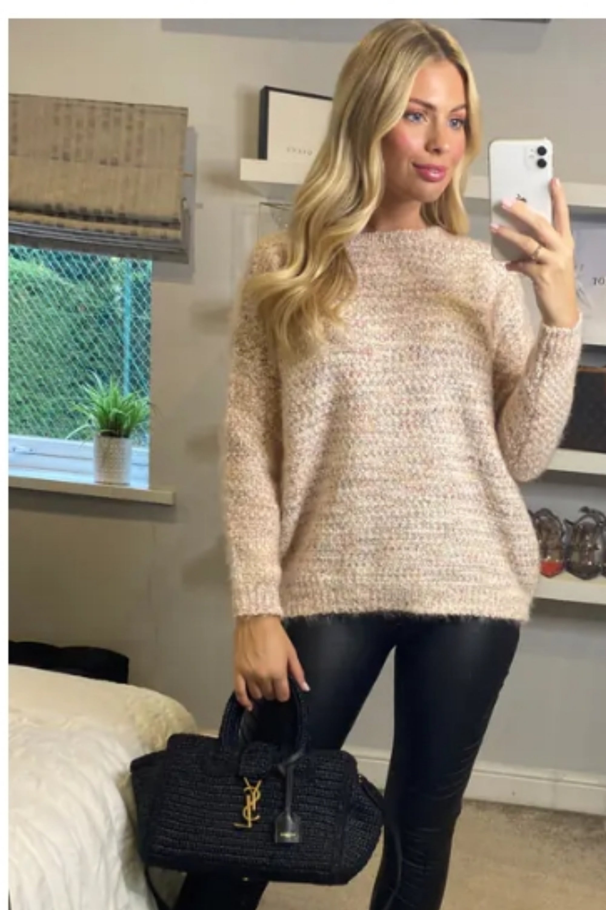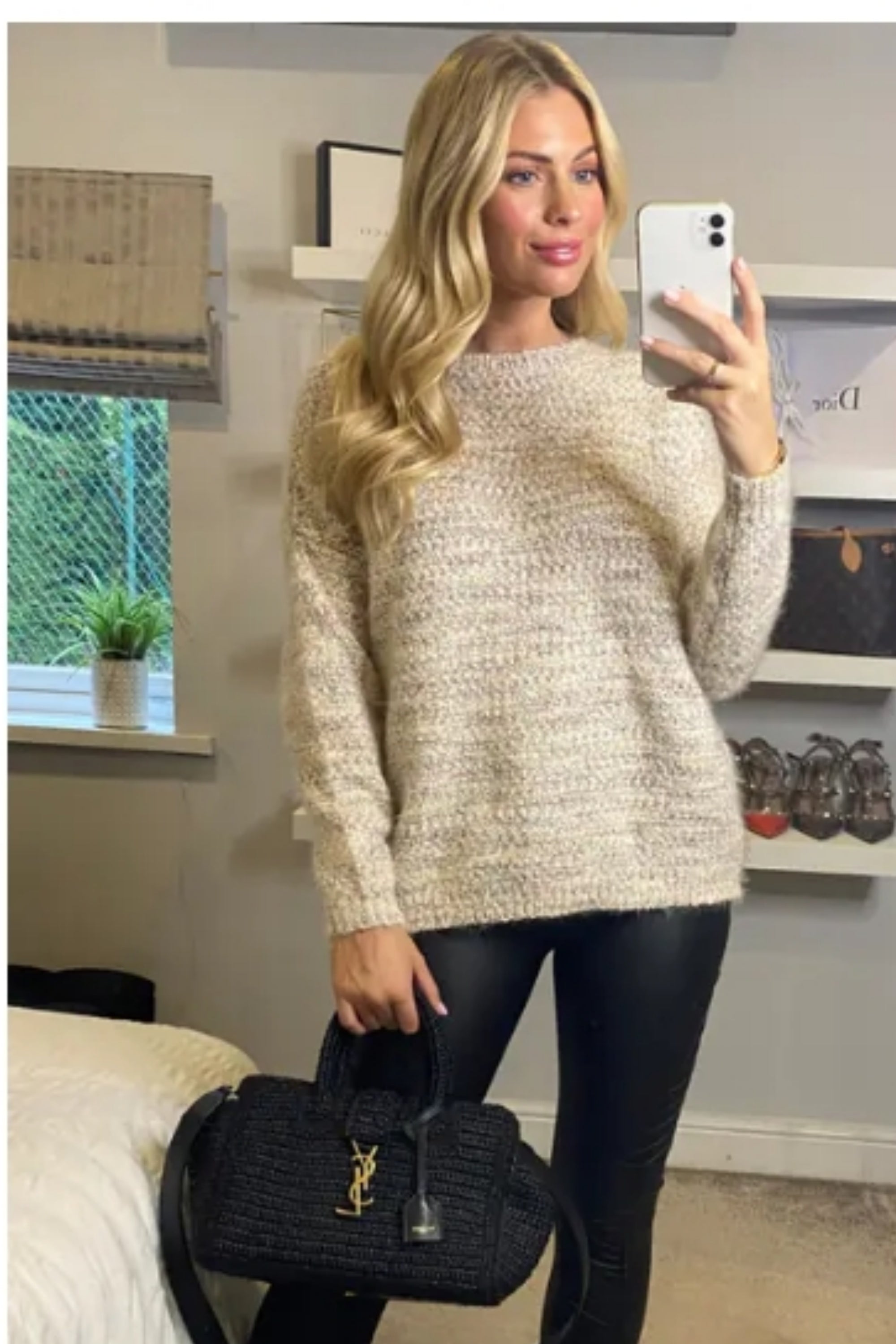 Ribbed stripe mix yarn oversize jumper (Camel)