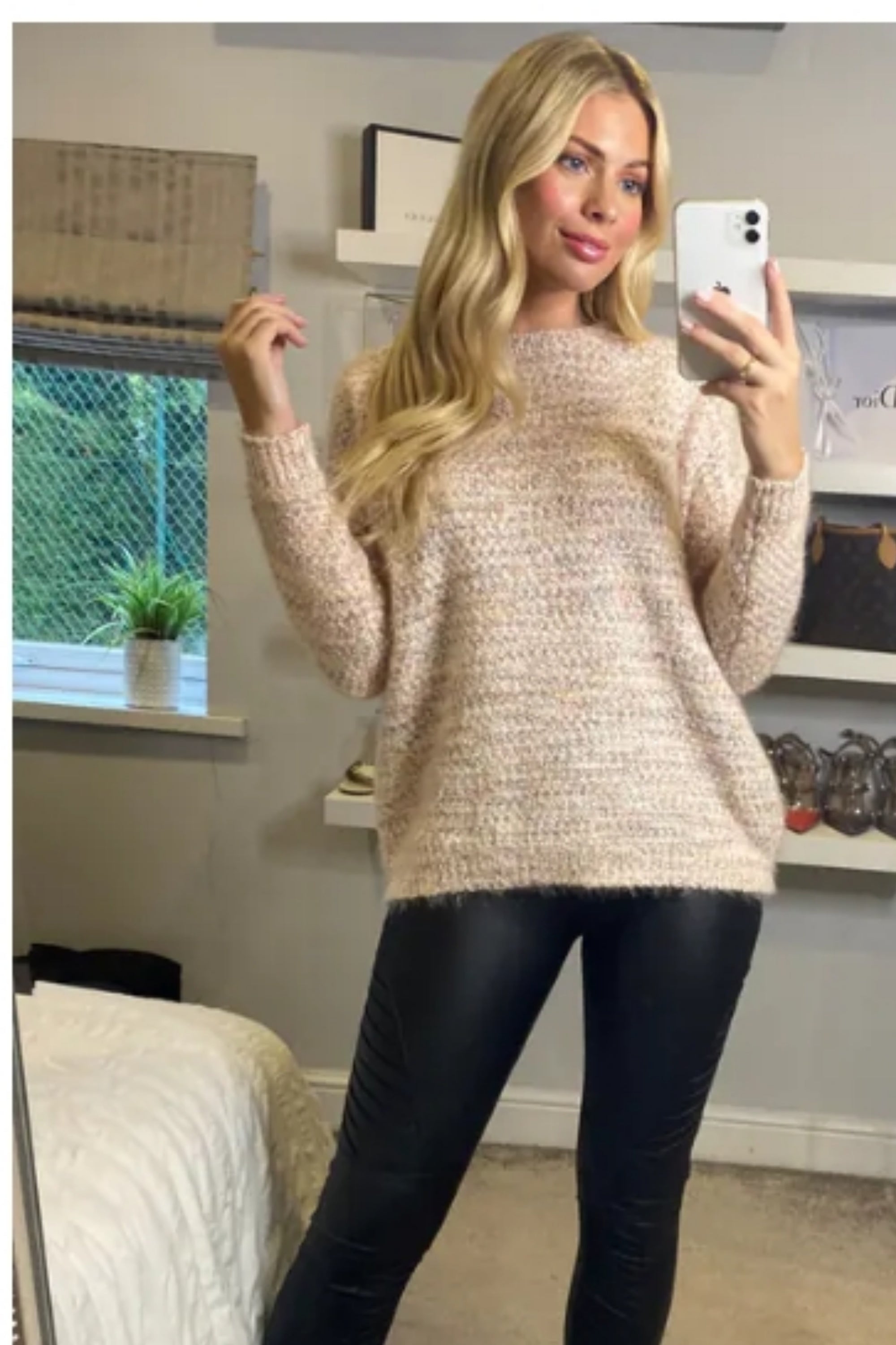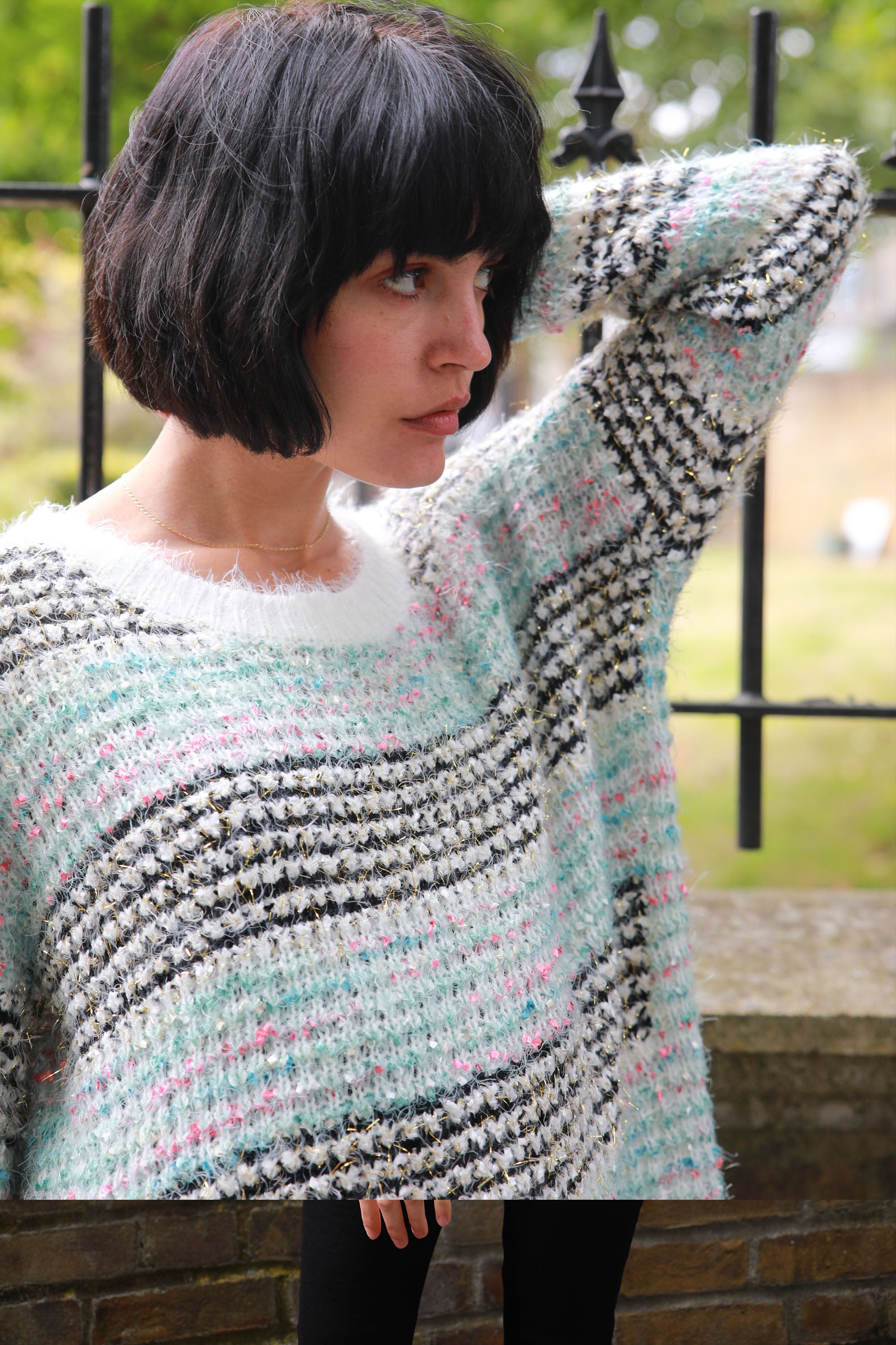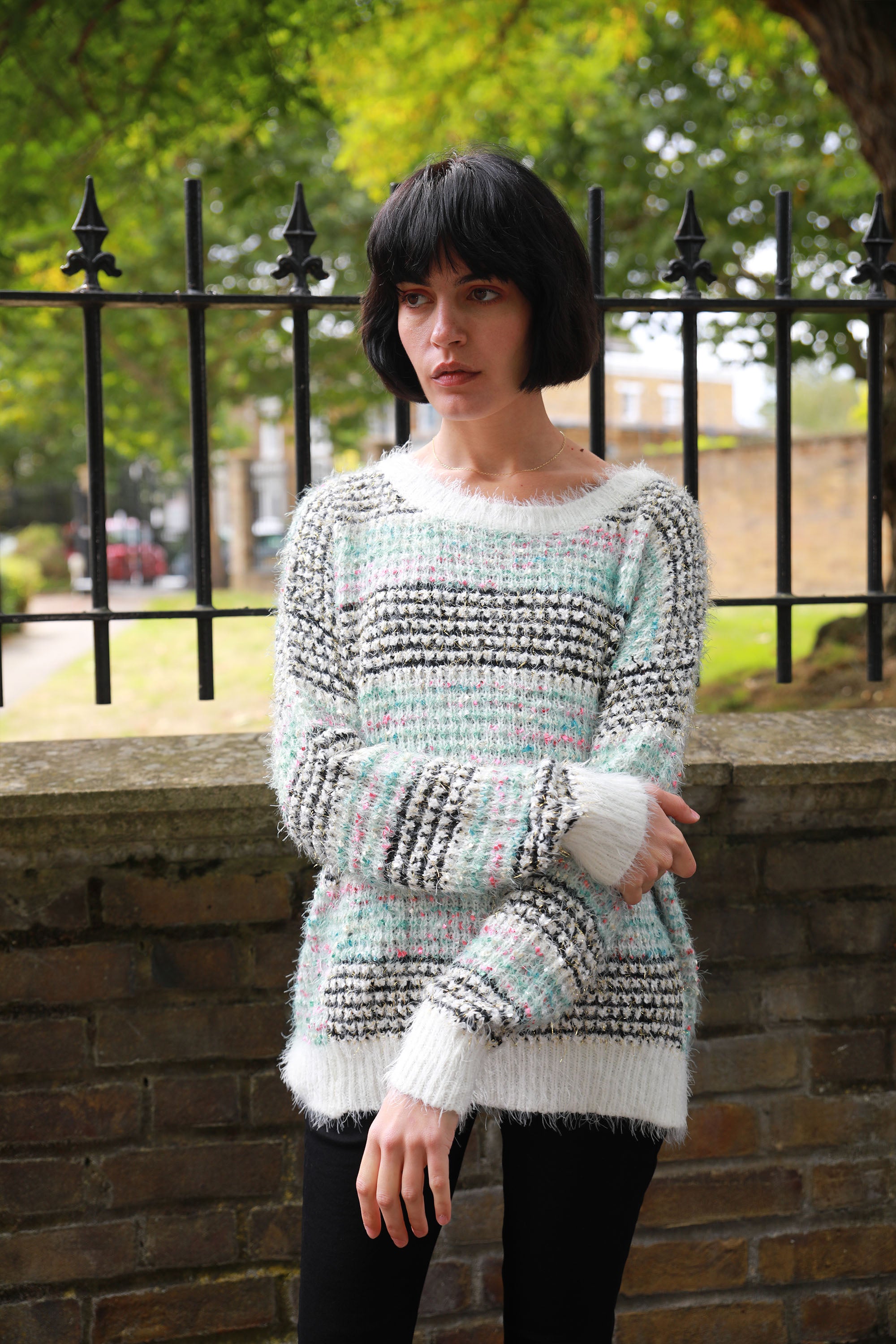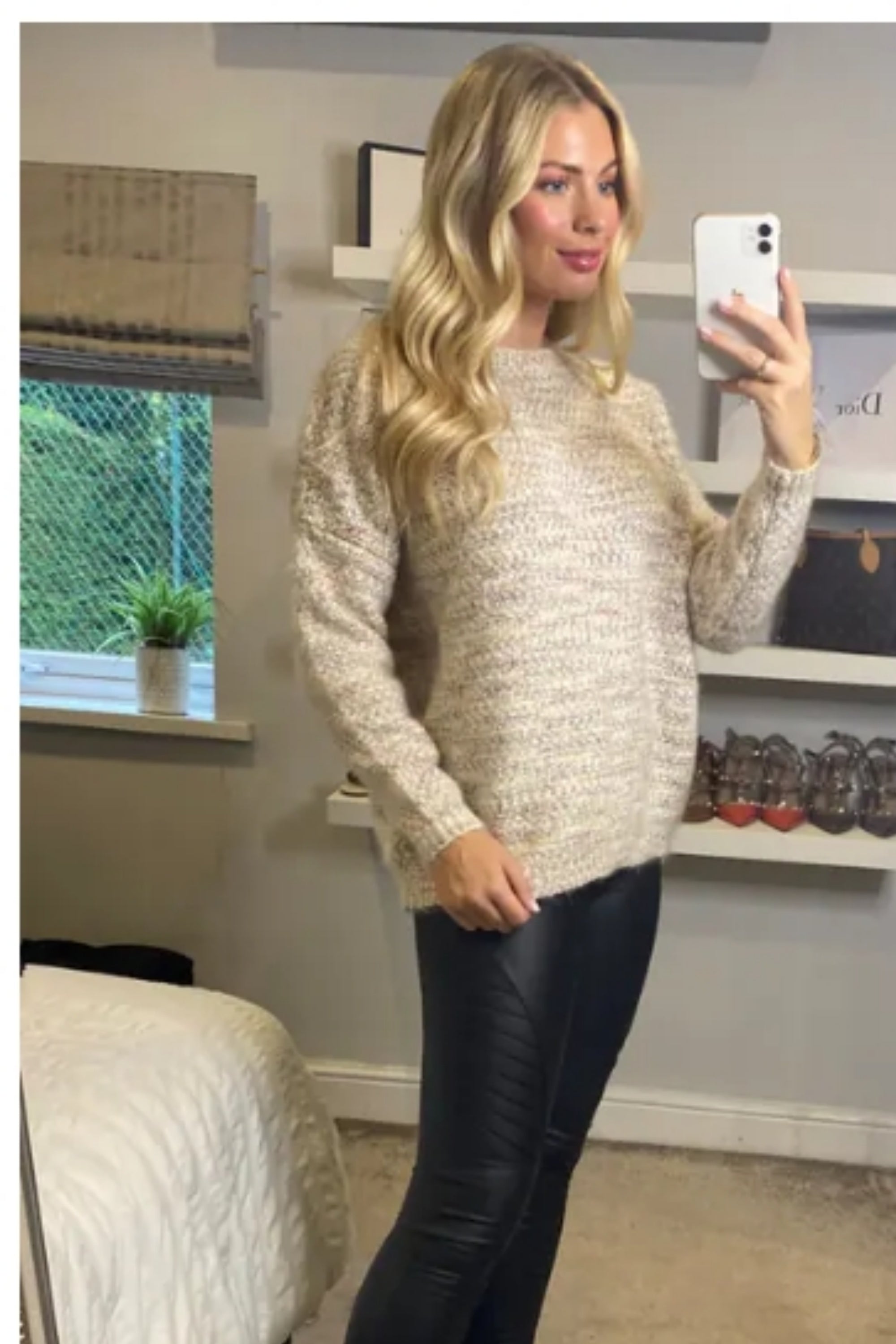 Ribbed stripe mix yarn oversize jumper (Camel)