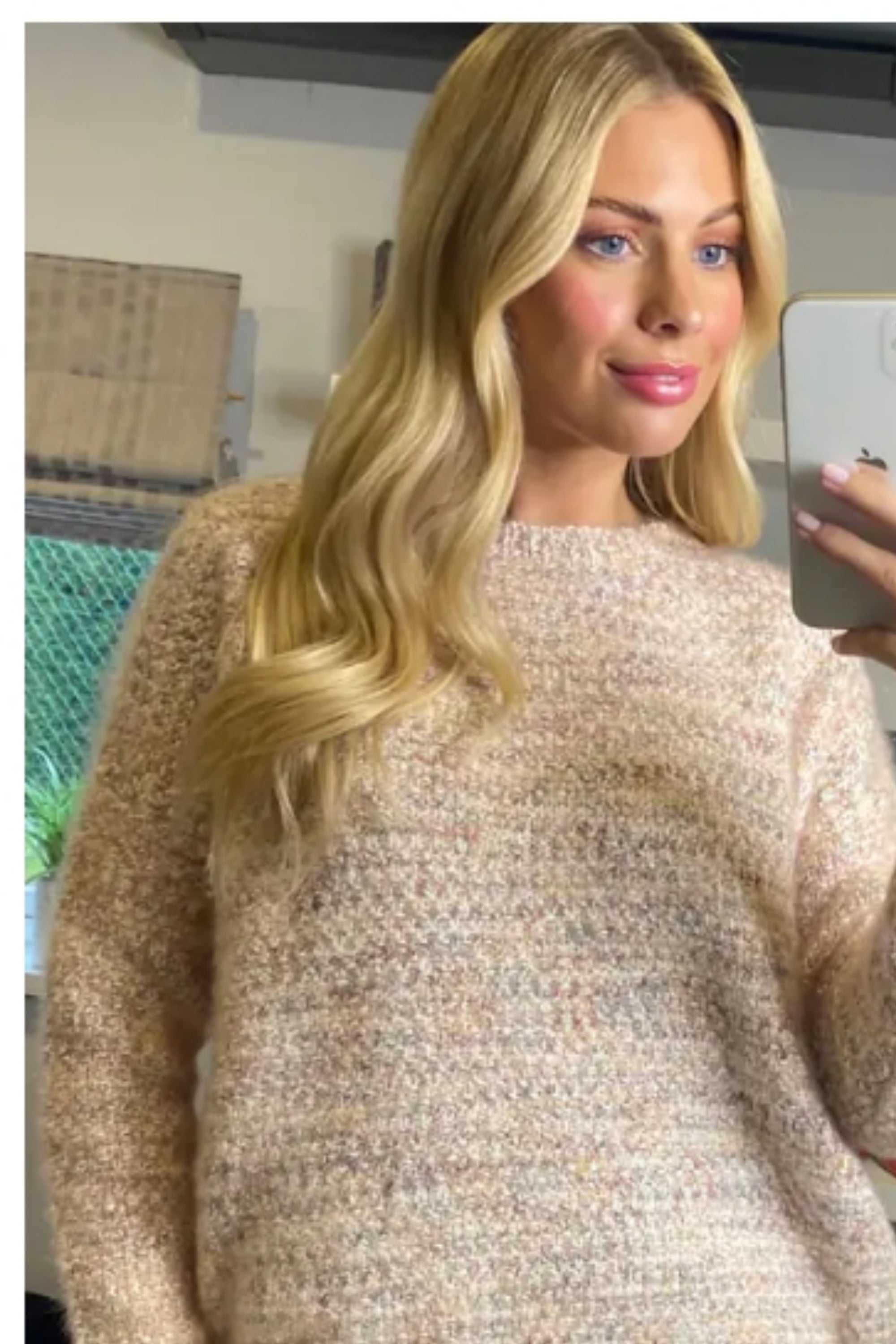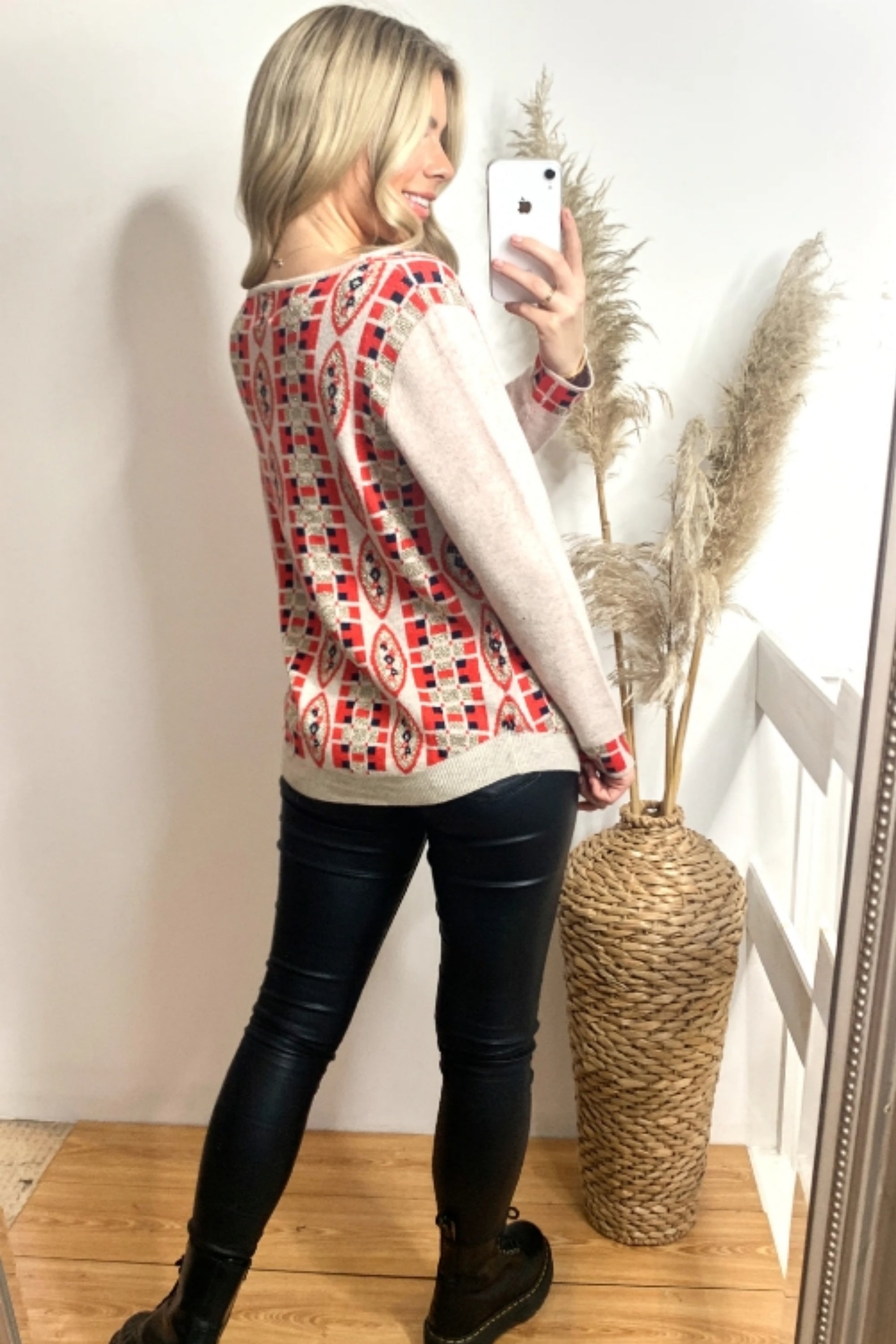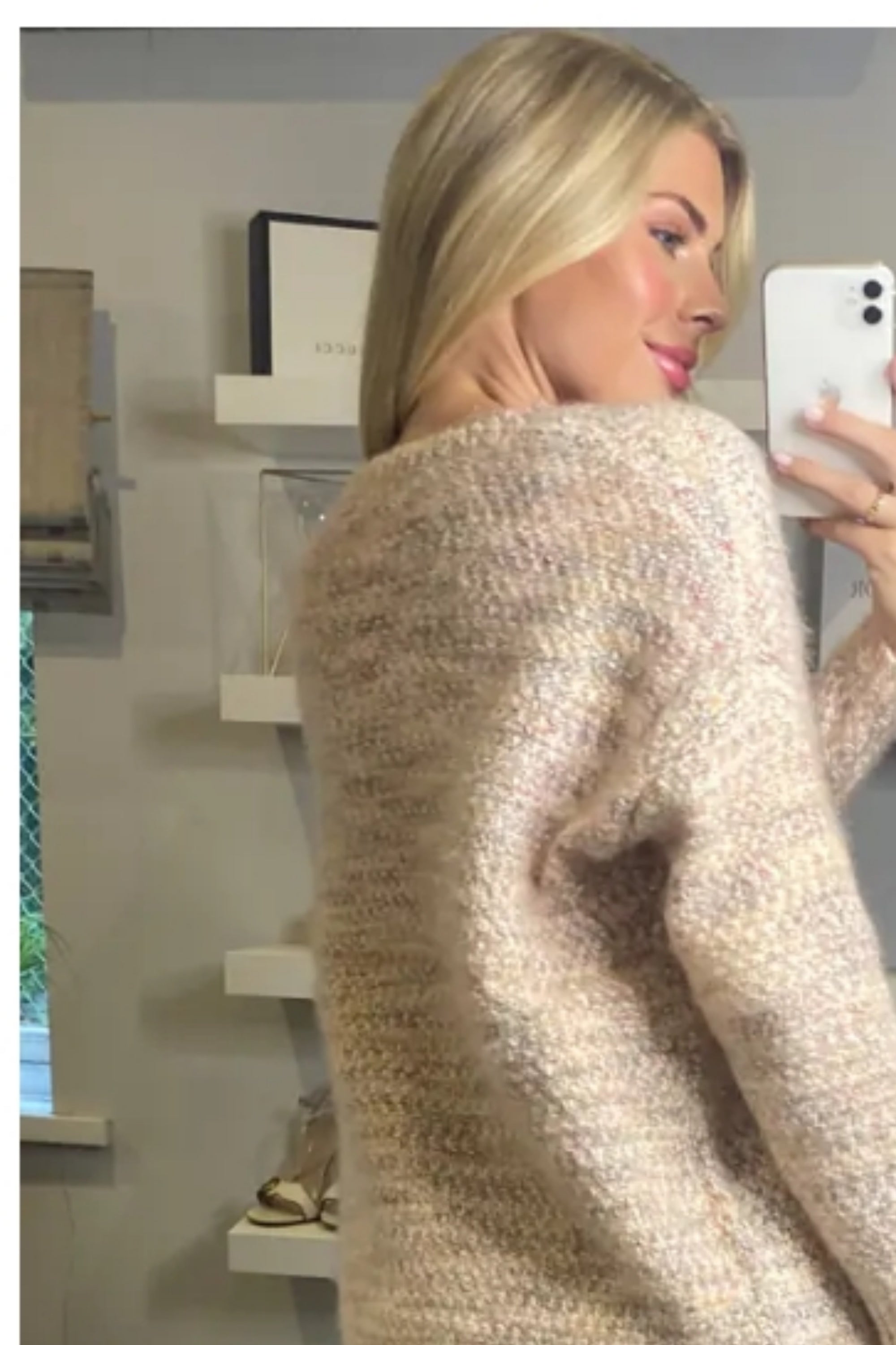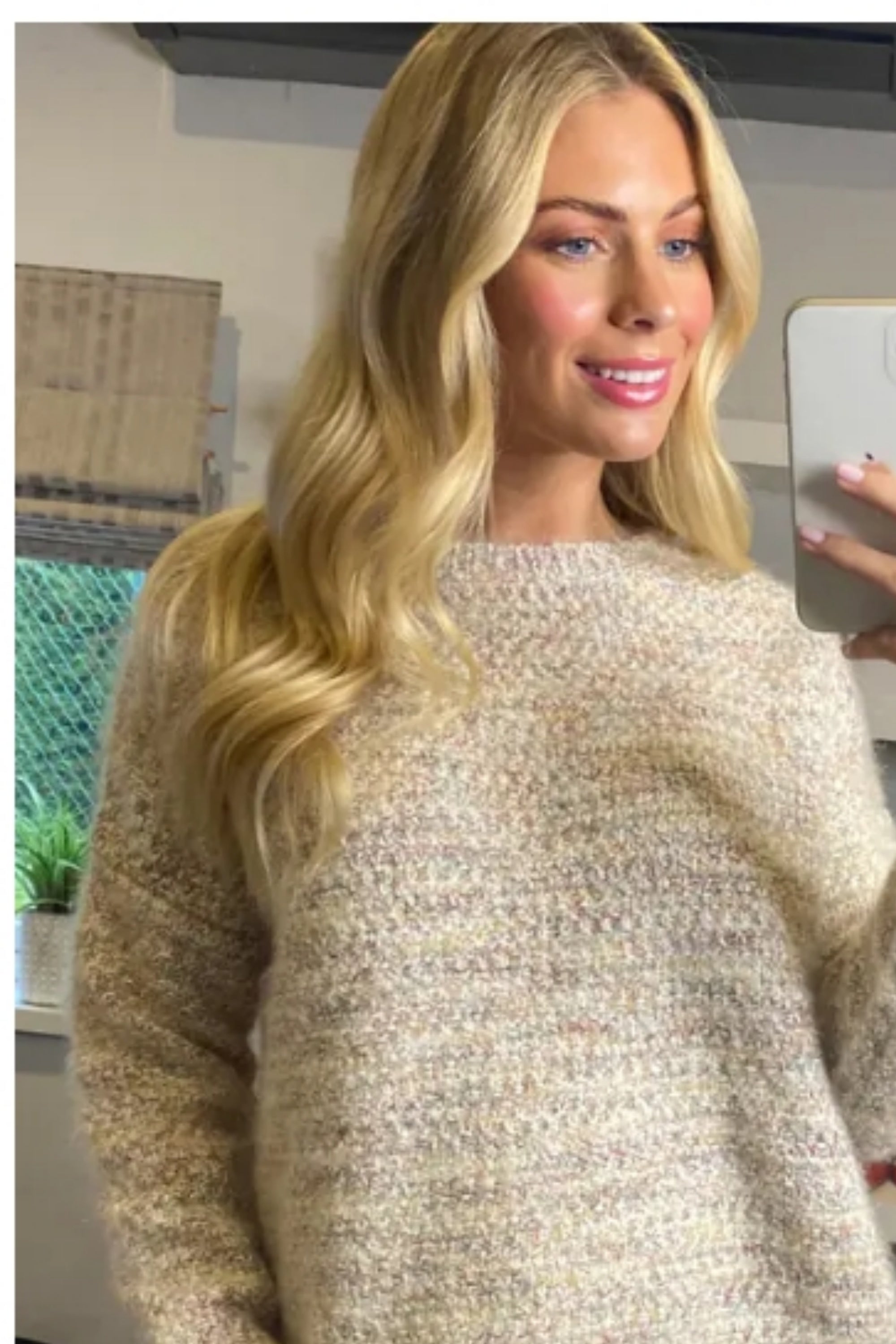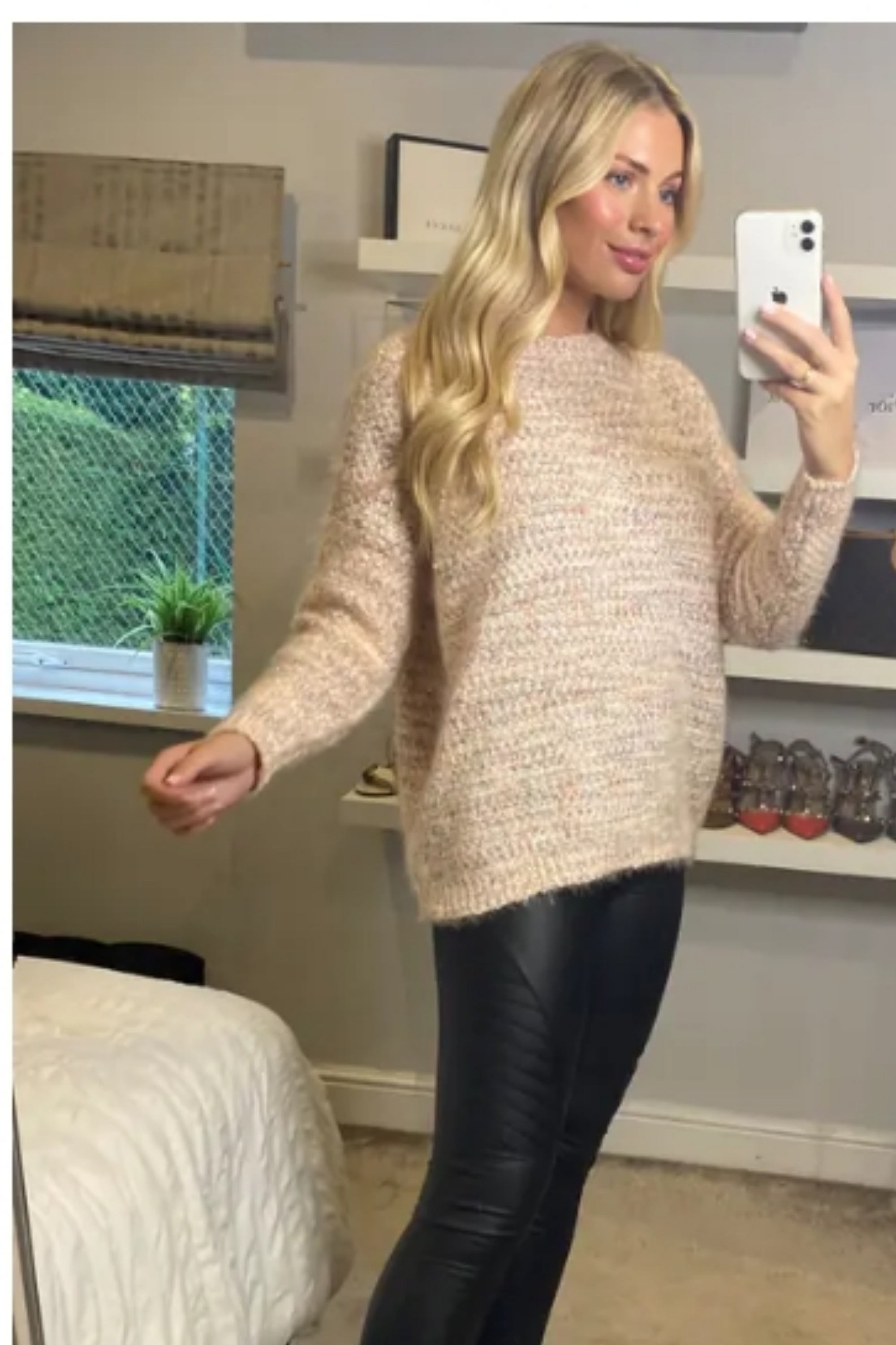 Ribbed stripe mix yarn oversize jumper (Camel)