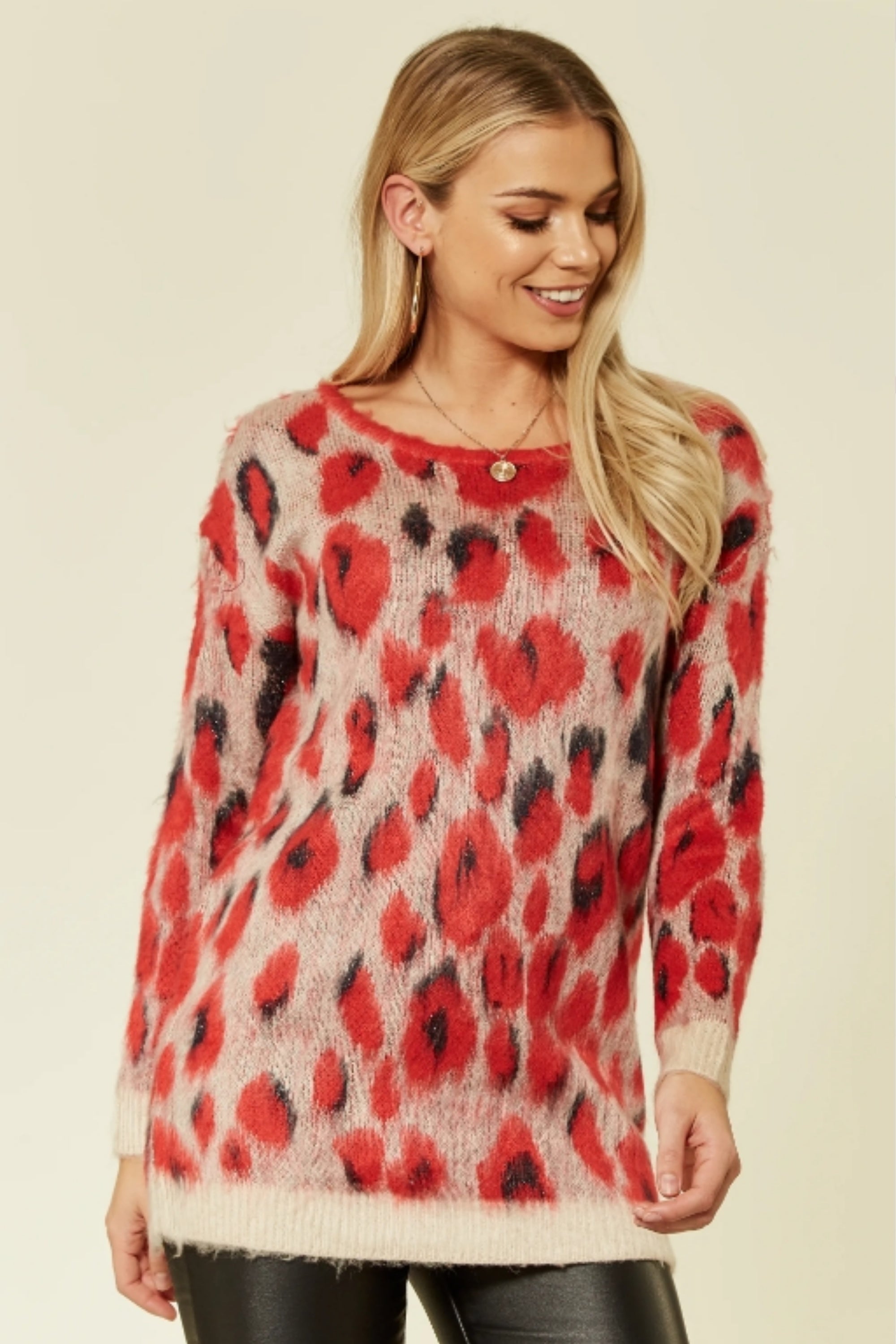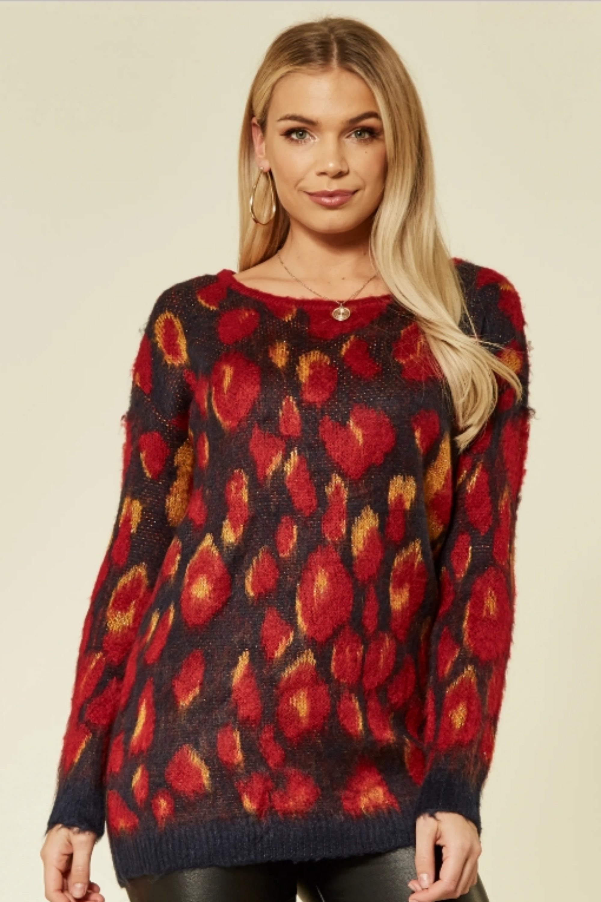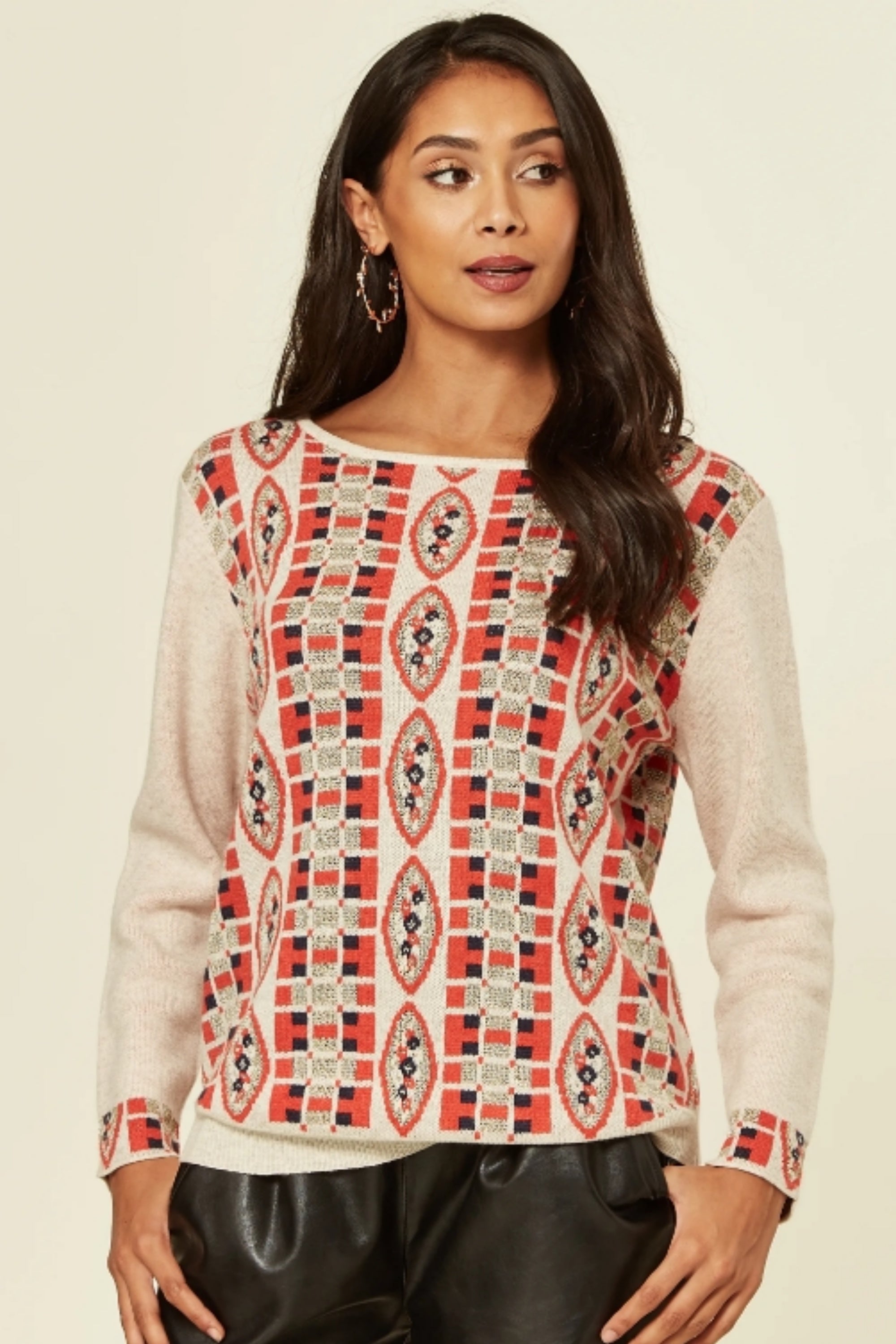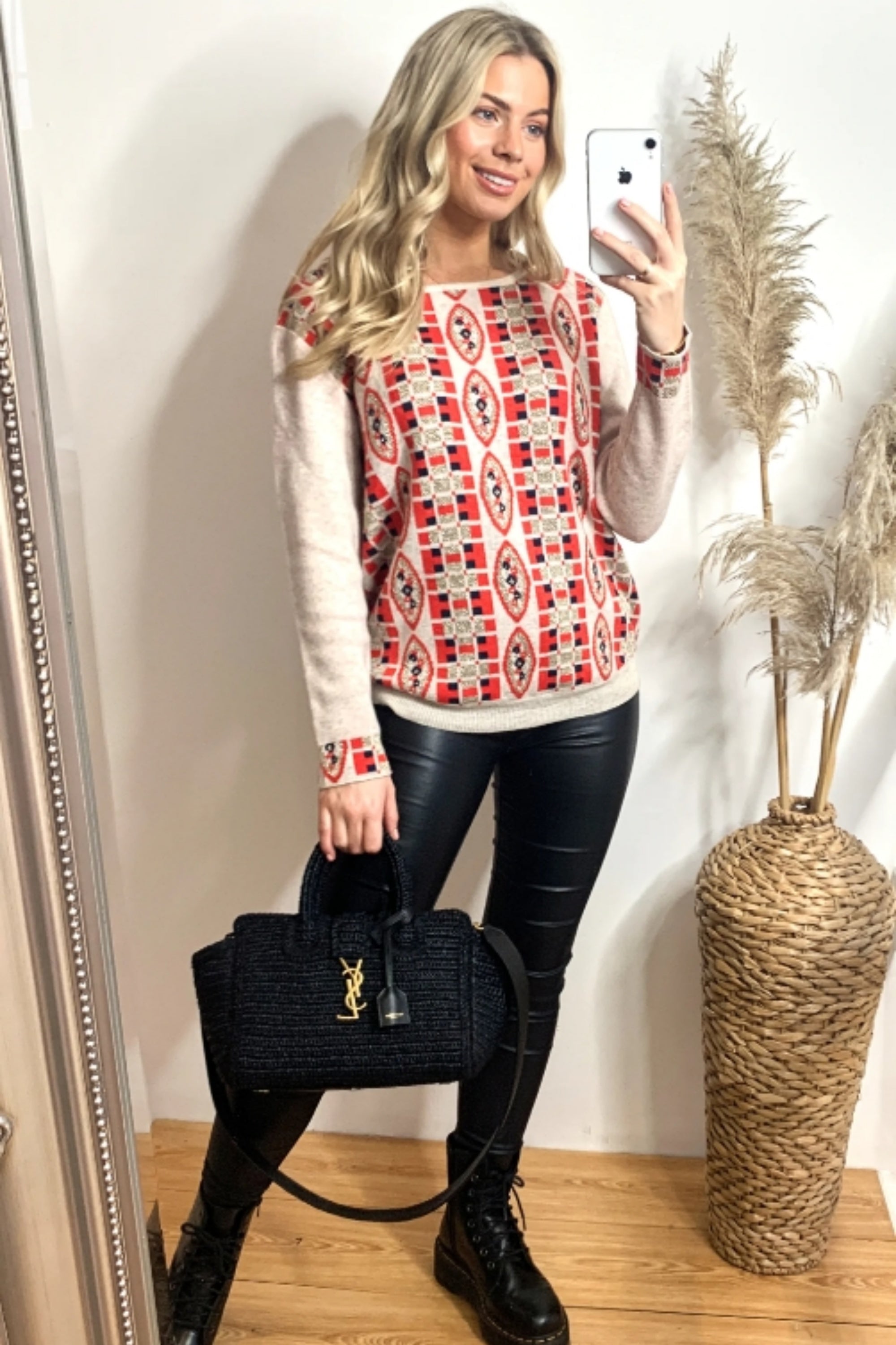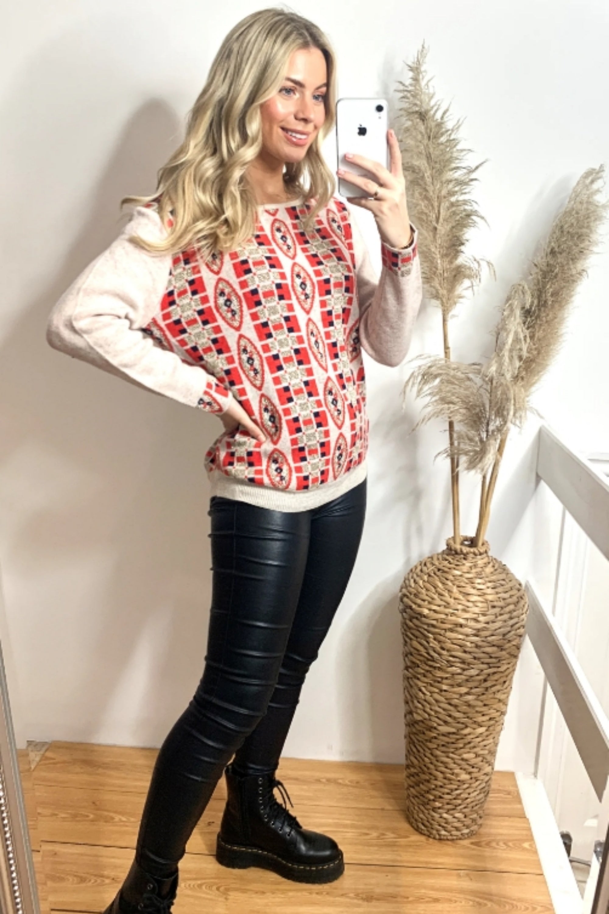Ribbed stripe mix yarn oversize jumper (Camel)