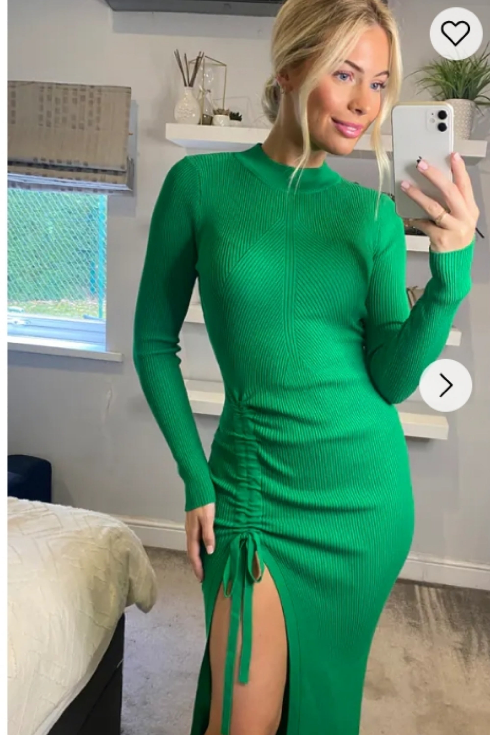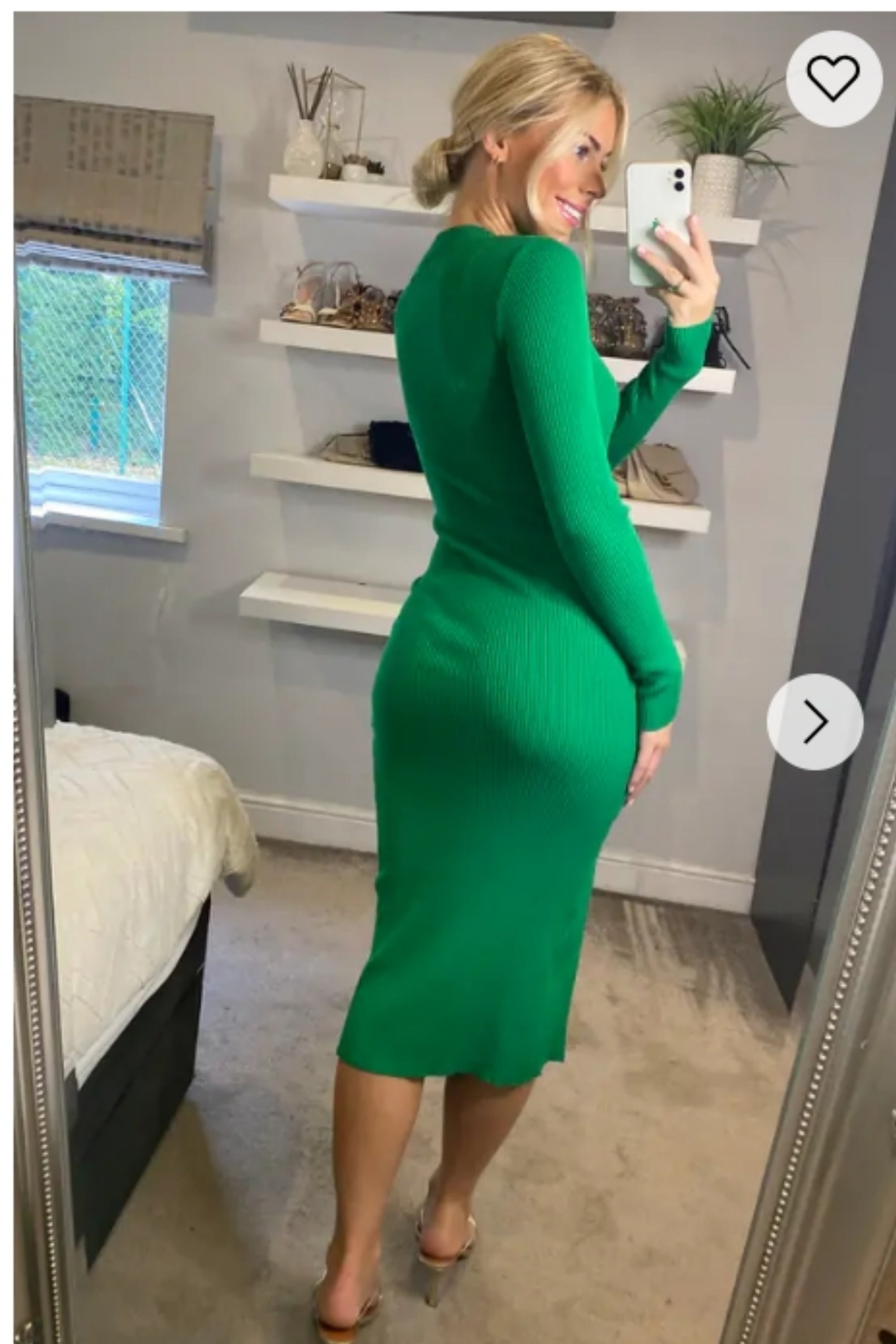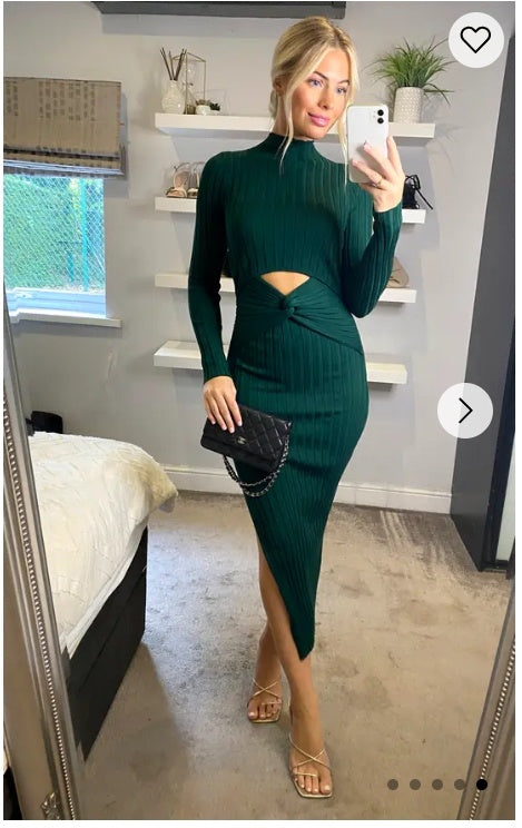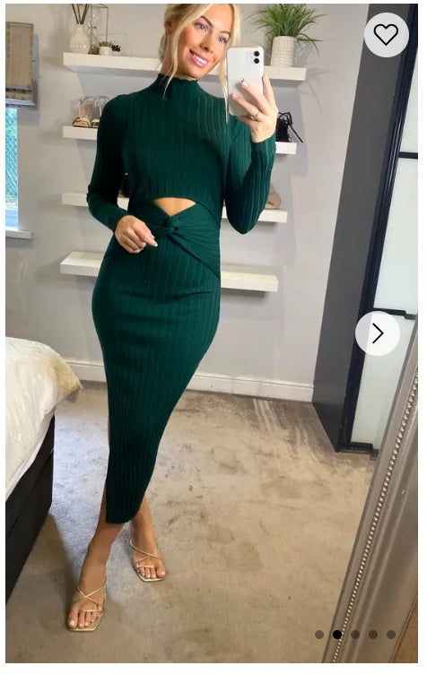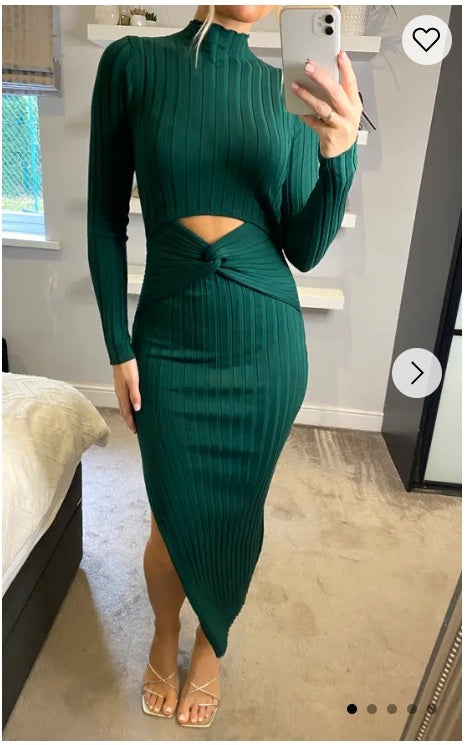 Soft Knitted Ribbed Midi Bodycon front OR back cut out design Dress In Green