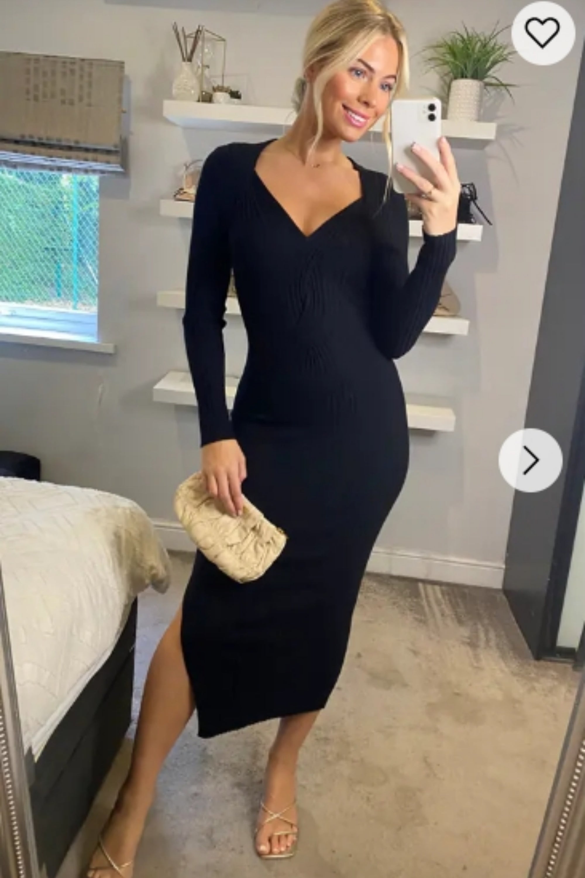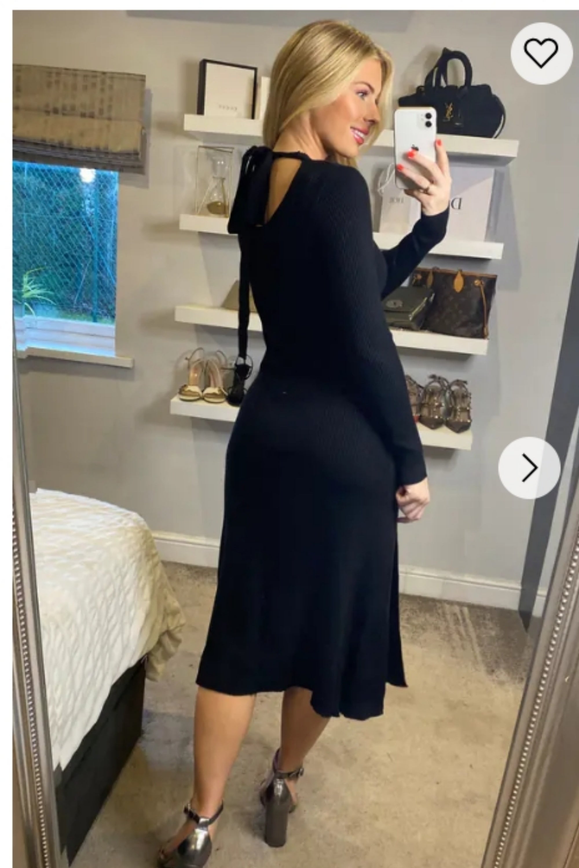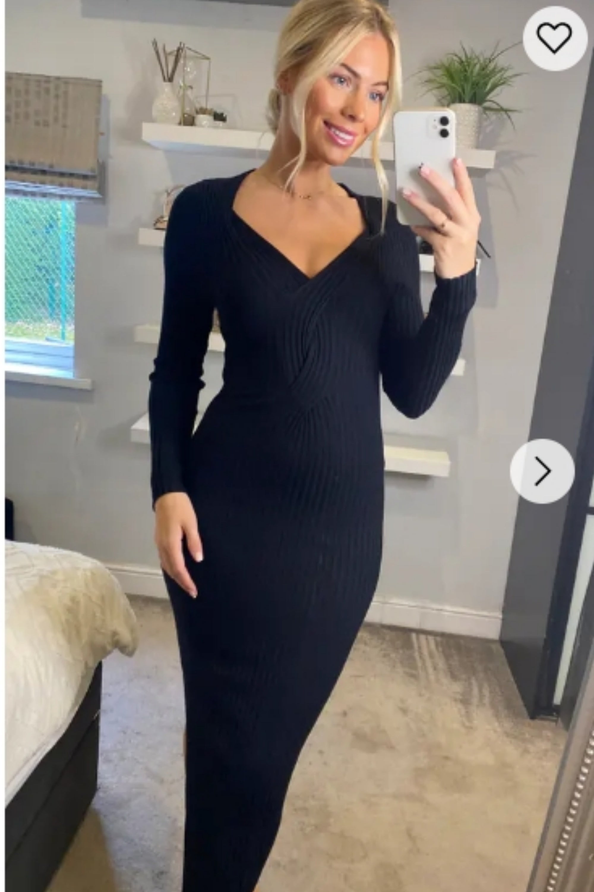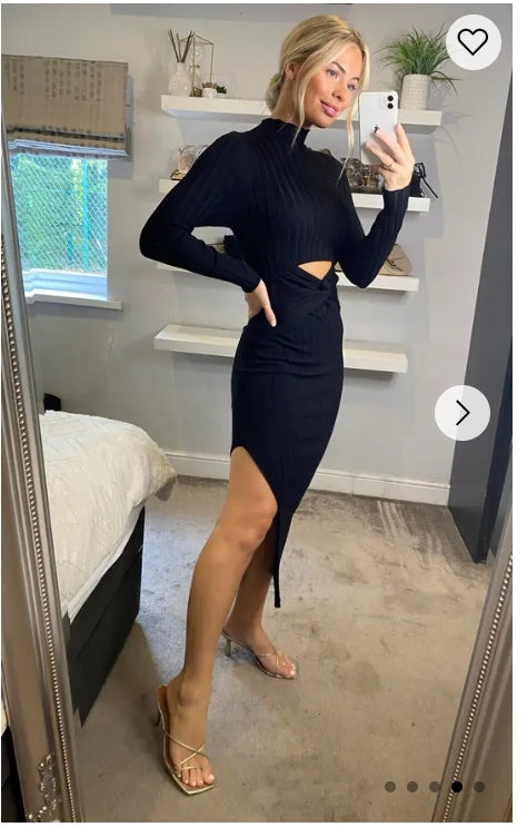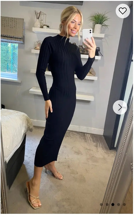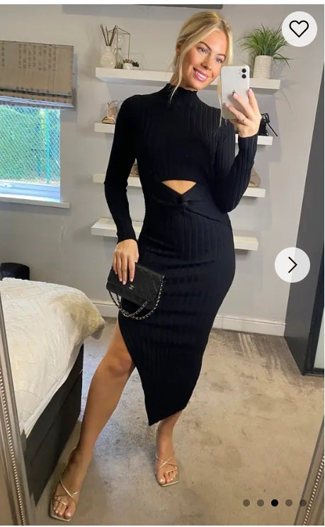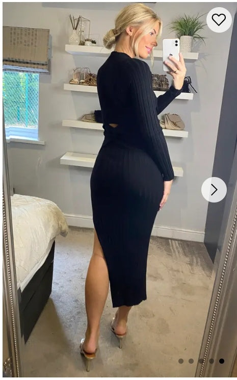 Soft Knitted Ribbed Midi Bodycon front OR back cut out design Dress In Black