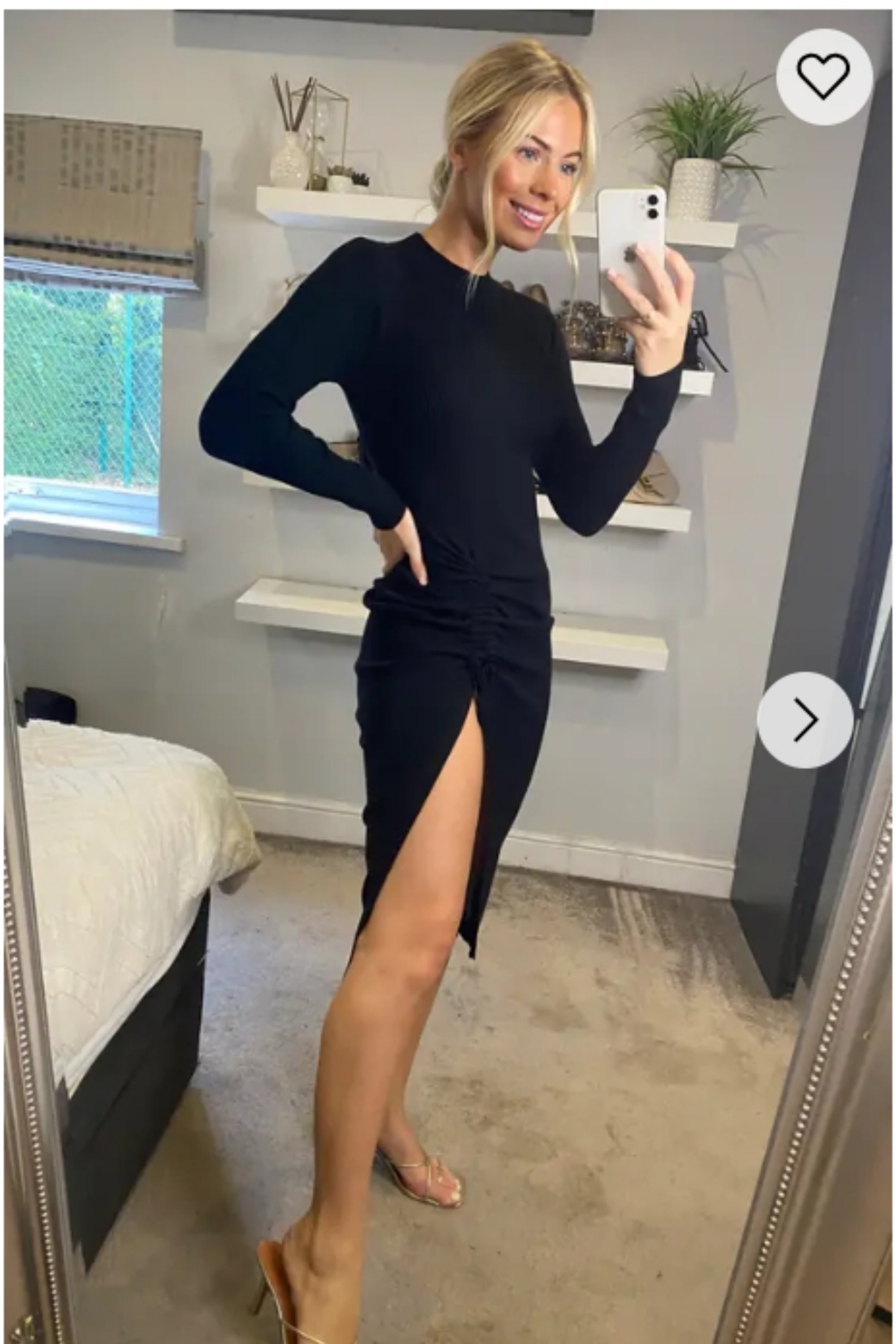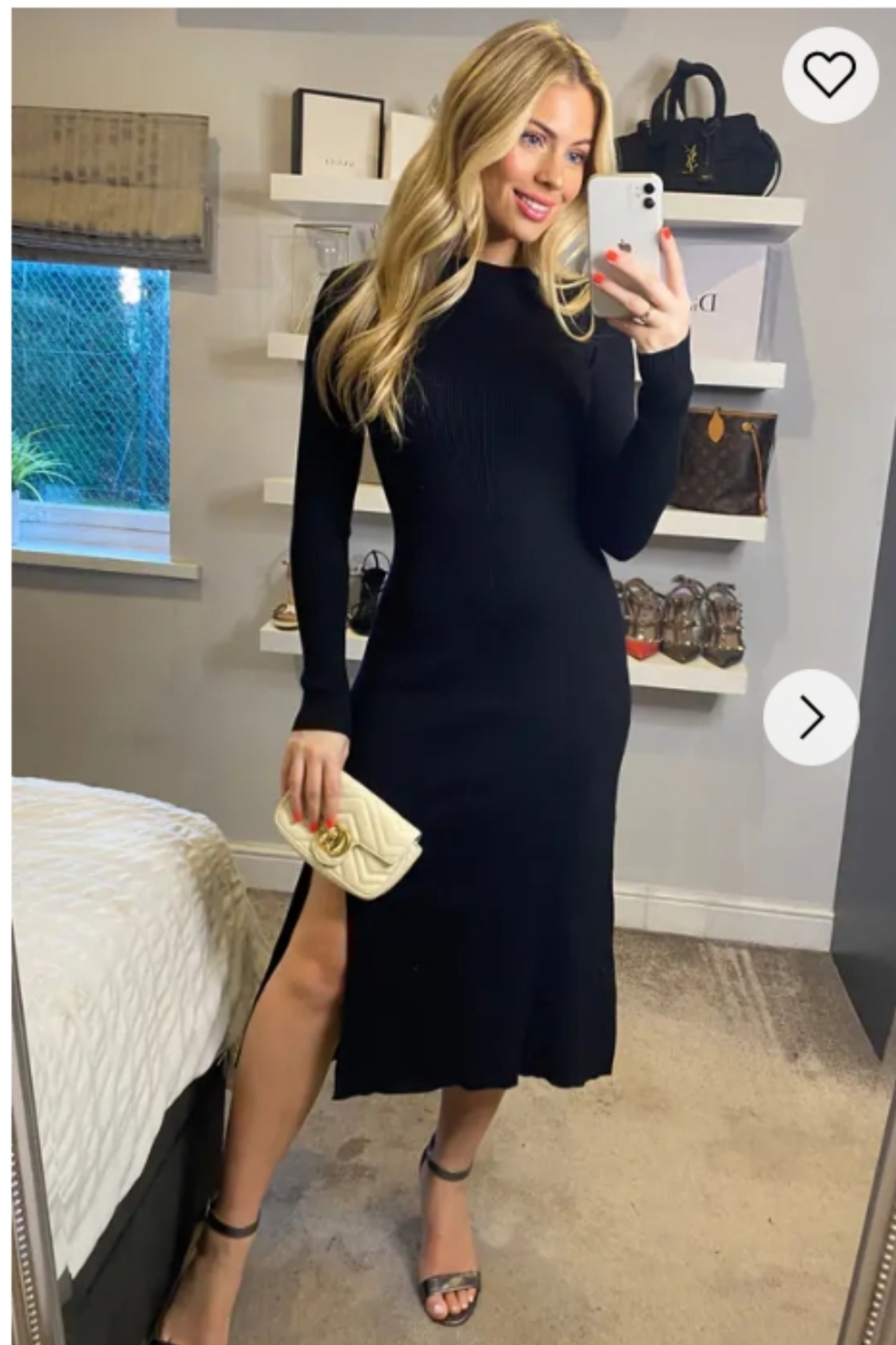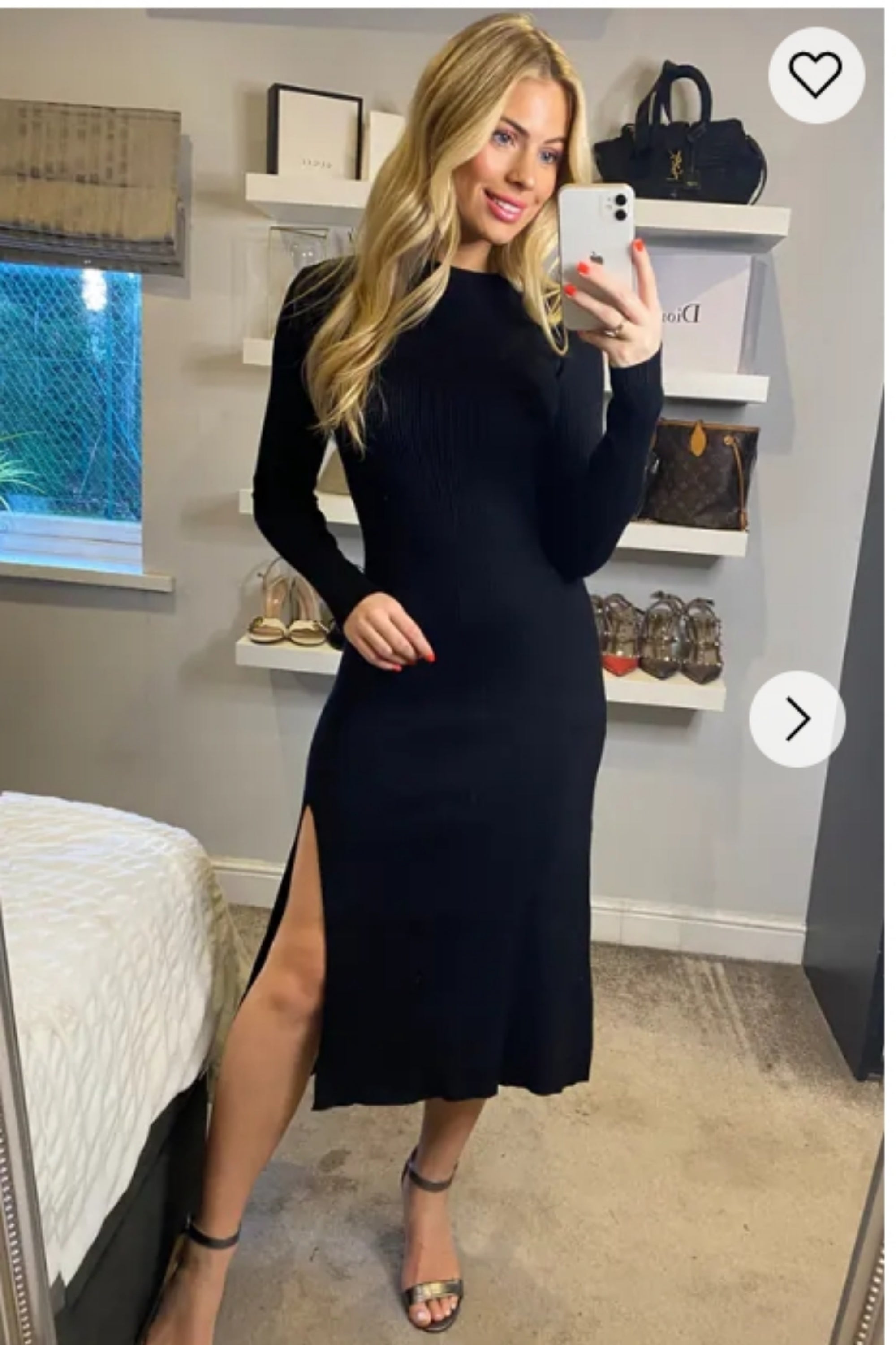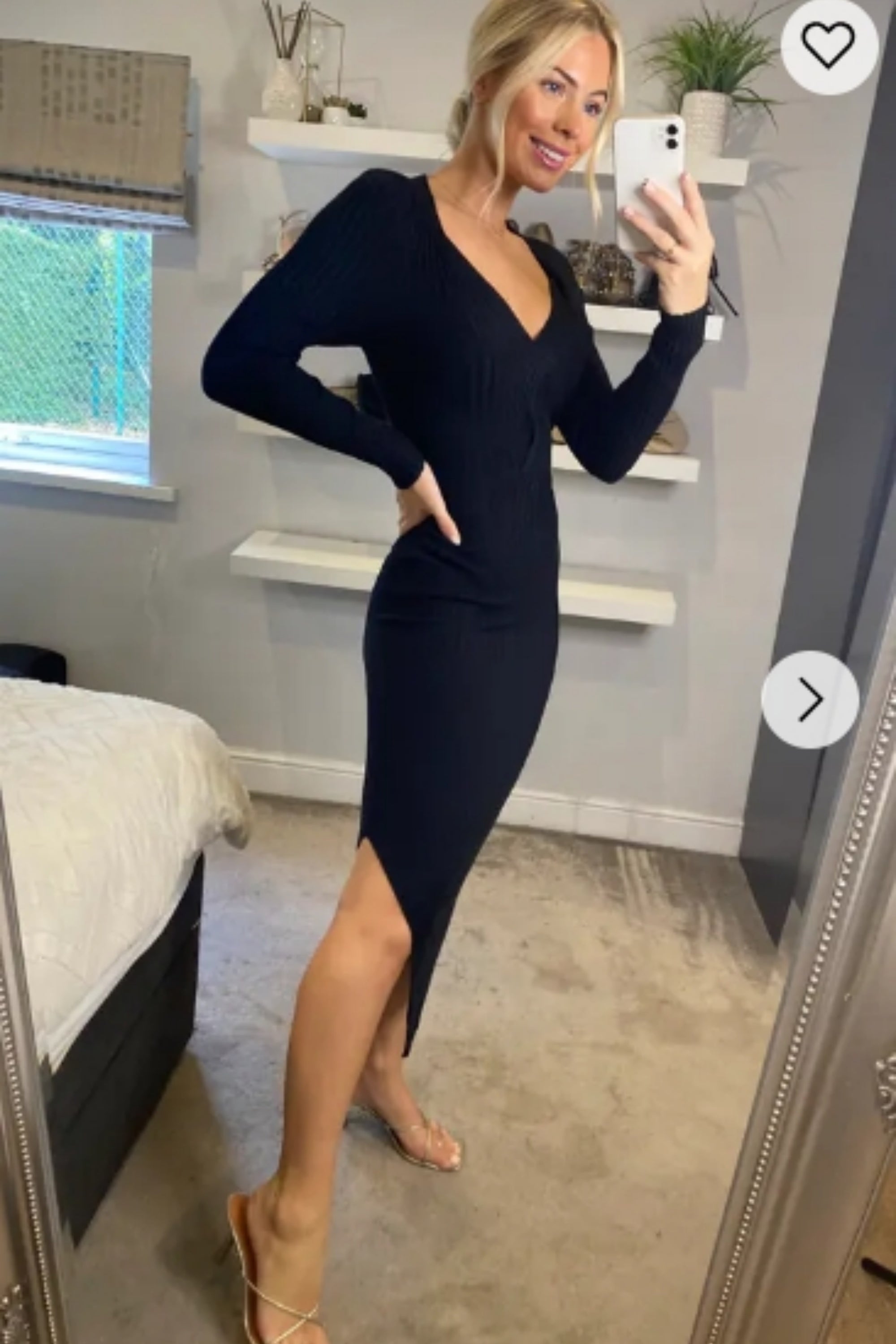 Soft Knitted Ribbed Midi Split Hem Bodycon Dress In Black