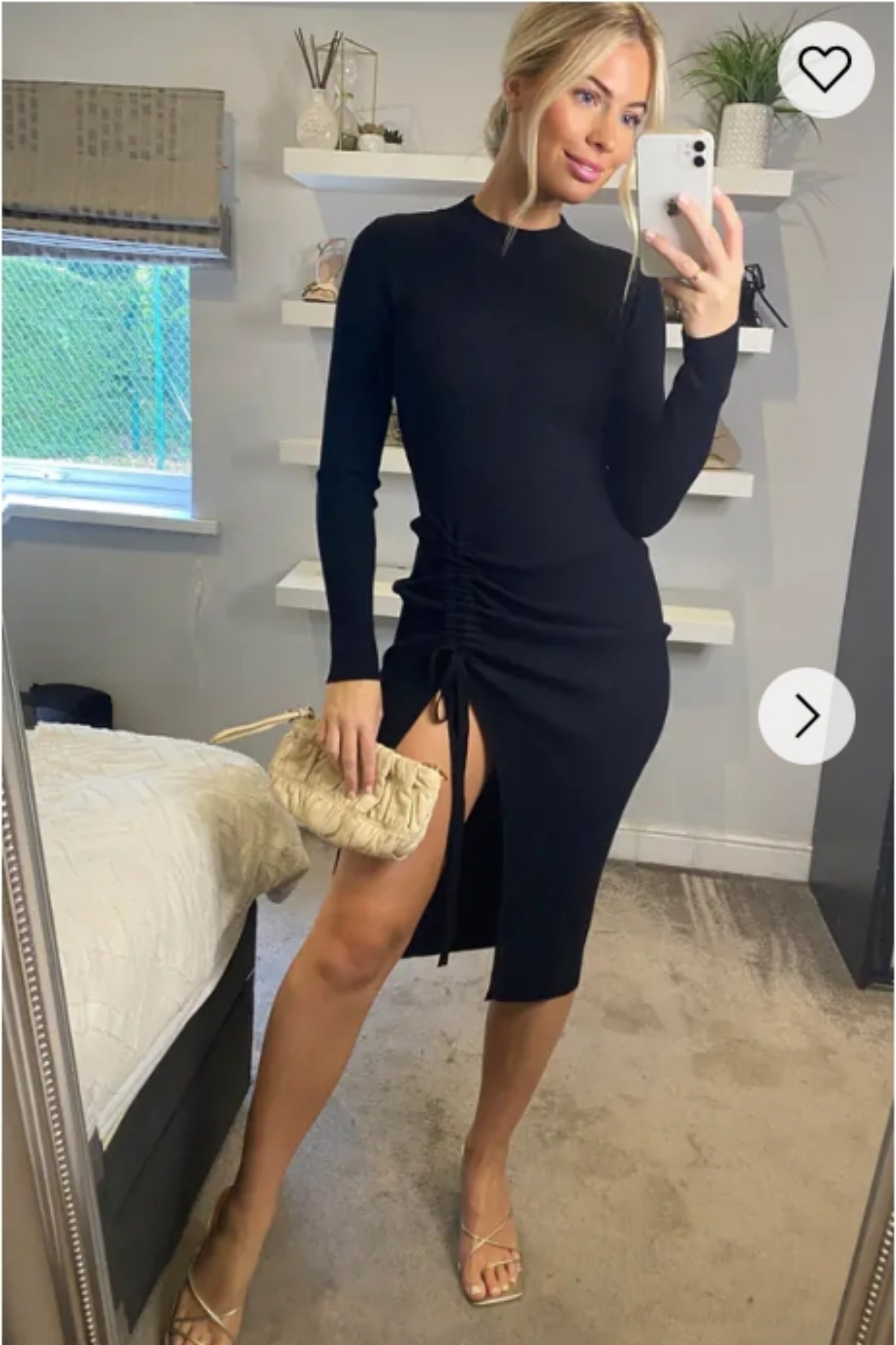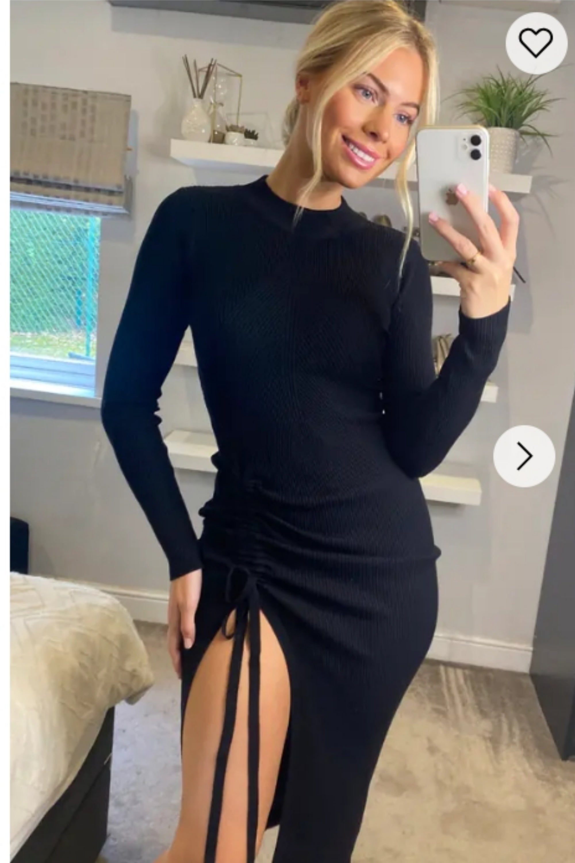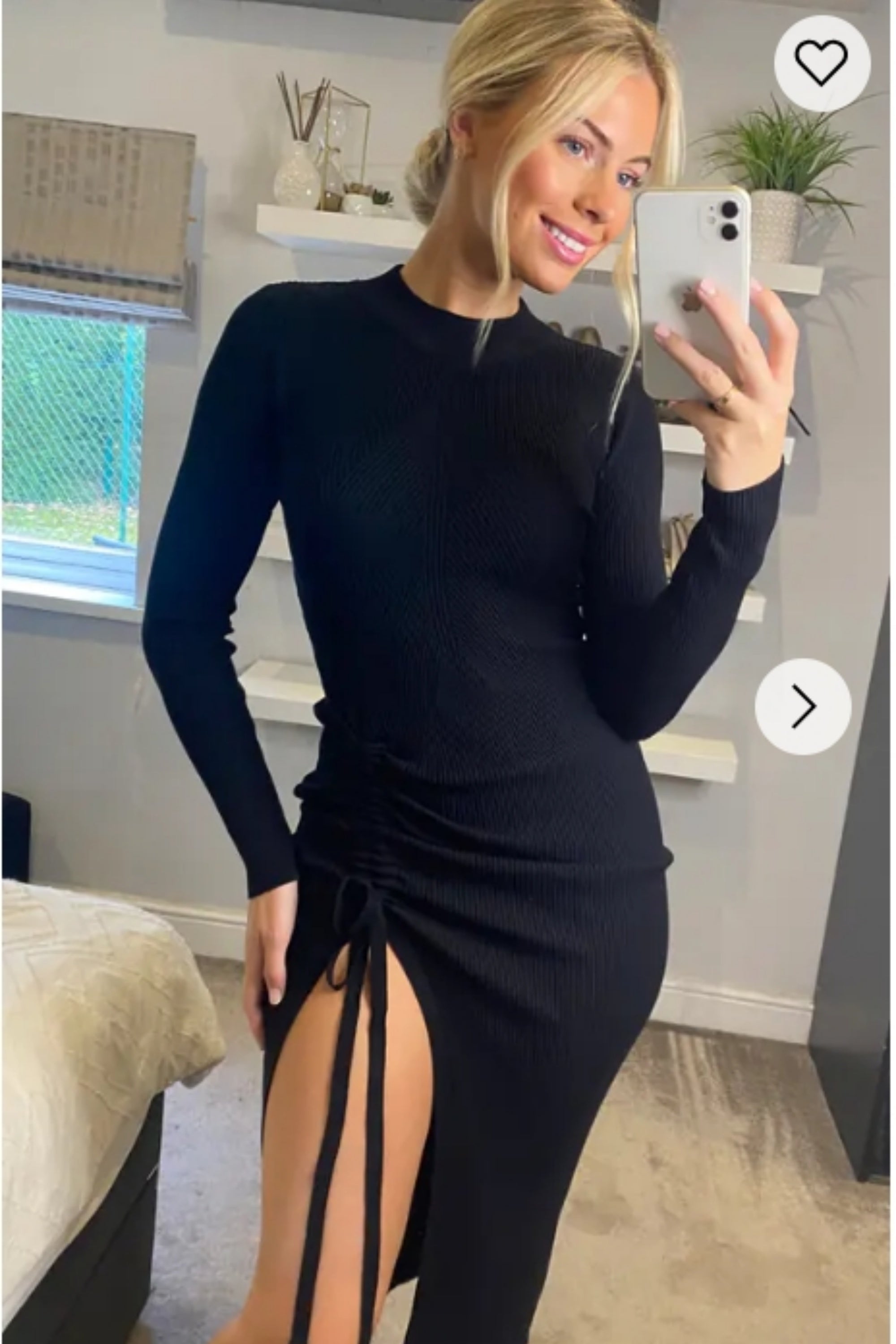 Front Open bodycon knit dress in black