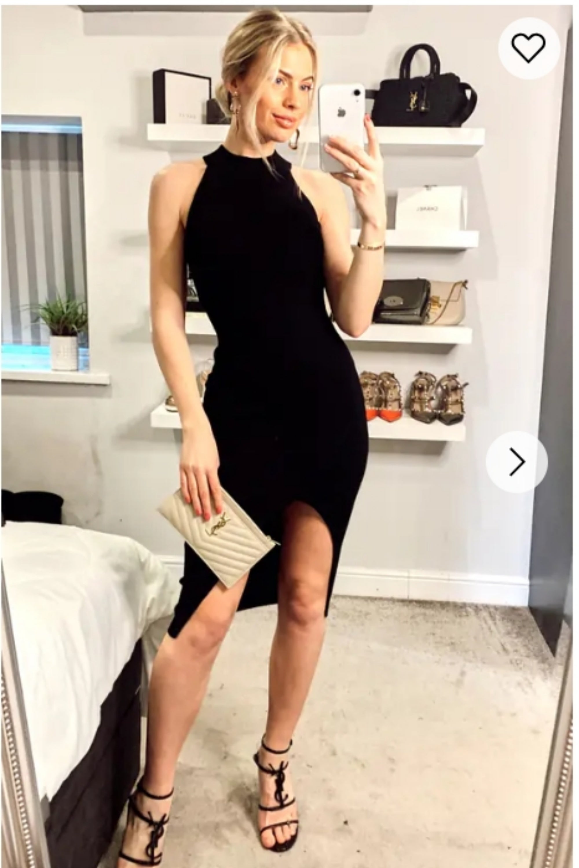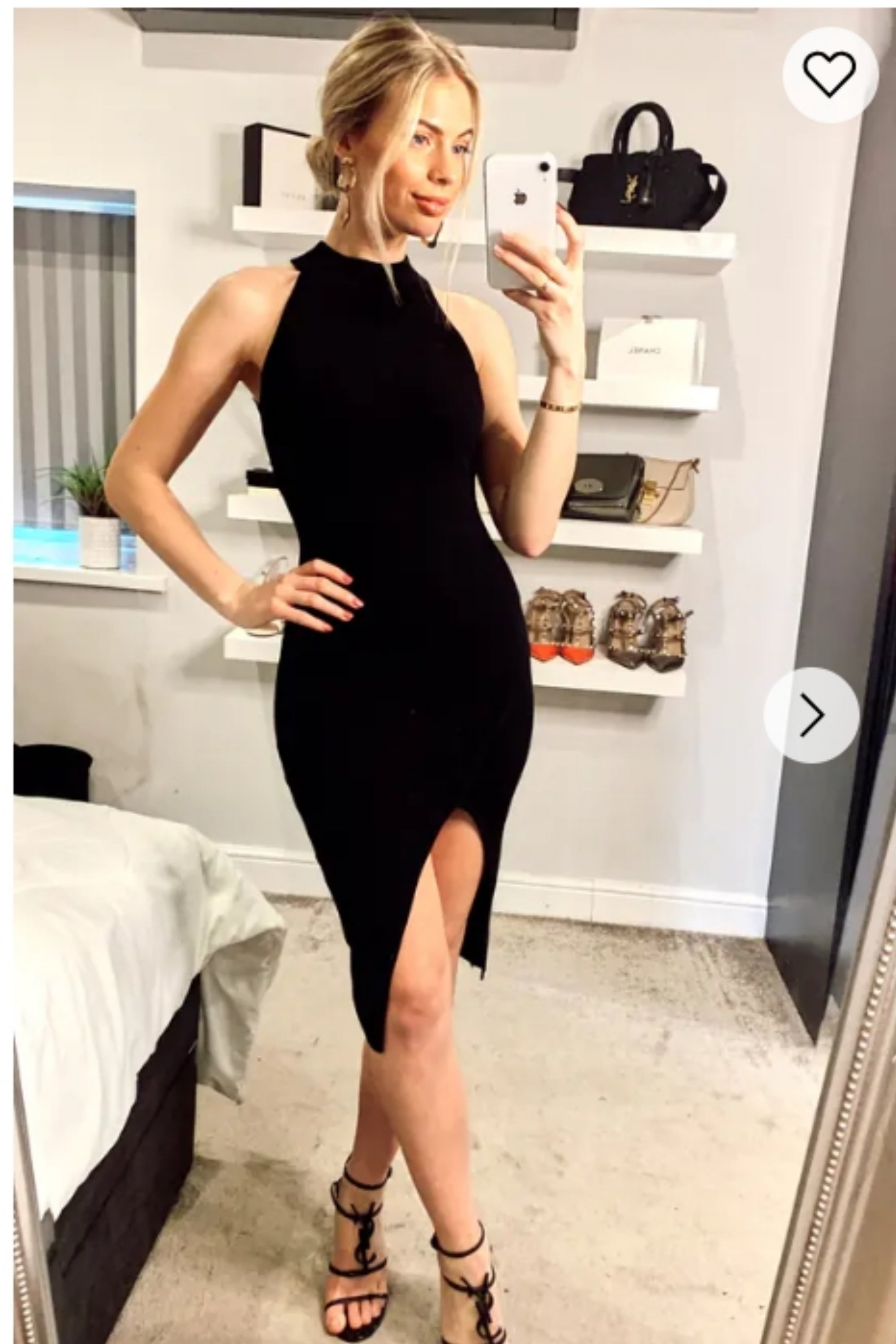 Long sleeves Chain Embellished bodycon dress in black
