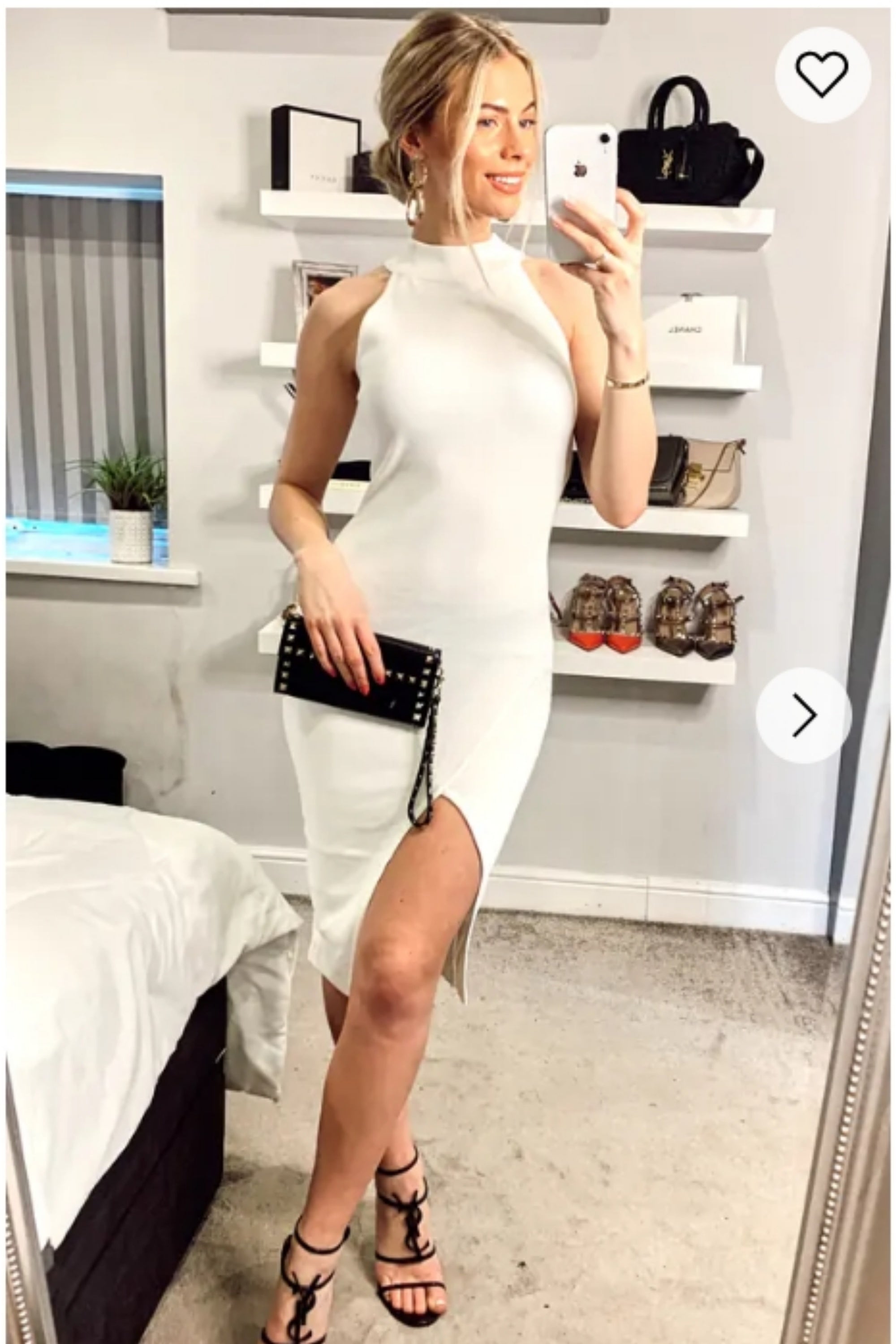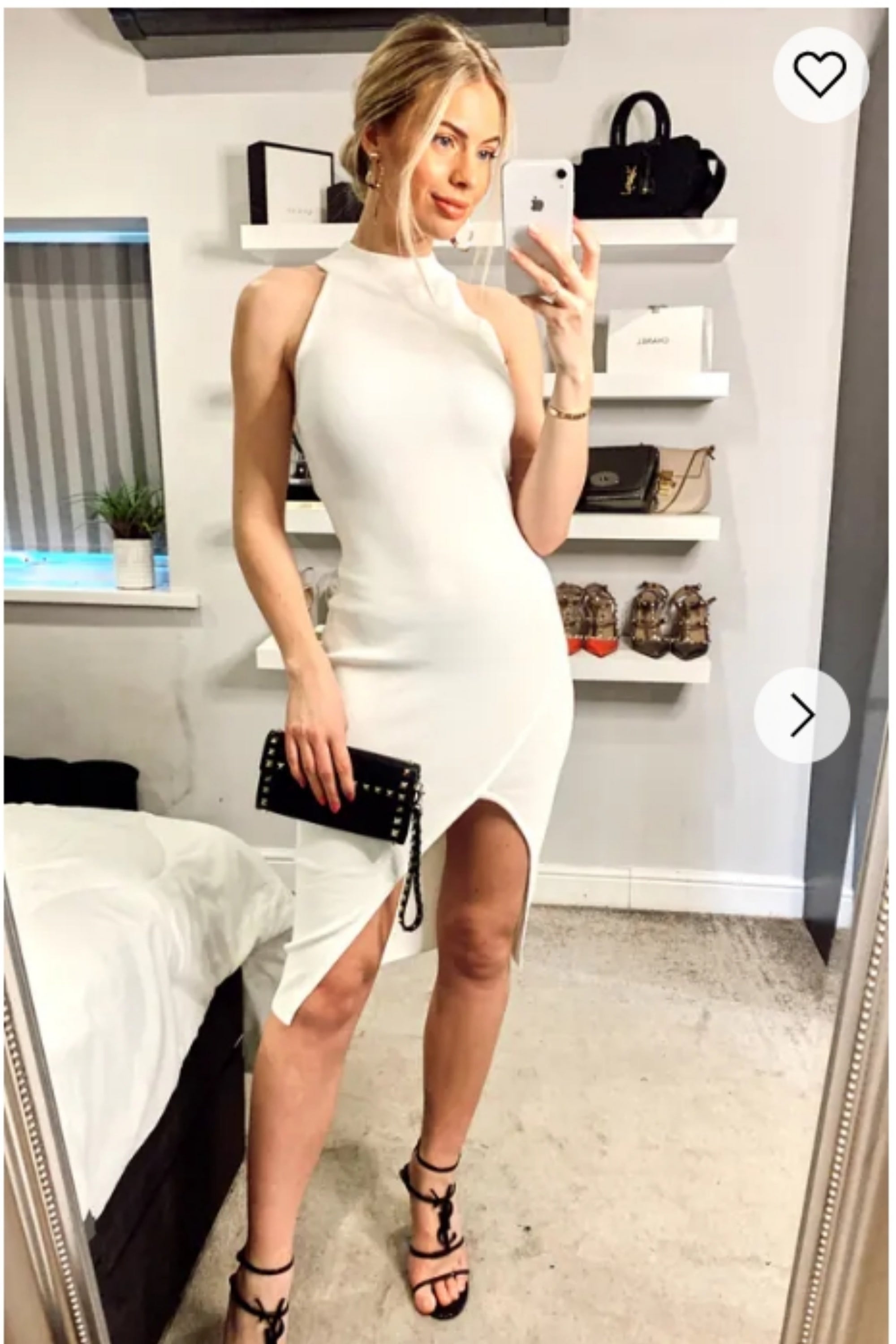 Front Open bodycon knit dress in White