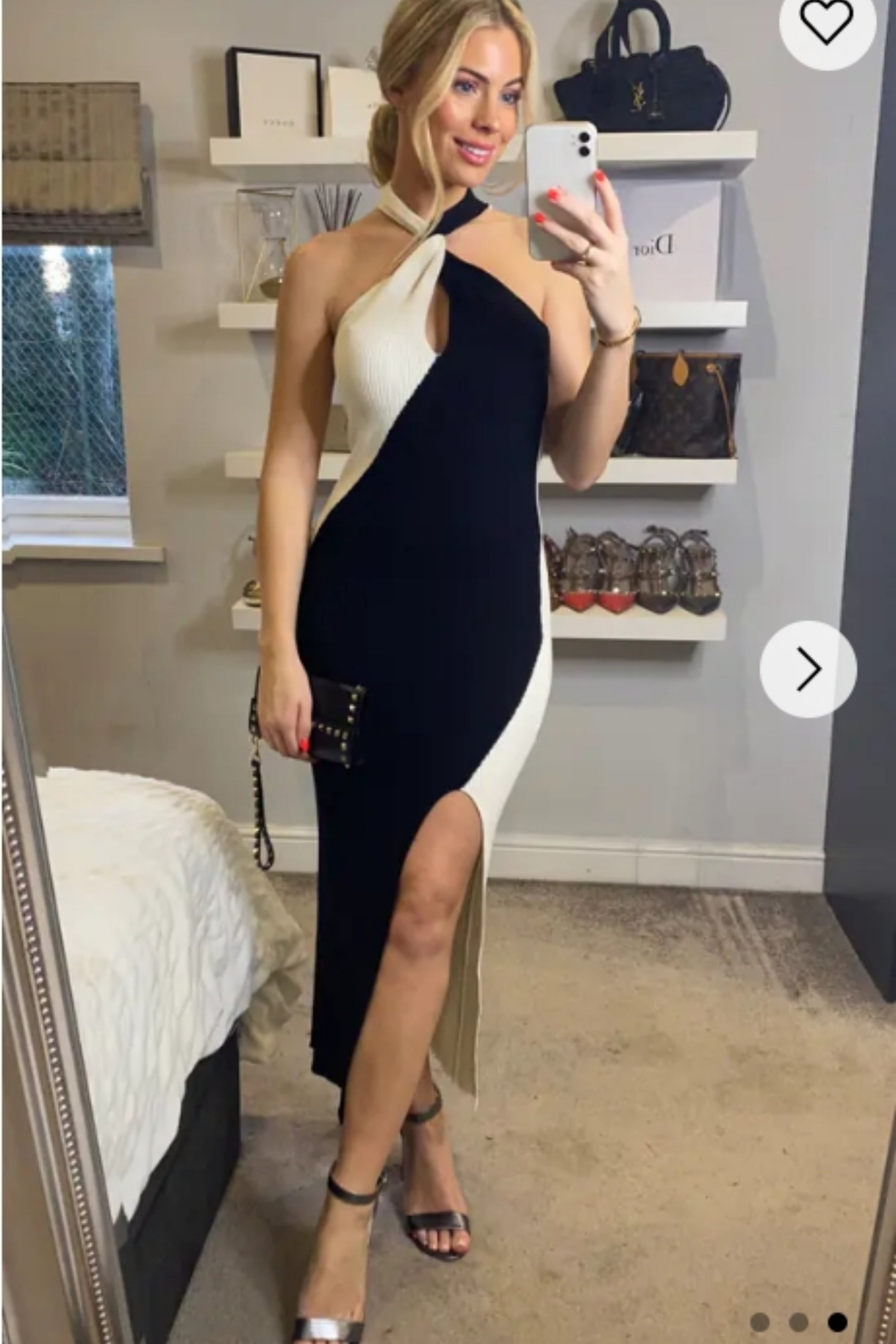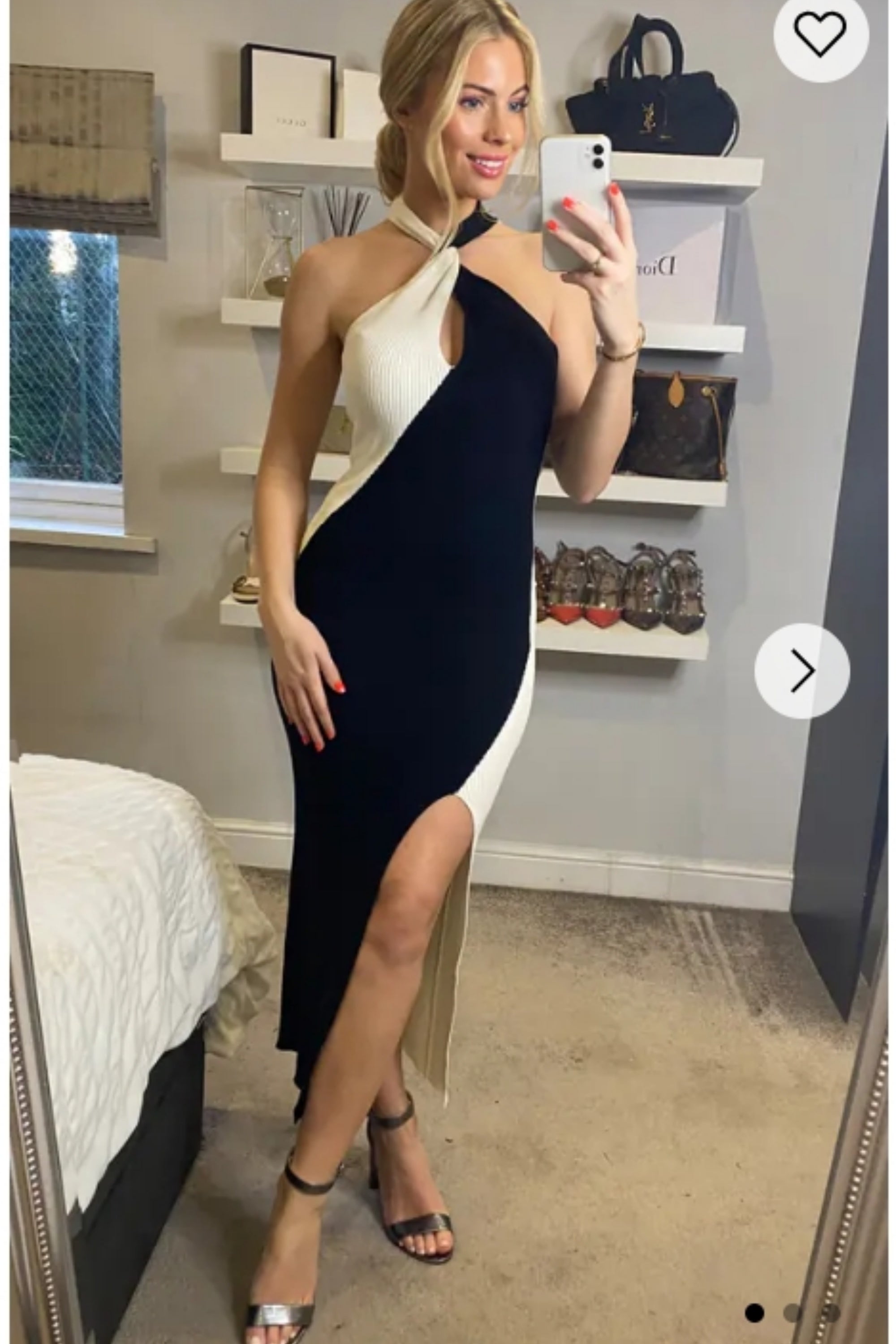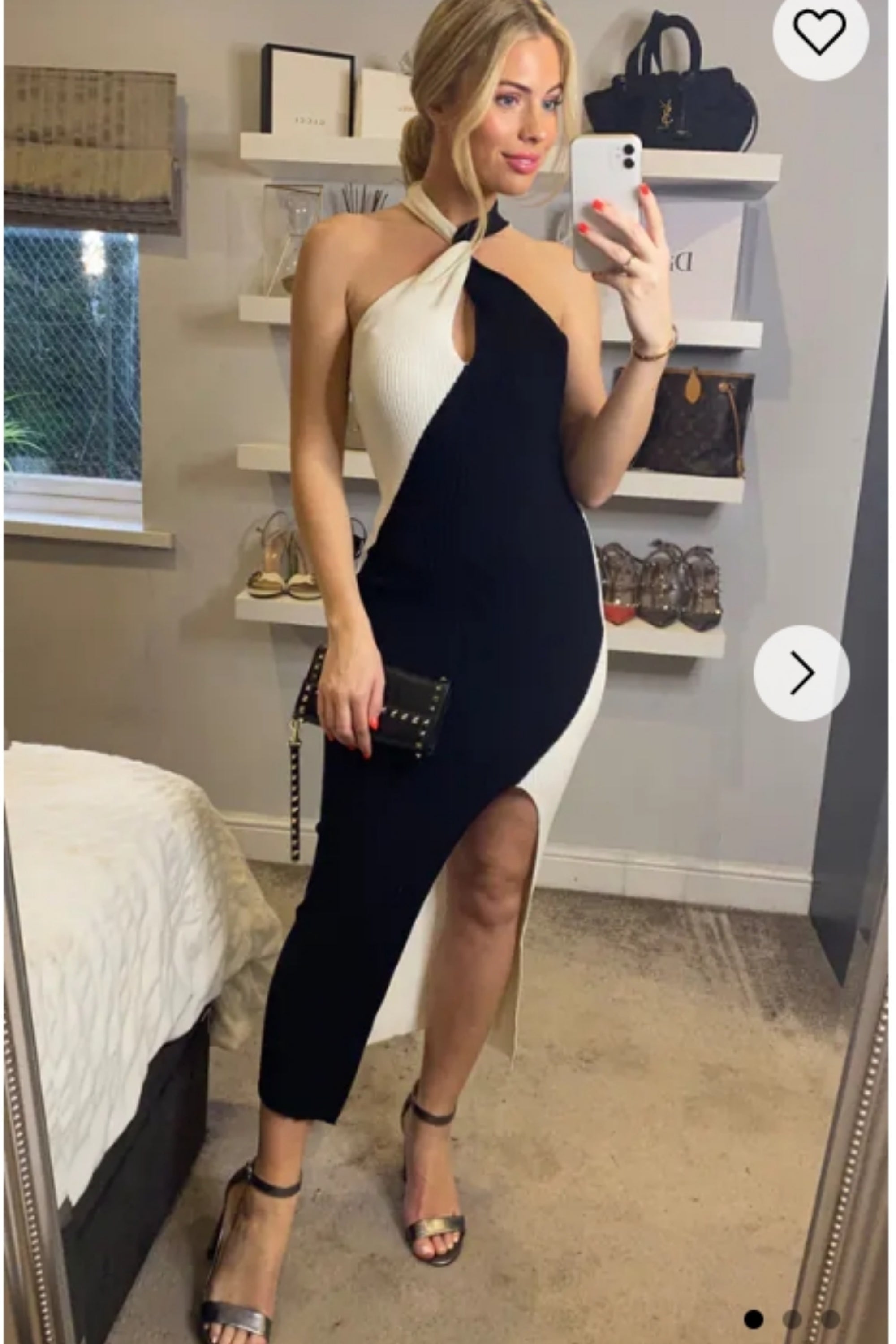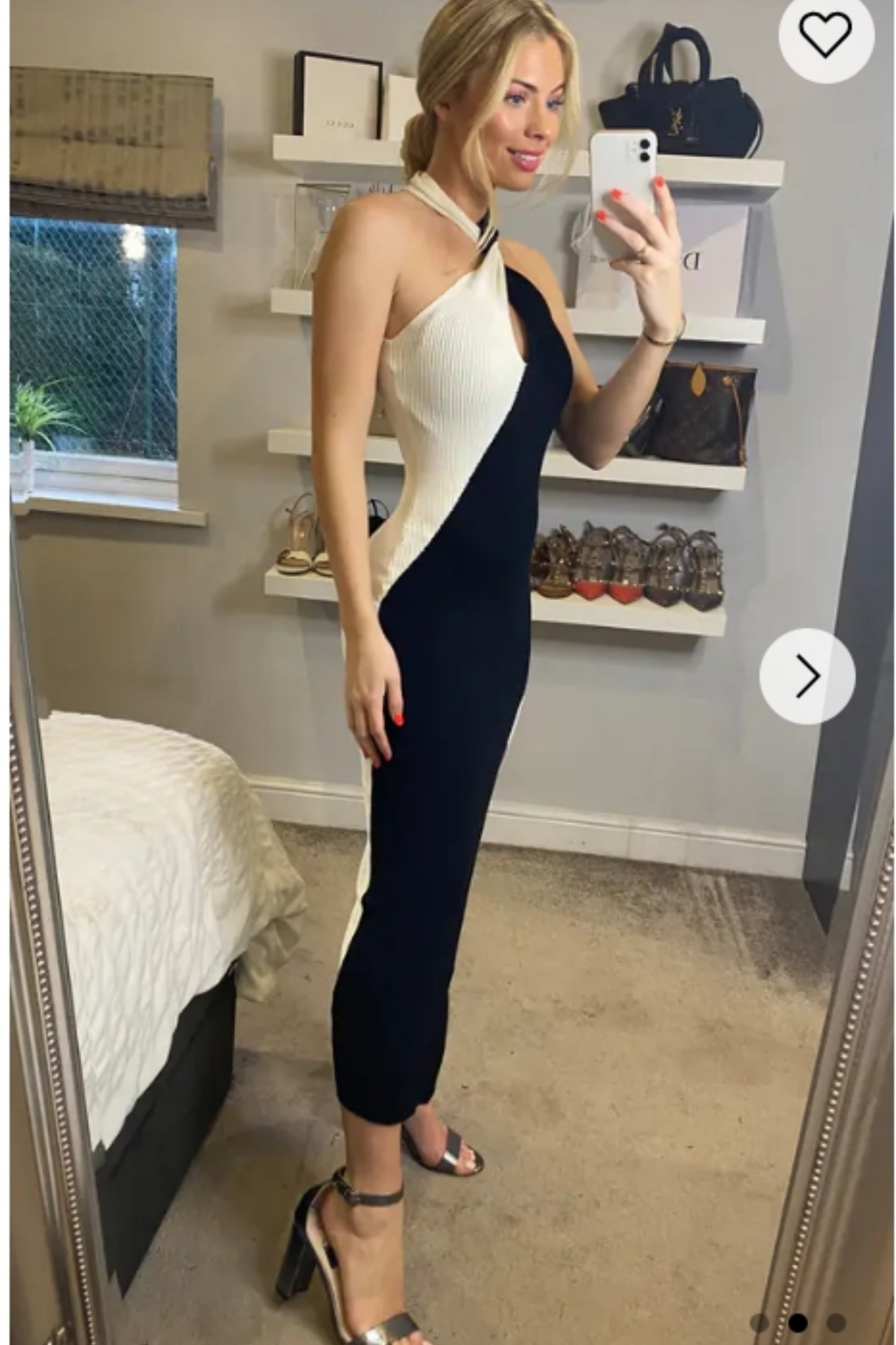 Soft Knitted Ribbed Midi Bodycon twist neck Dress In Black Cream Contrast