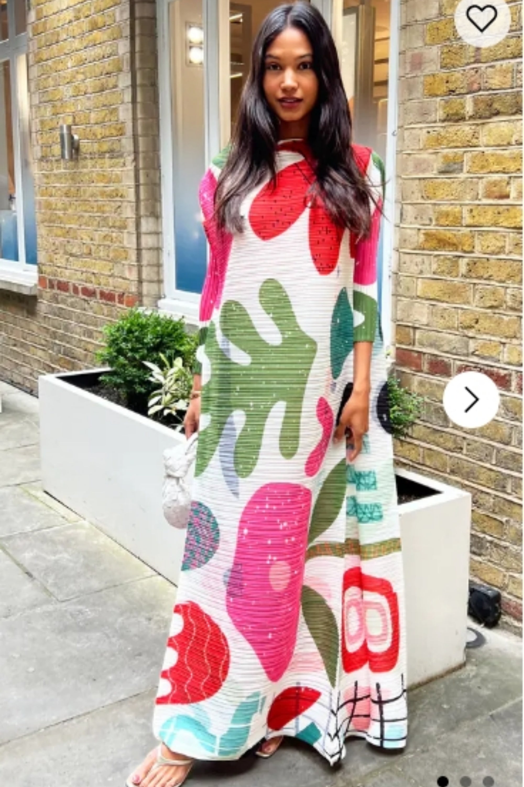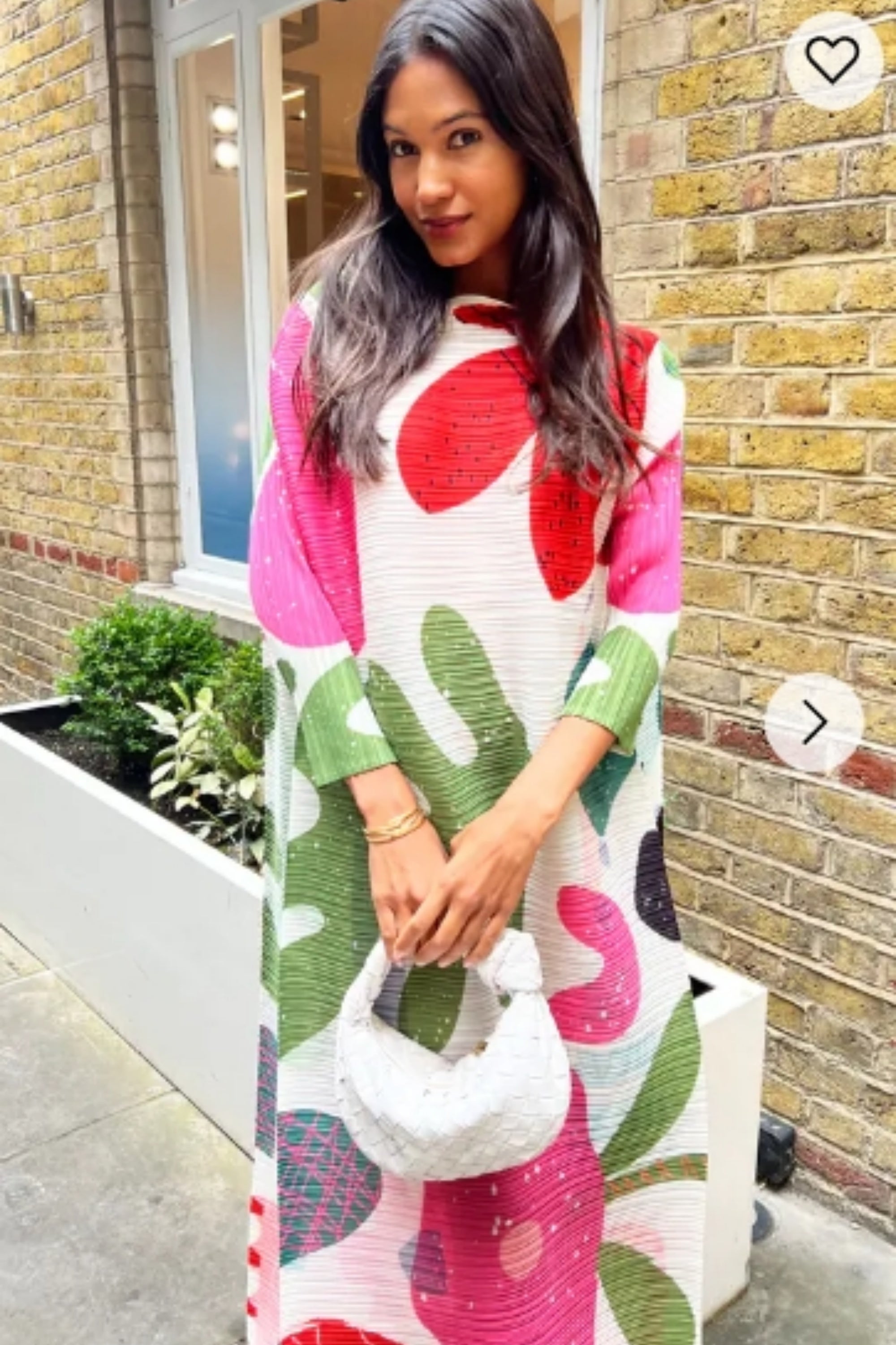 Multi Color Print Pleated Dress in three quarter sleeves in floral print