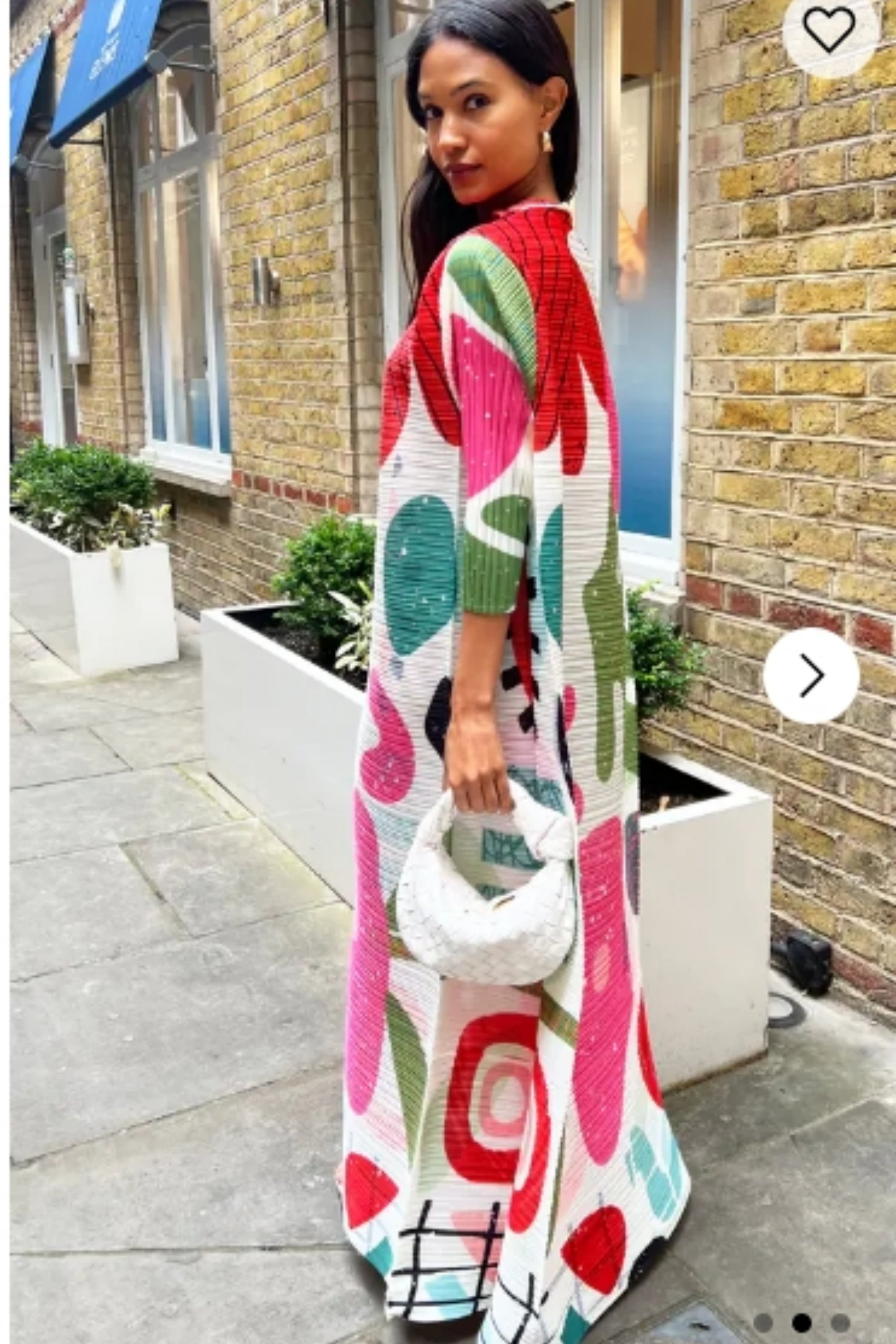 Metallic Print Pleated Dress in Kimono sleeves in Sliver