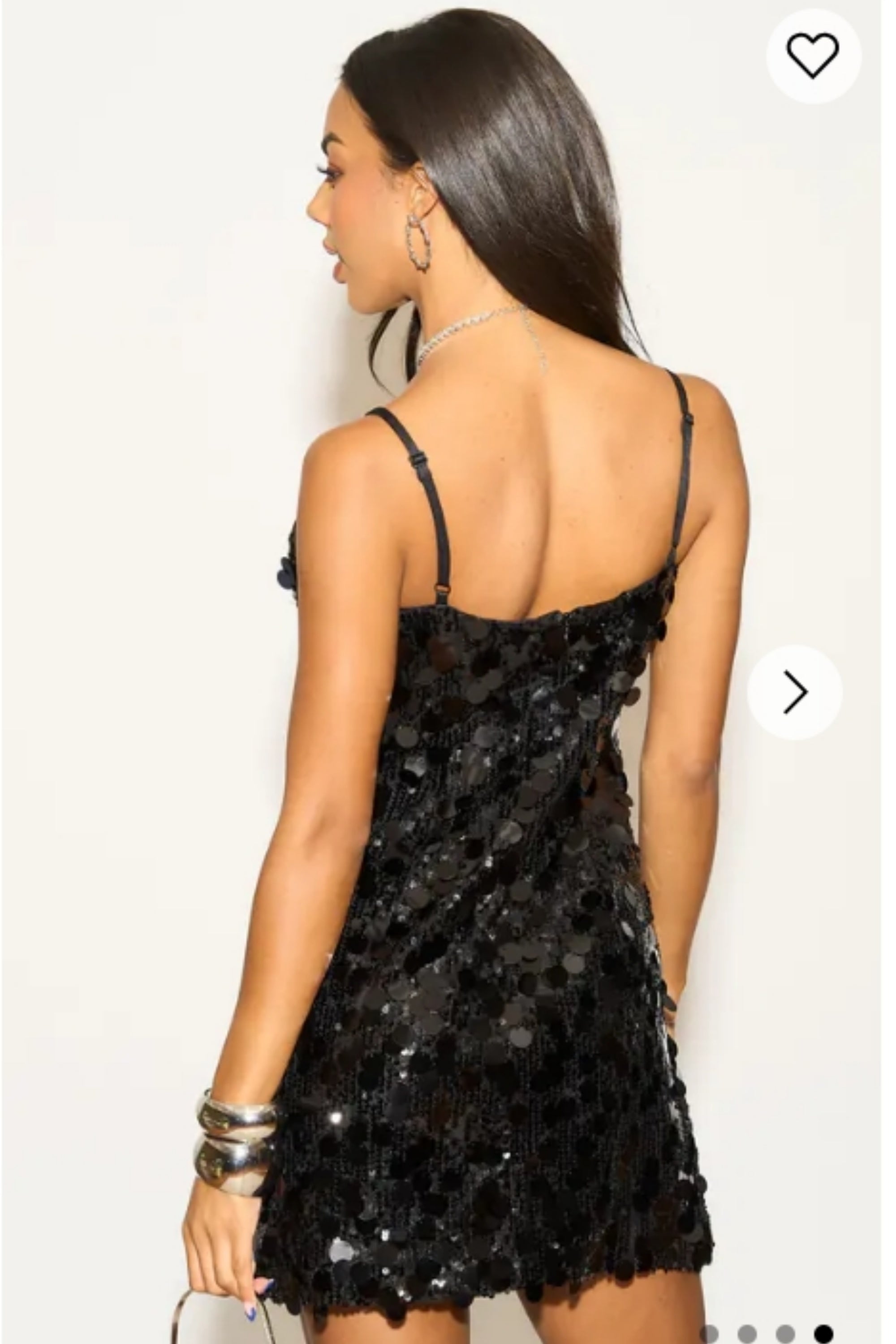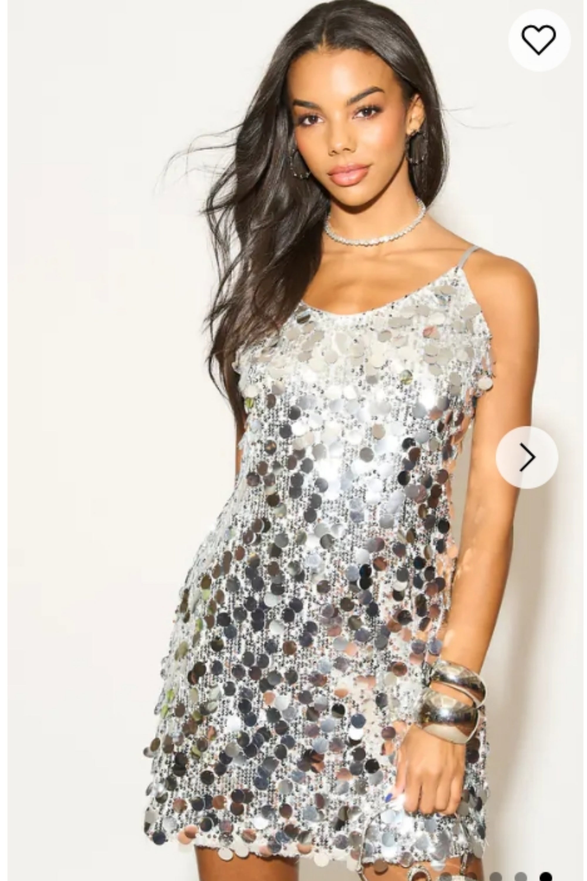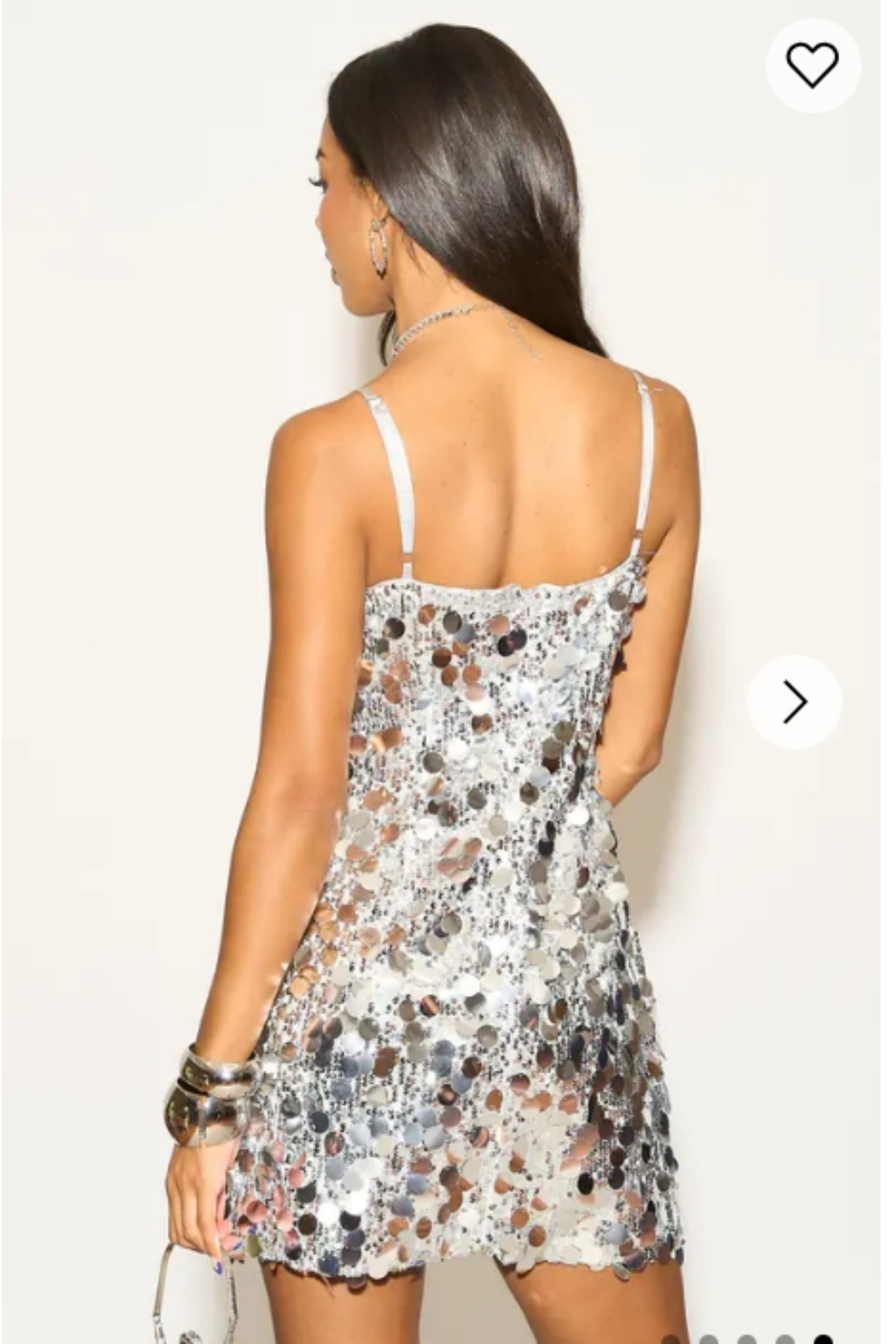 Circle Disc Sequin Strappy Short Dress in Sliver