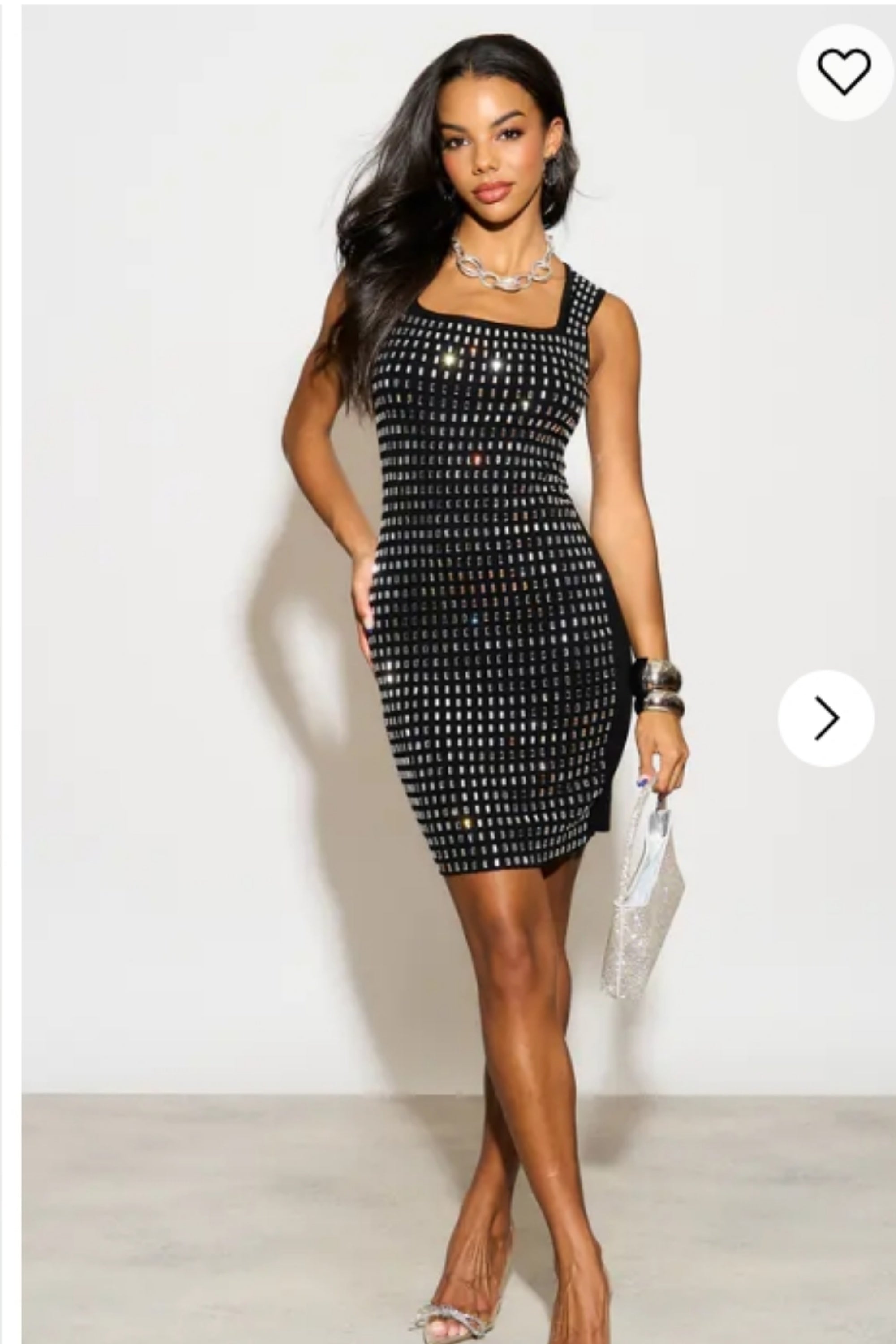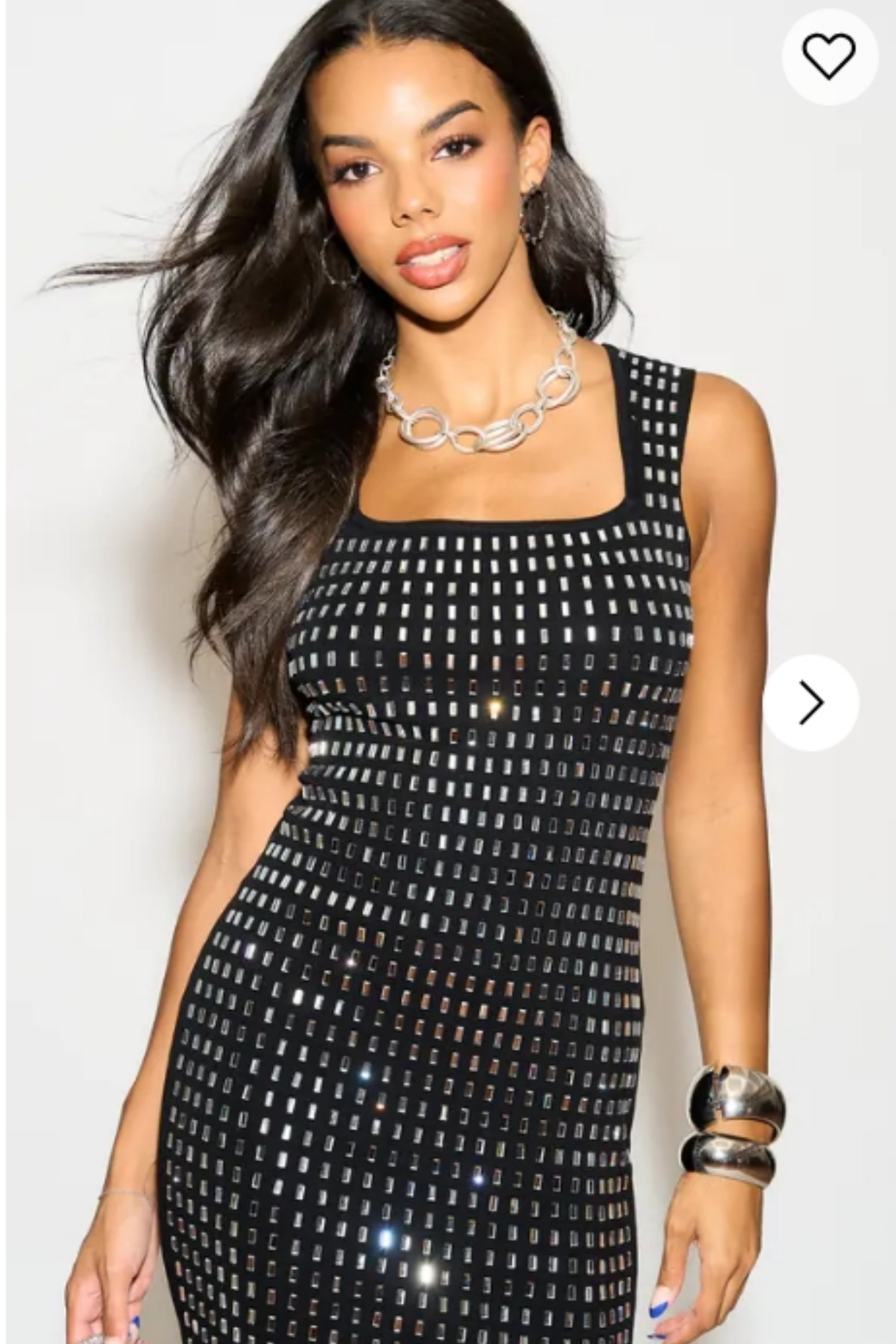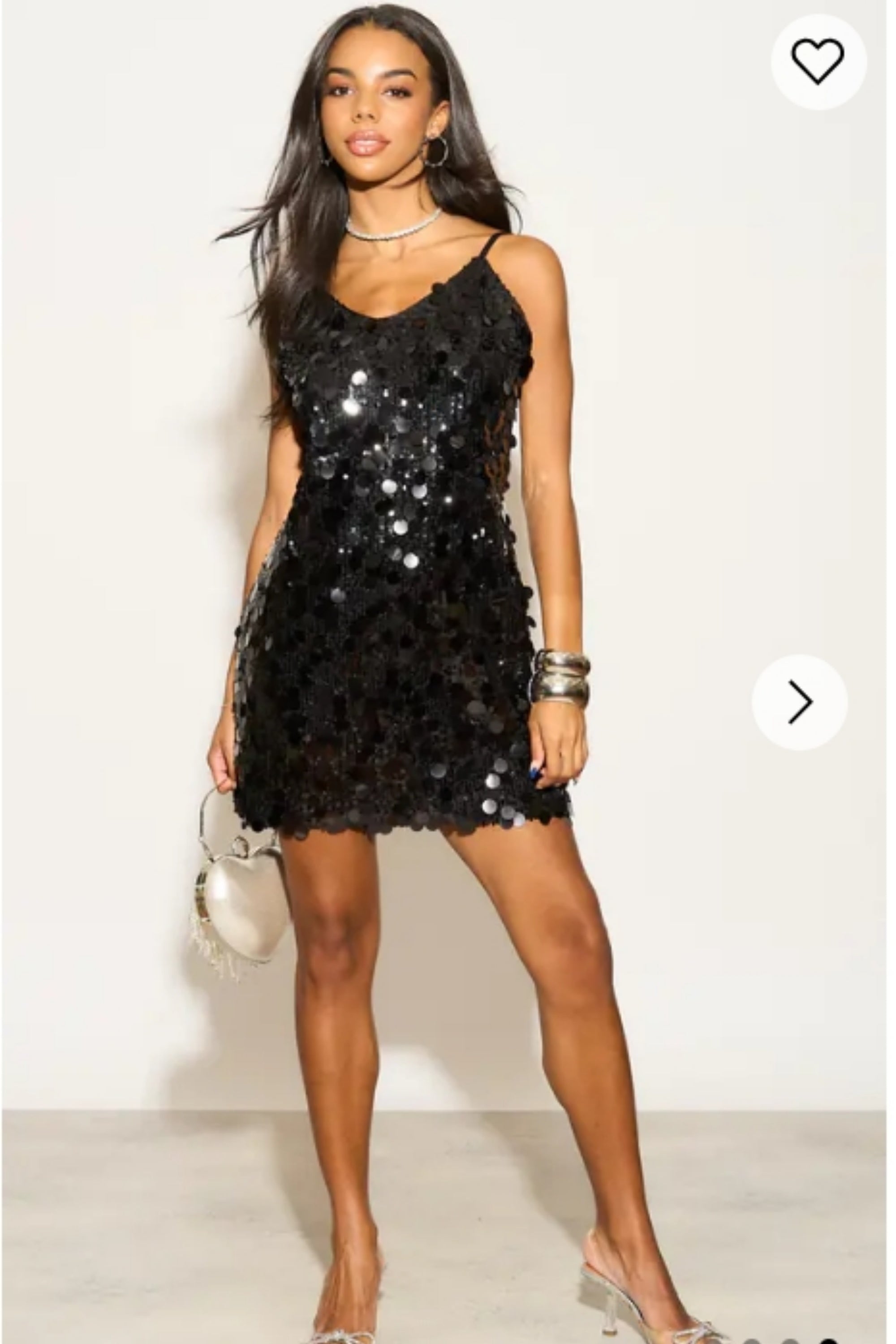 Circle Disc Sequin Strappy Short Dress in Sliver