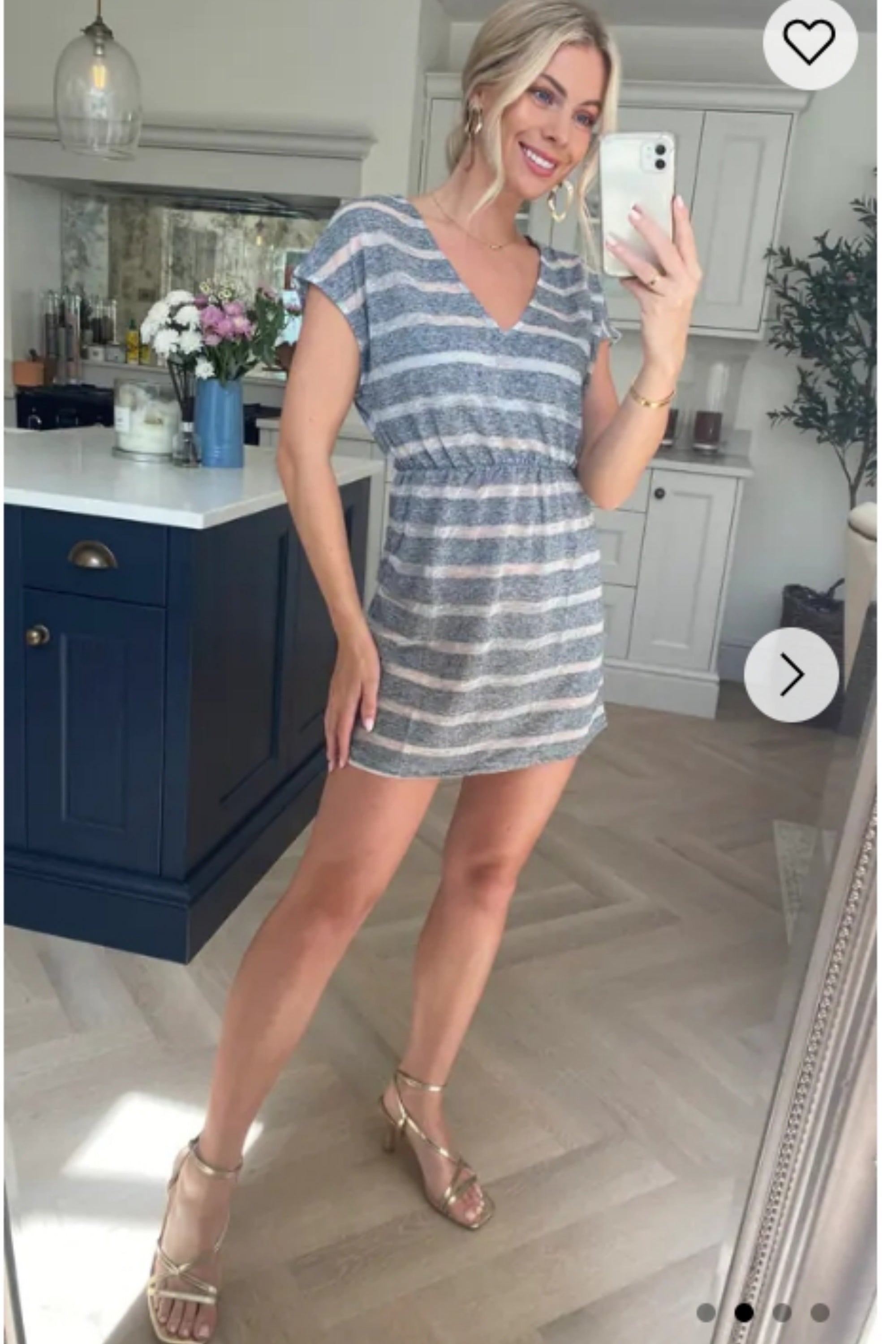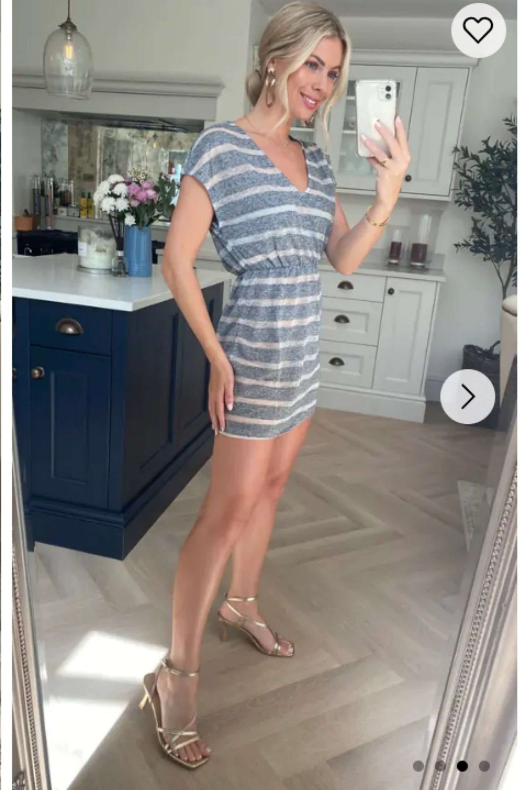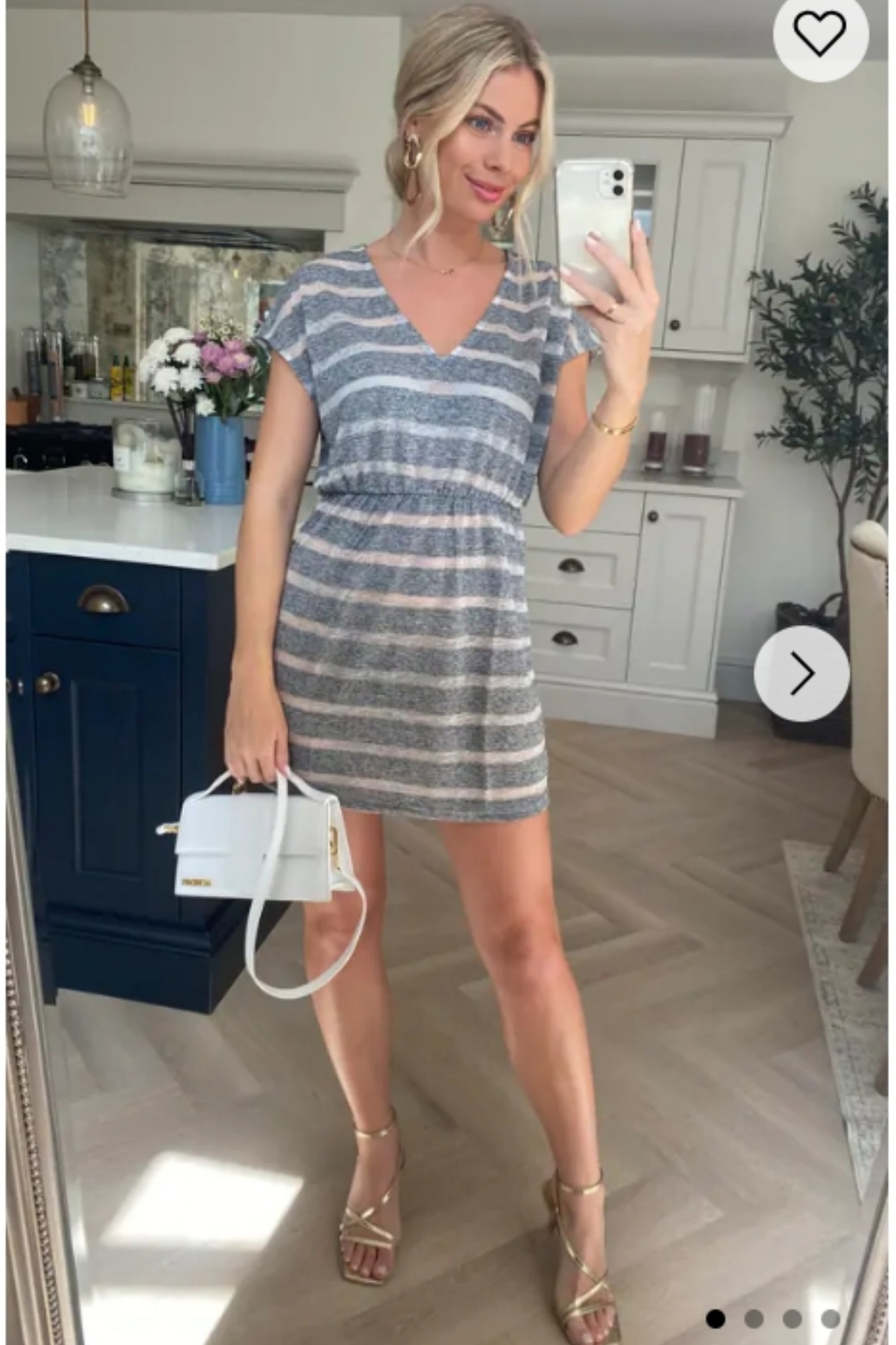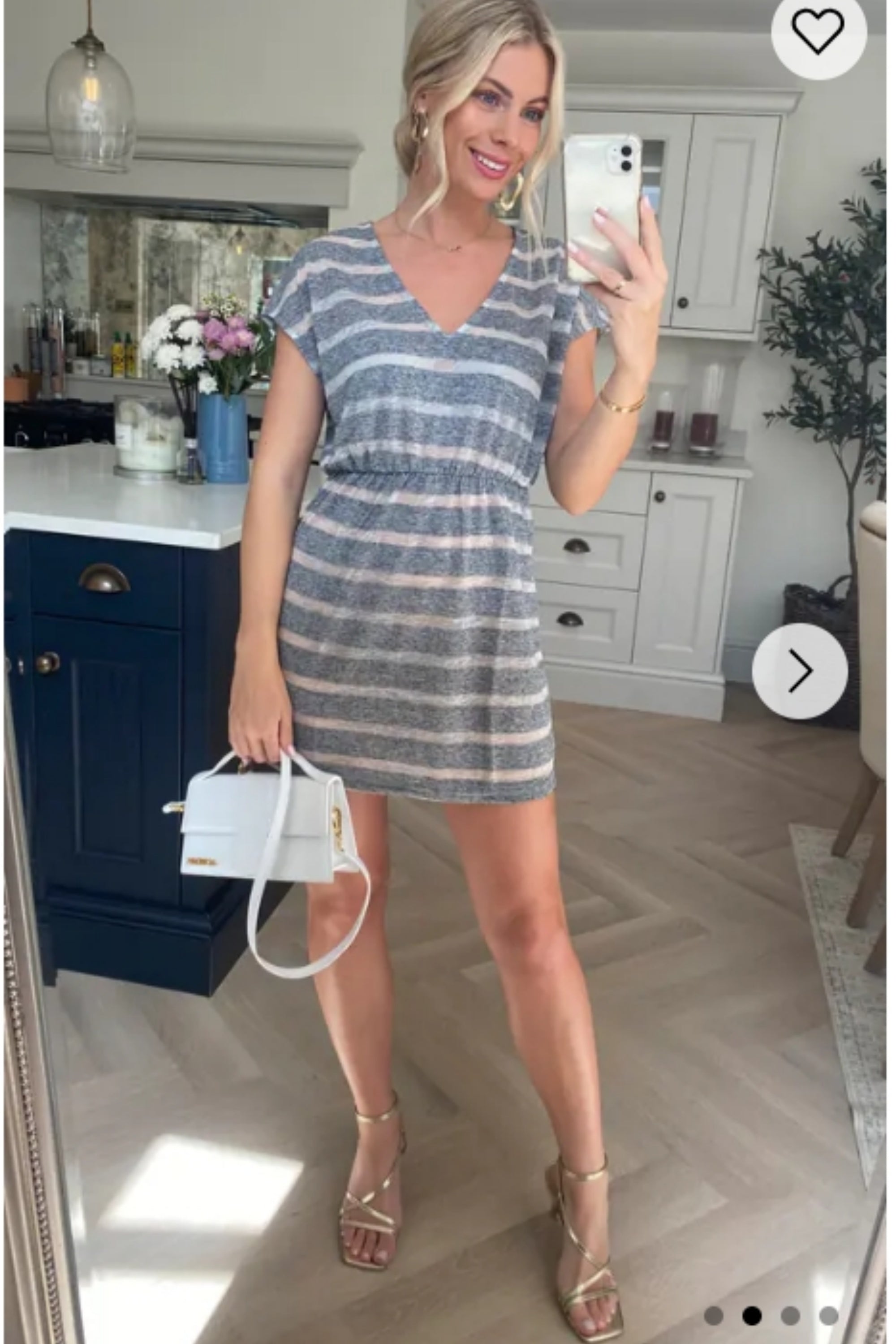 Short Sleeve V Neck Mini Dress In Grey Stripe