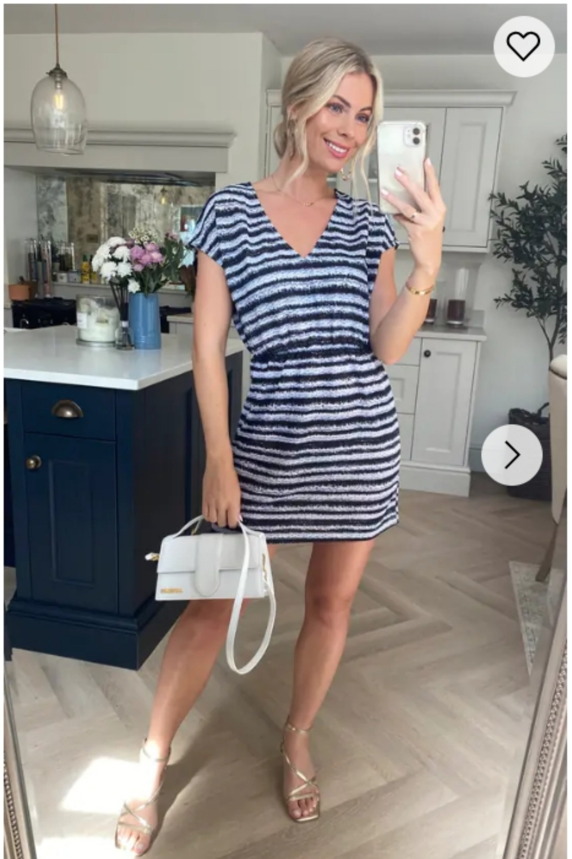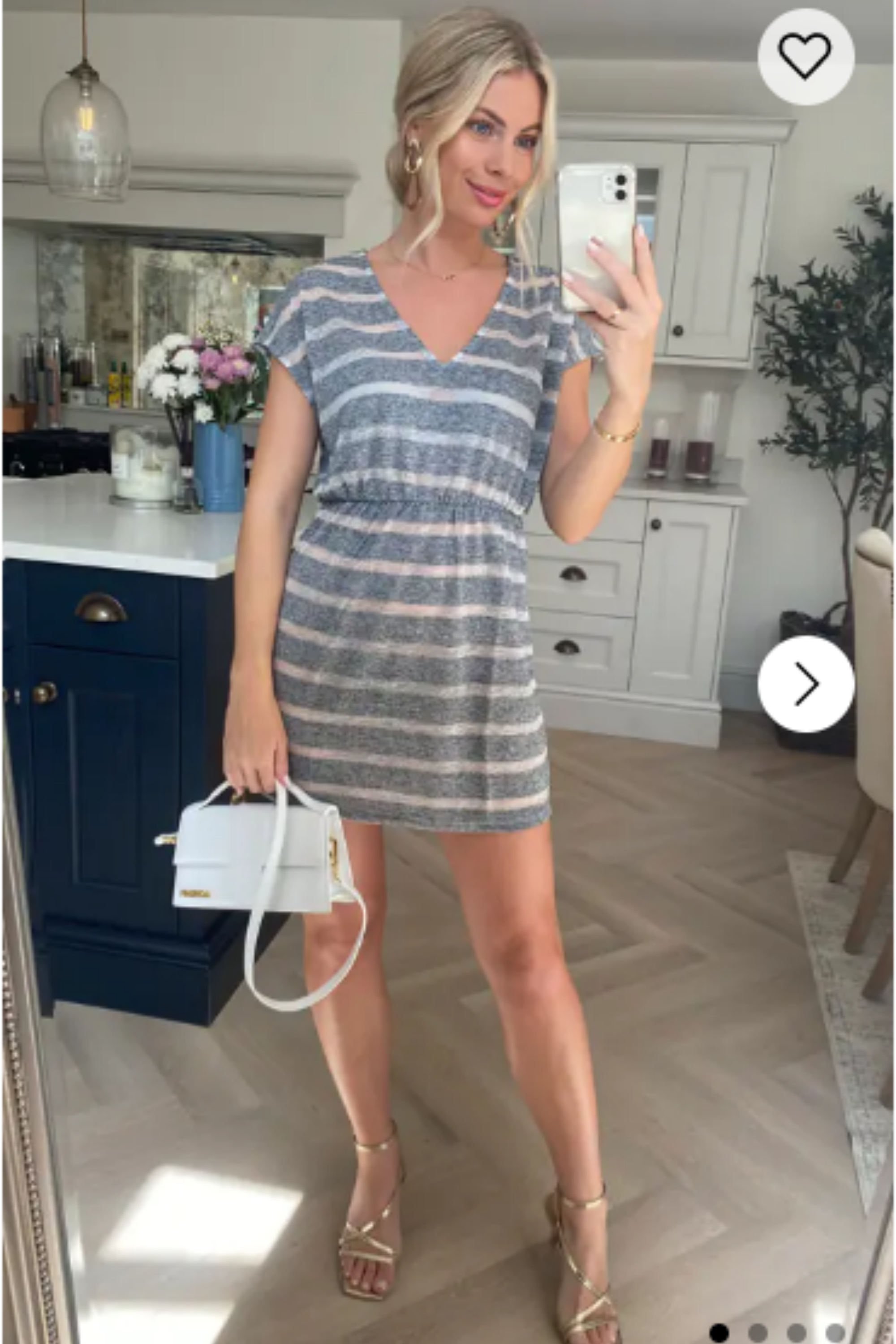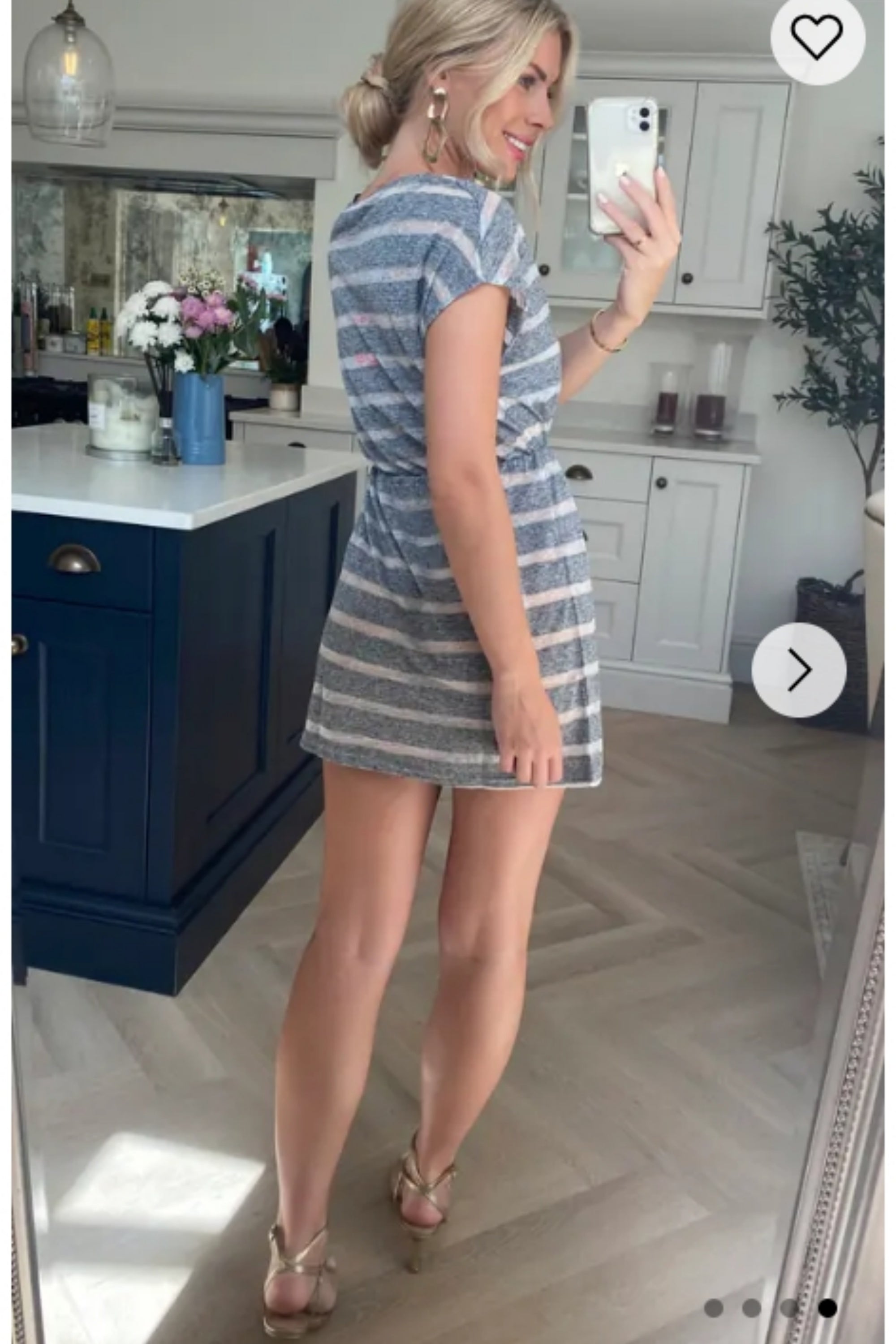 Short Sleeve V Neck Mini Dress In Grey Stripe