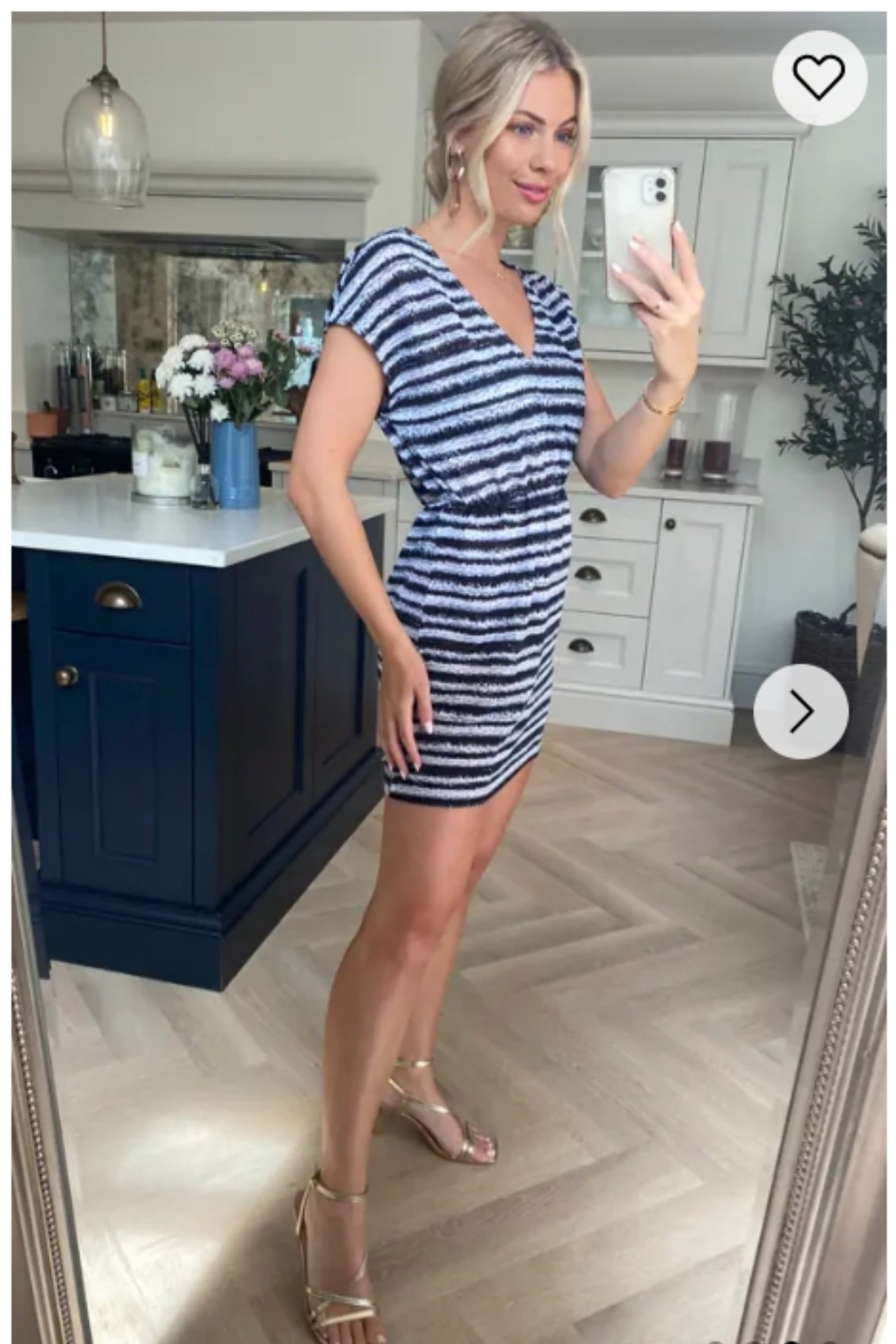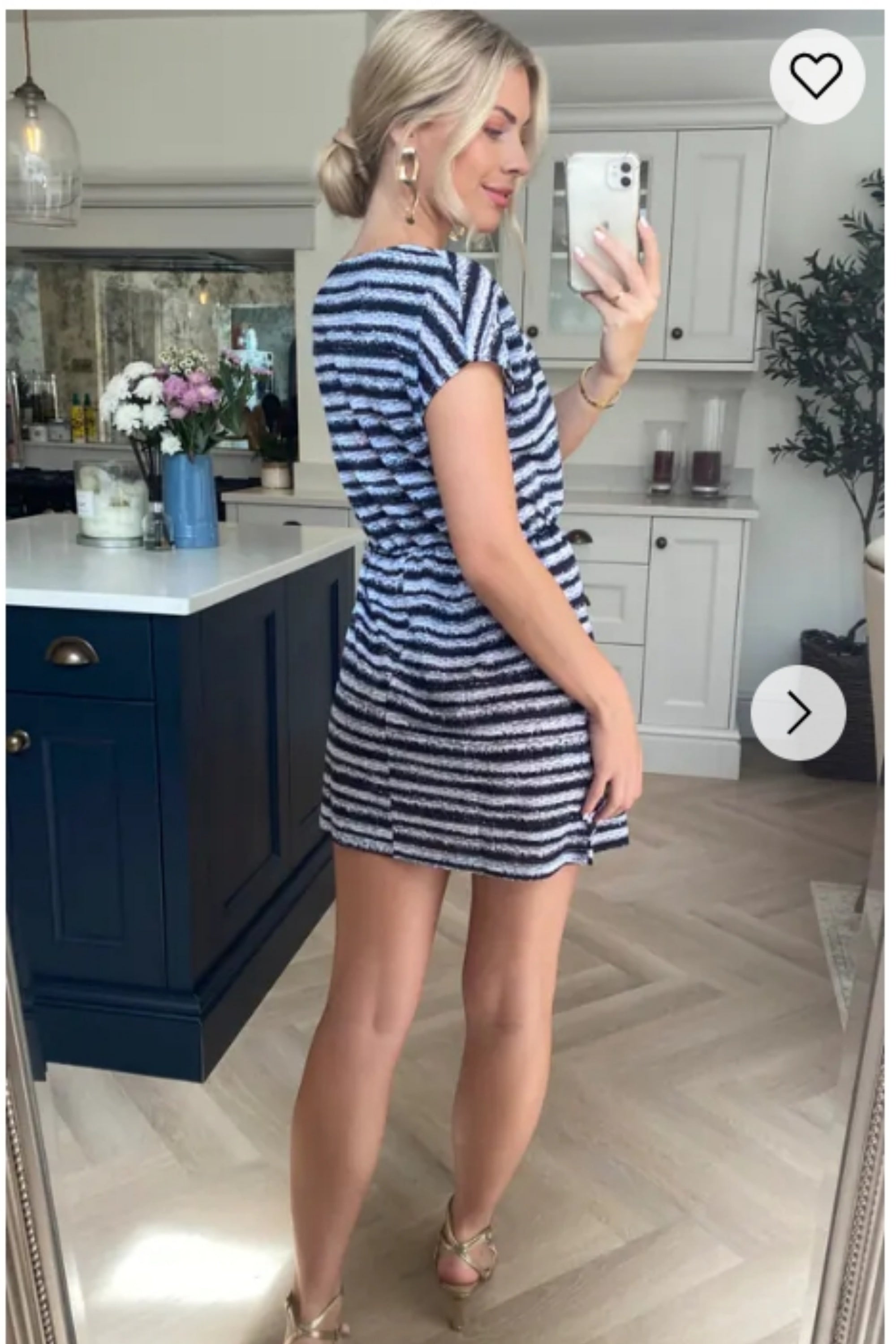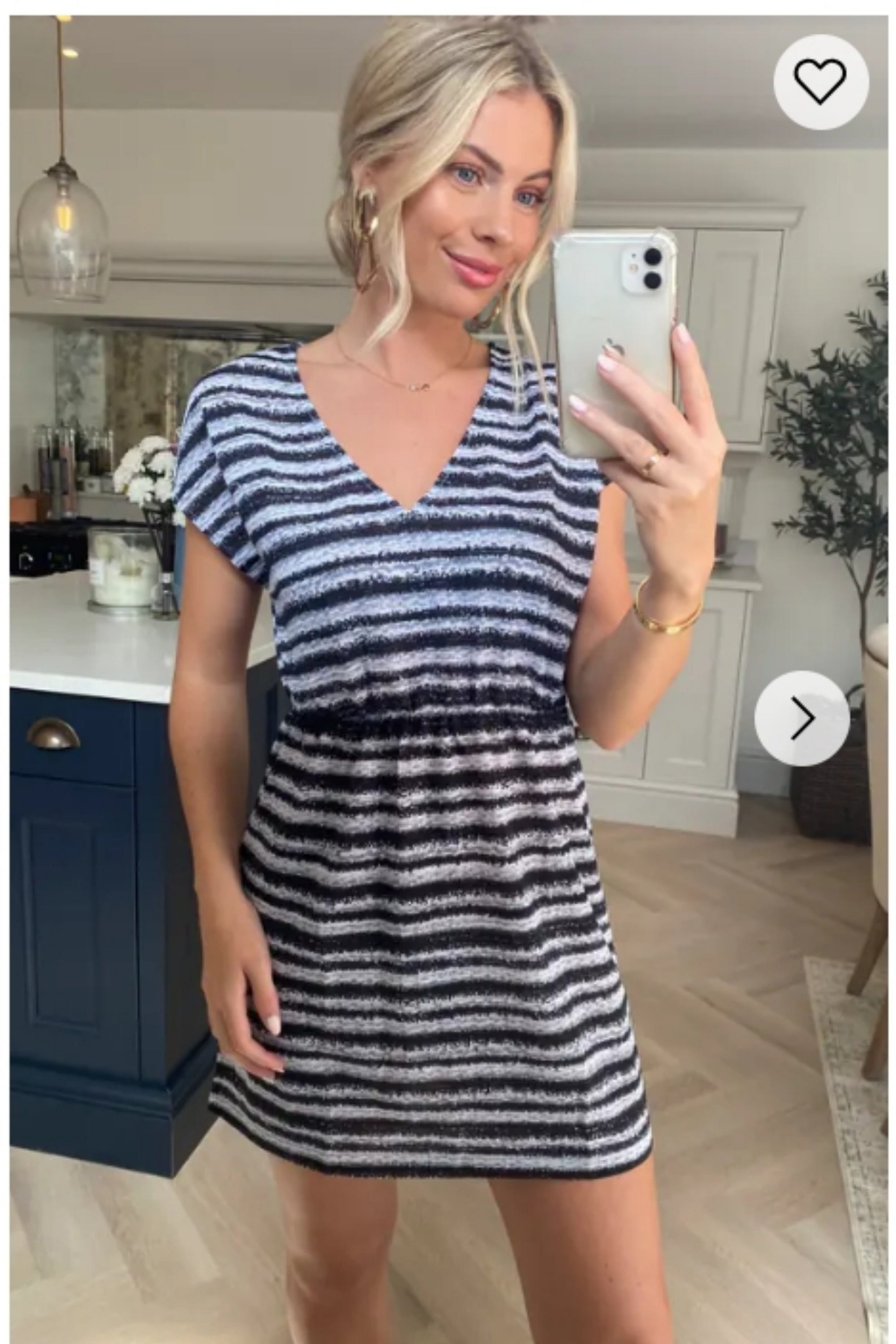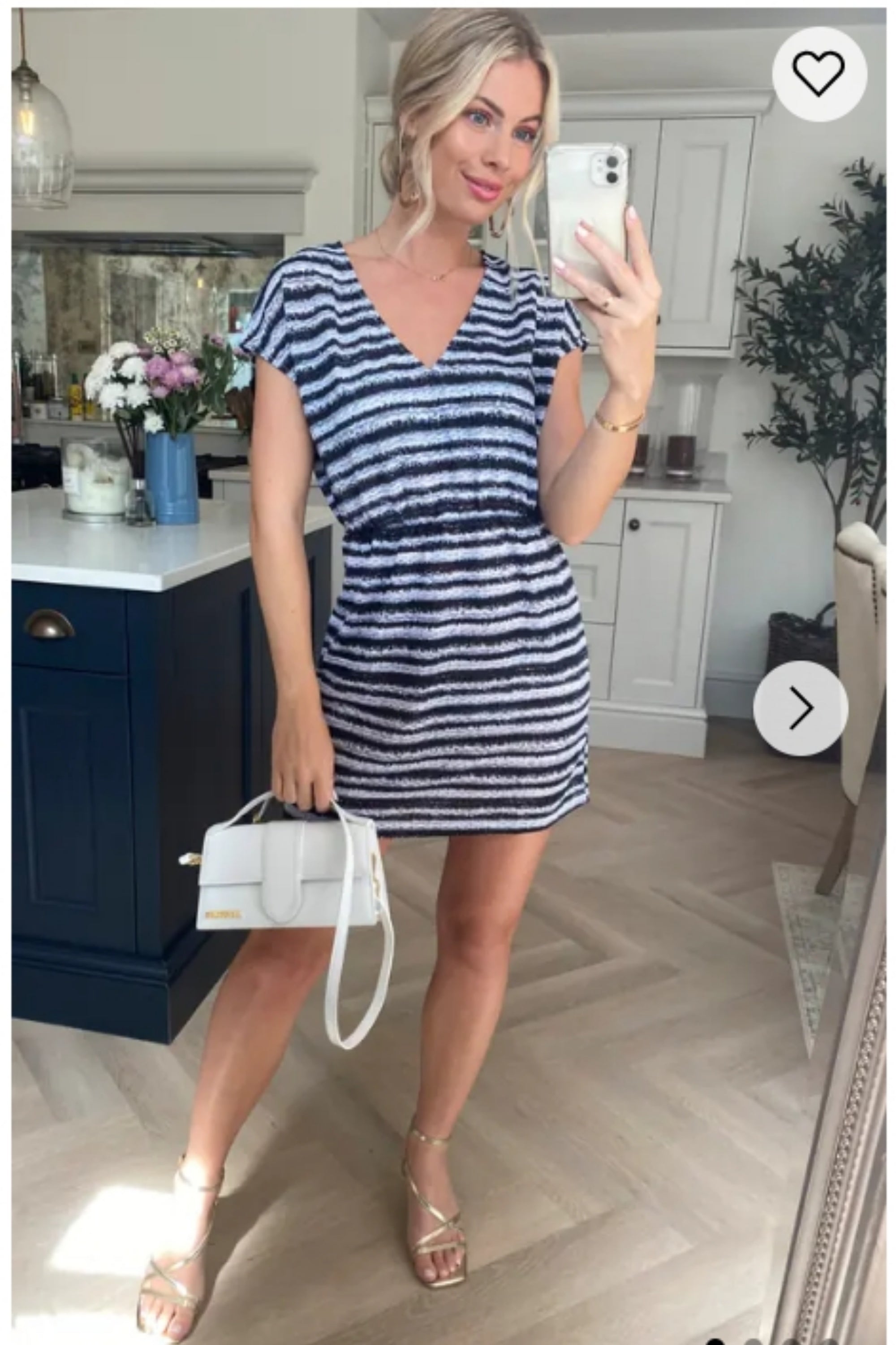 Short Sleeve V Neck Mini Dress In Grey Stripe