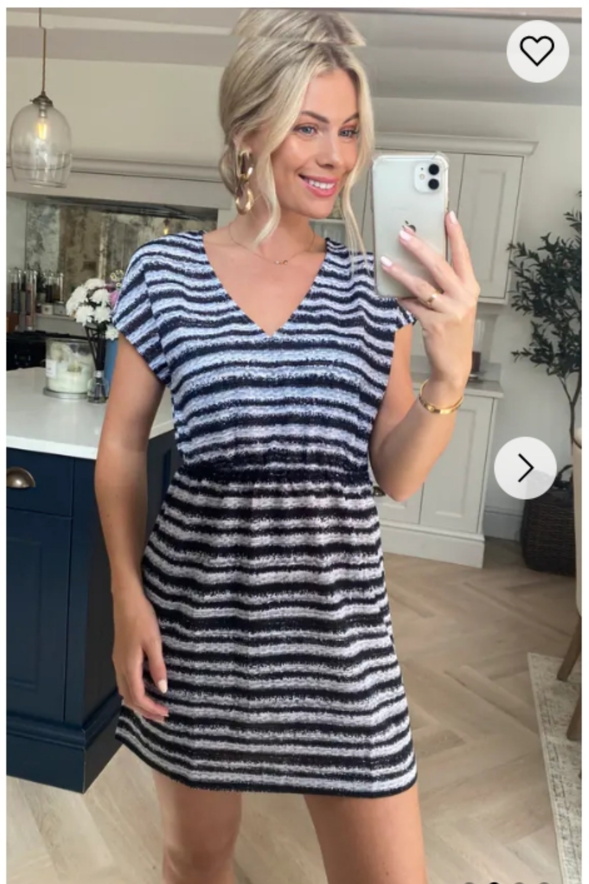 Short Sleeve V Neck Mini Dress In Black Stripe