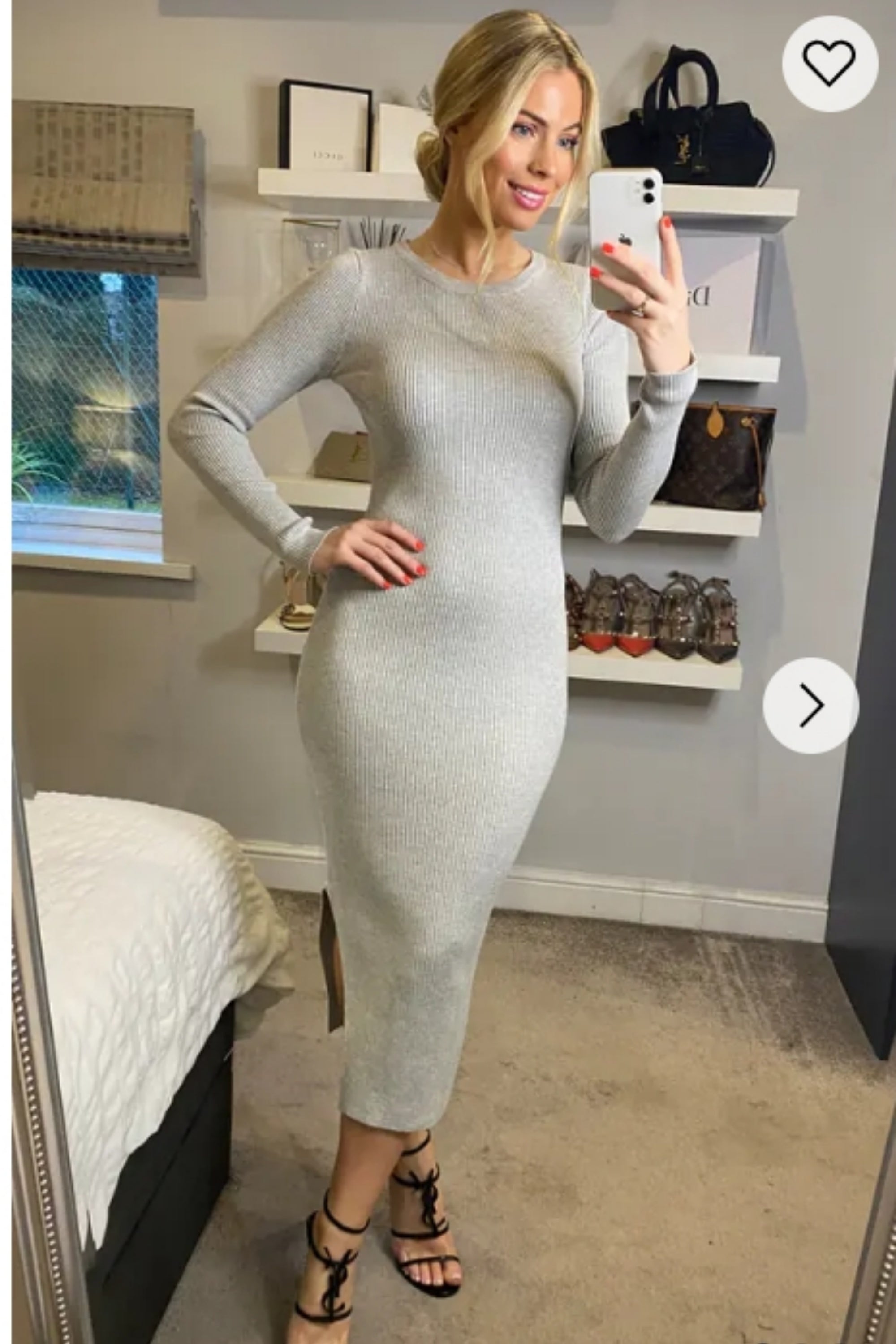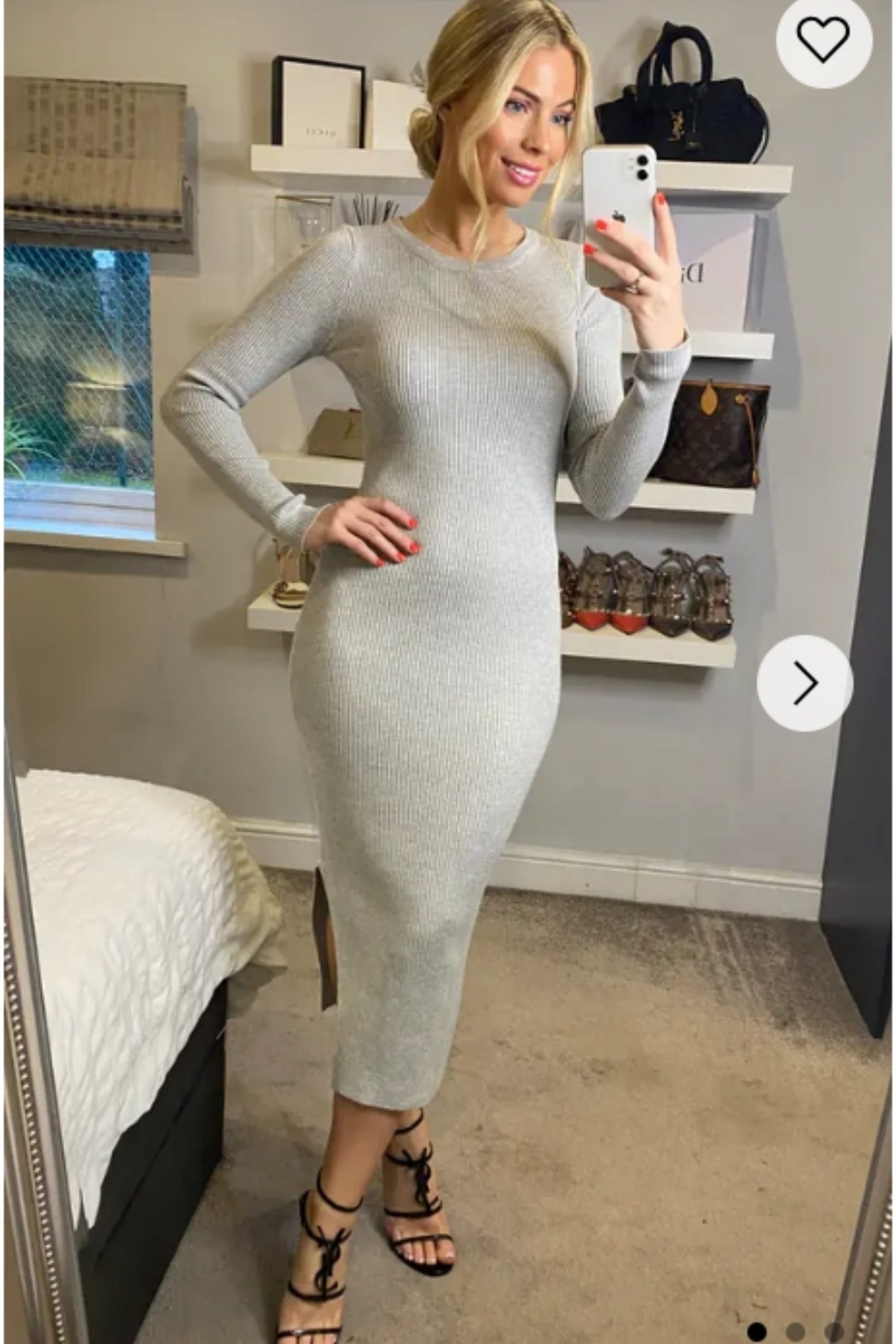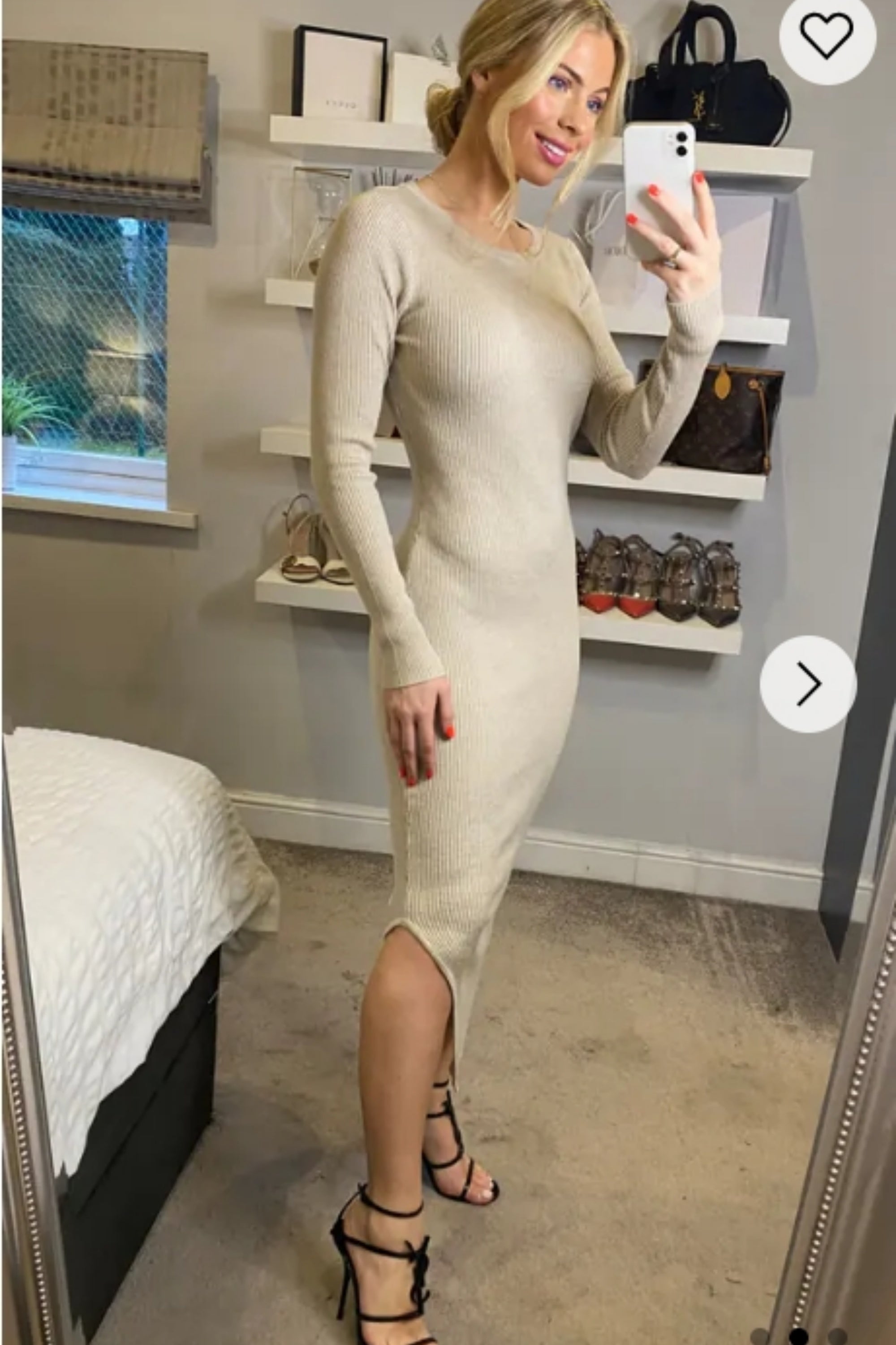 Multi faxu Pearl embellished design neckline long knit jumper dress in white