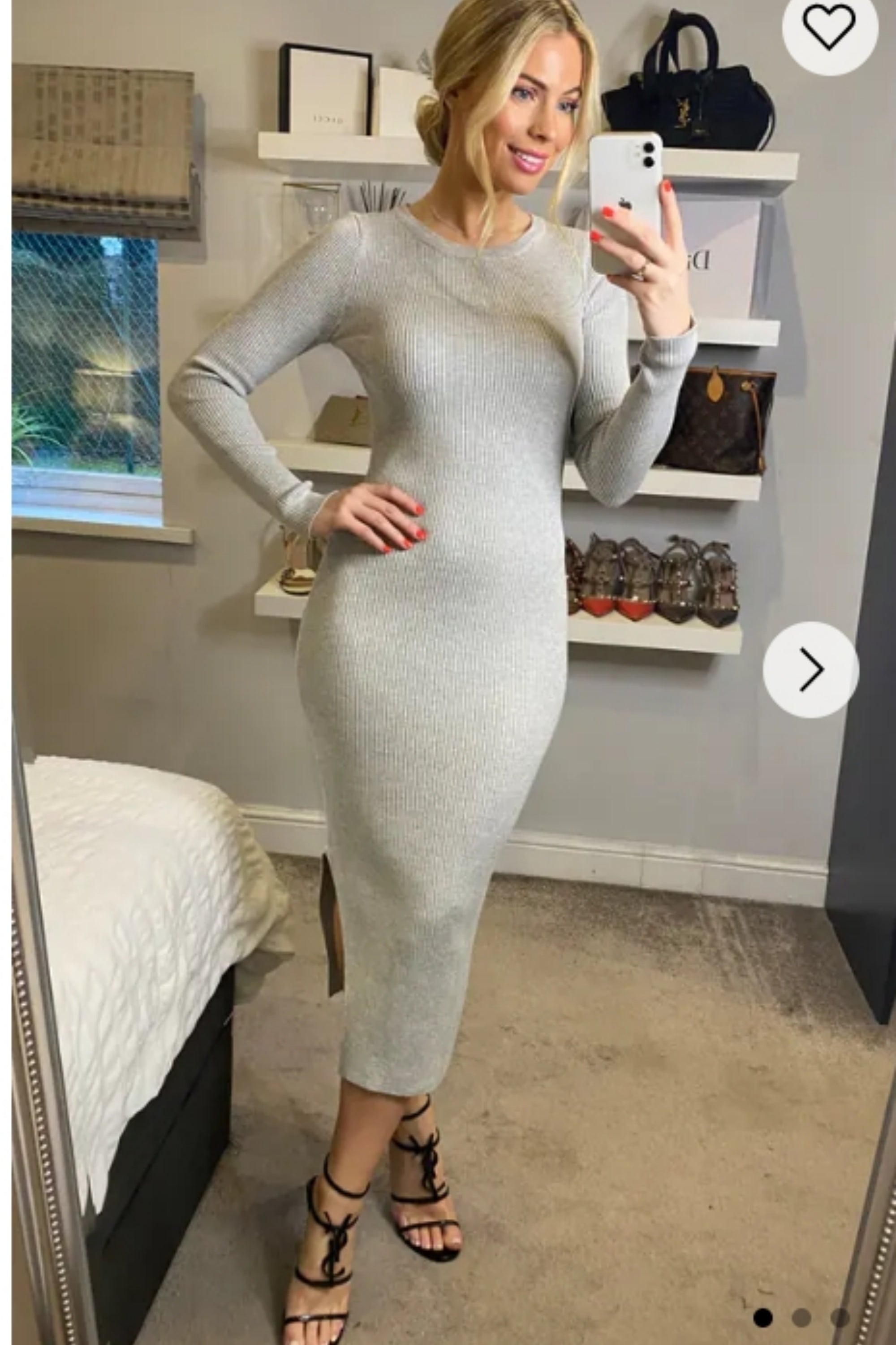 Lace up and cut out design Metallic midi bodycon dress in Black