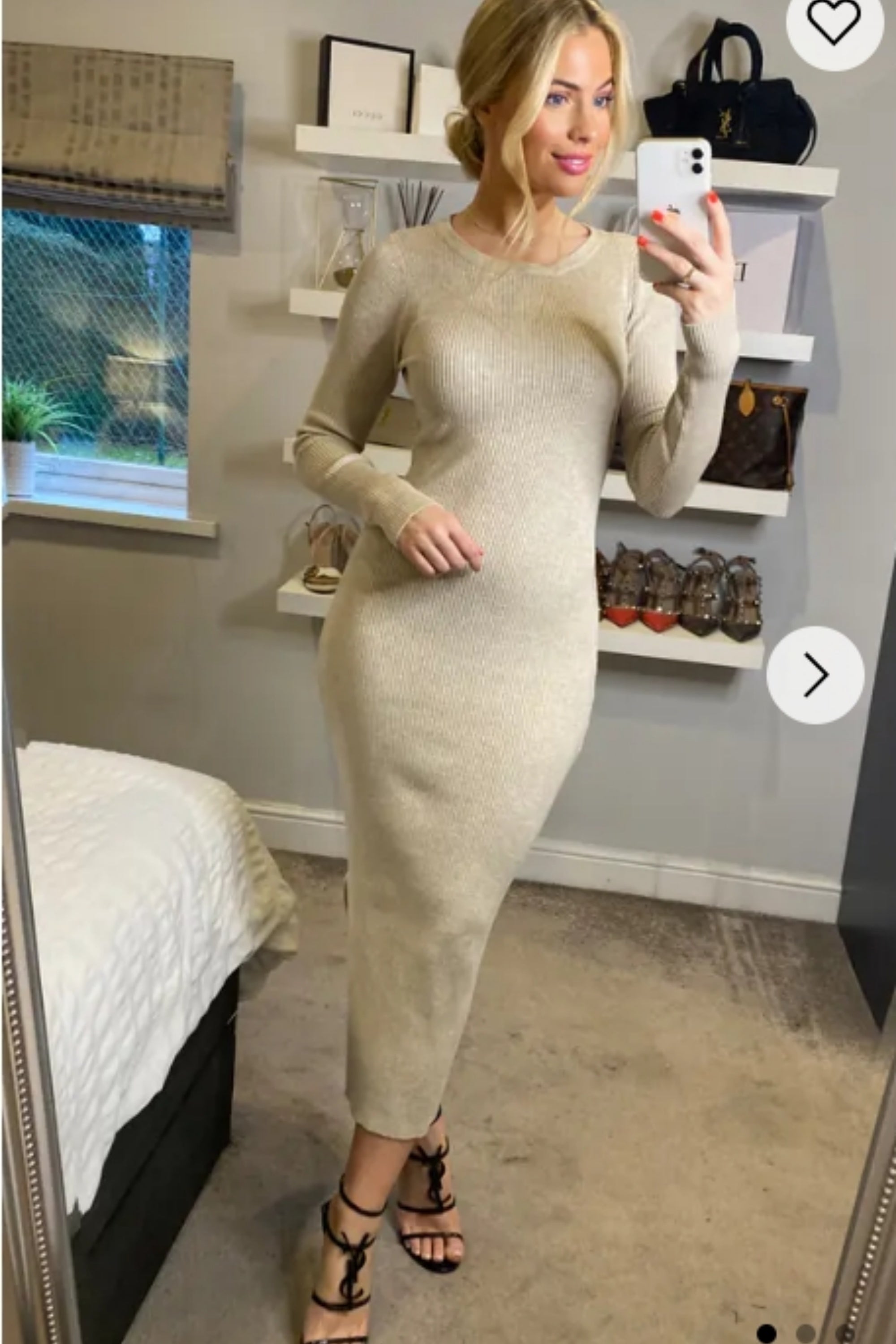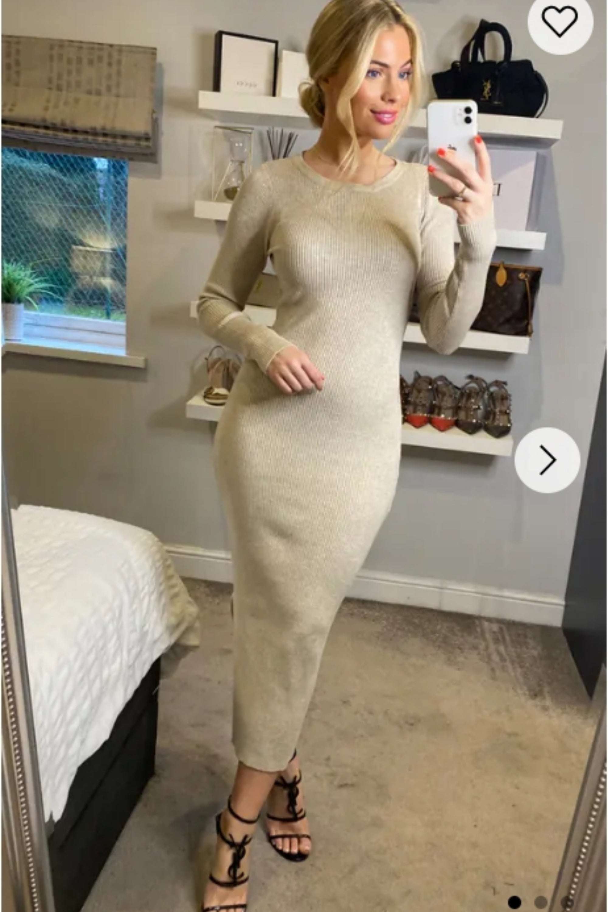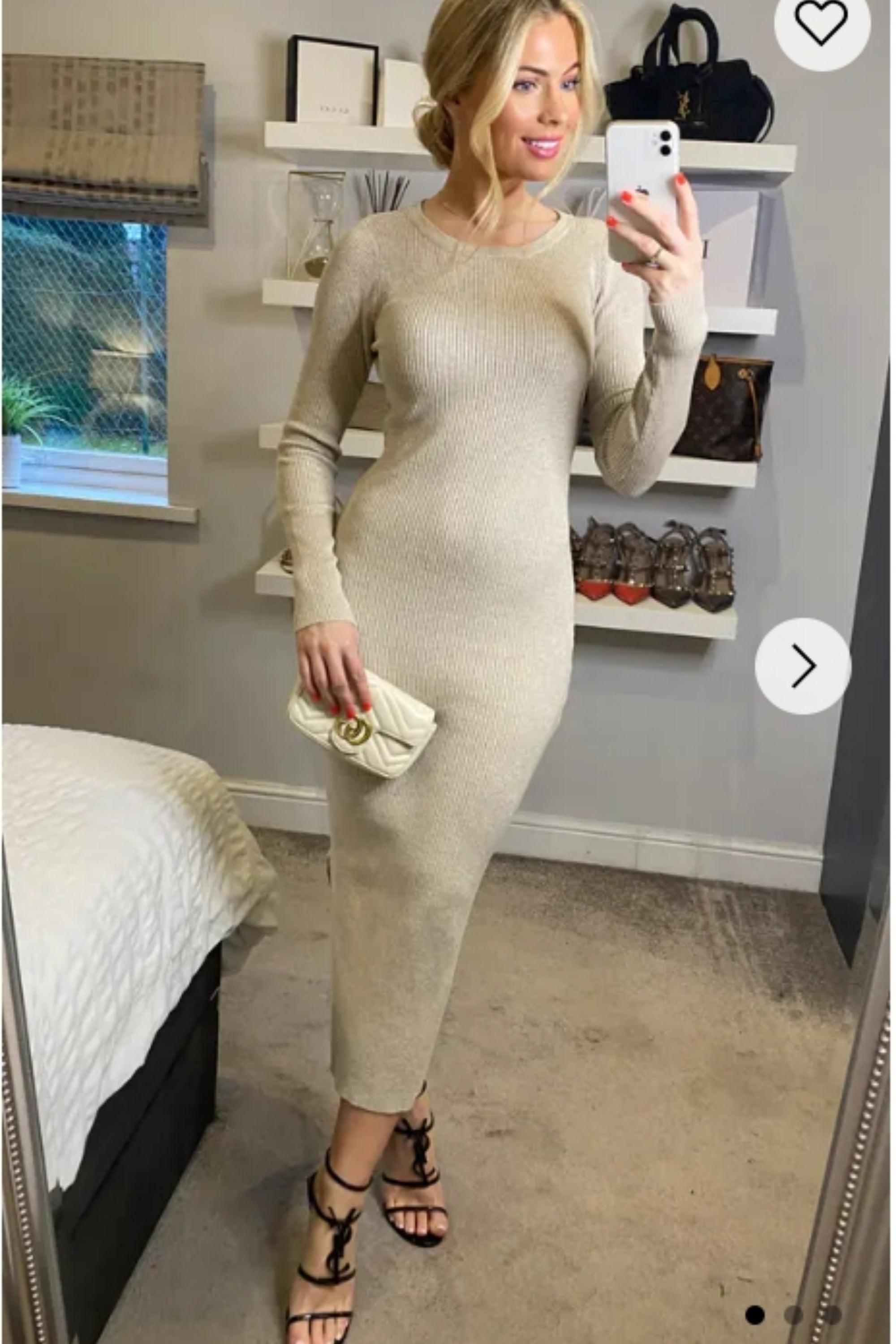 Lace up and cut out design Metallic midi bodycon dress in Brown