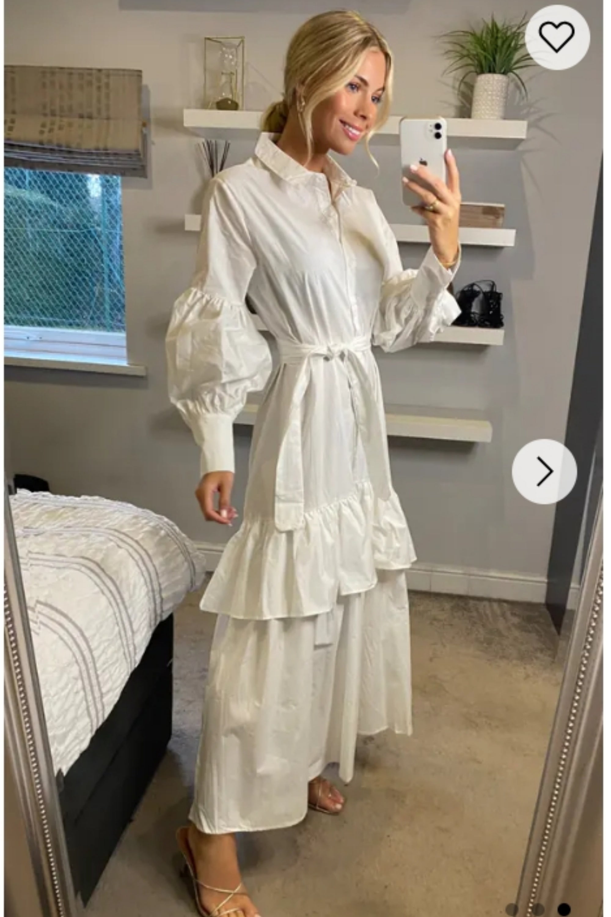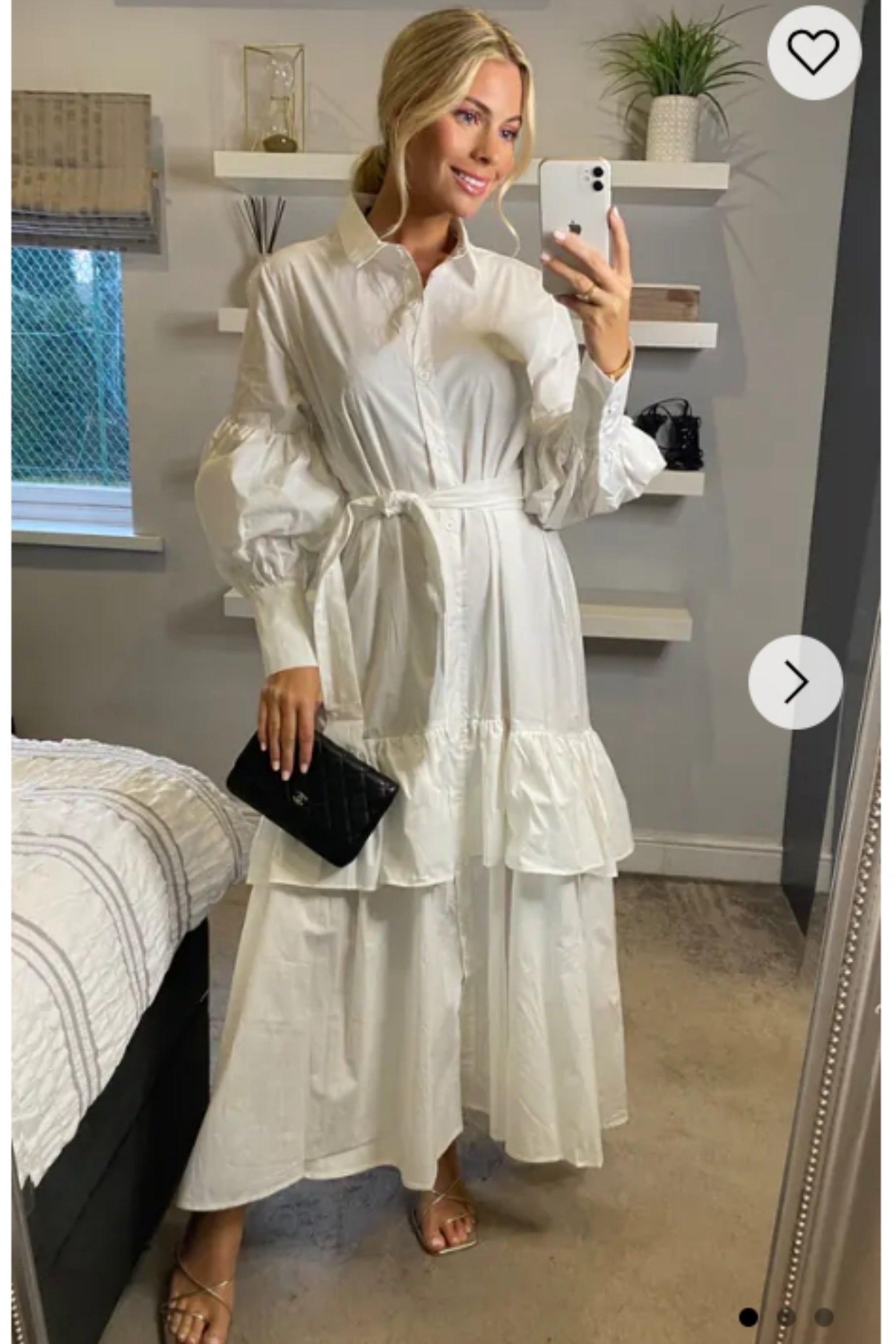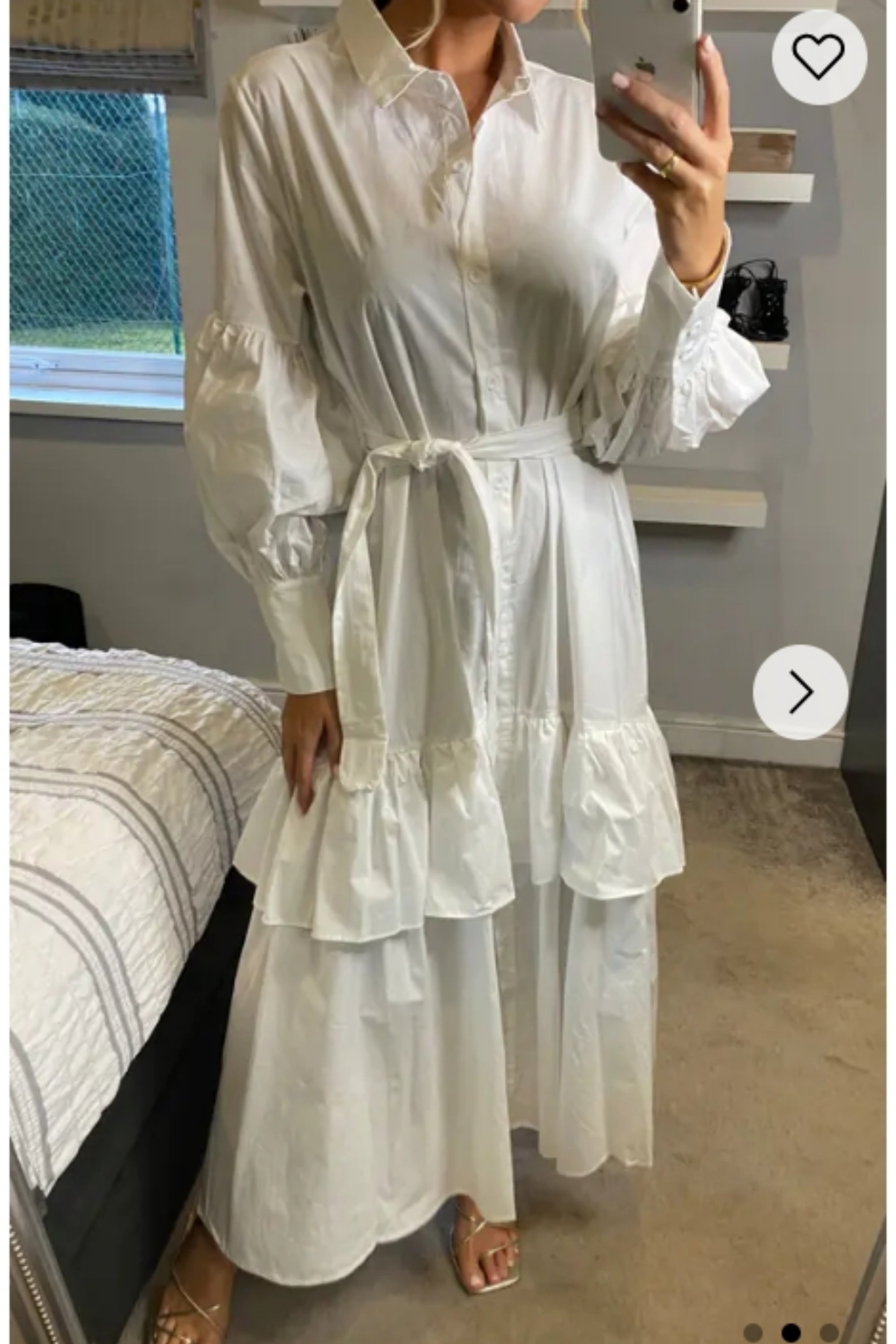 Oversized Ballon sleeves with tie up cotton blend shirt dress in white