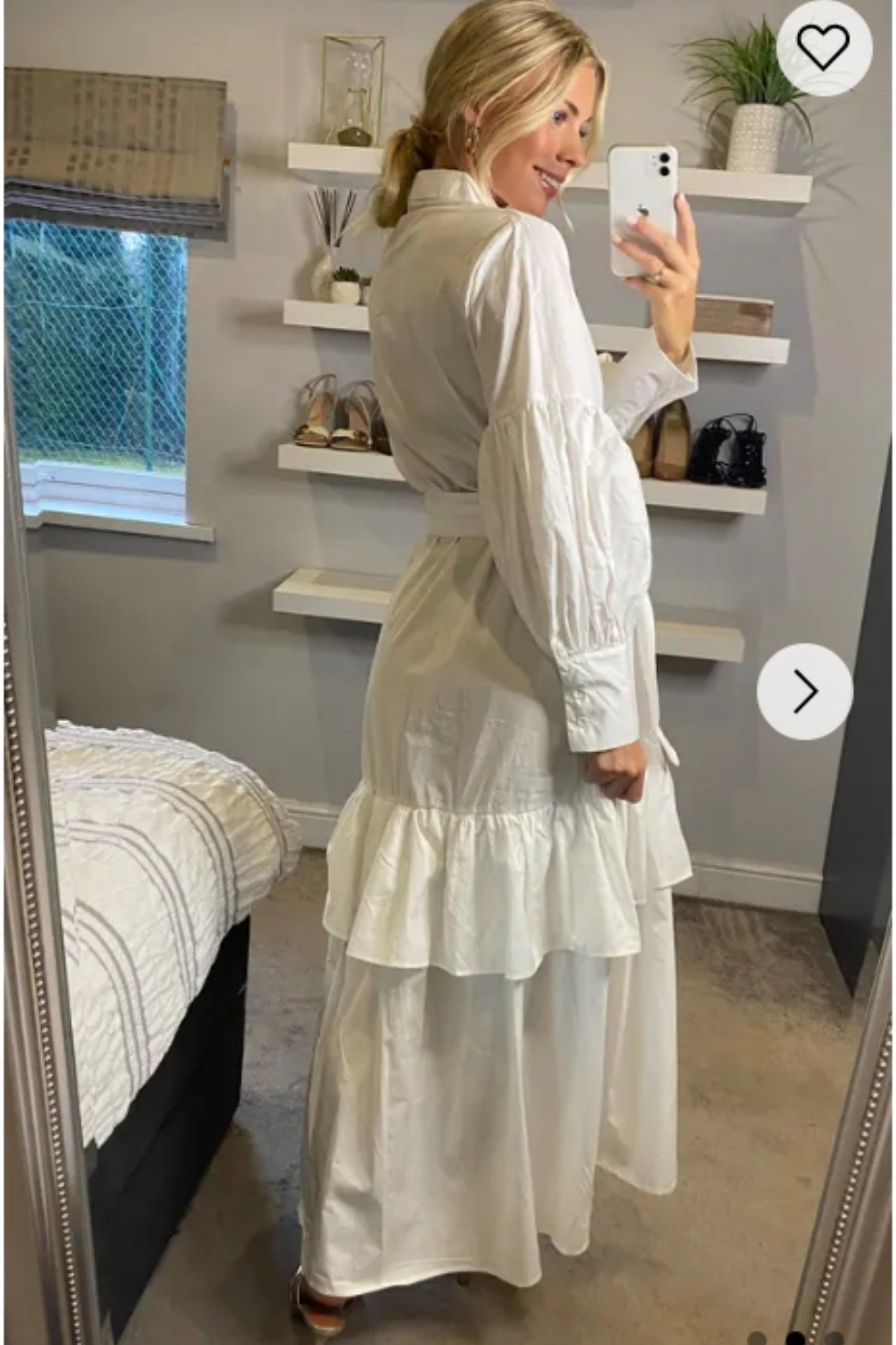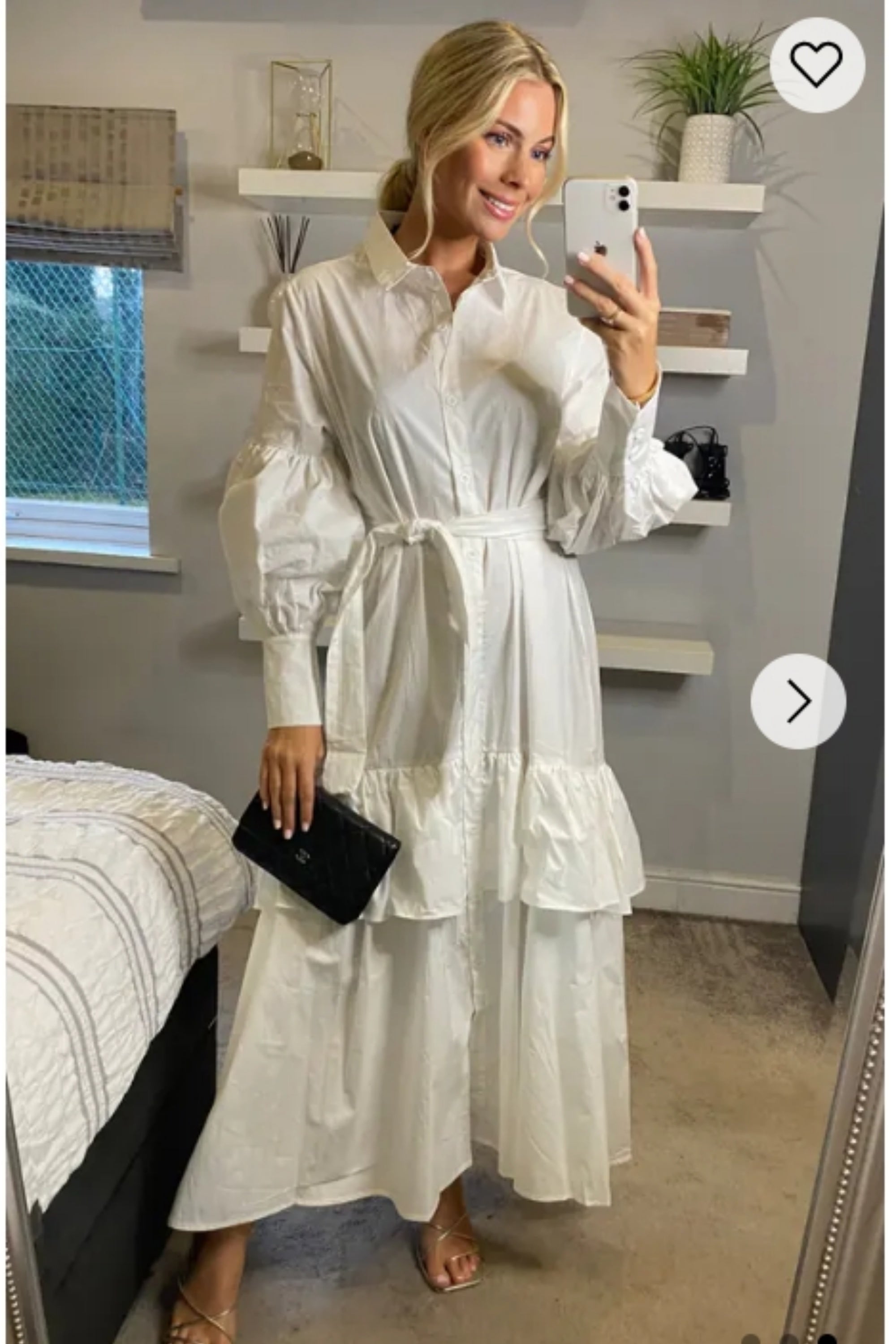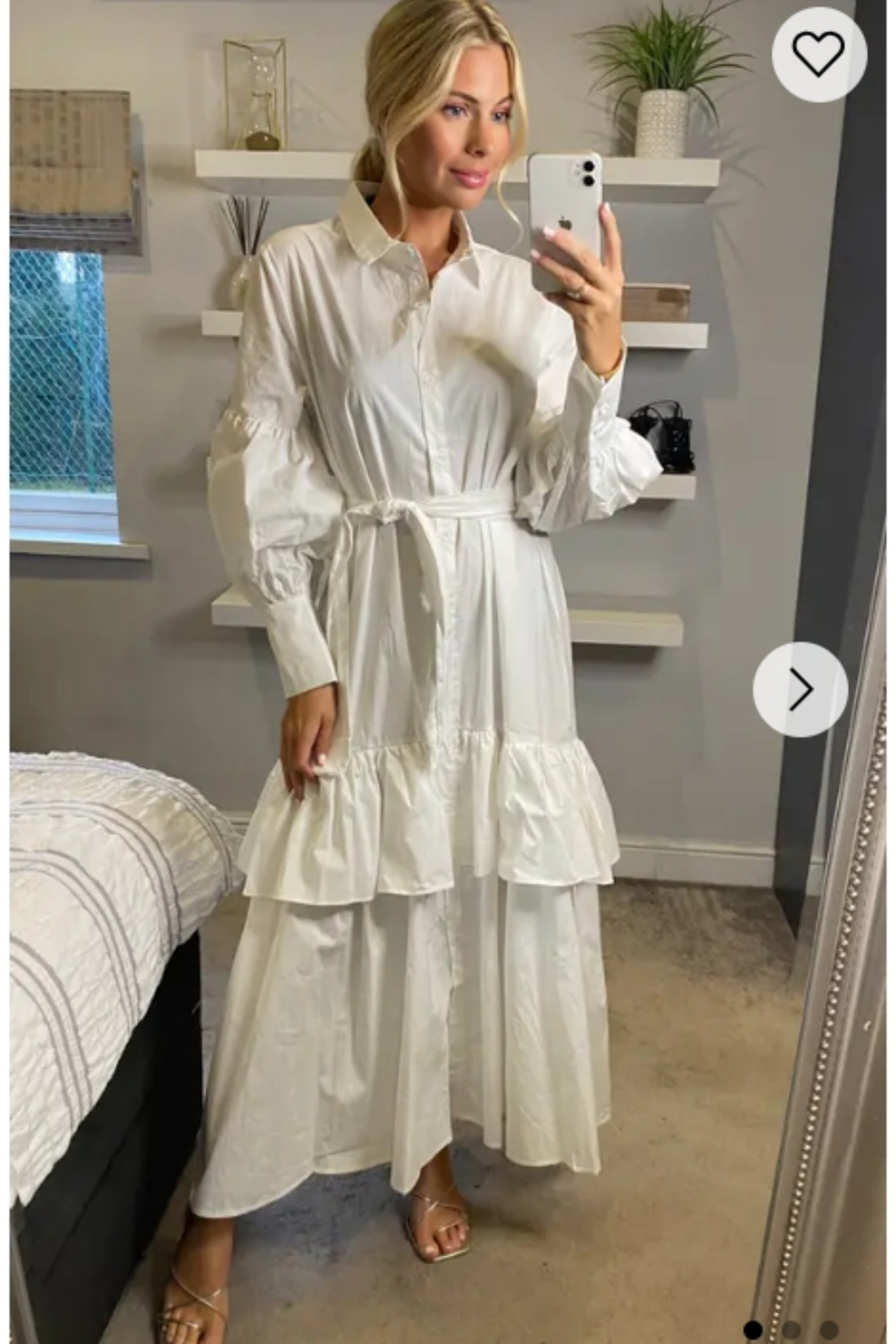 Oversized Ballon sleeves with tie up cotton blend shirt dress in white