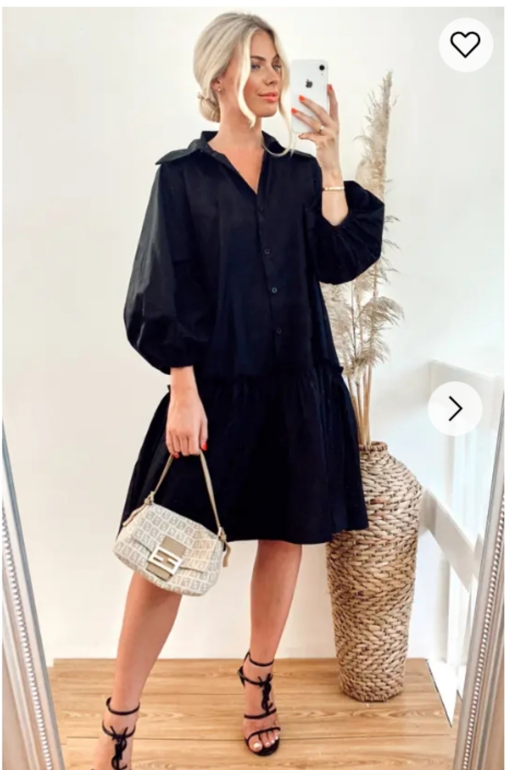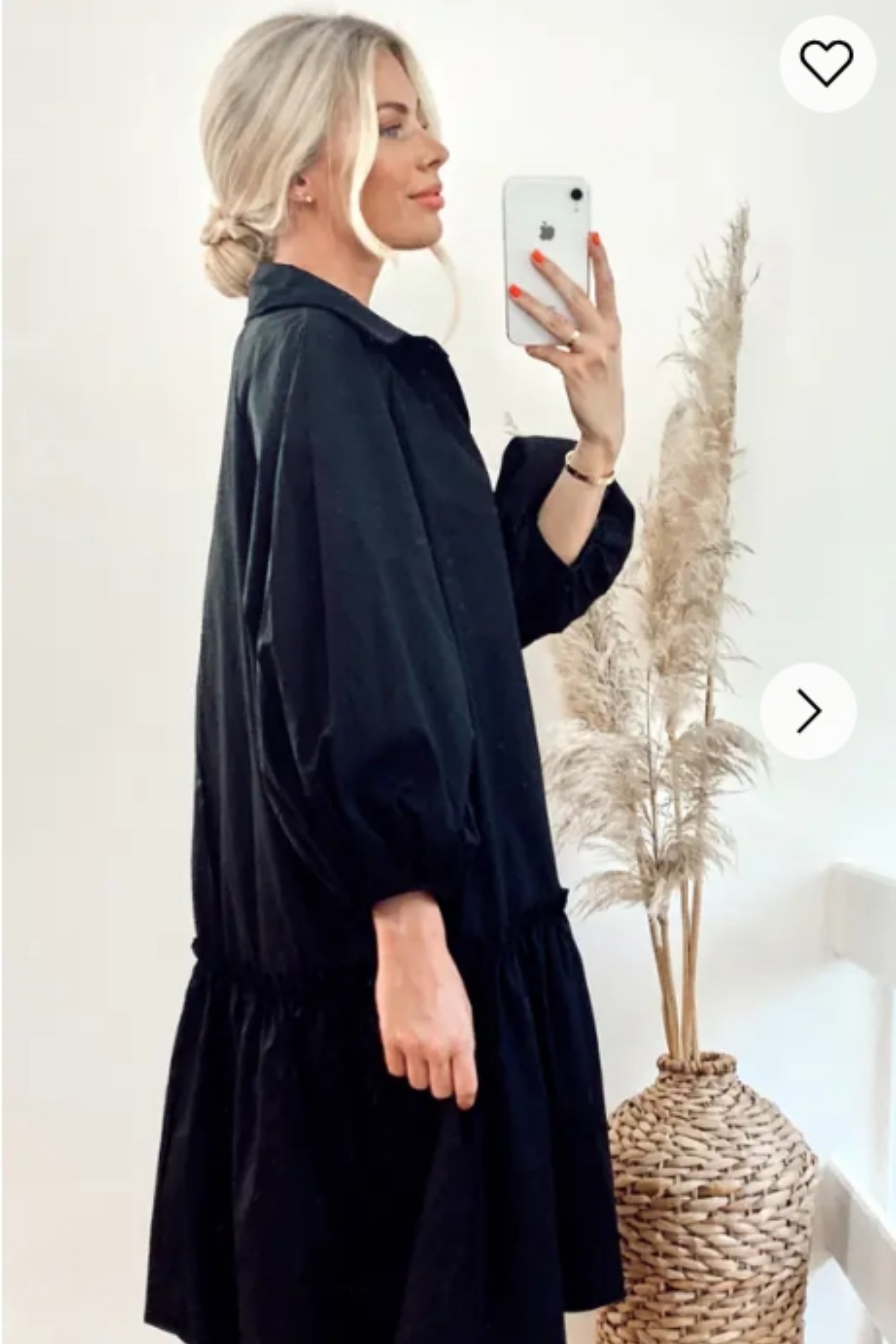 Long Sleeve Oversized Linen Shirt Dress in Navy Blue