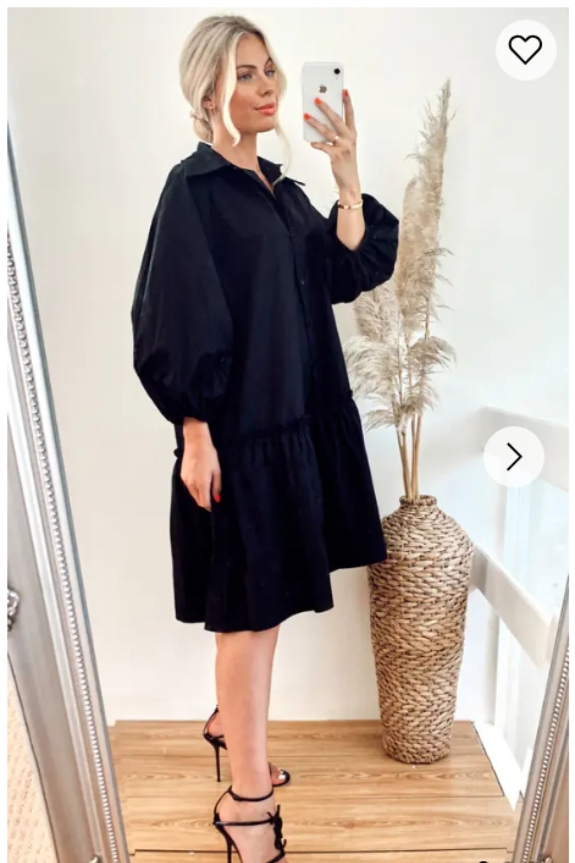 Black Bodycon Knit Dress with Polka Dot Organza Sleeves