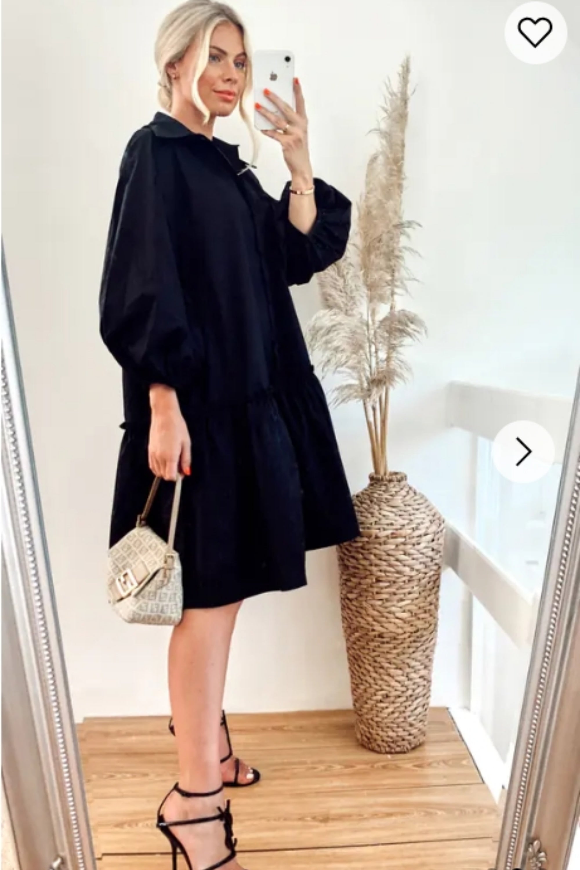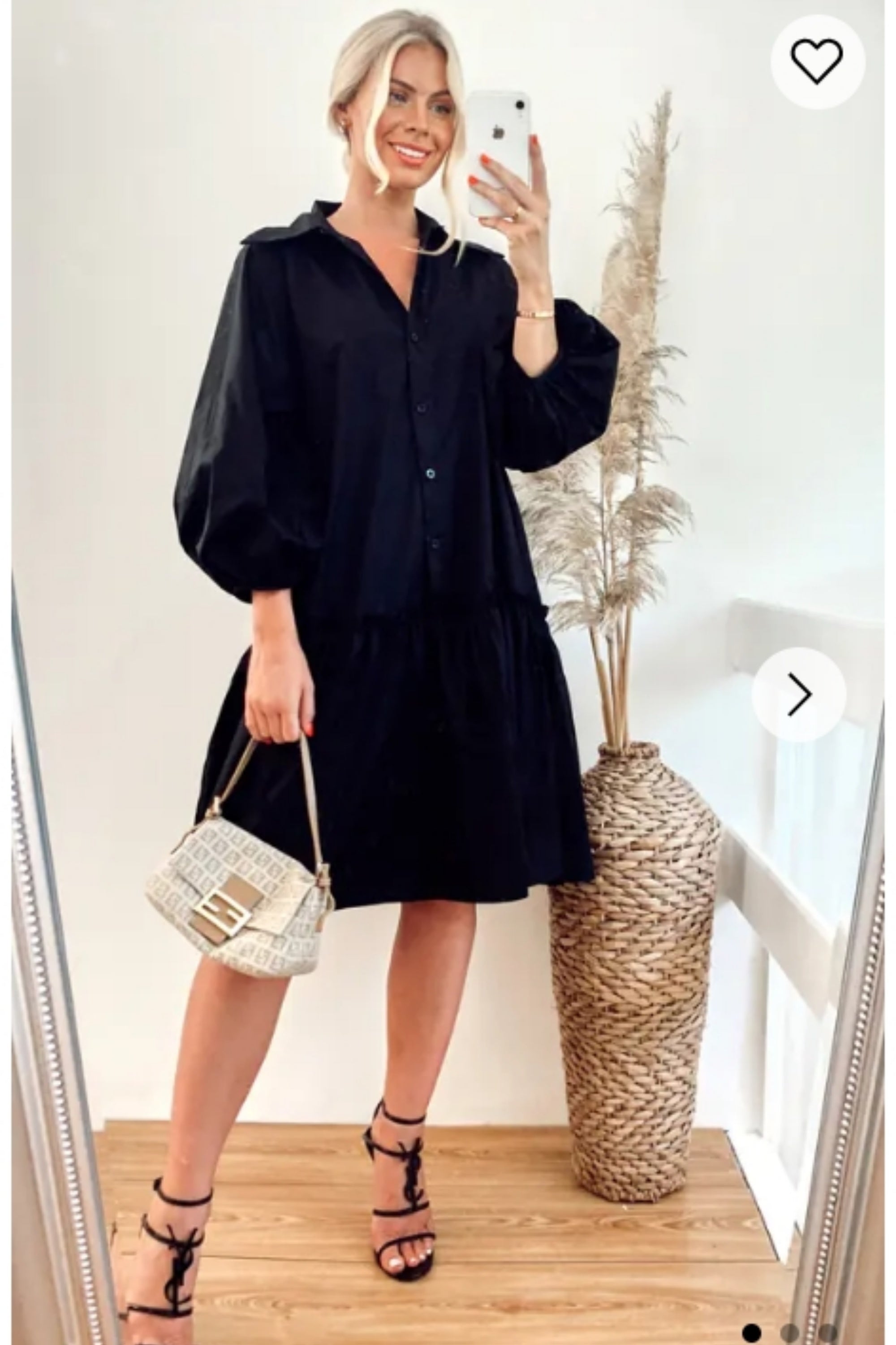 Polka Dot print dip hem dress with frill sleeves design in black white color