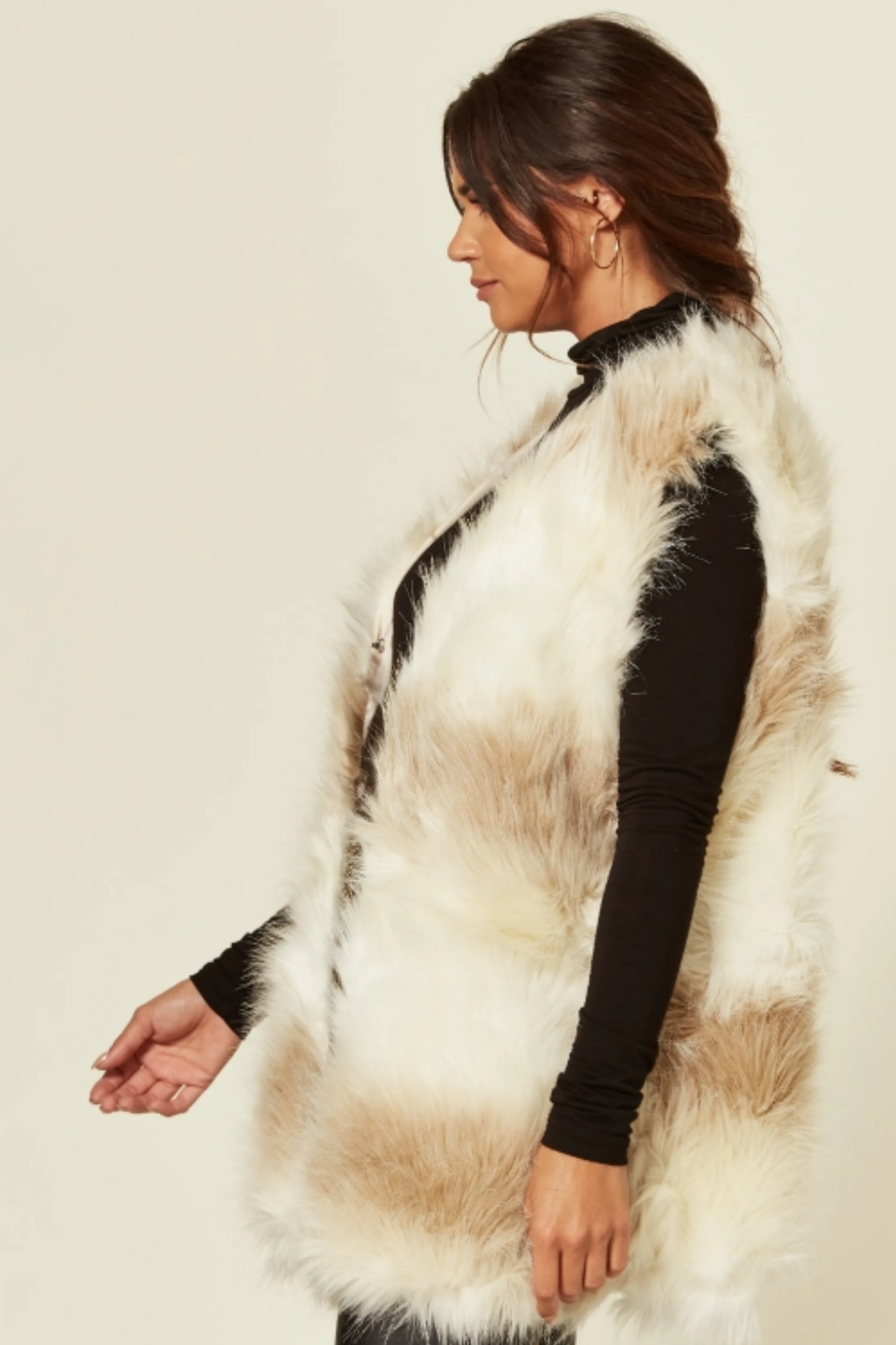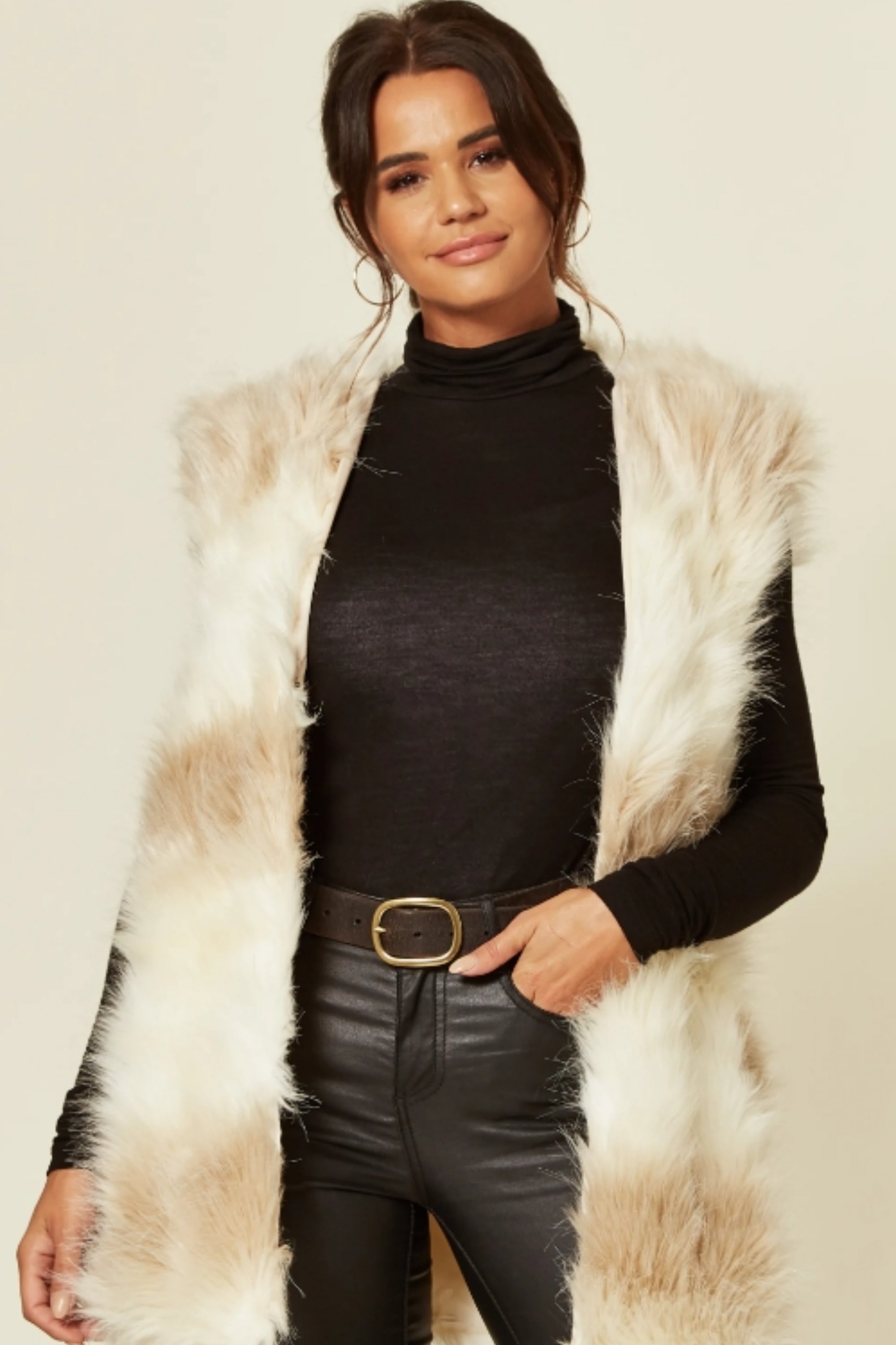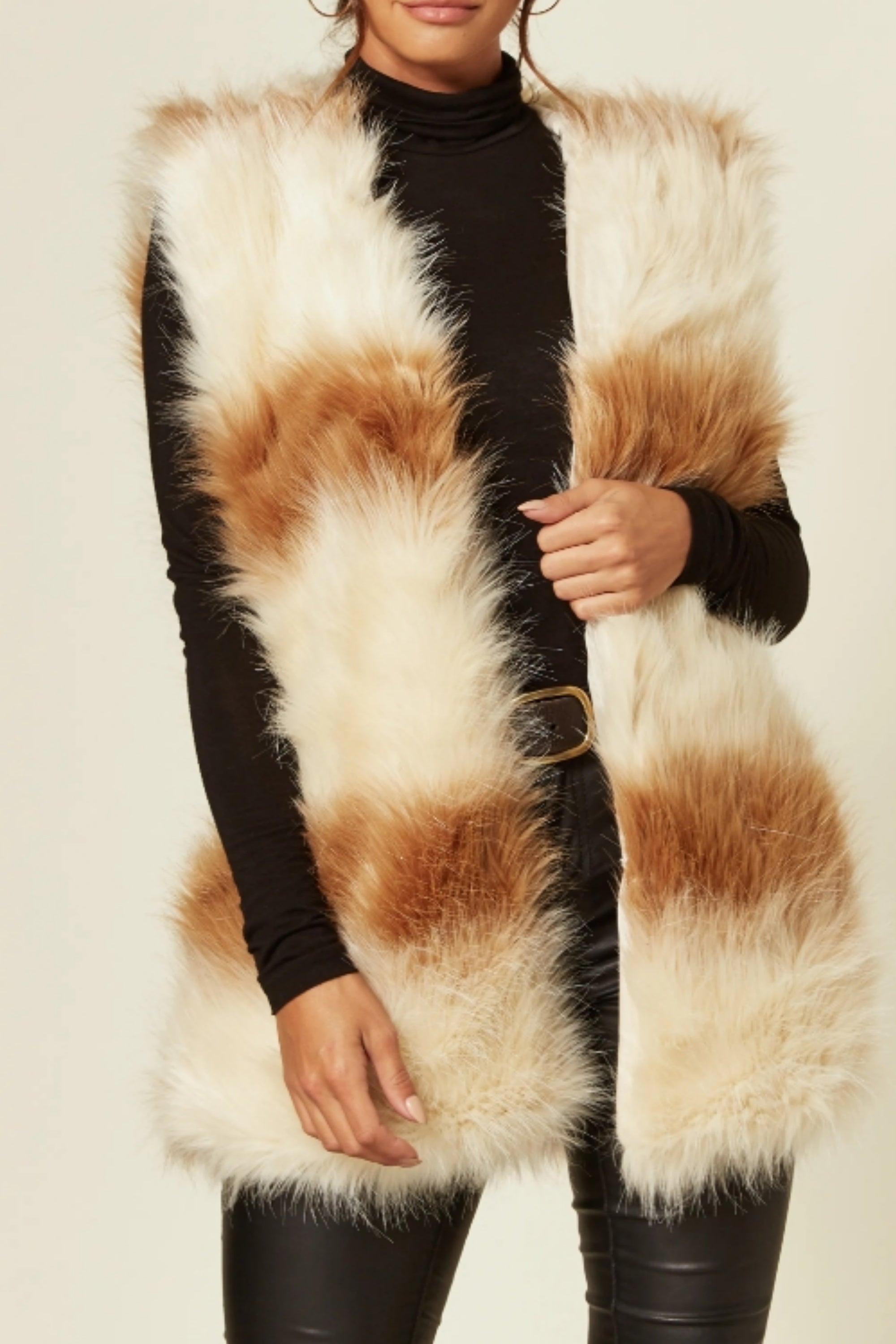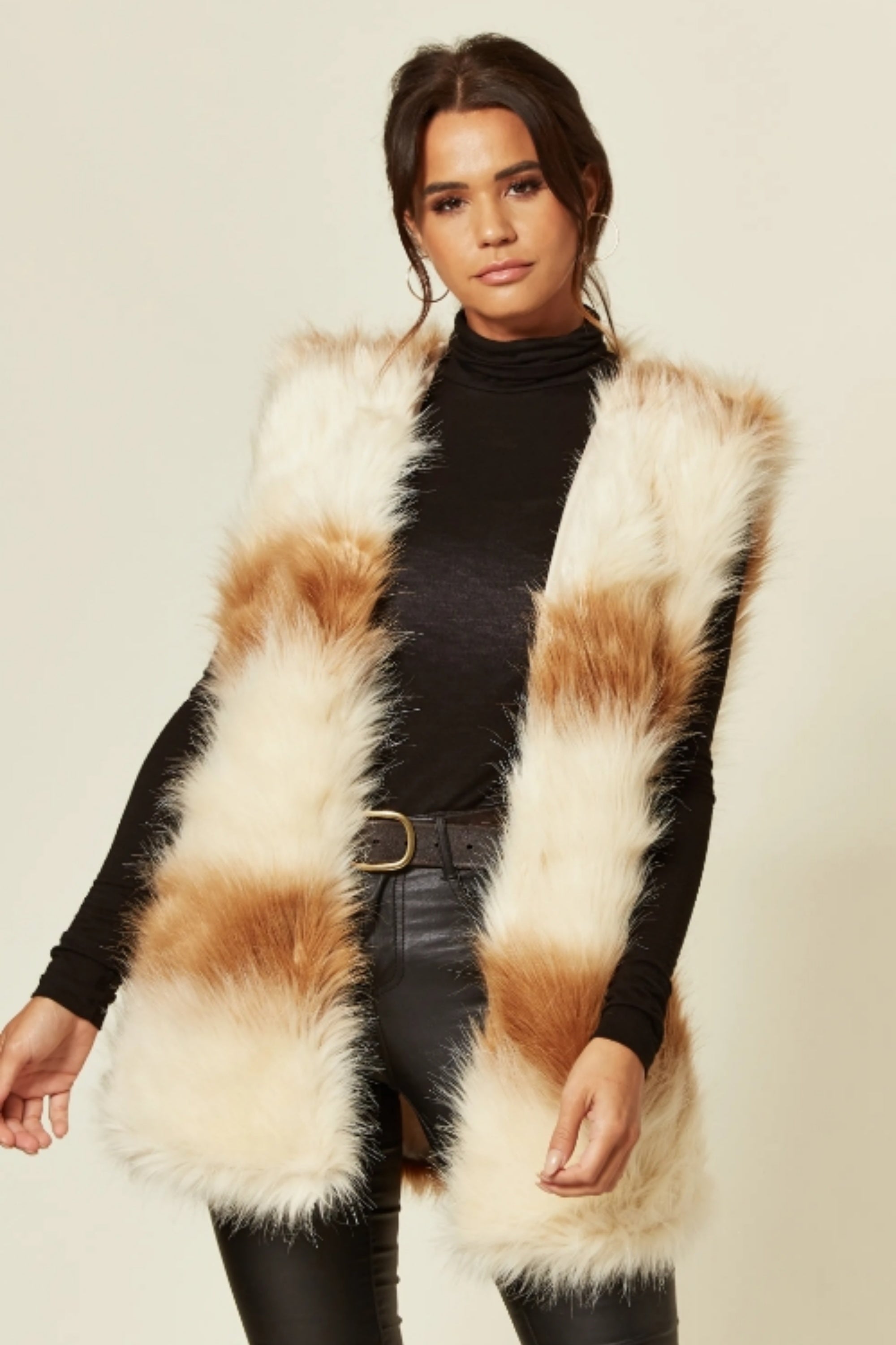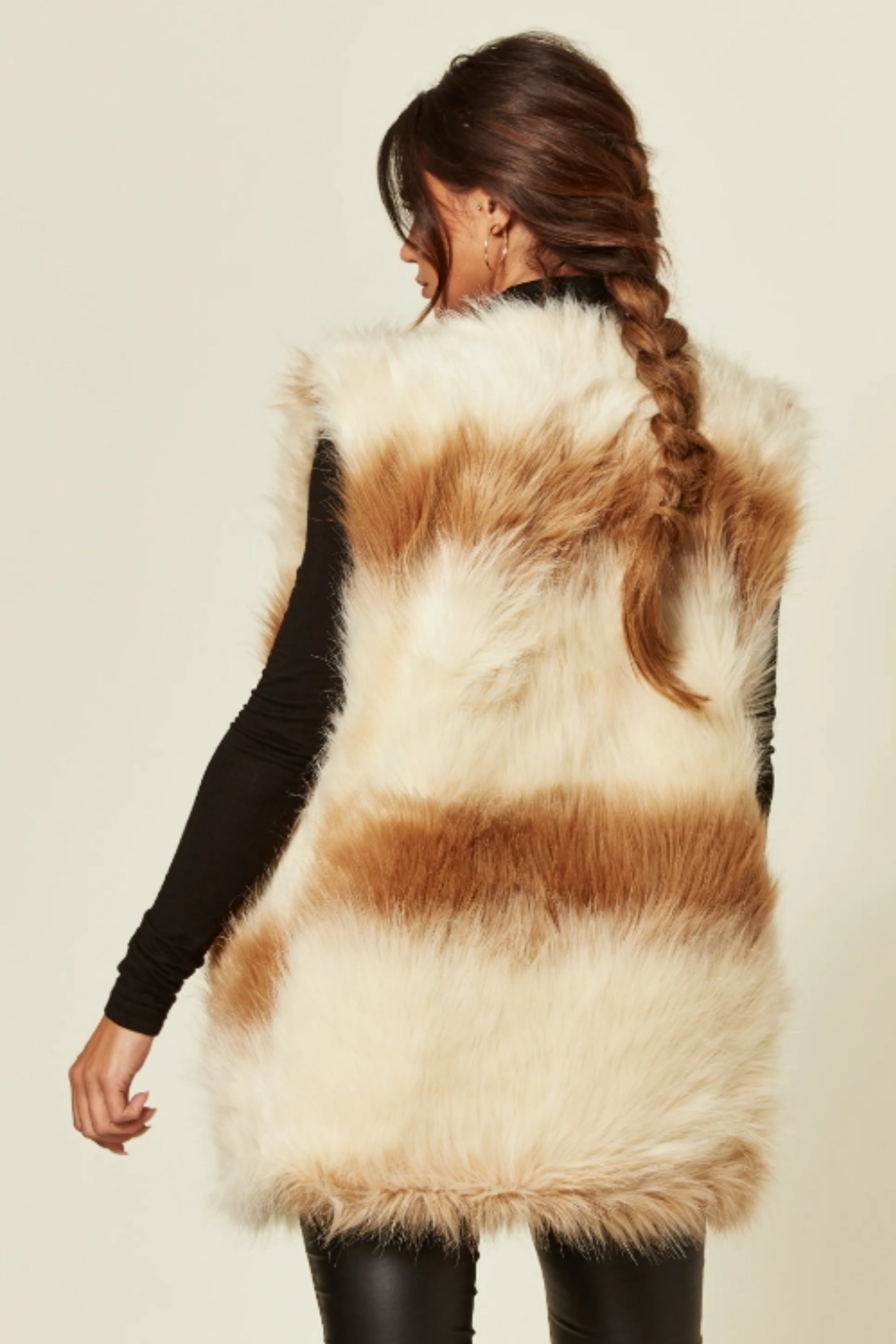 Belt fasten long Faux Fur Gilet (Mix Brown)