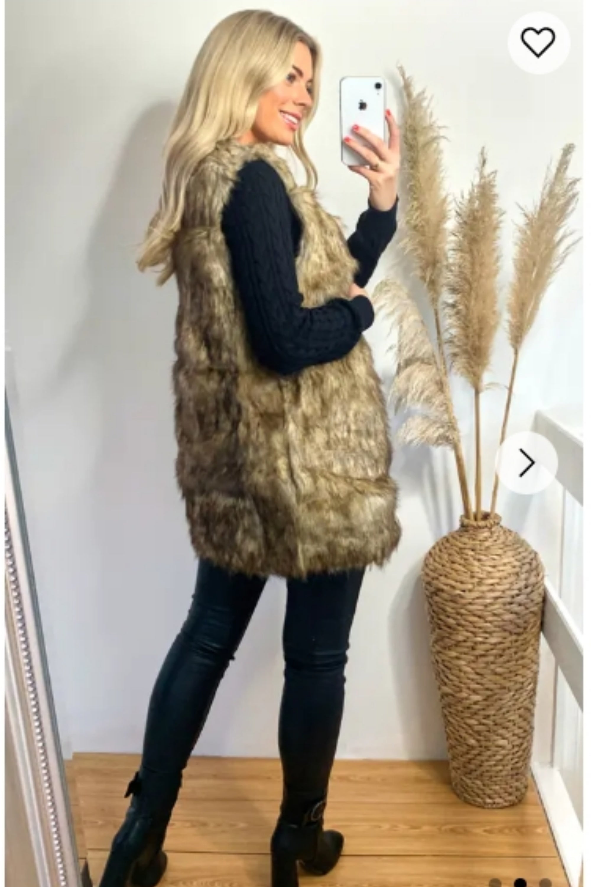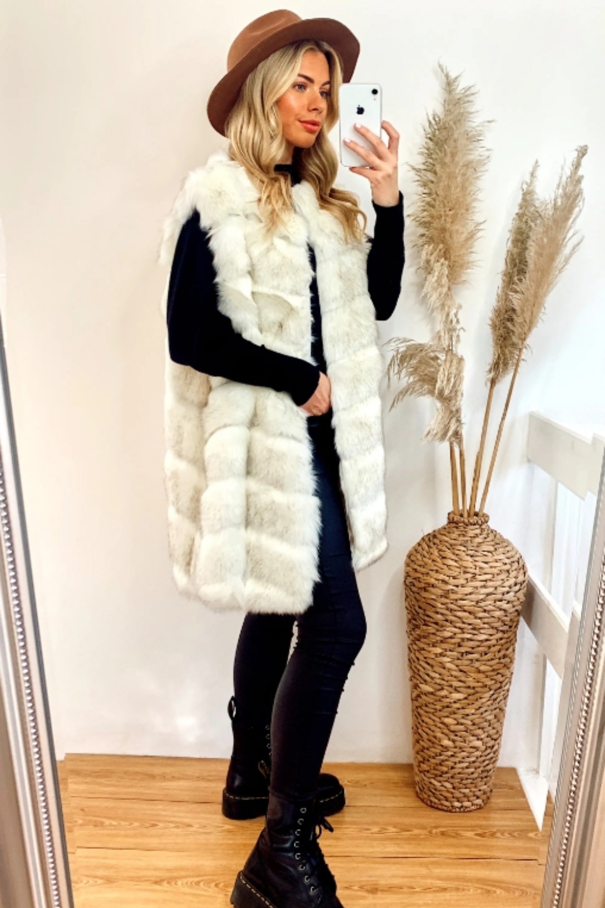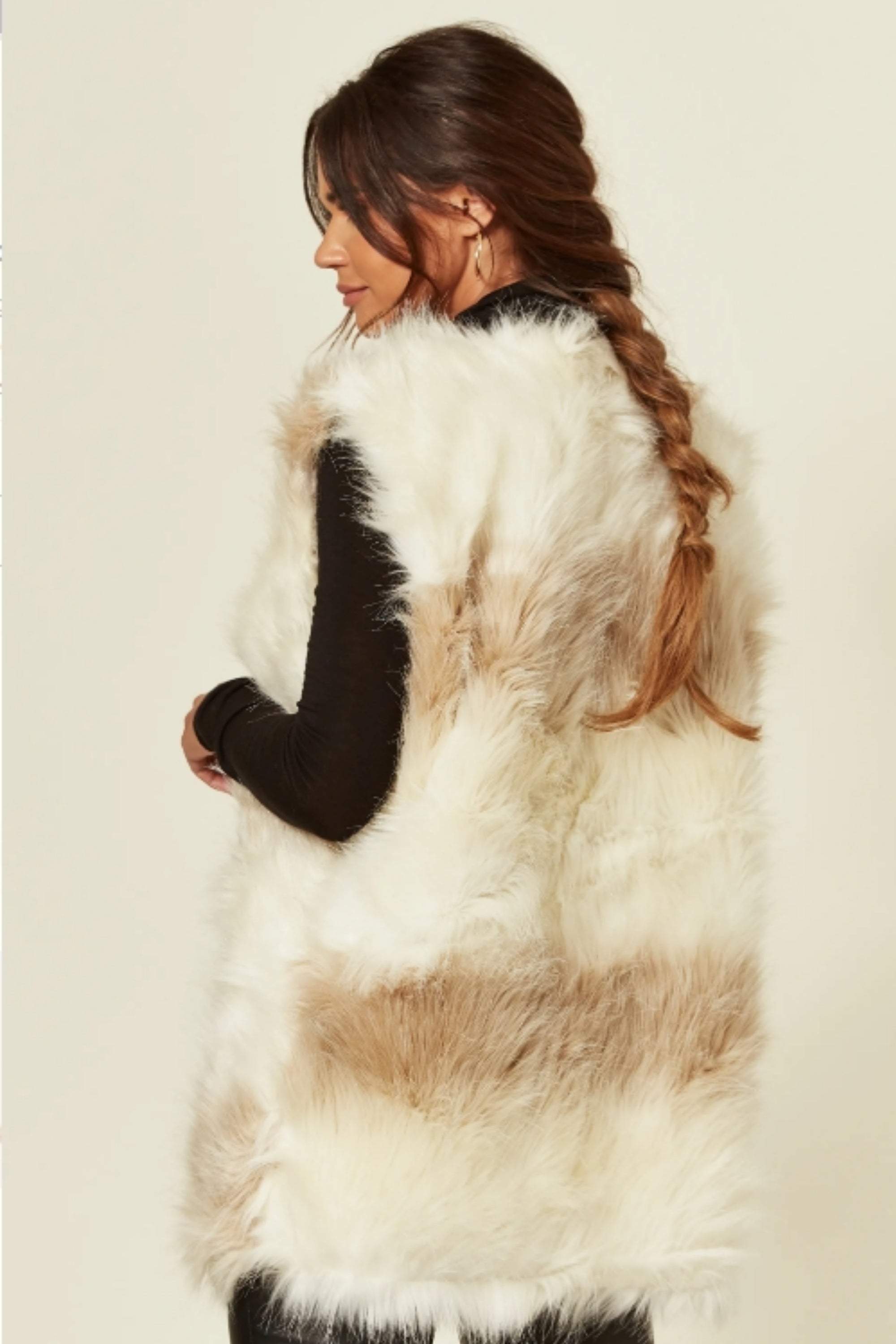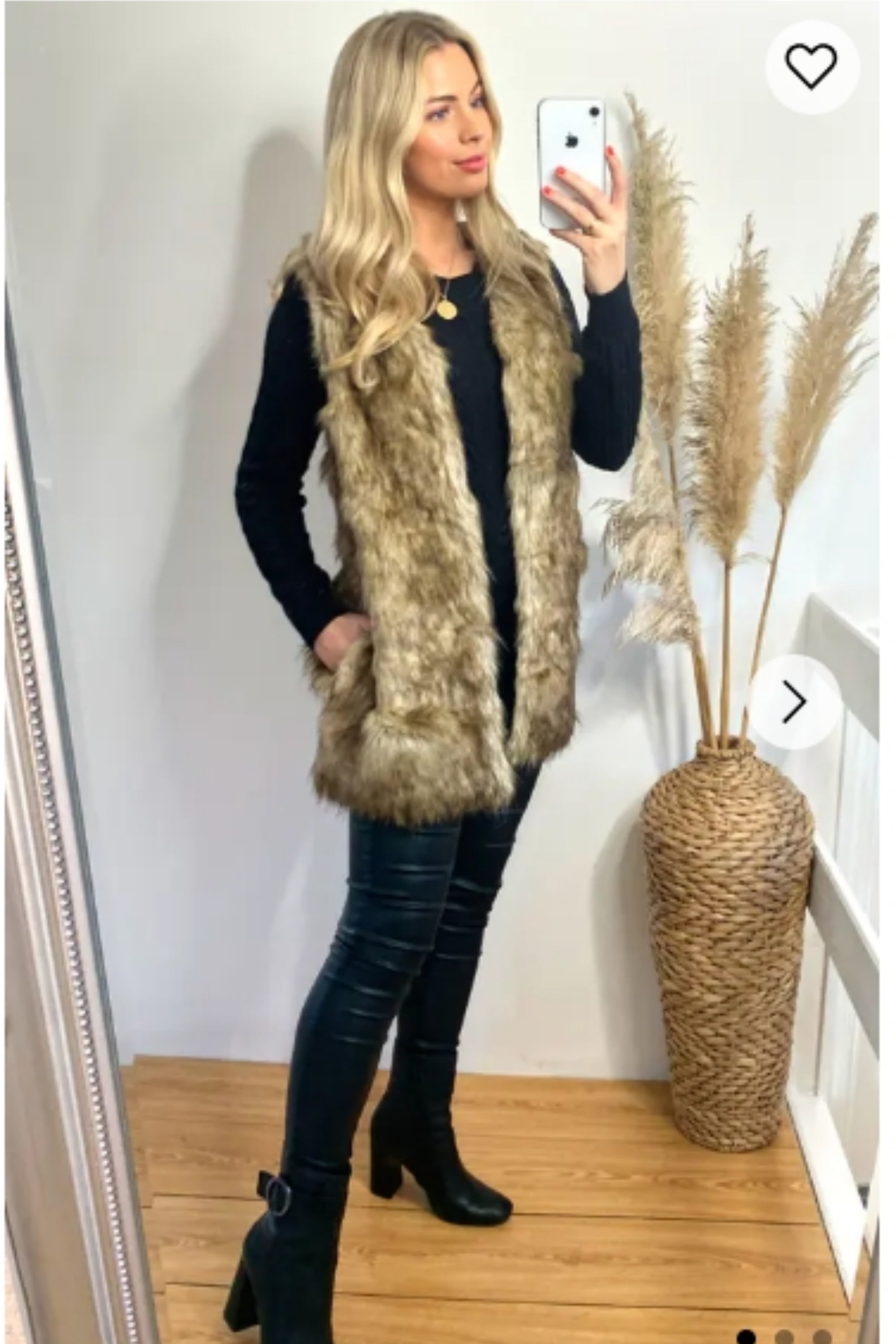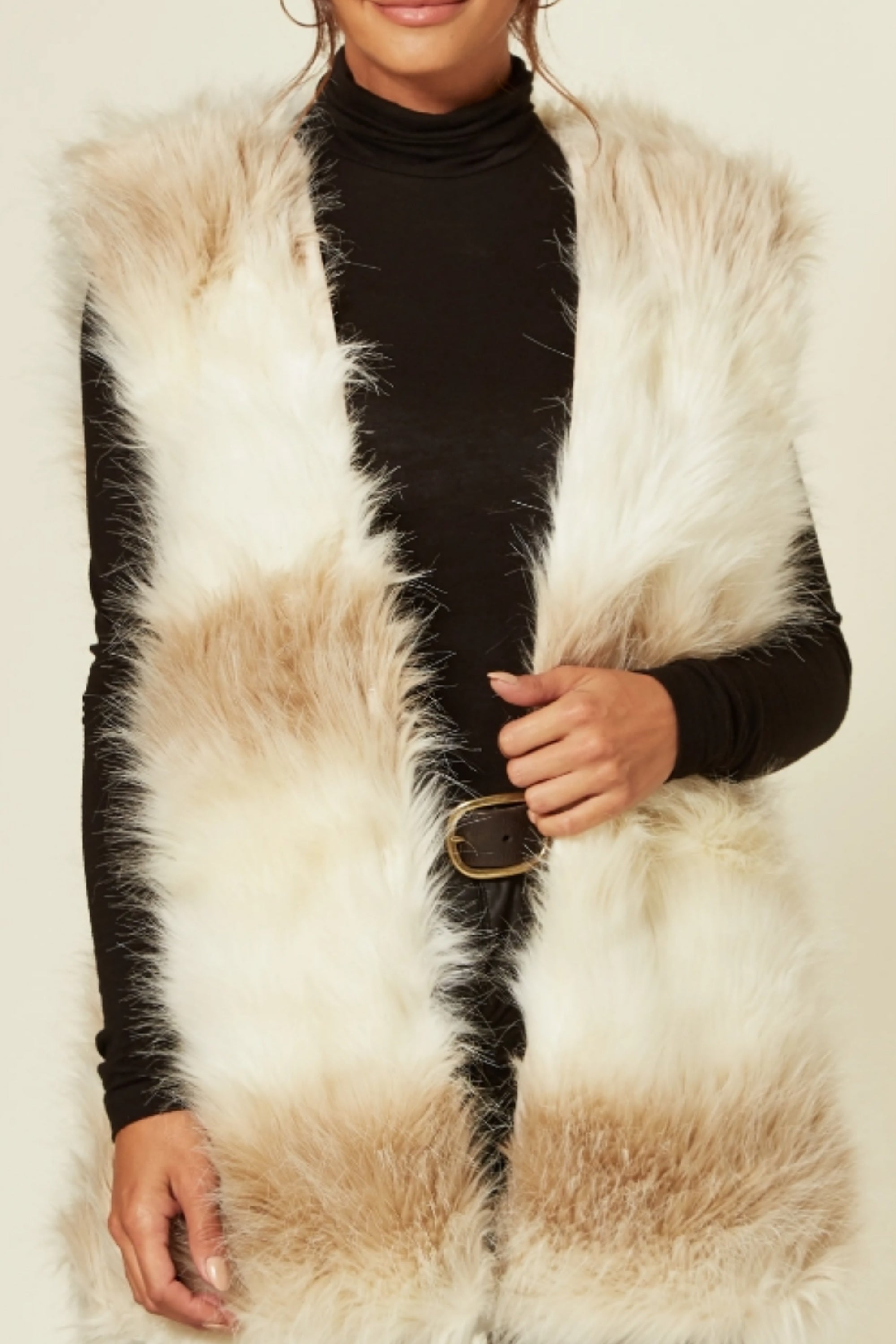 Belt fasten long Faux Fur Gilet (Mix Brown)