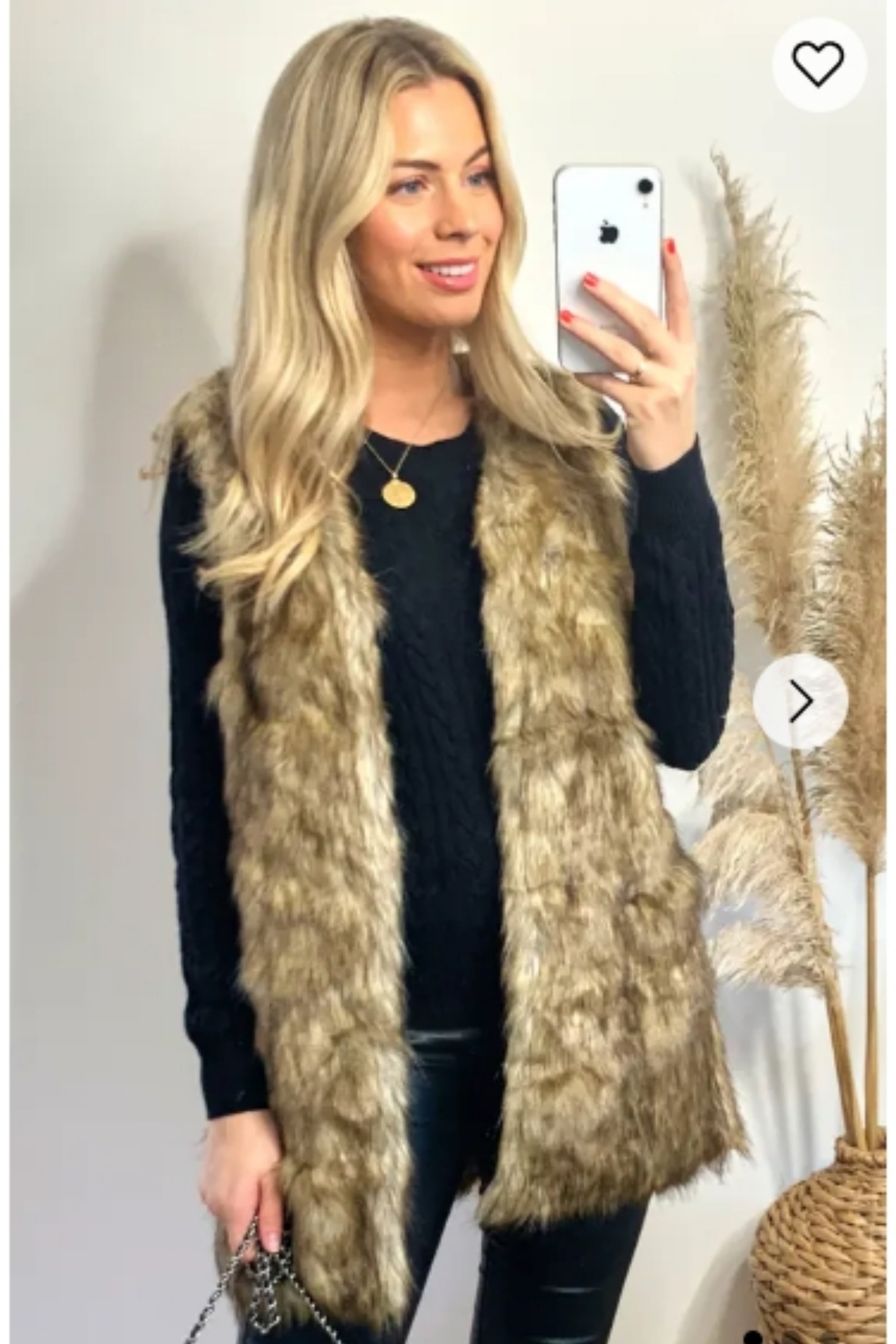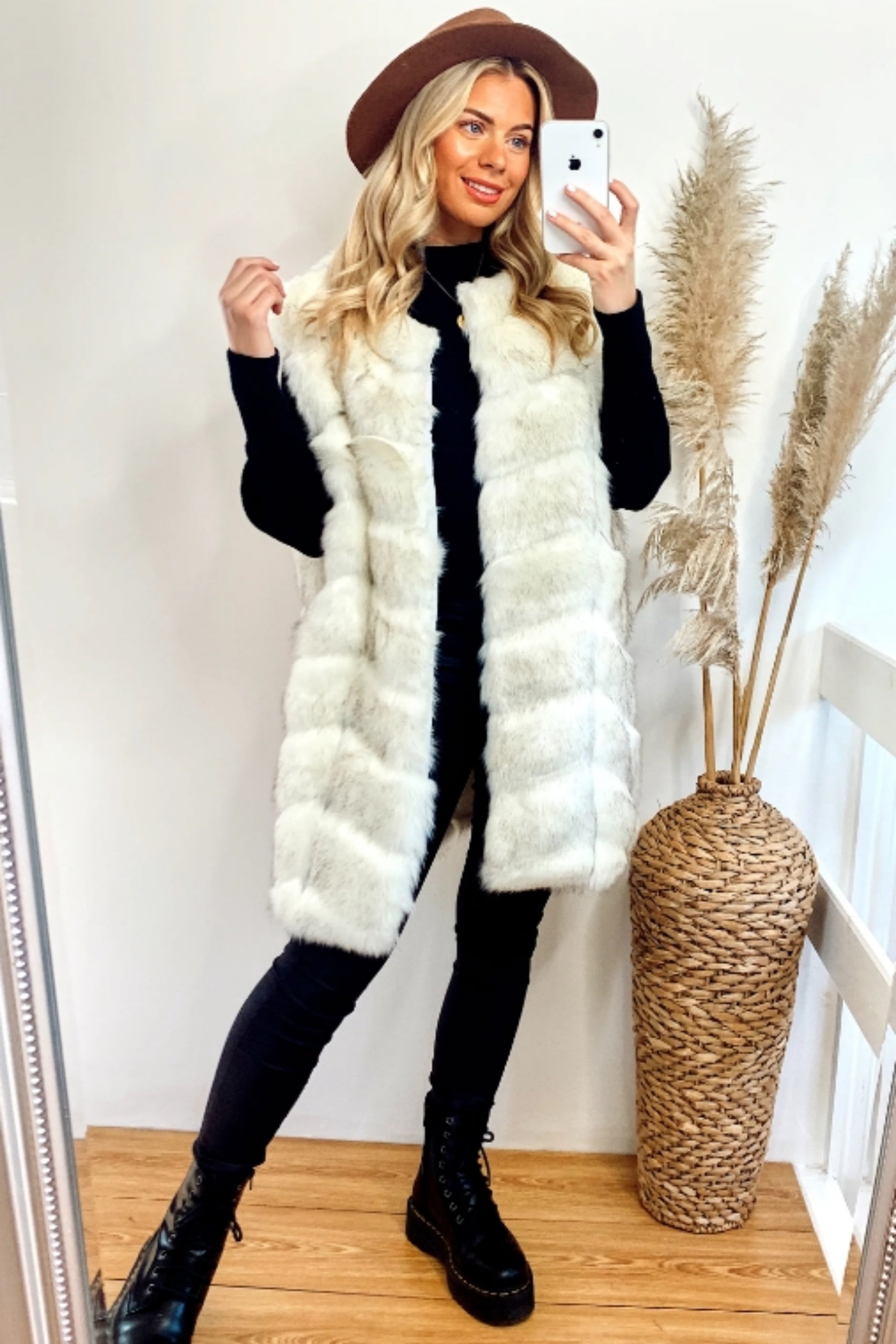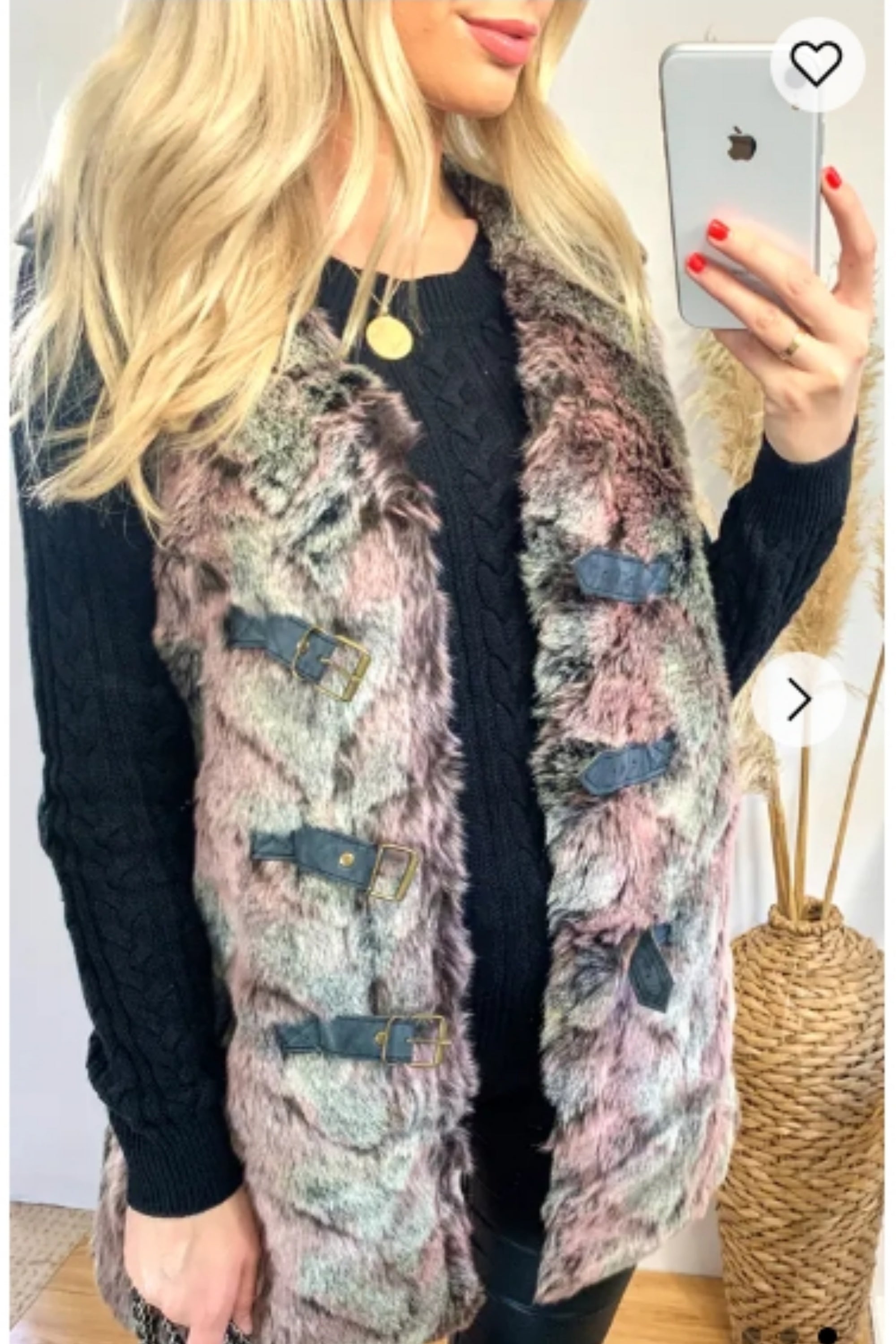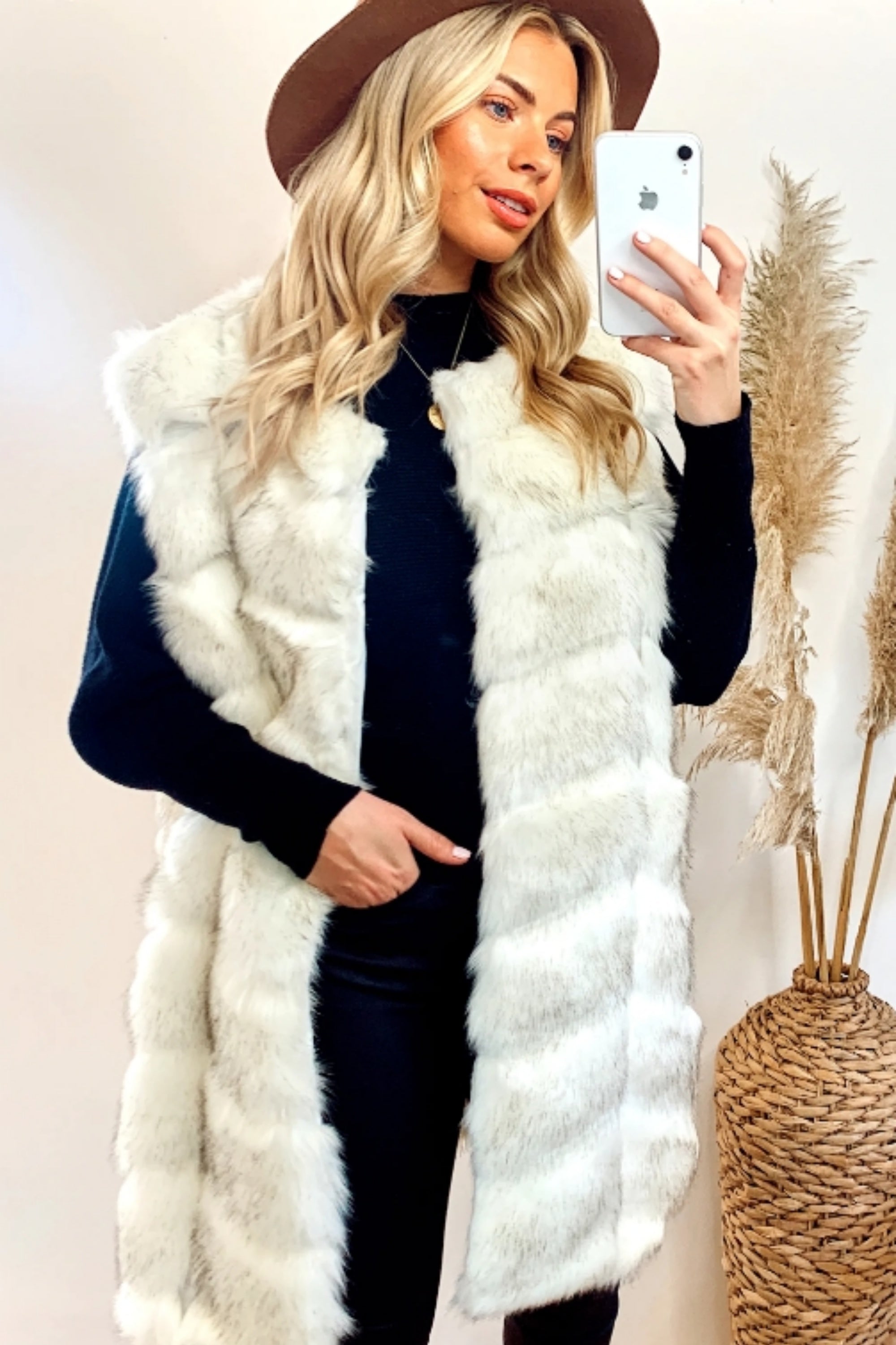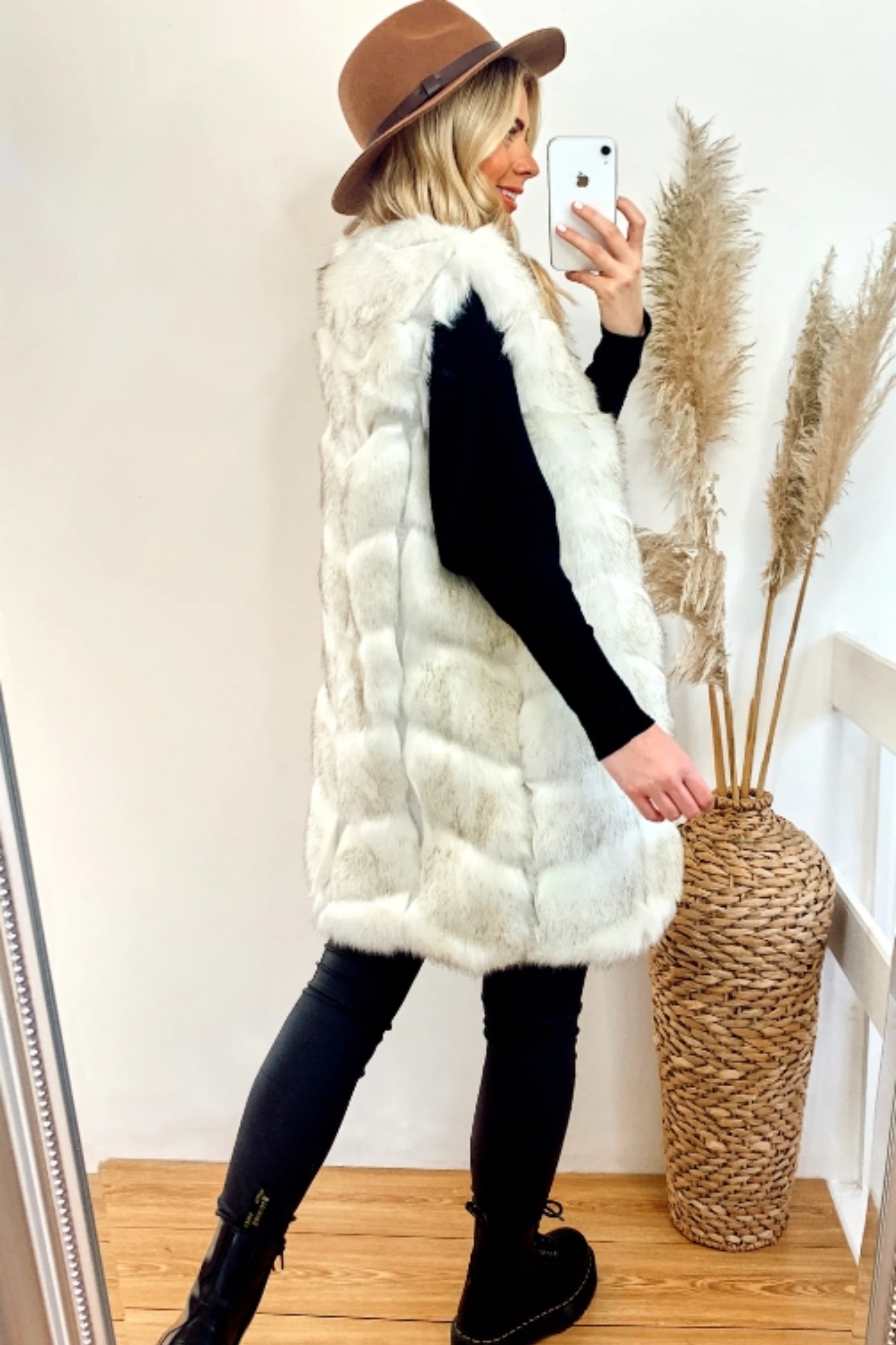 Belt fasten long Faux Fur Gilet (Mix Brown)