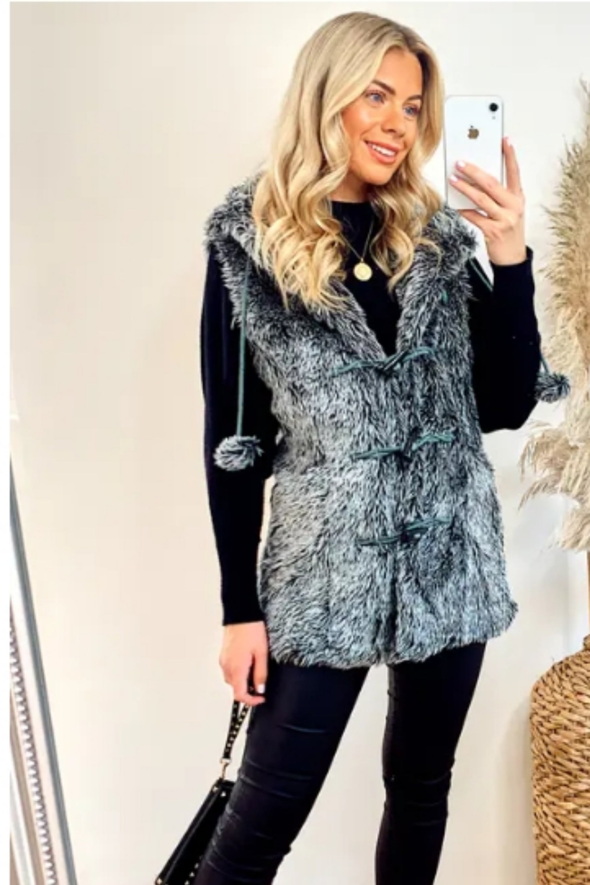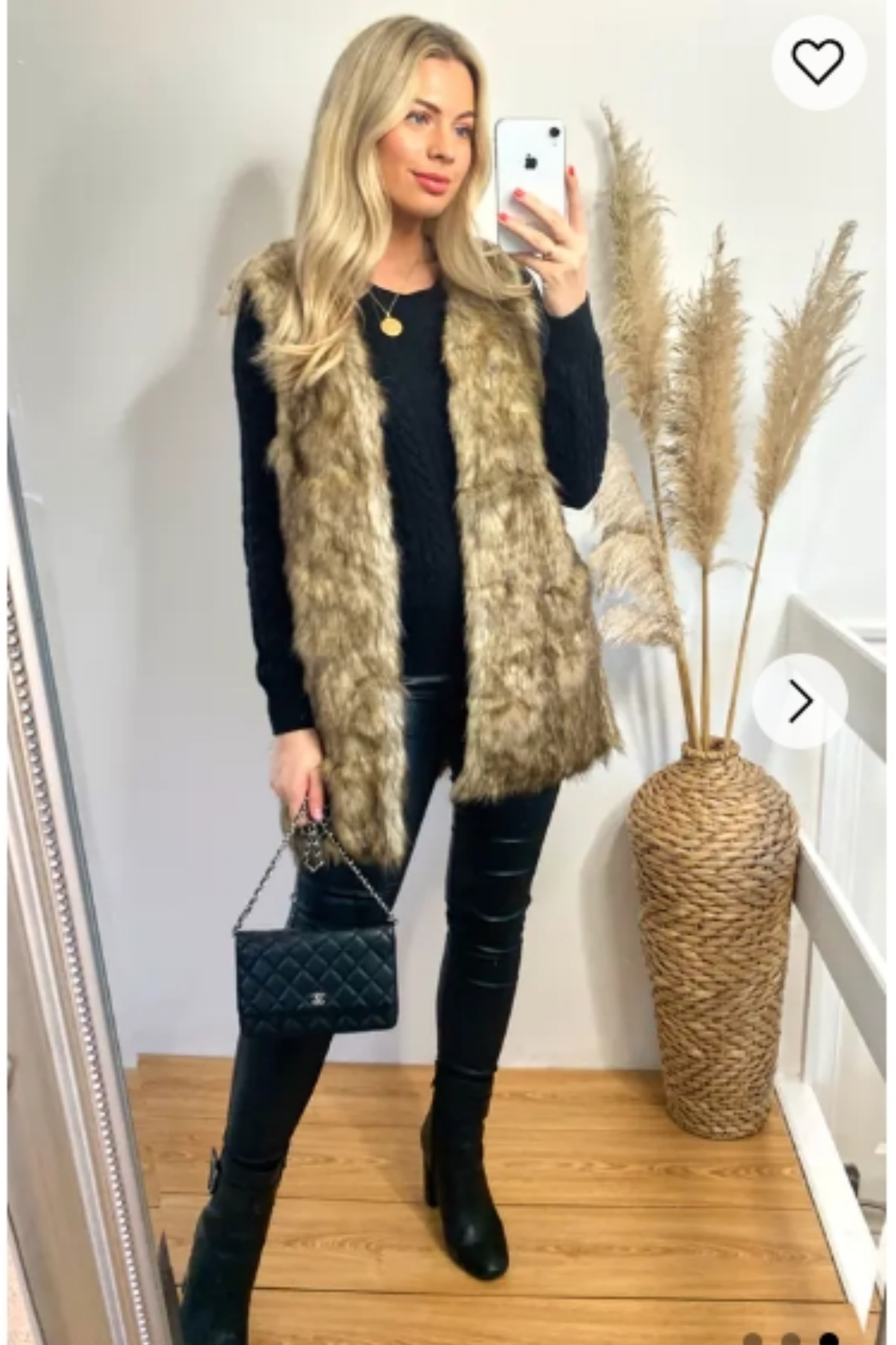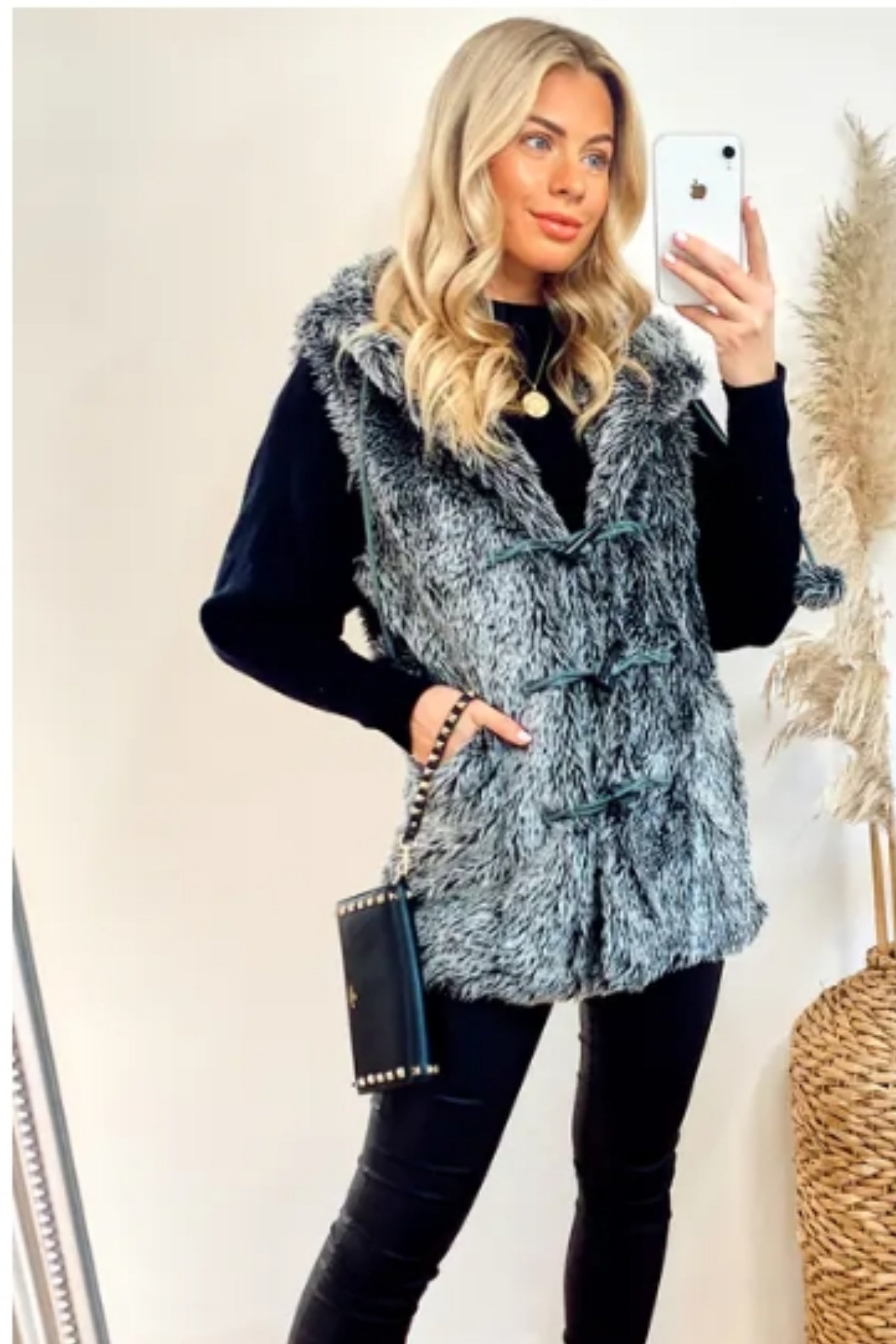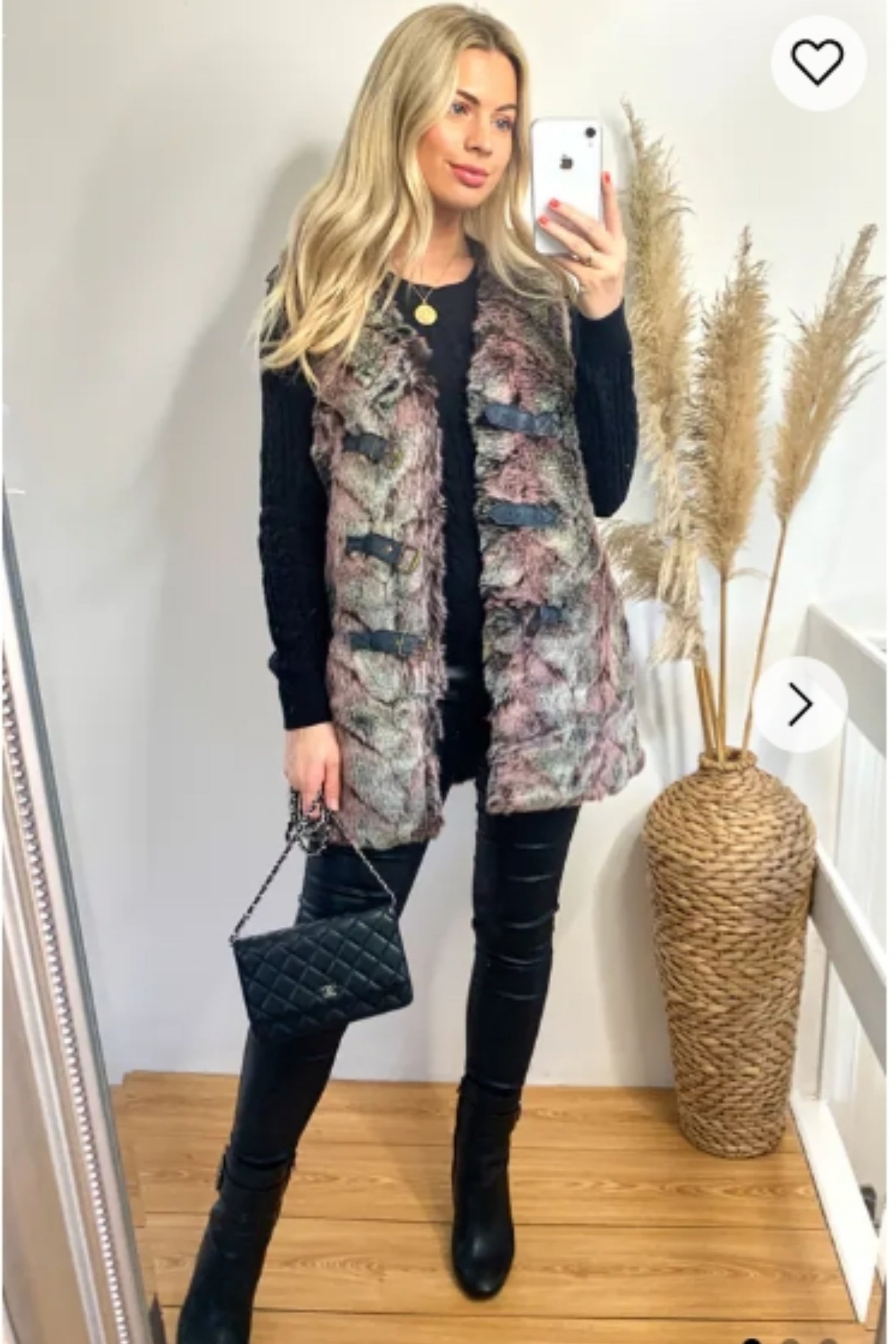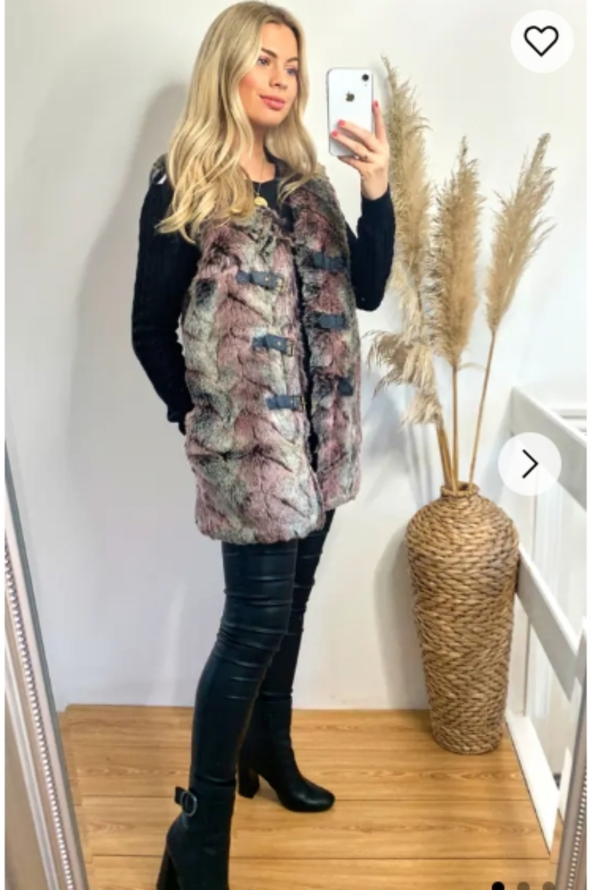 Belt fasten long Faux Fur Gilet (Mix Brown)