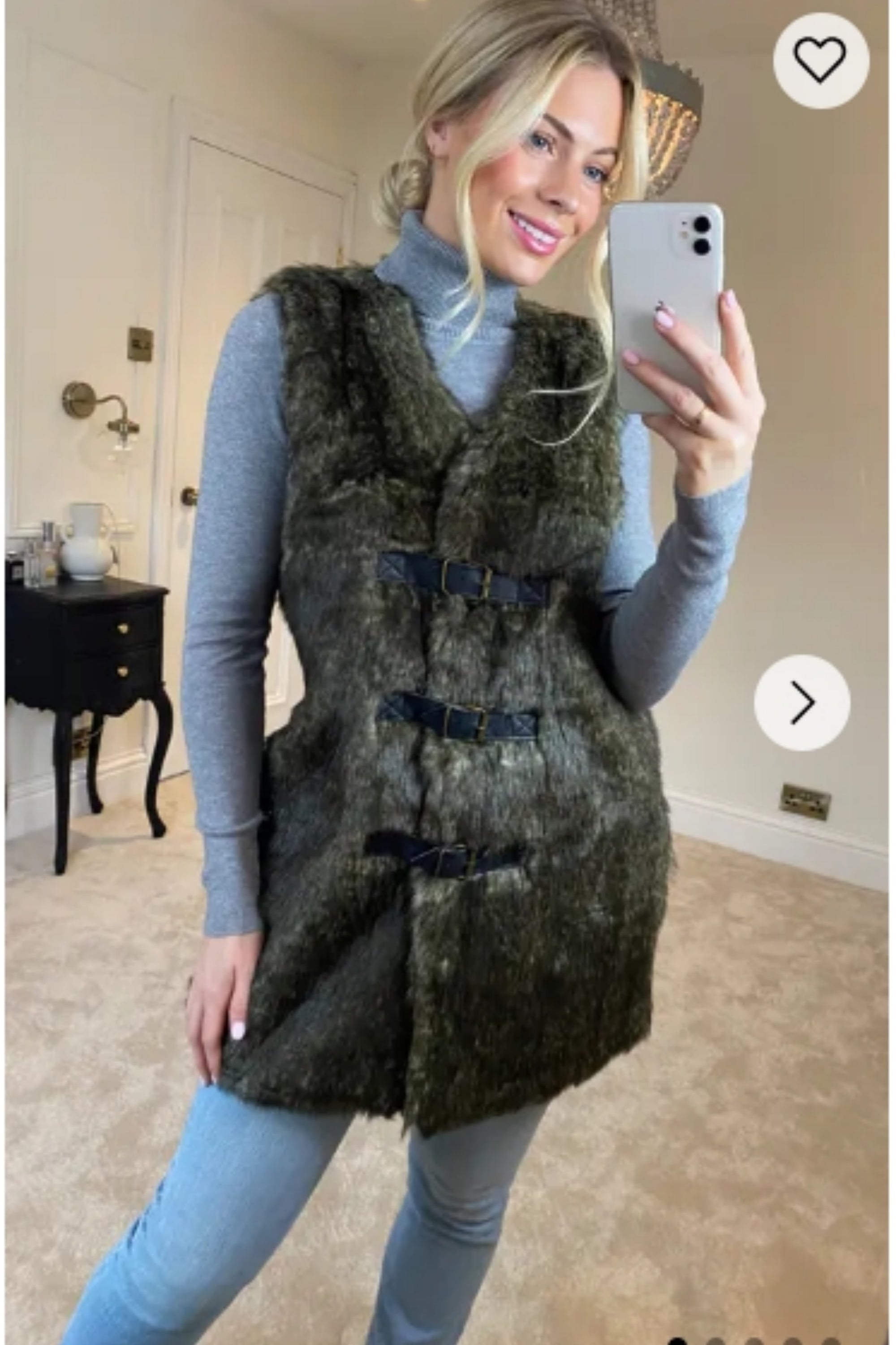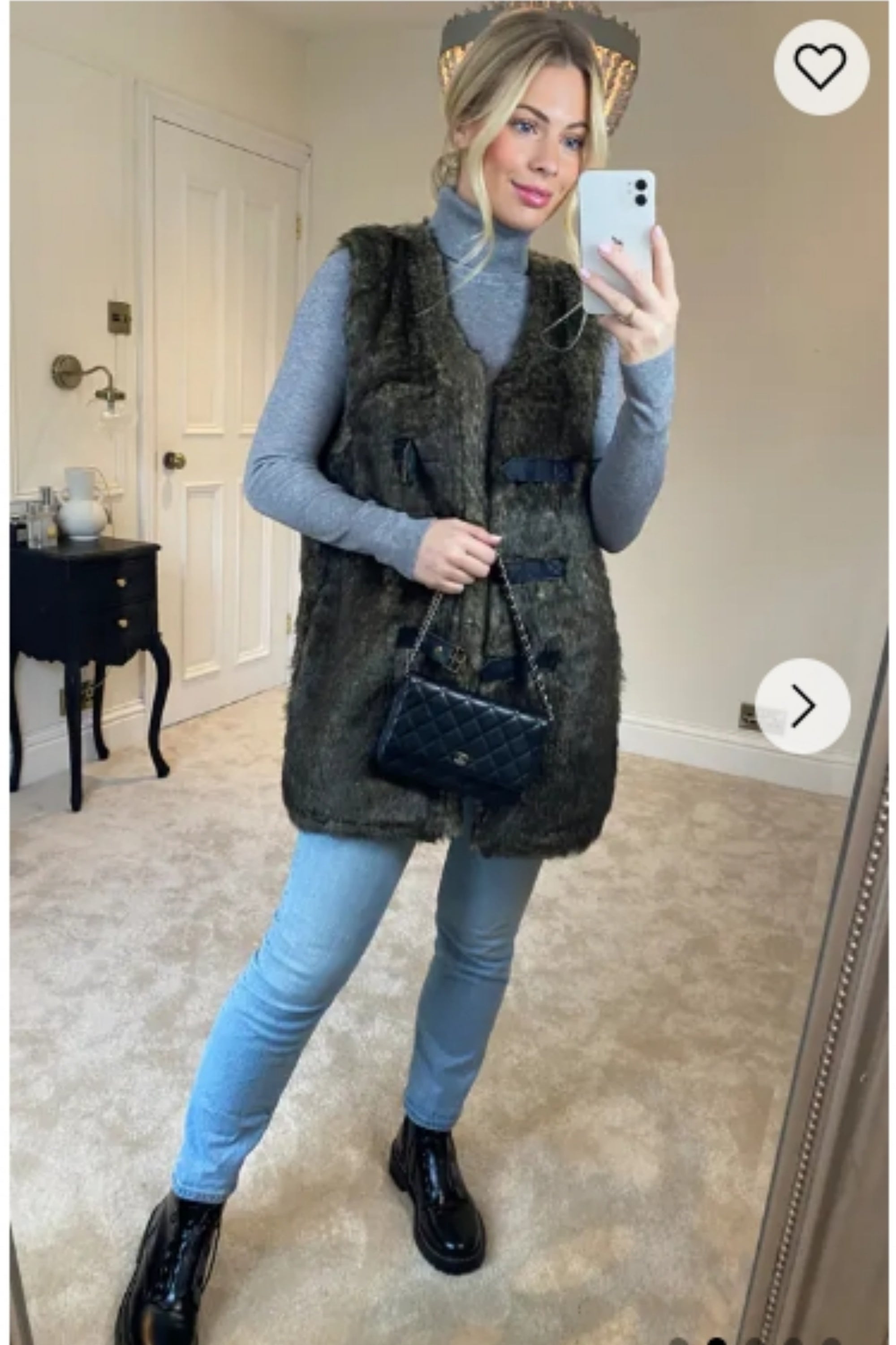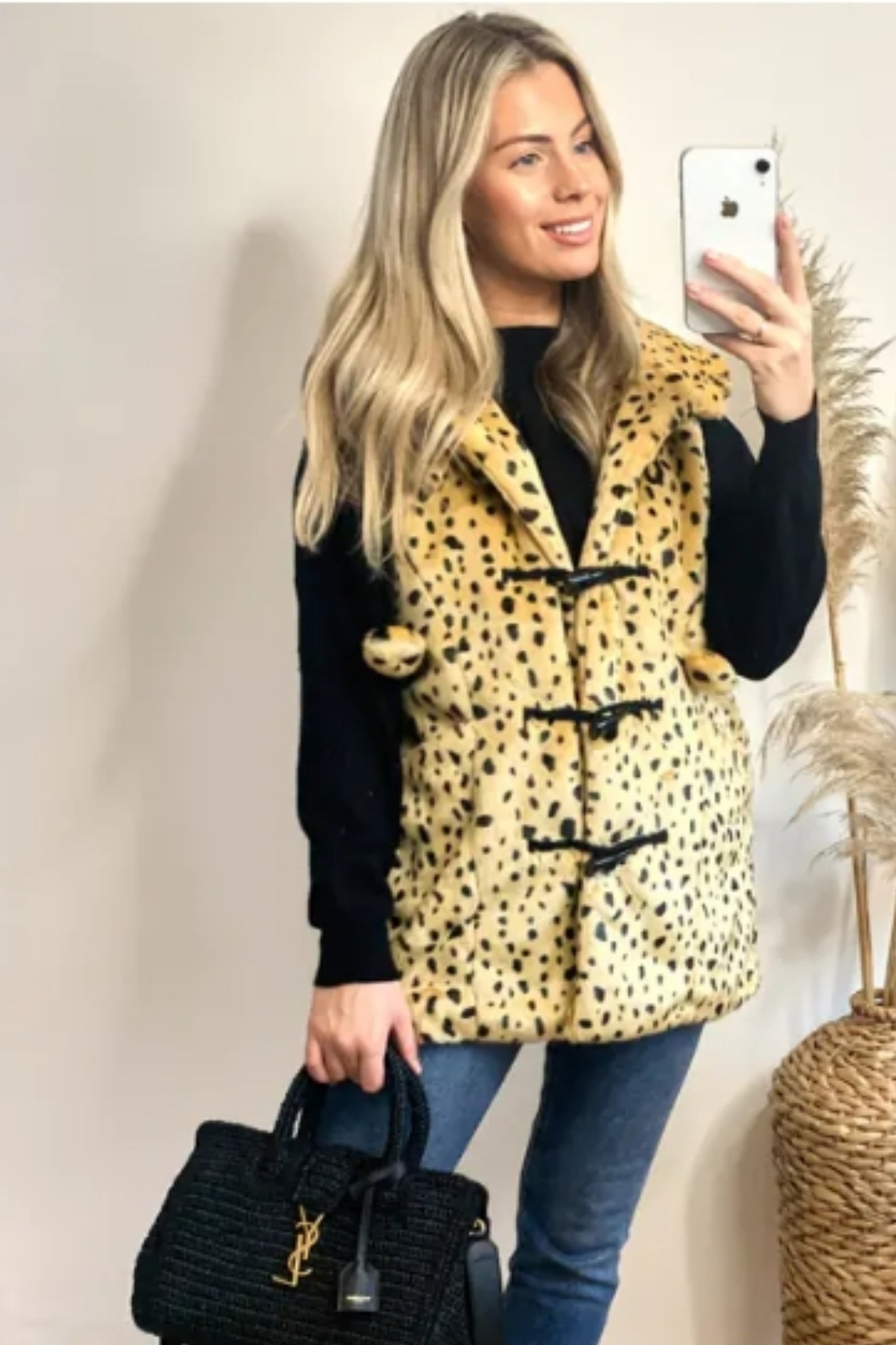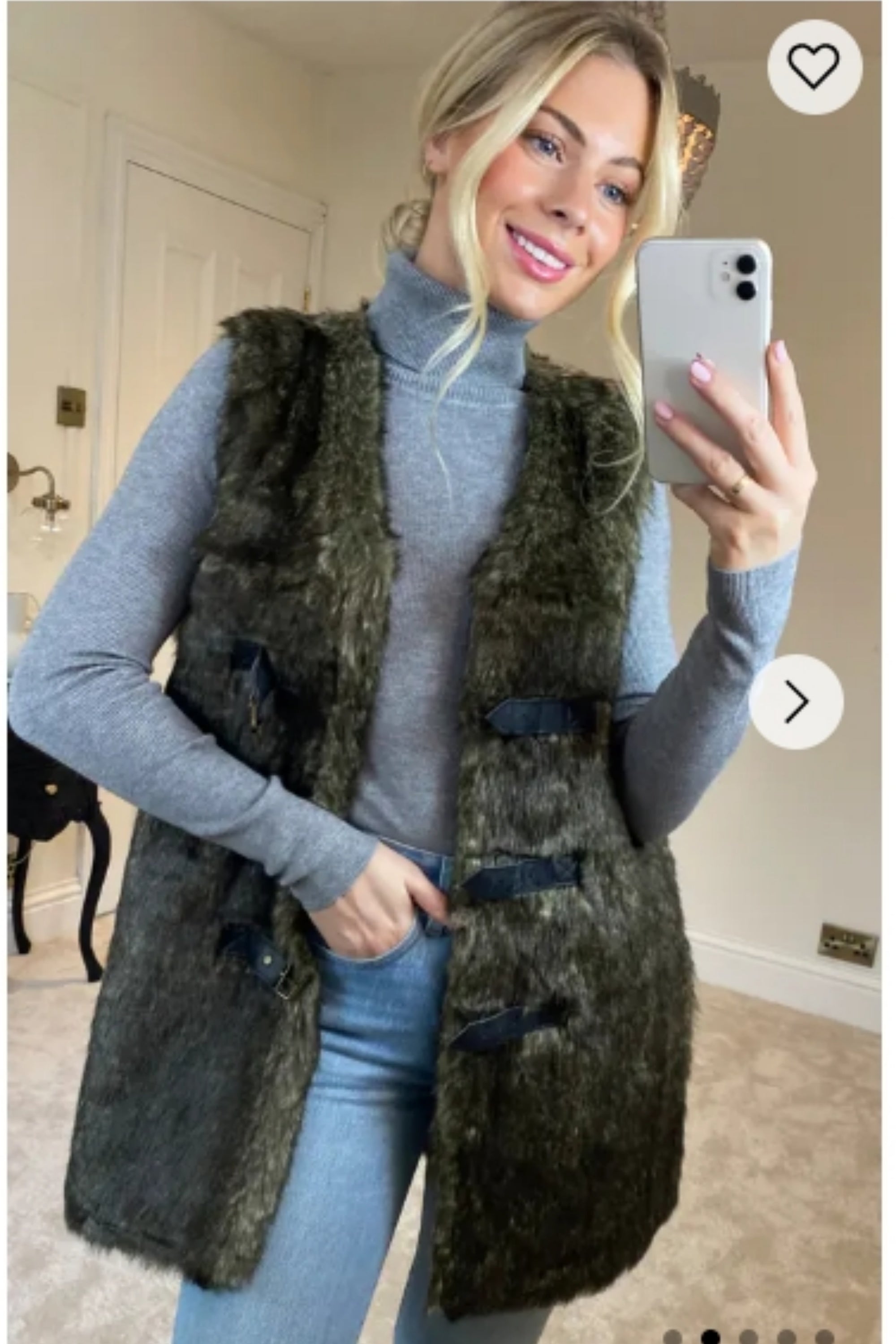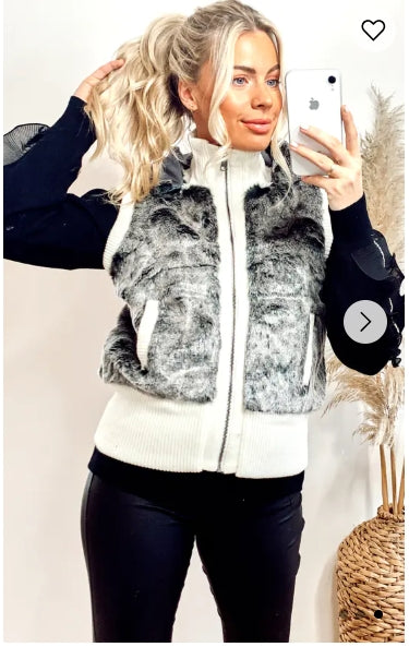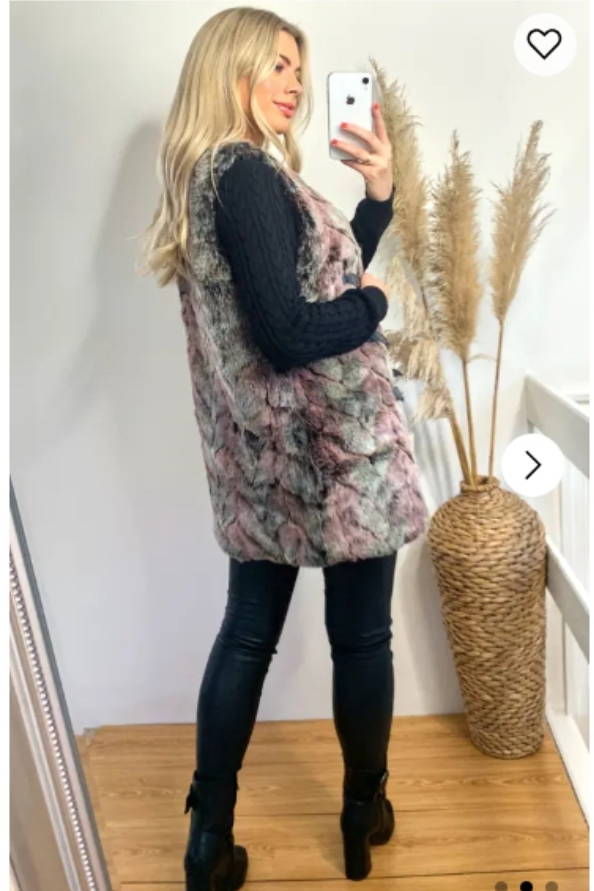 Belt fasten long Faux Fur Gilet (Mix Brown)