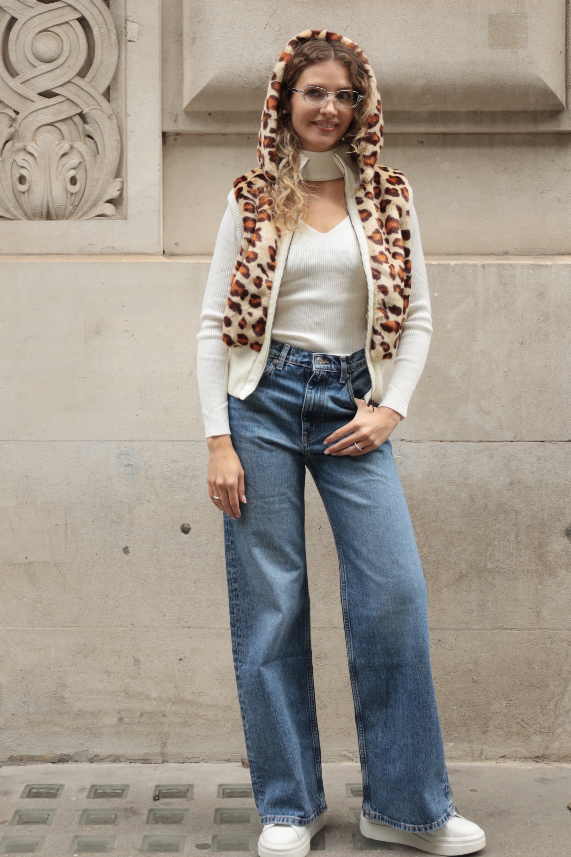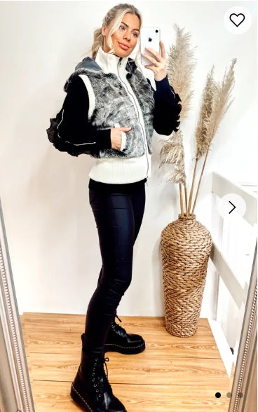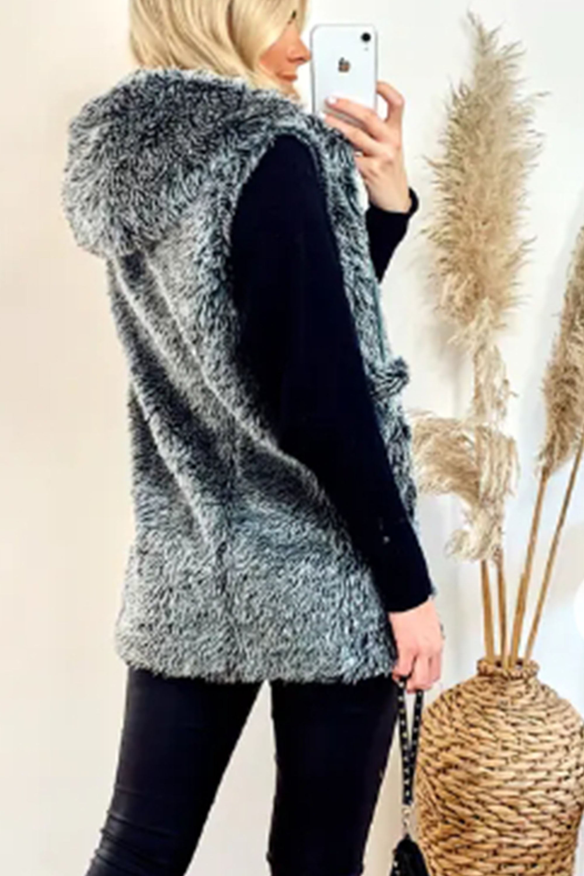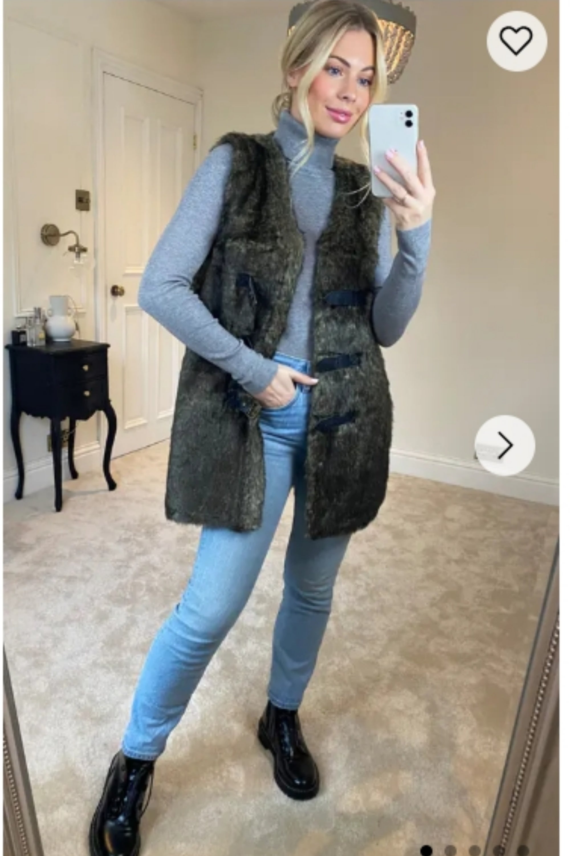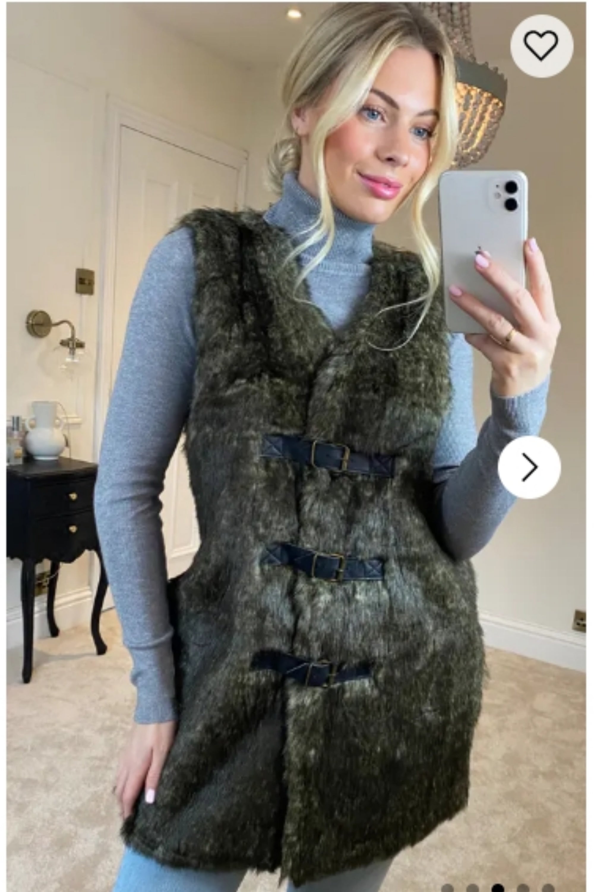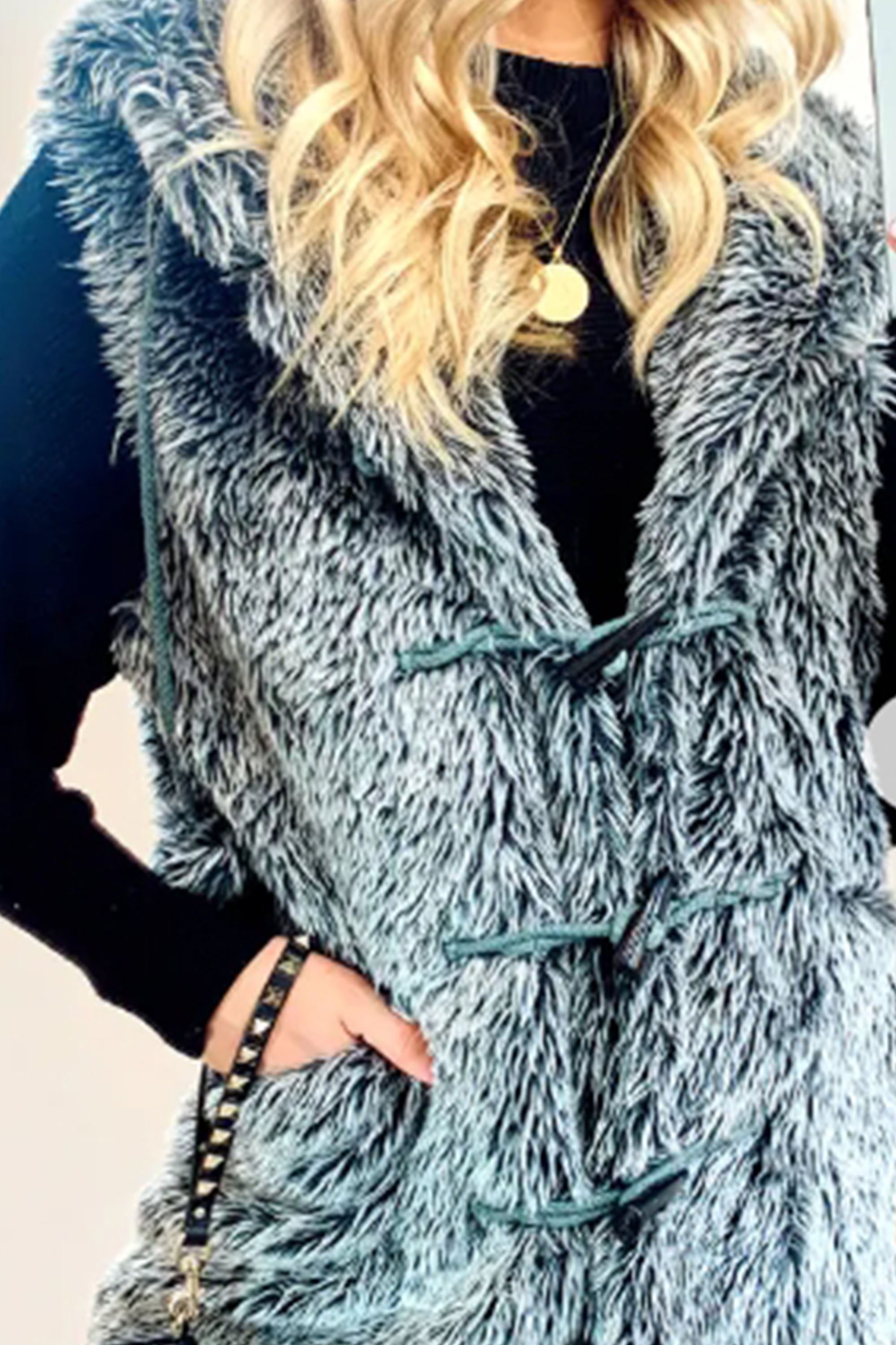 Belt fasten long Faux Fur Gilet (Mix Brown)
