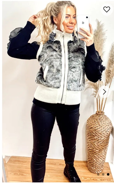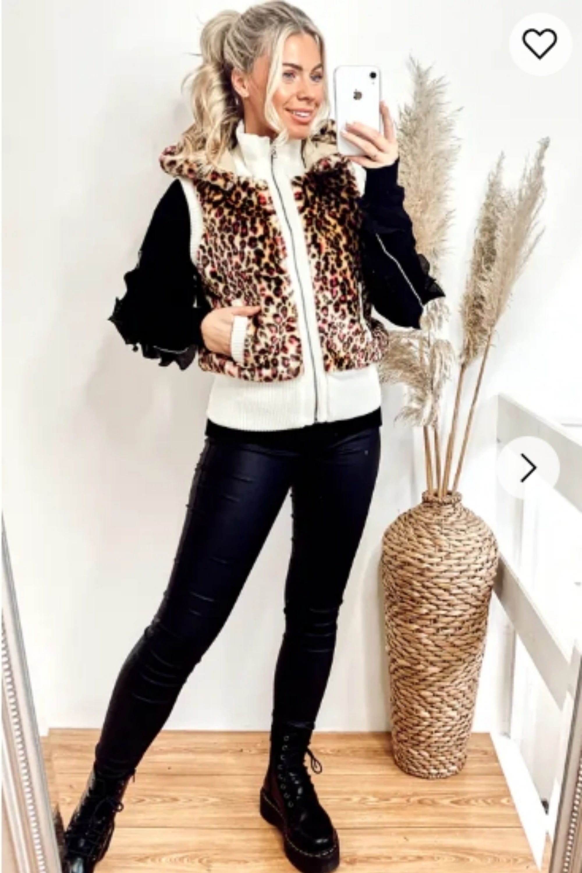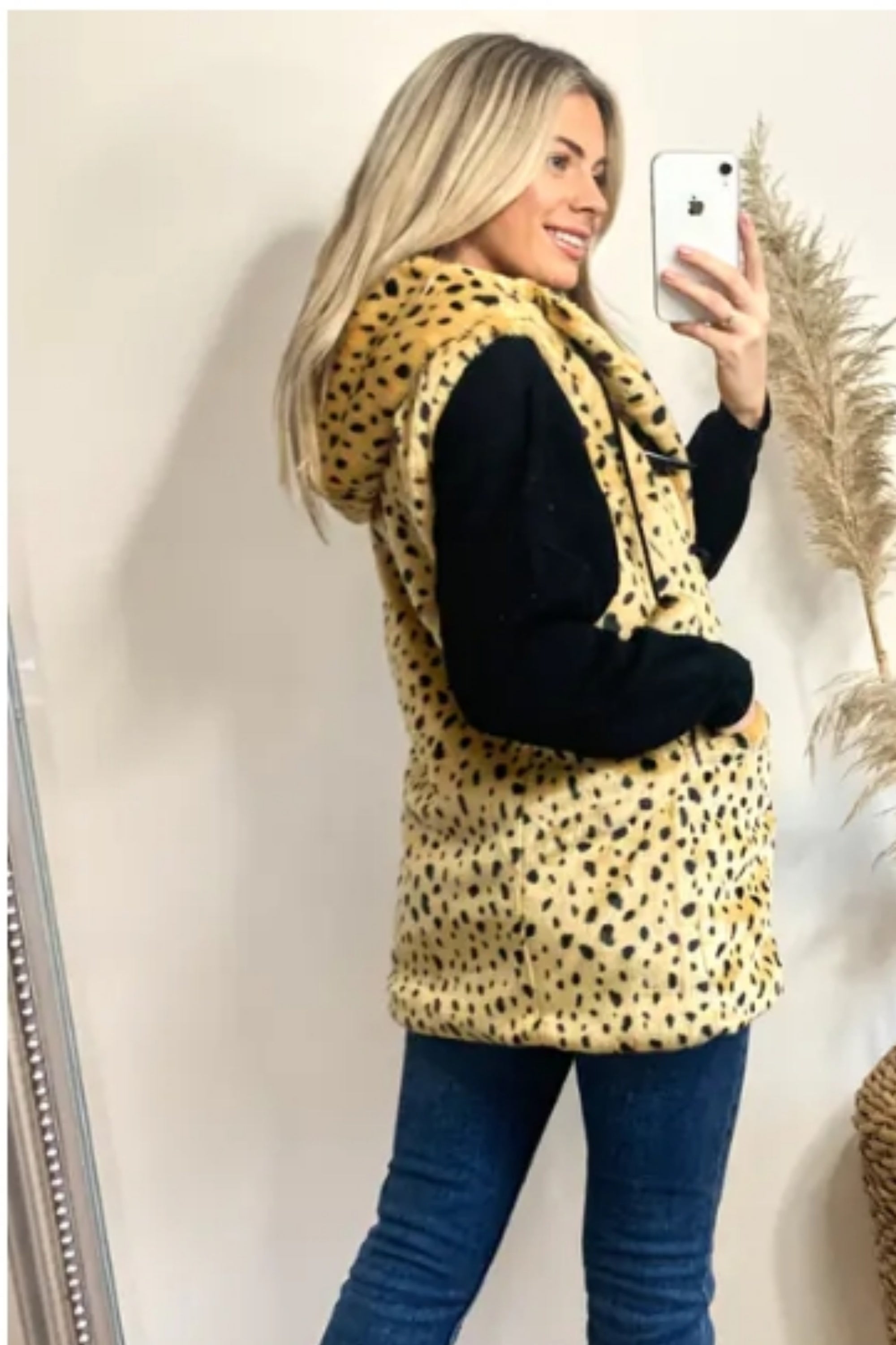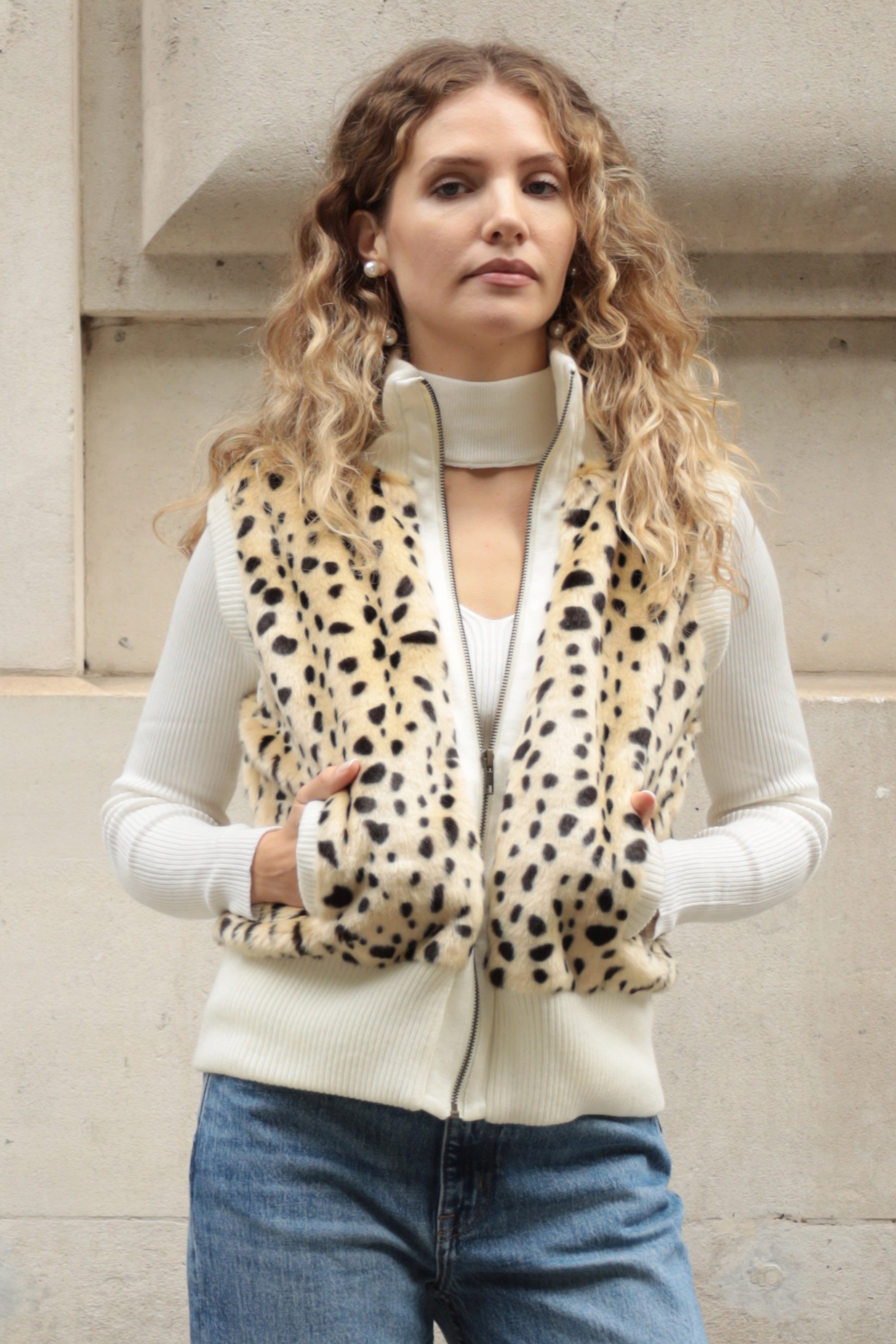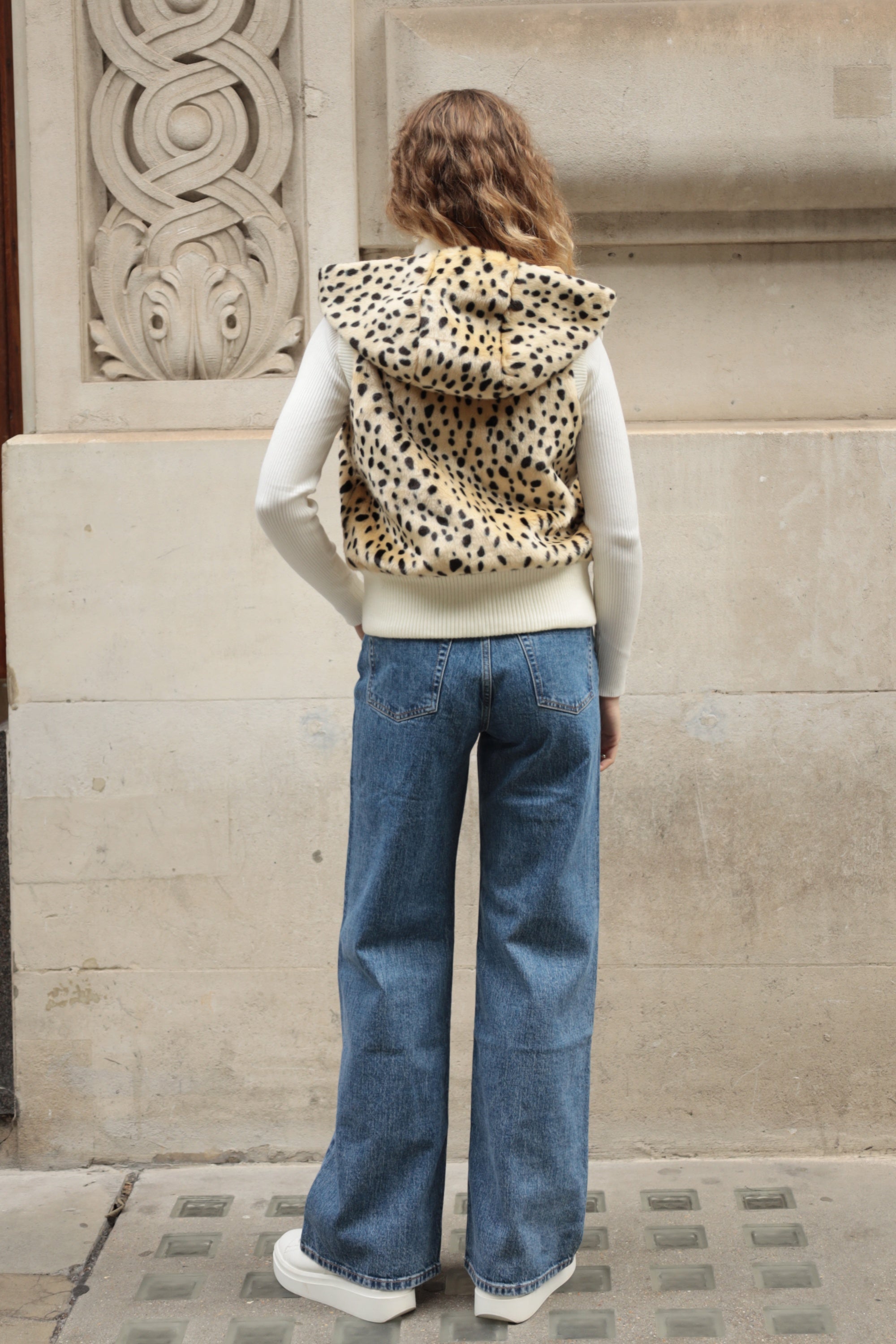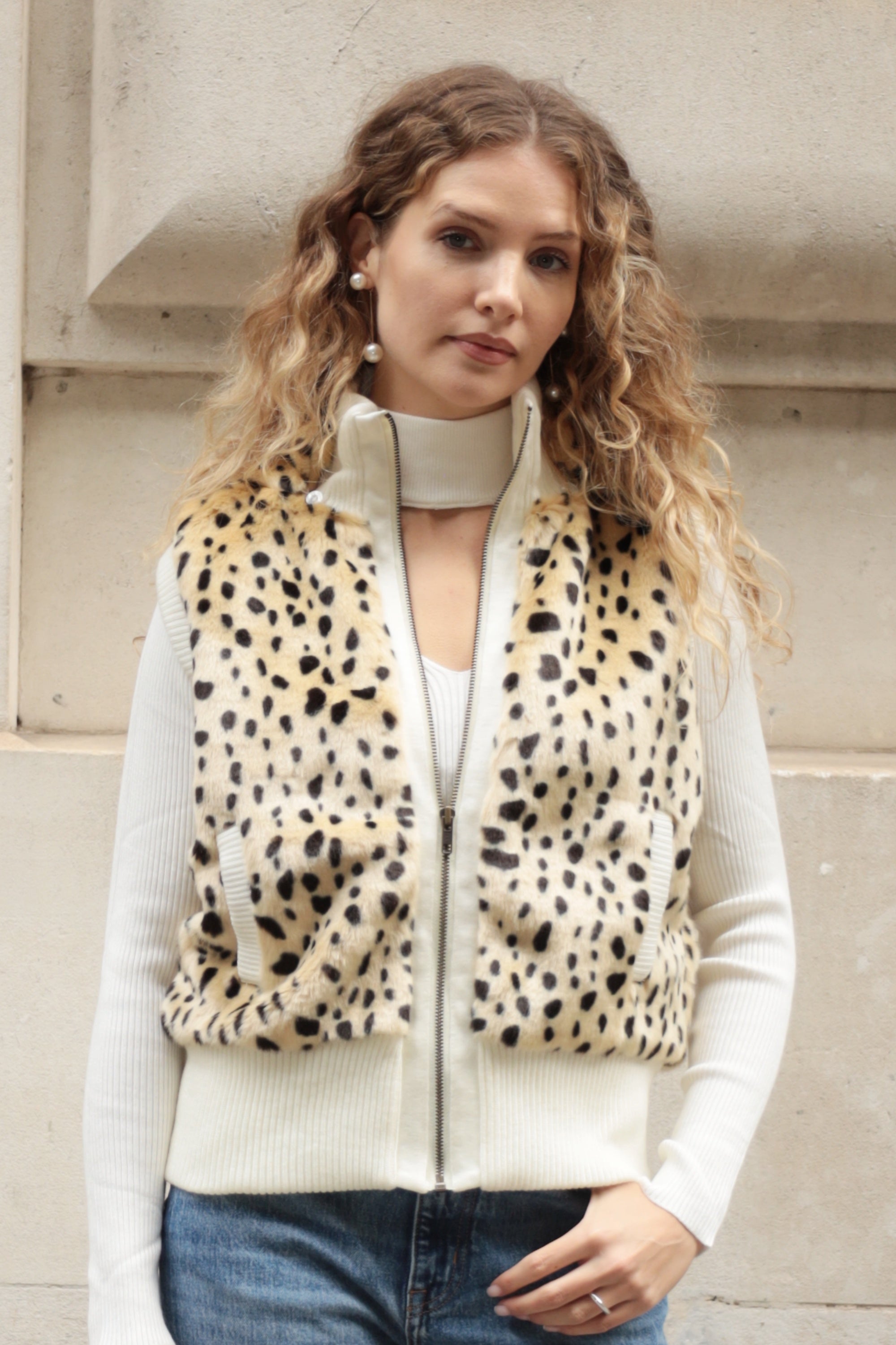 Belt fasten long Faux Fur Gilet (Mix Brown)