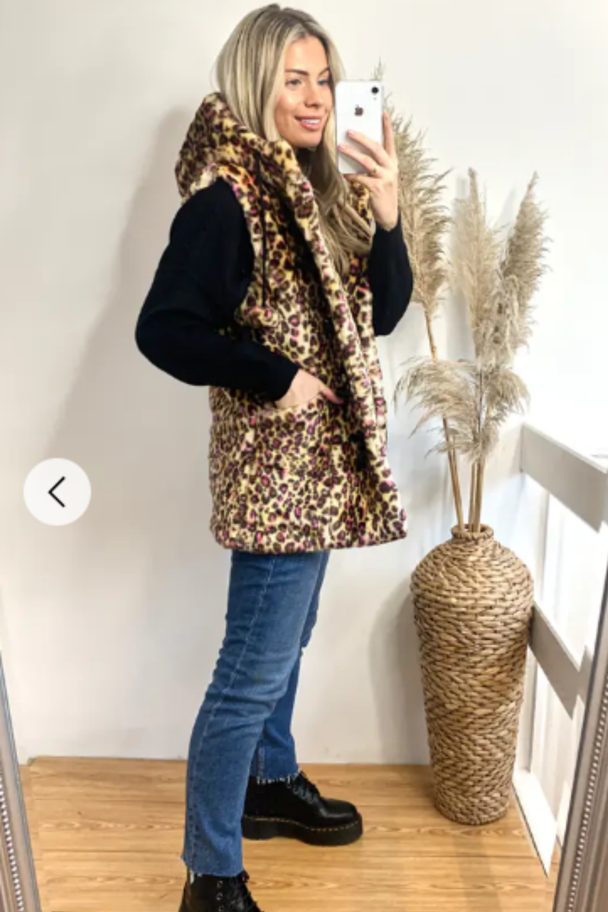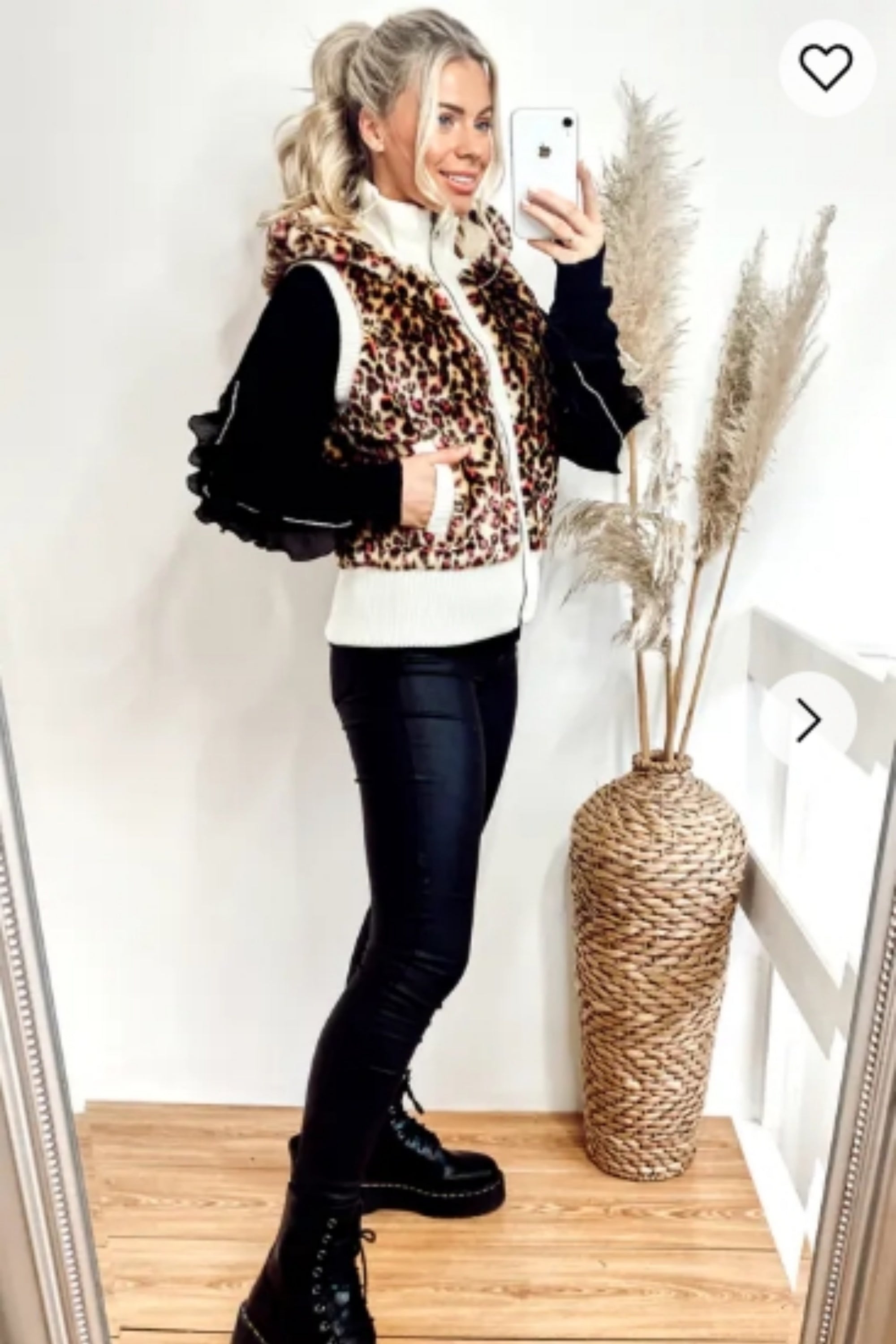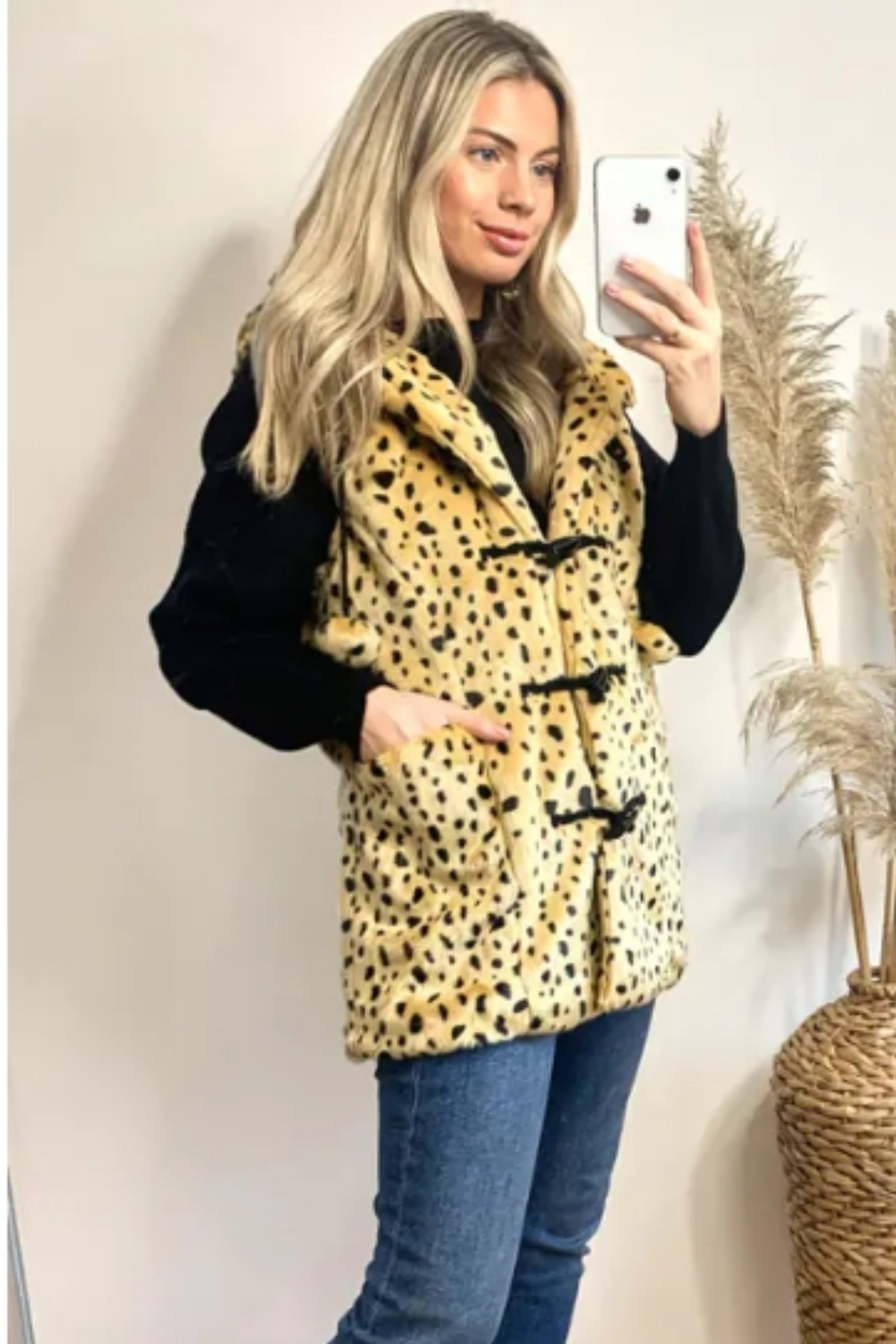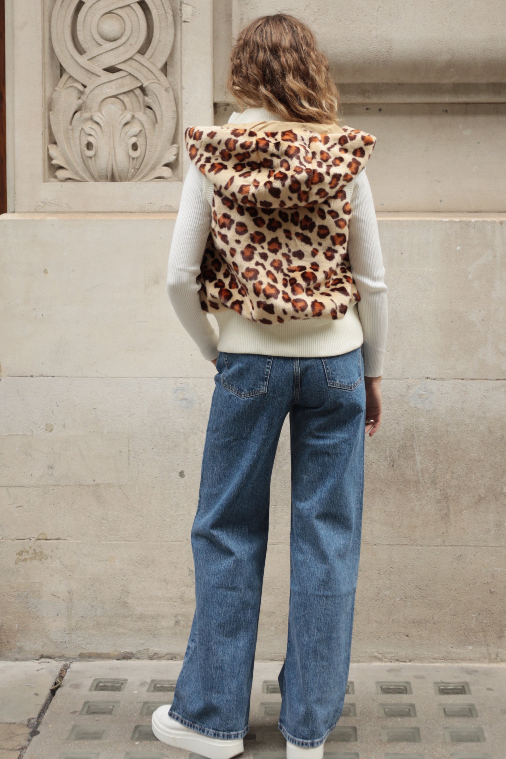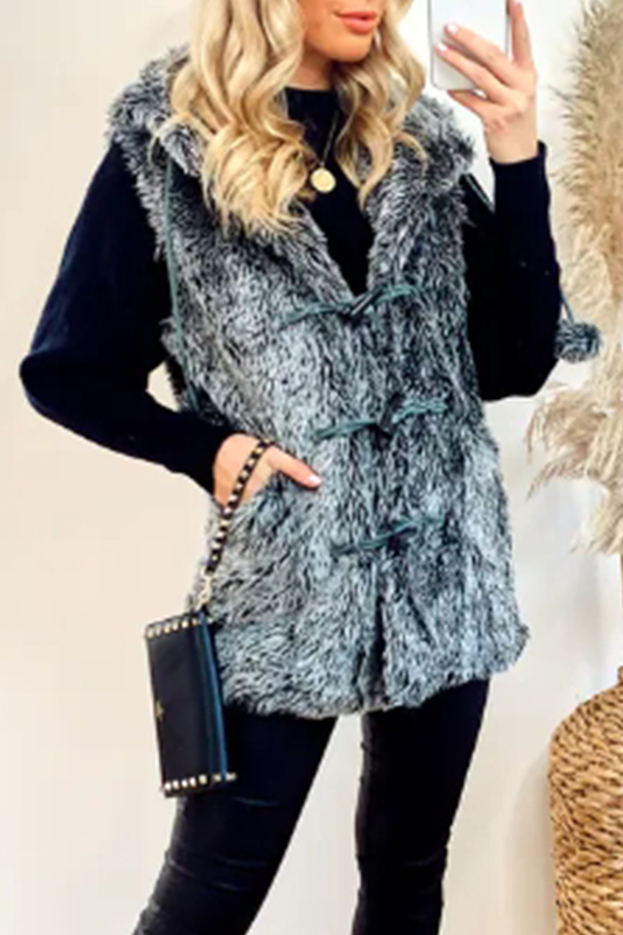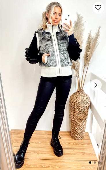 Belt fasten long Faux Fur Gilet (Mix Brown)