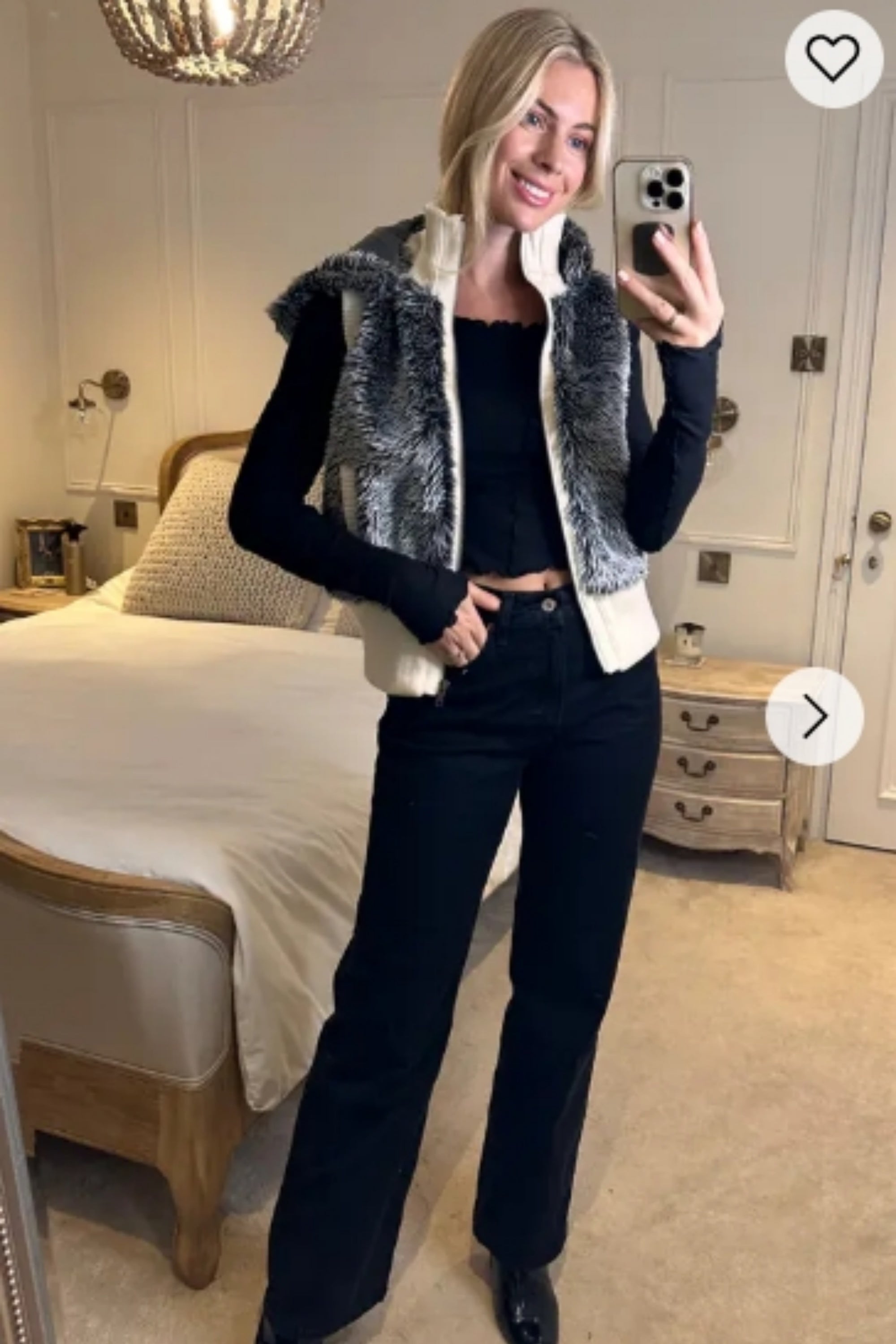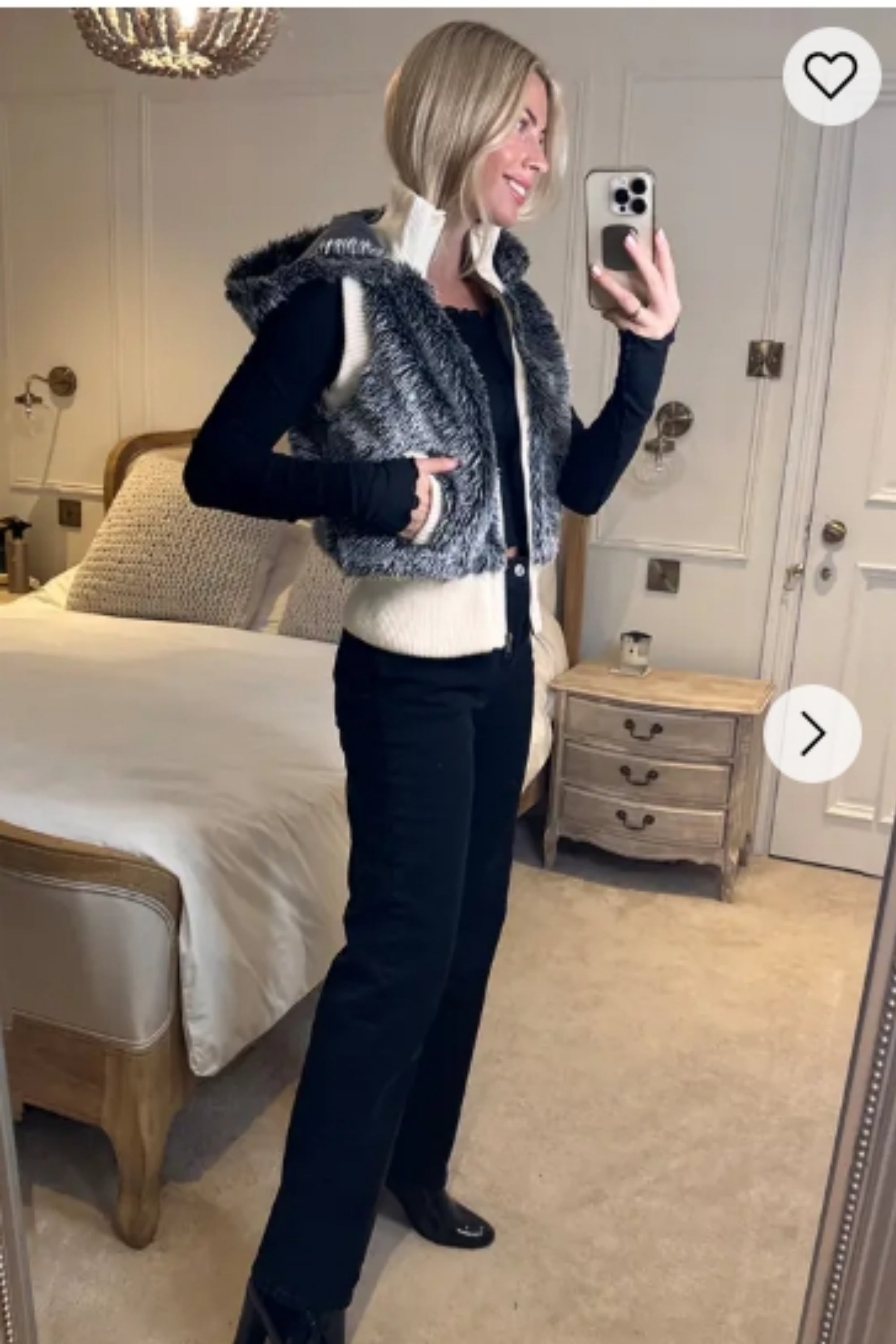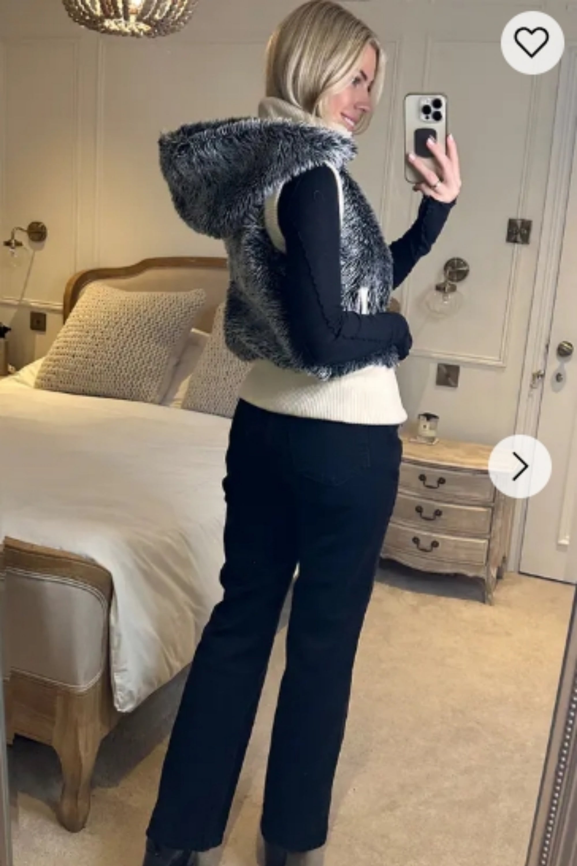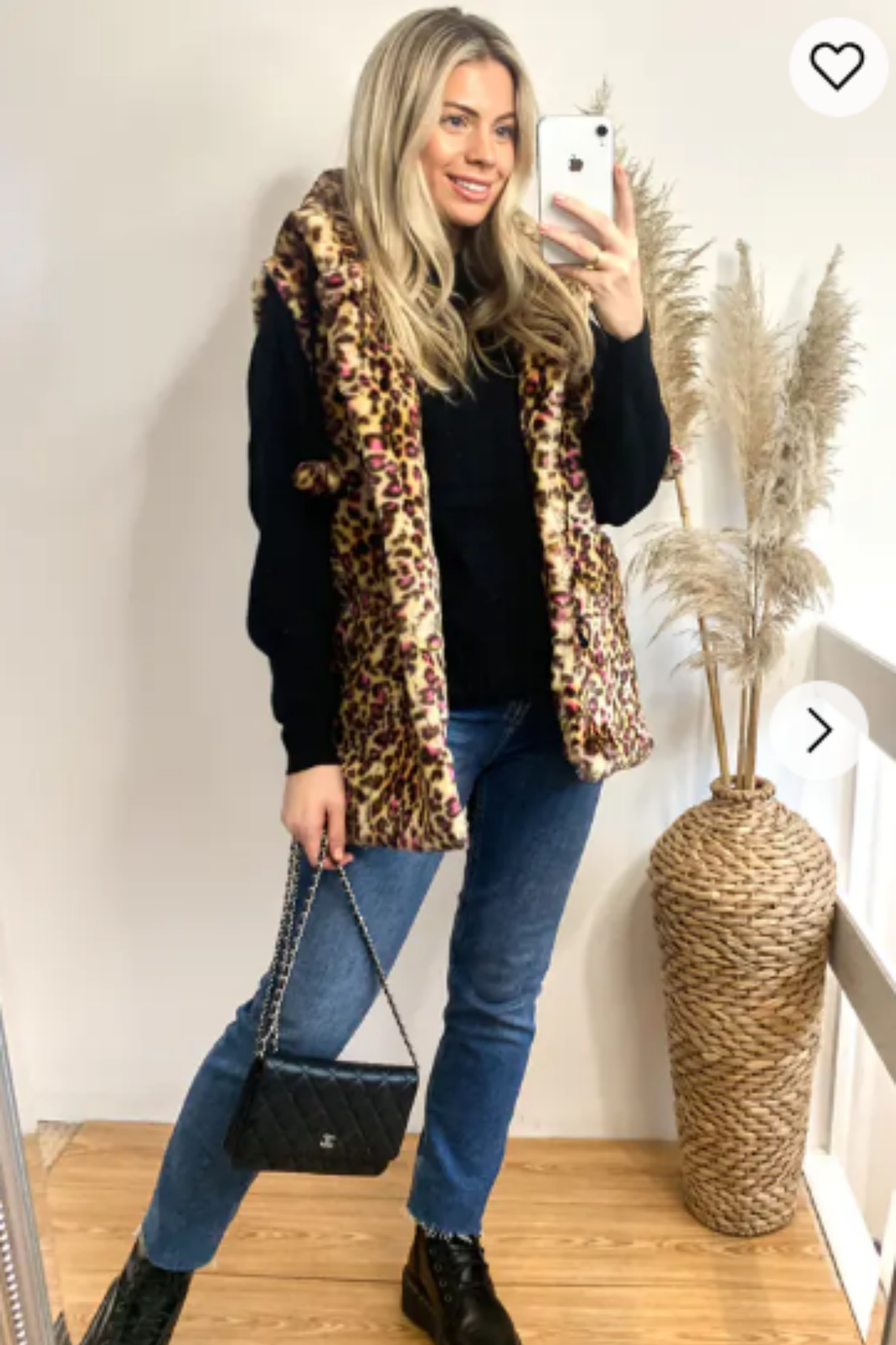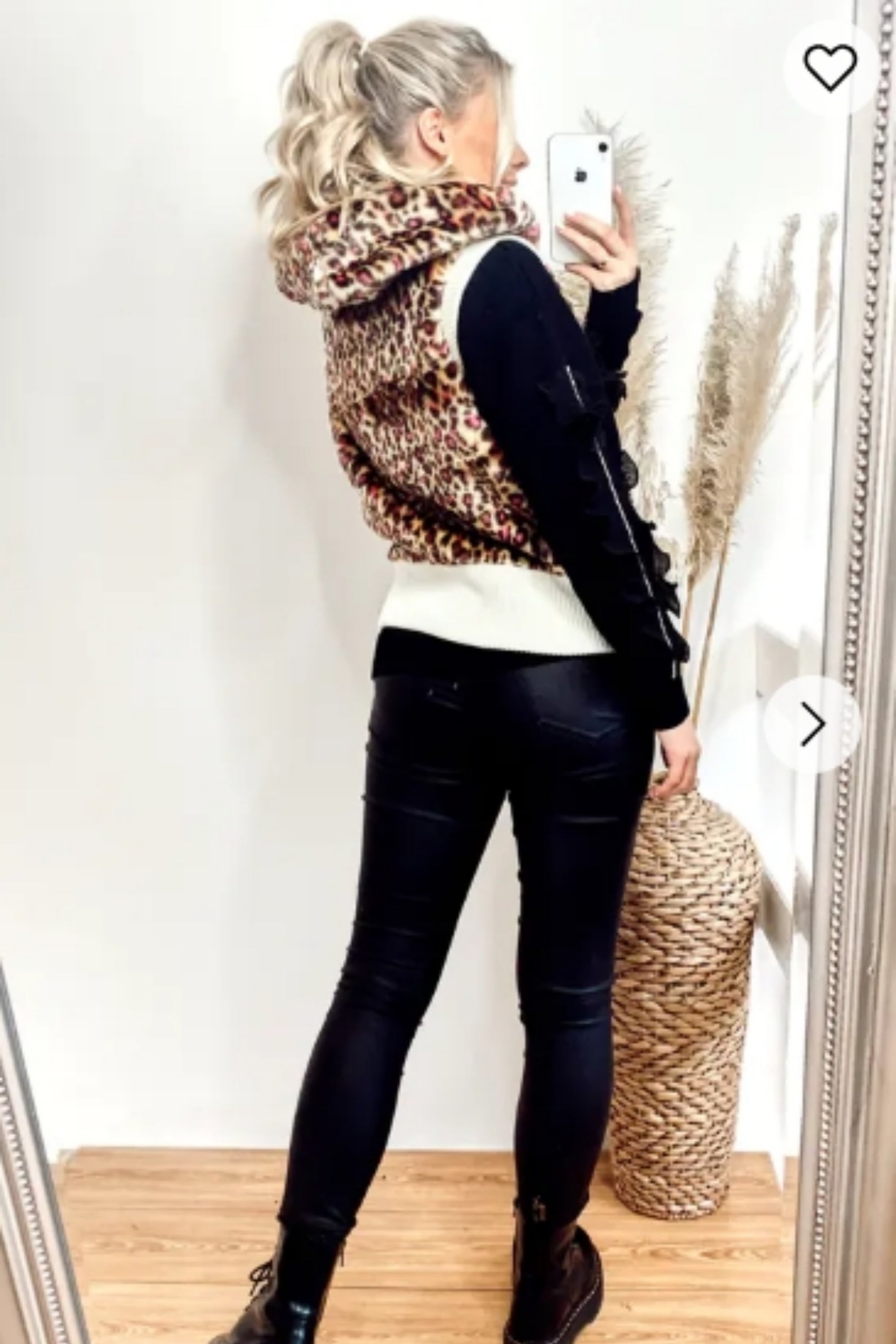 Belt fasten long Faux Fur Gilet (Mix Brown)