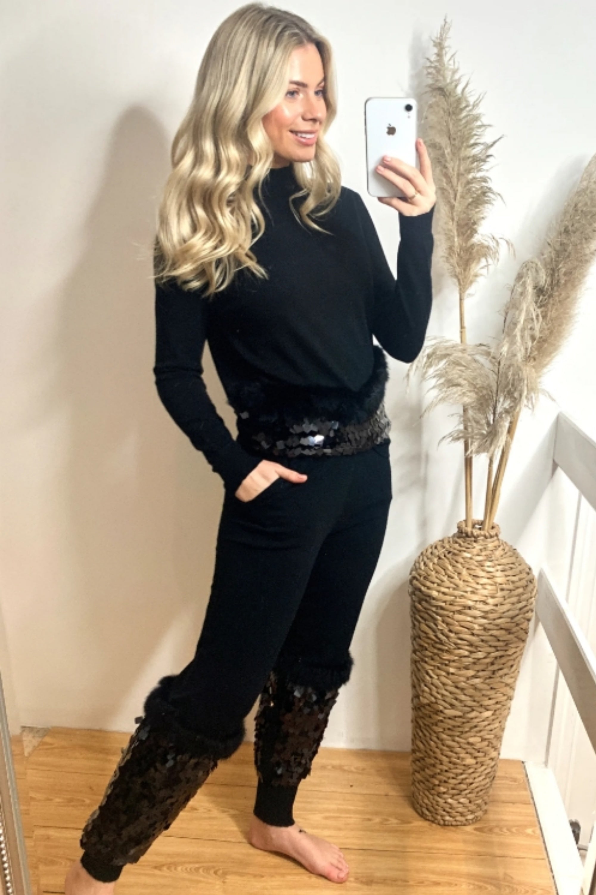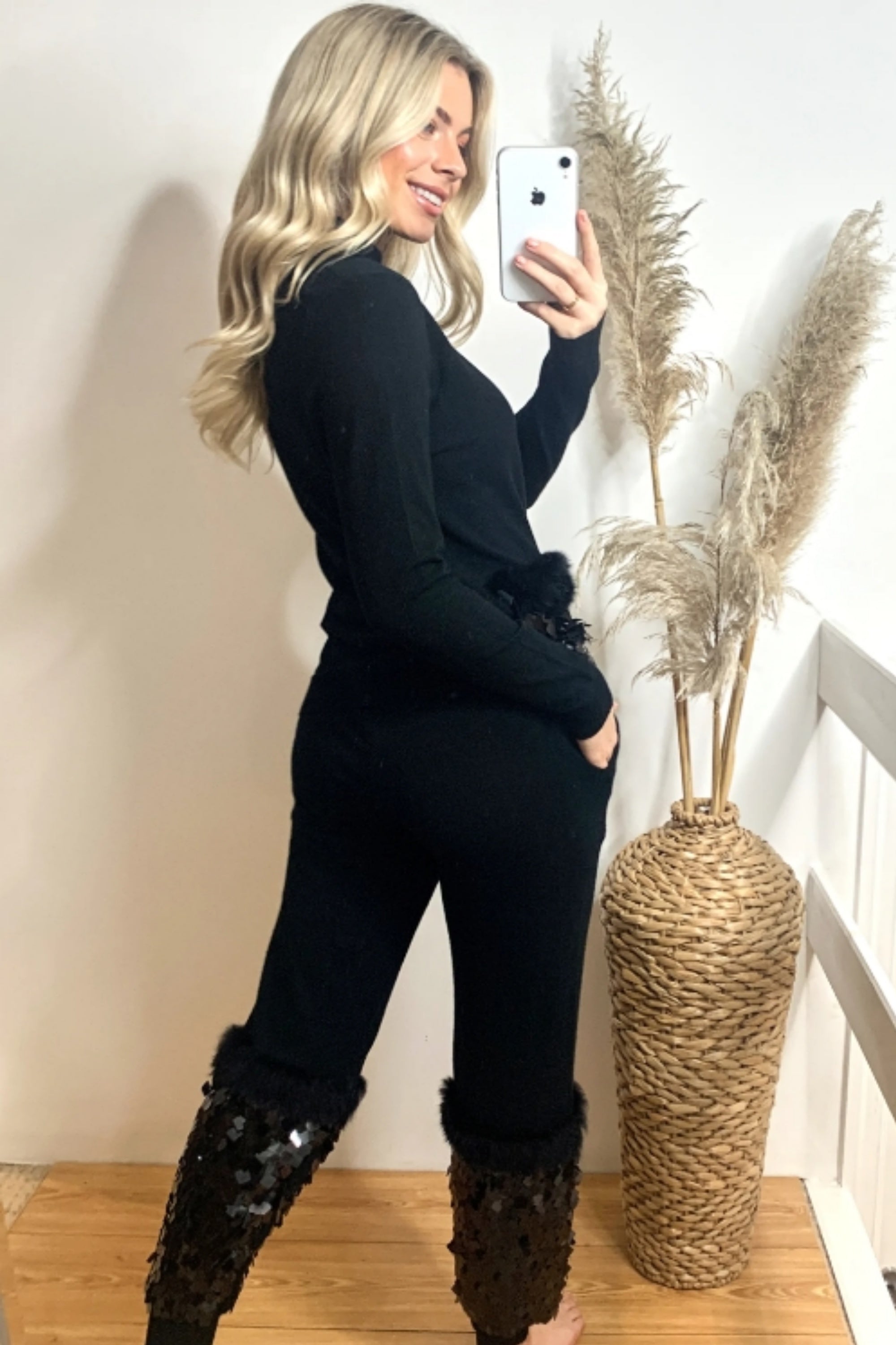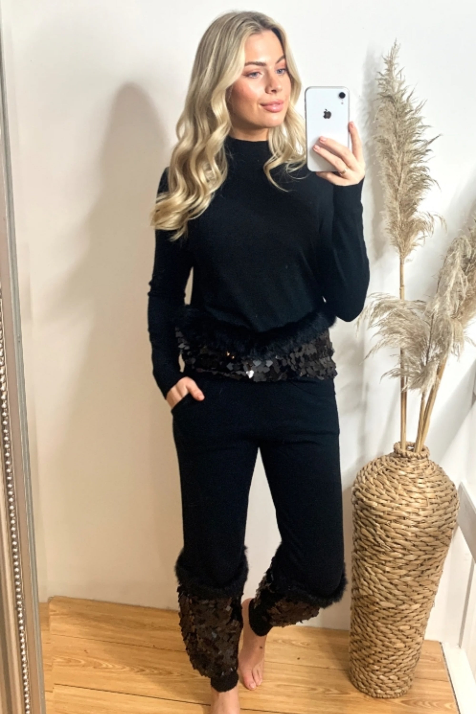 Knit Top & Trousers Co-Ord with Faux fur & Sequins