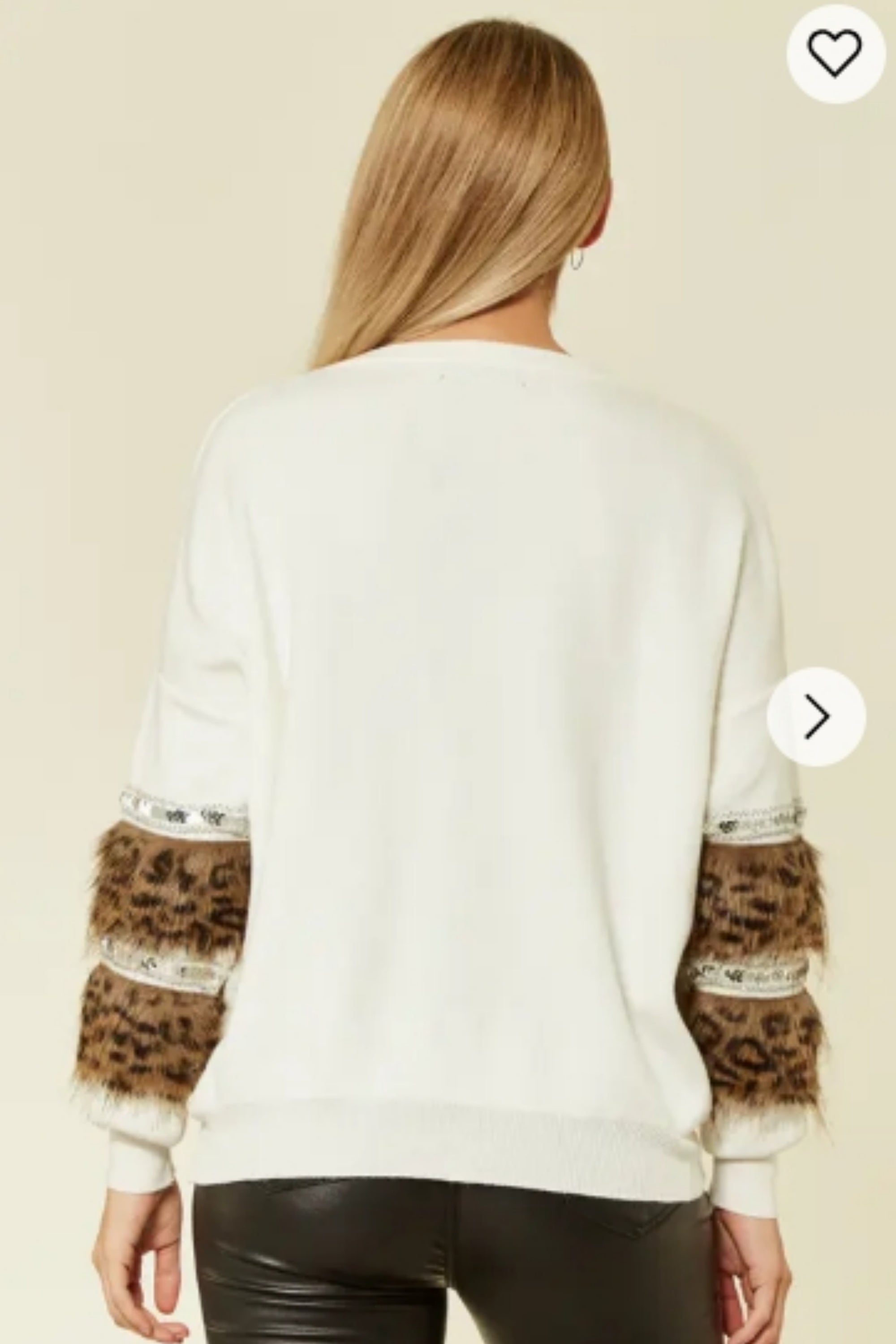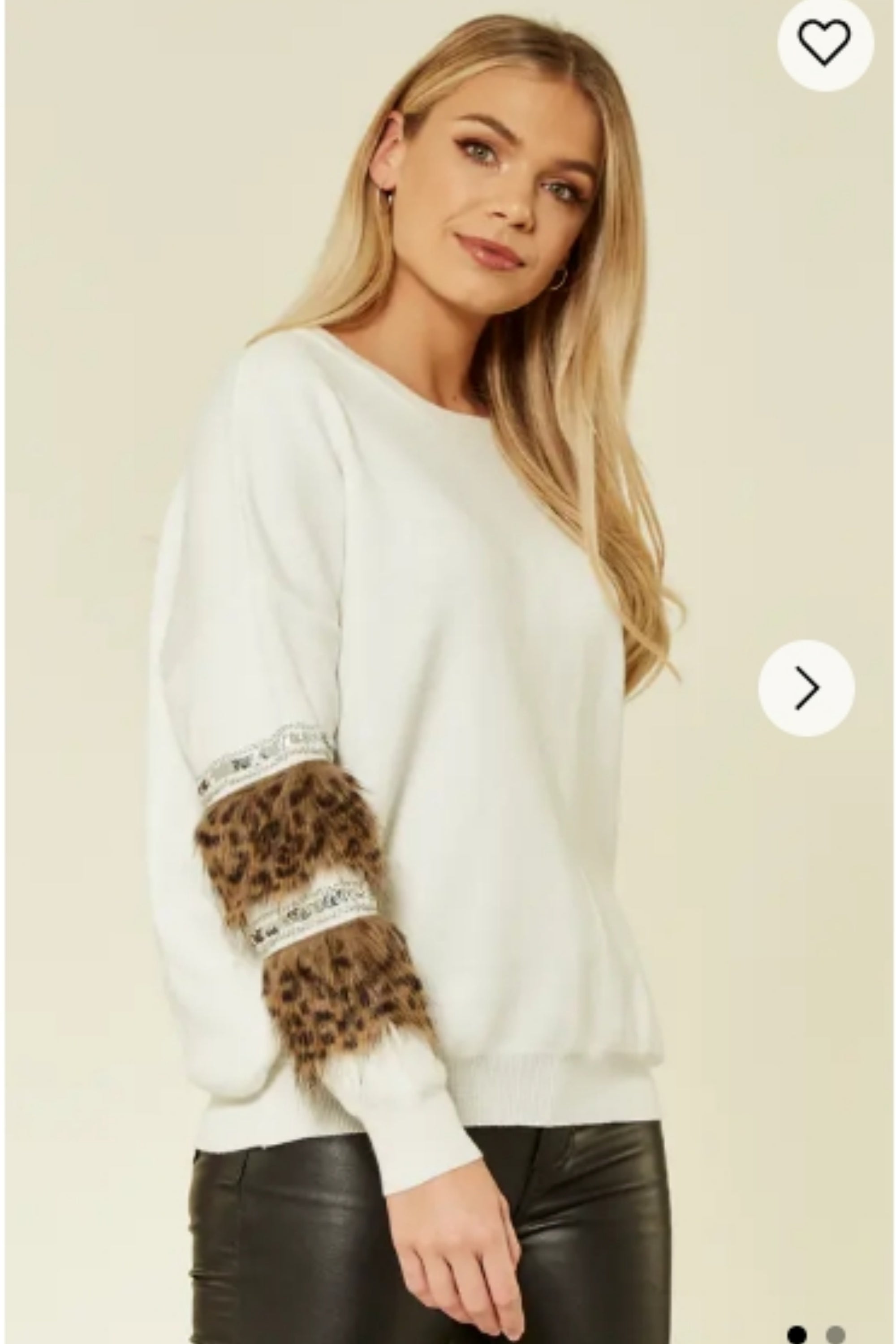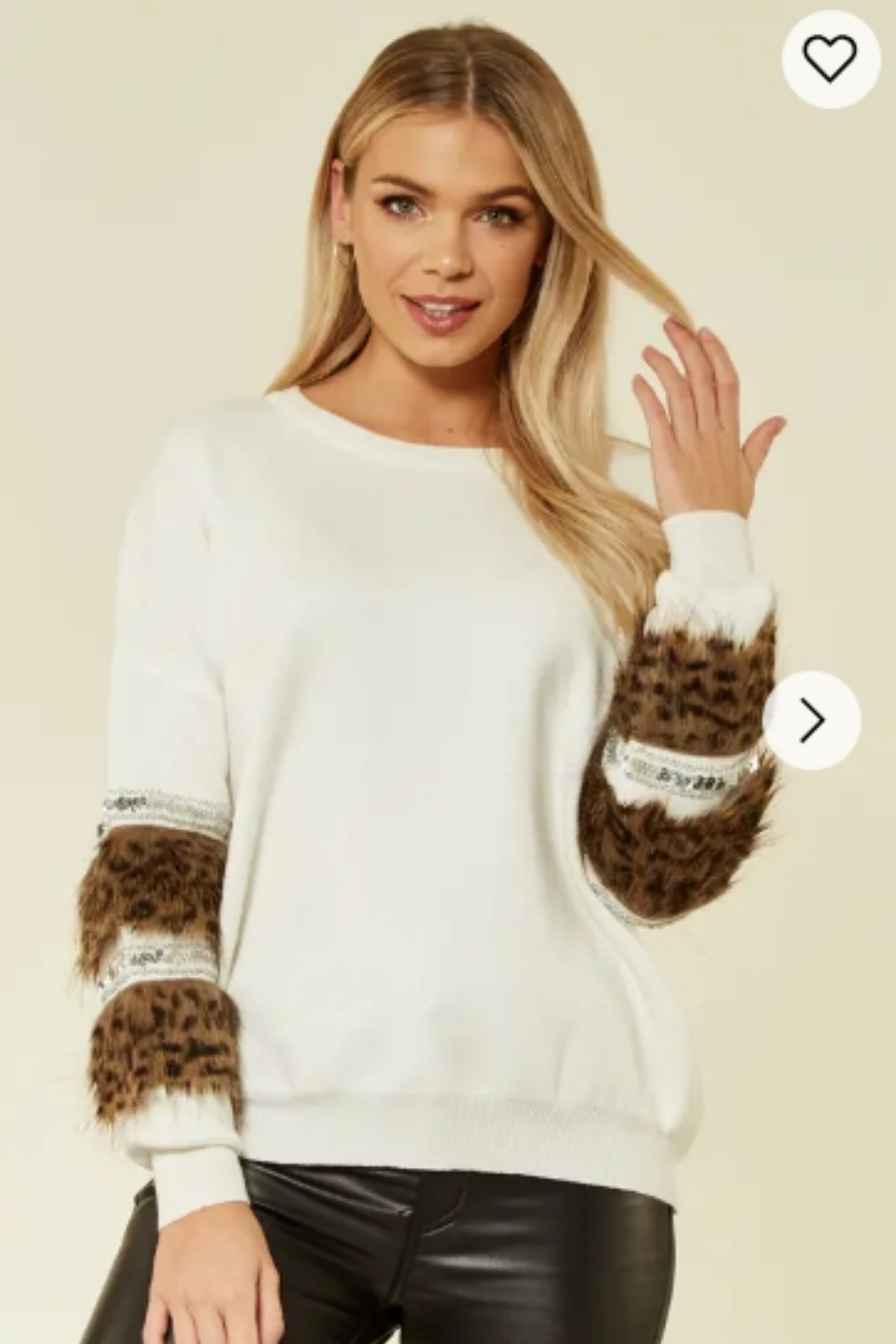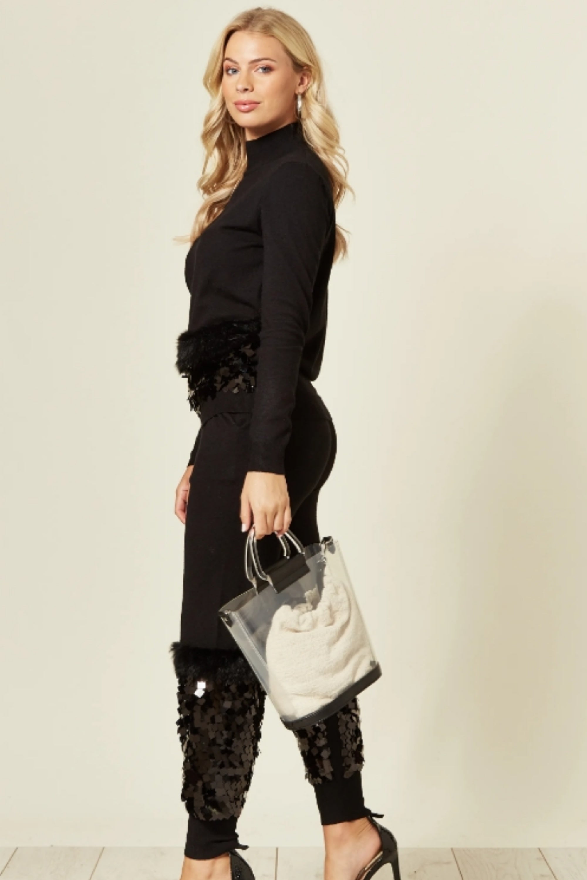 Knit Top & Trousers Co-Ord with Faux fur & Sequins
