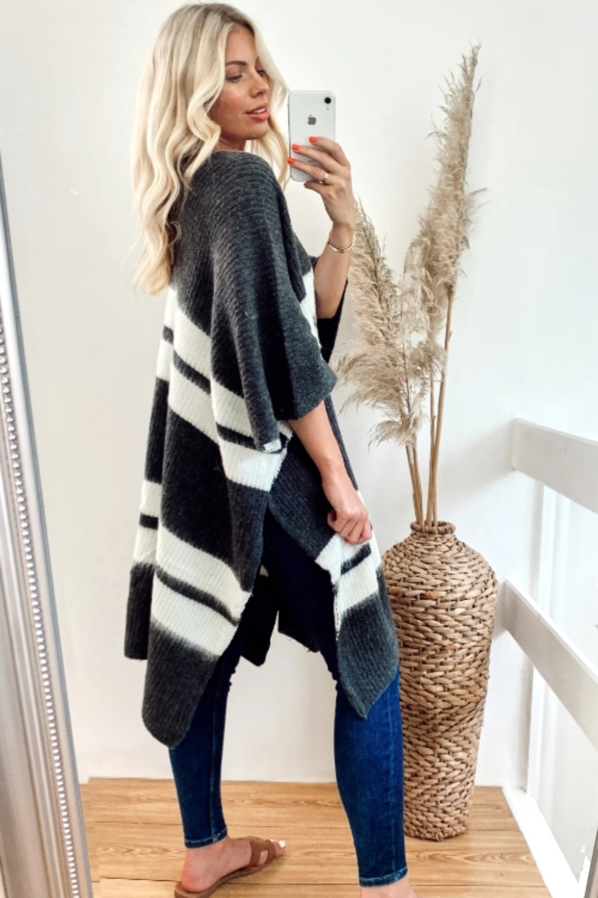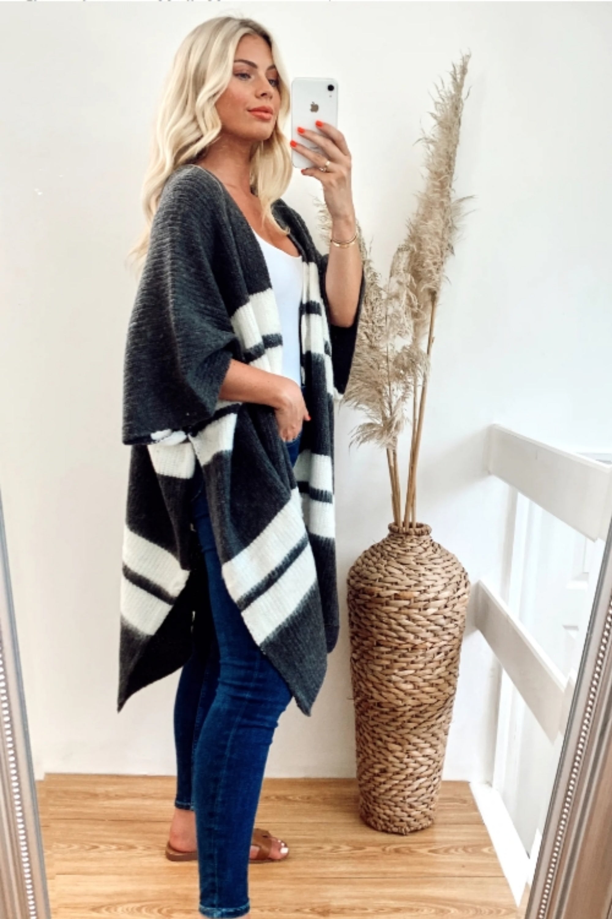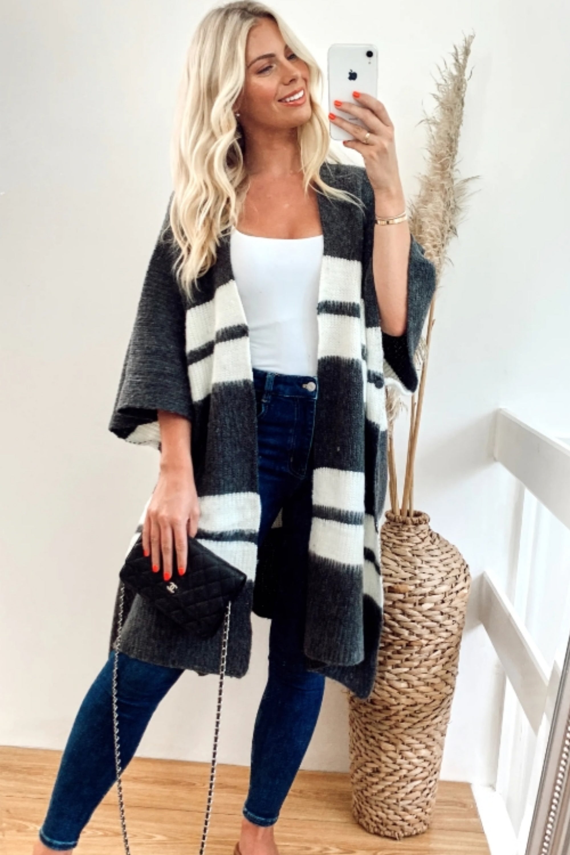 Waterfall collar Knitted cardigan with chiffon detail (White)
