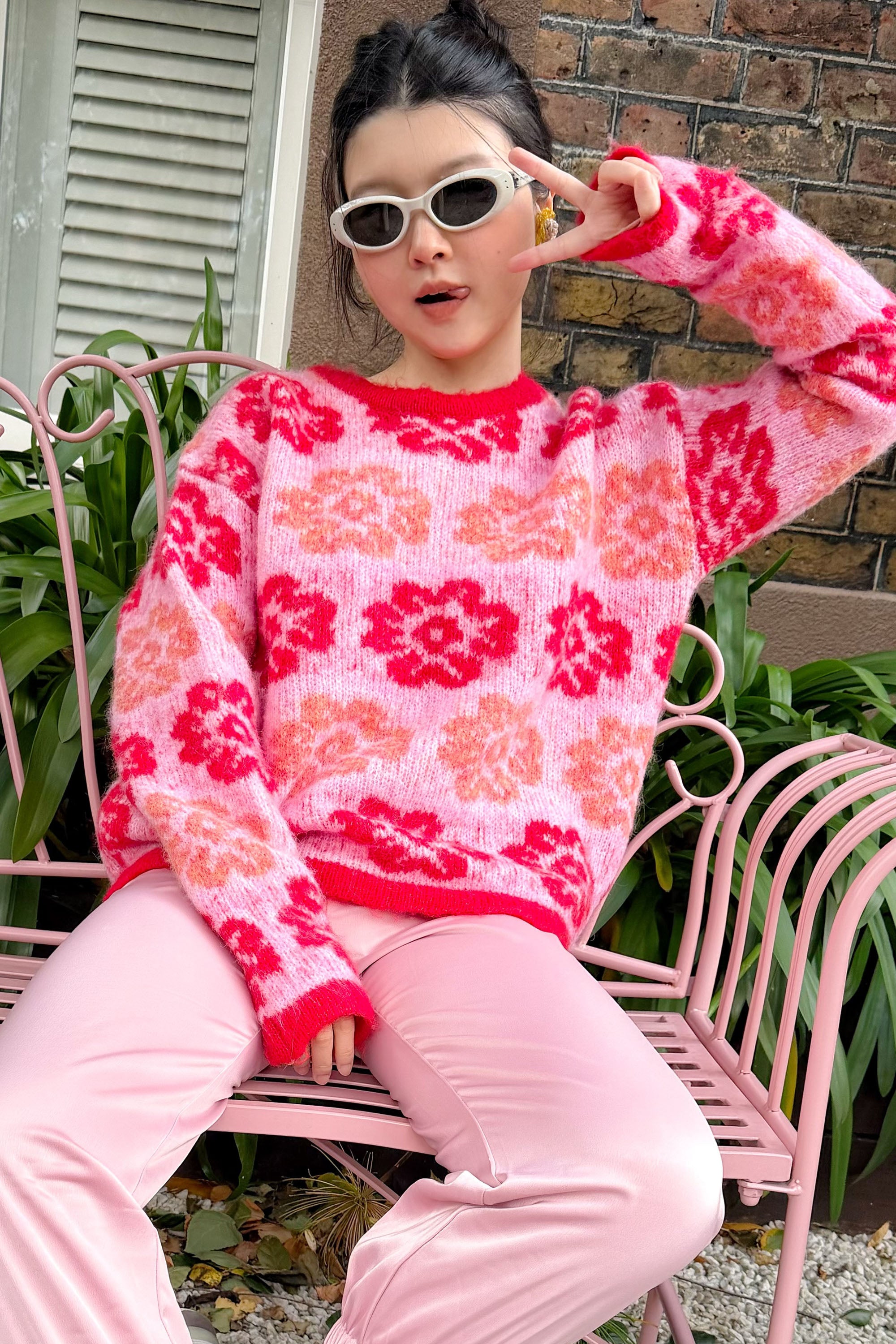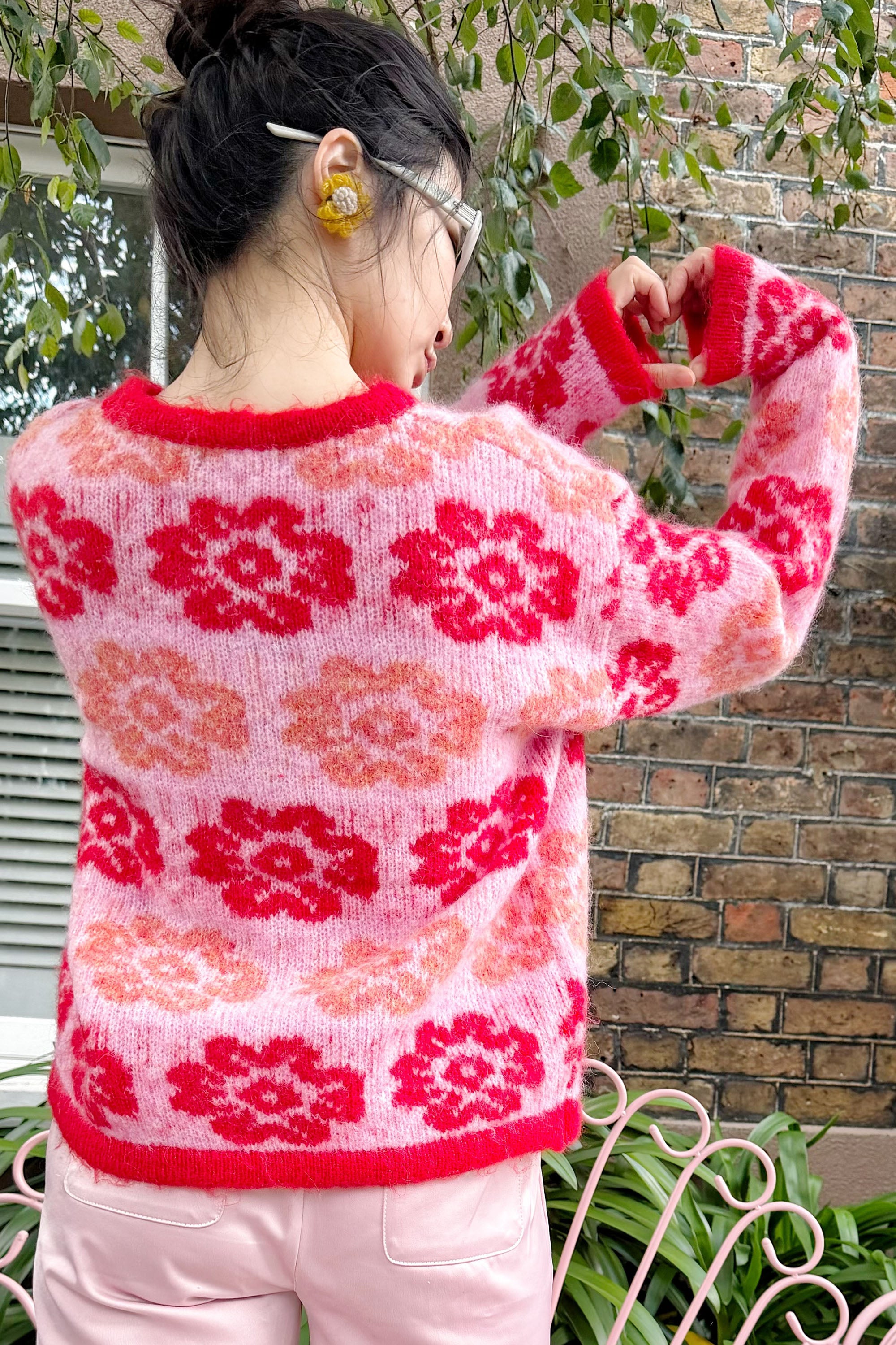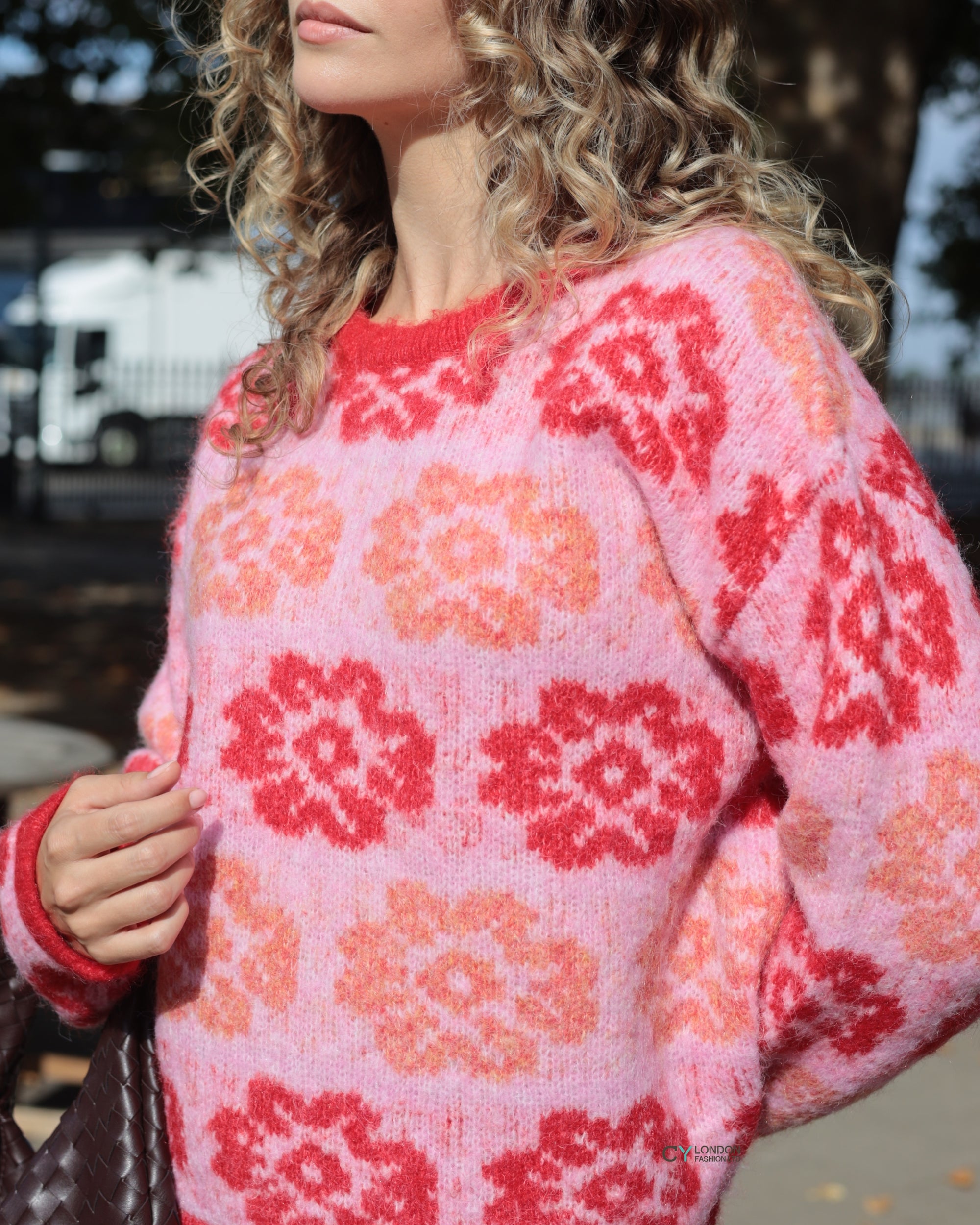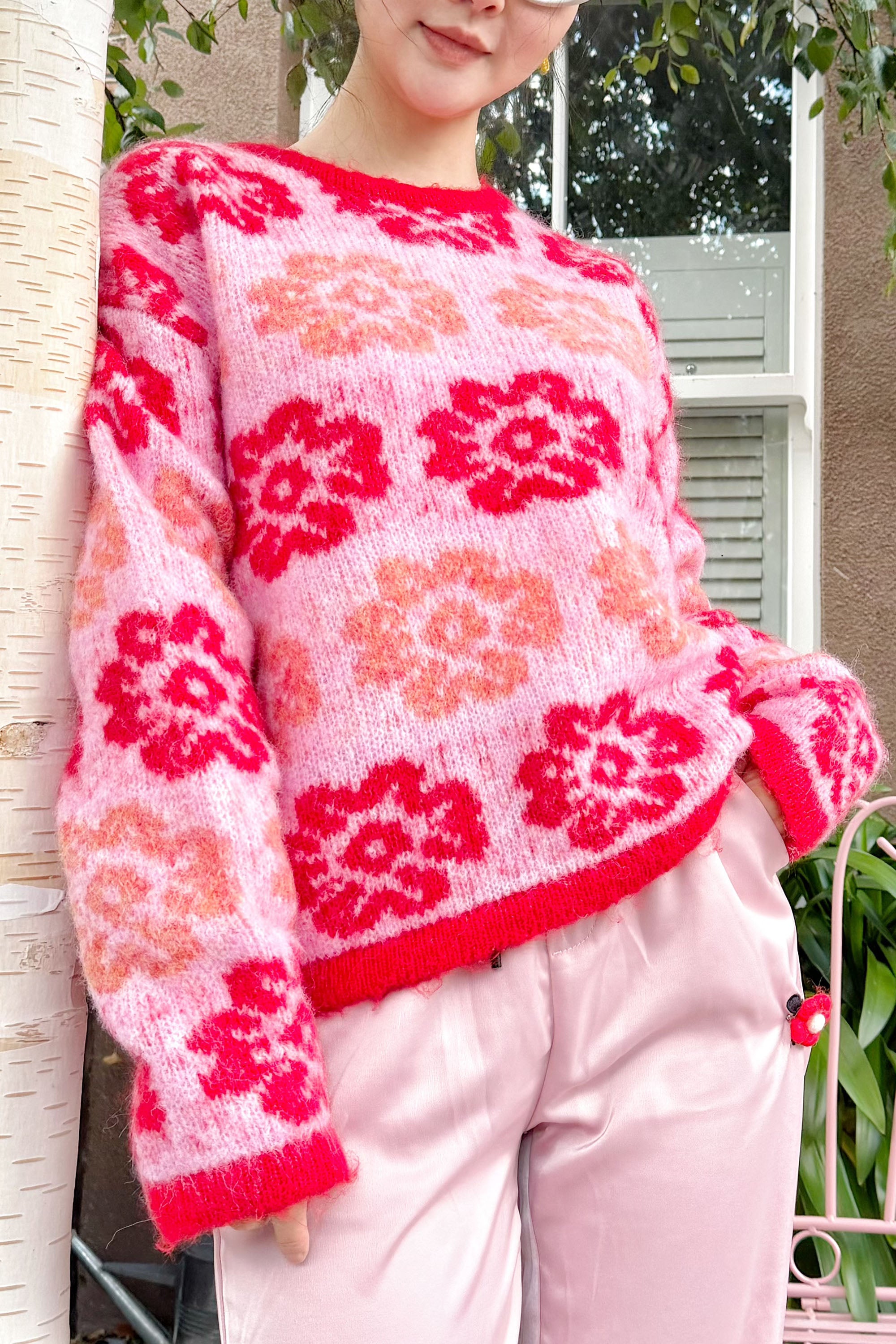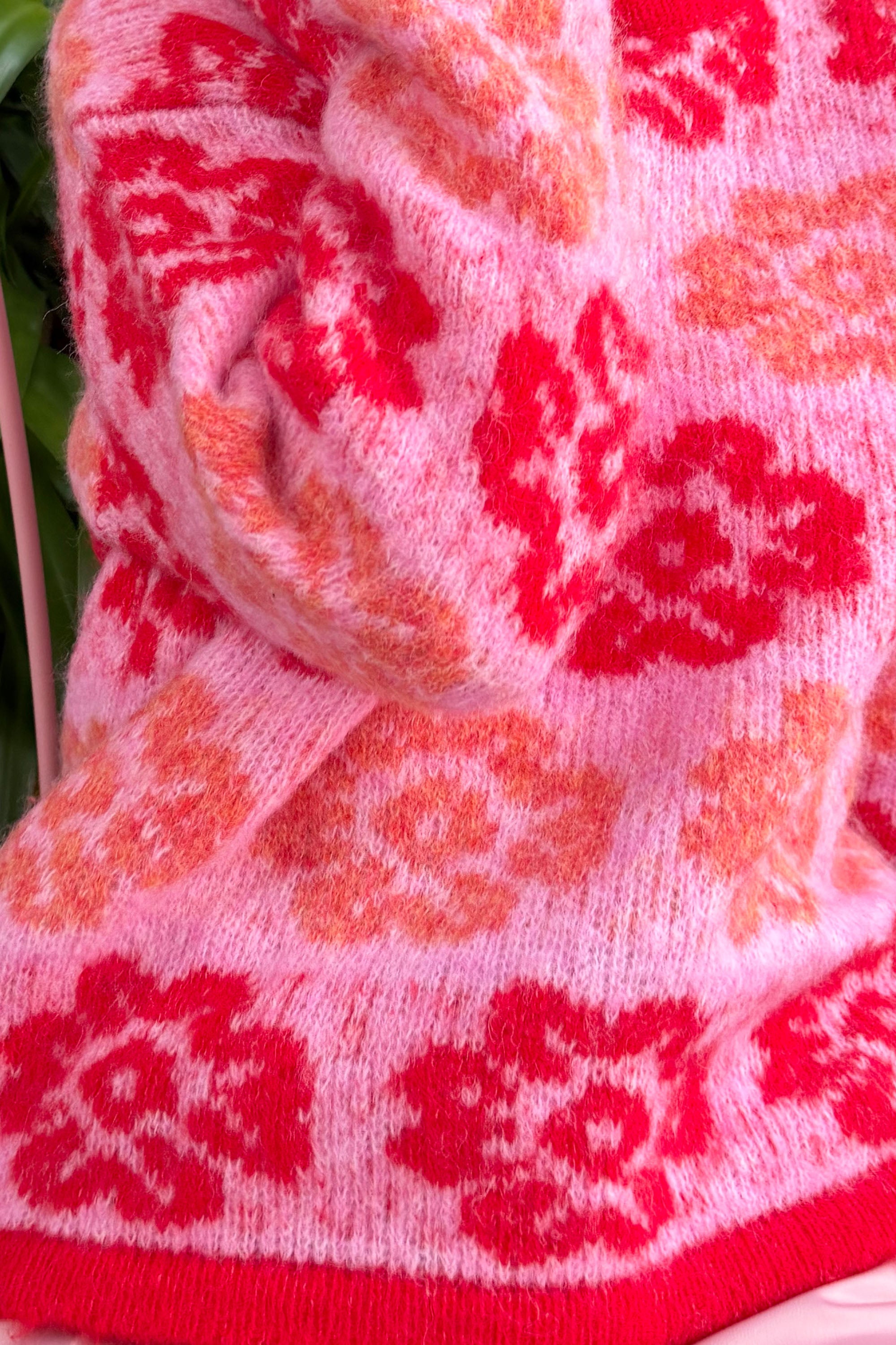 Red And Pink Floral Pattern Soft Knit Jumper