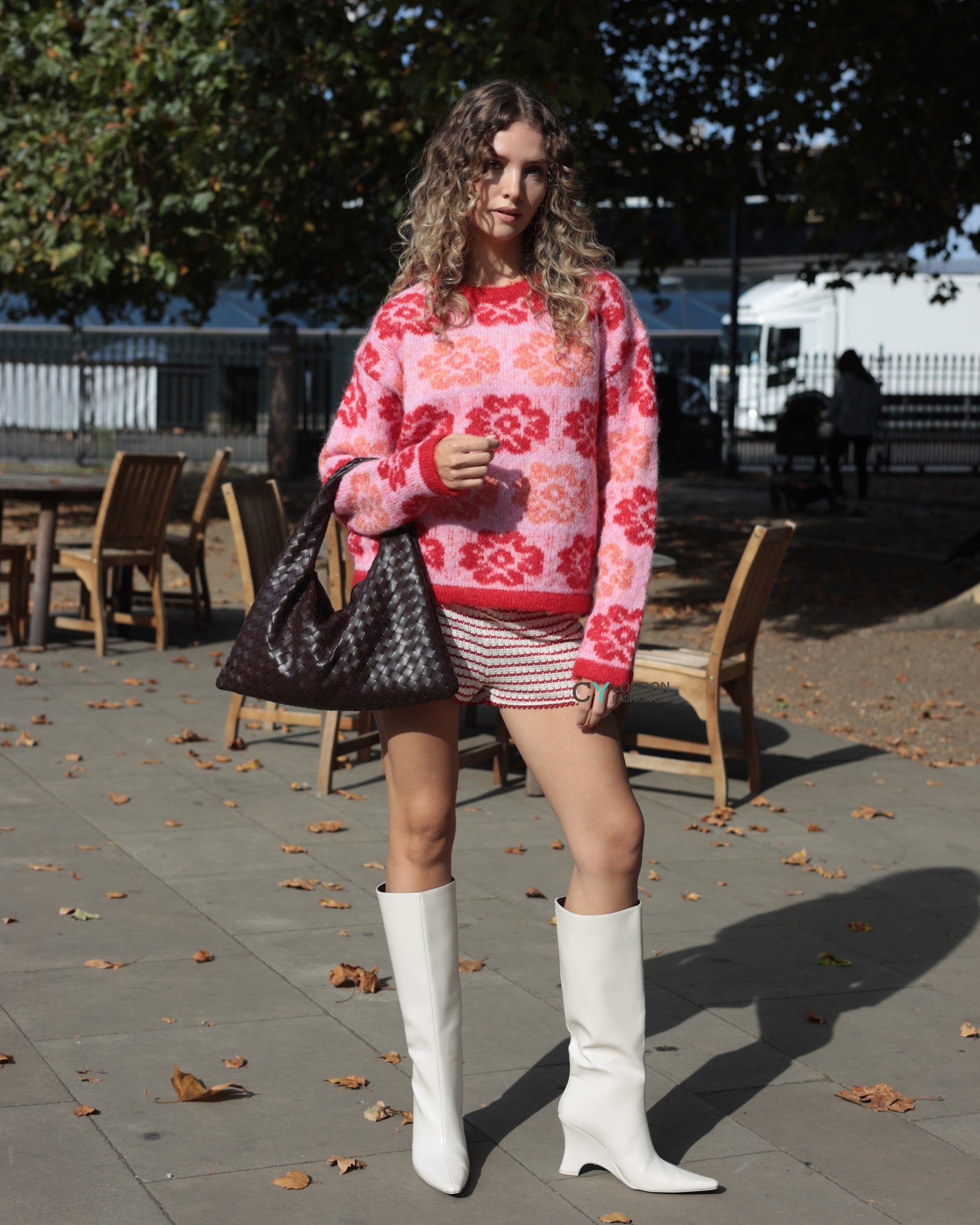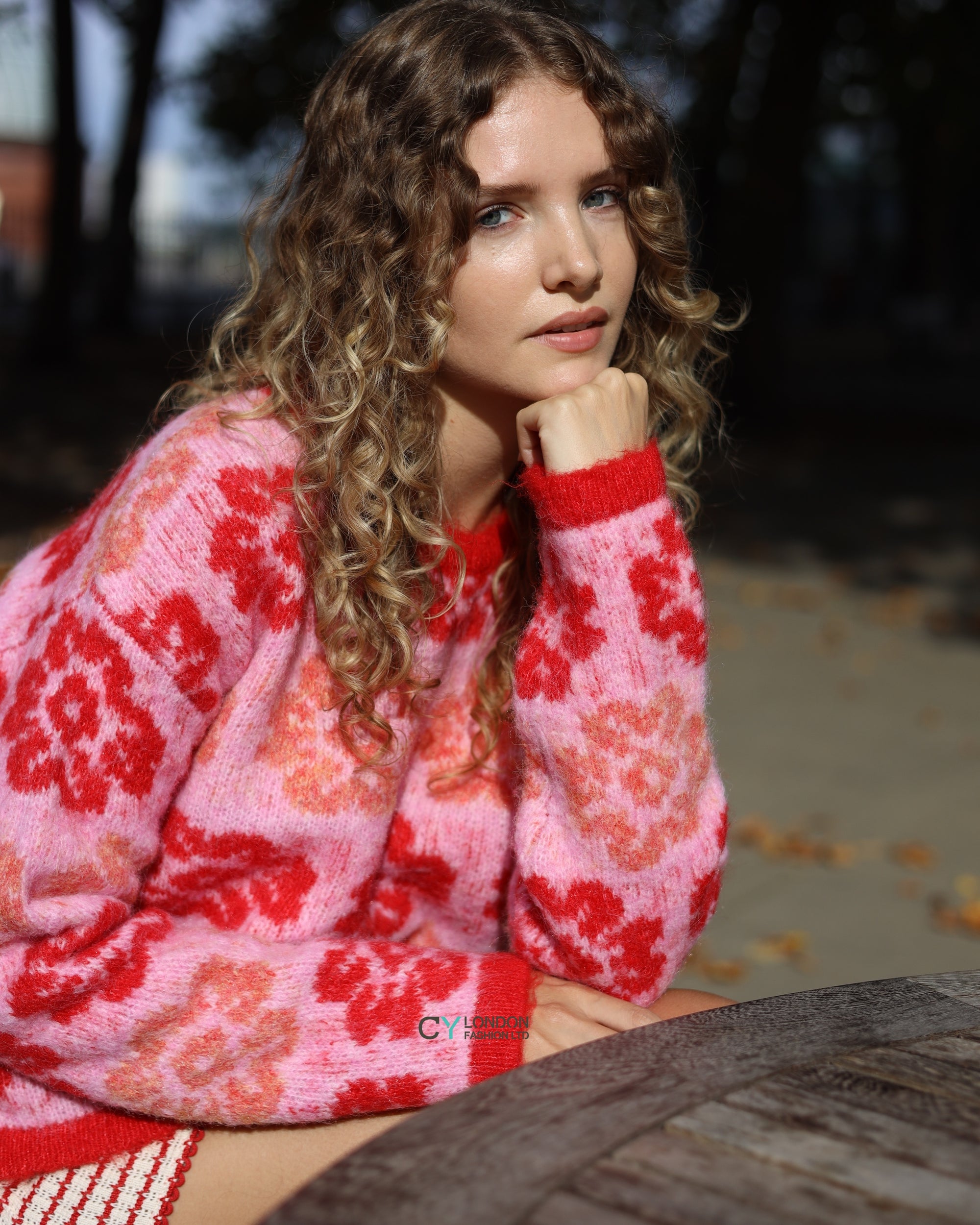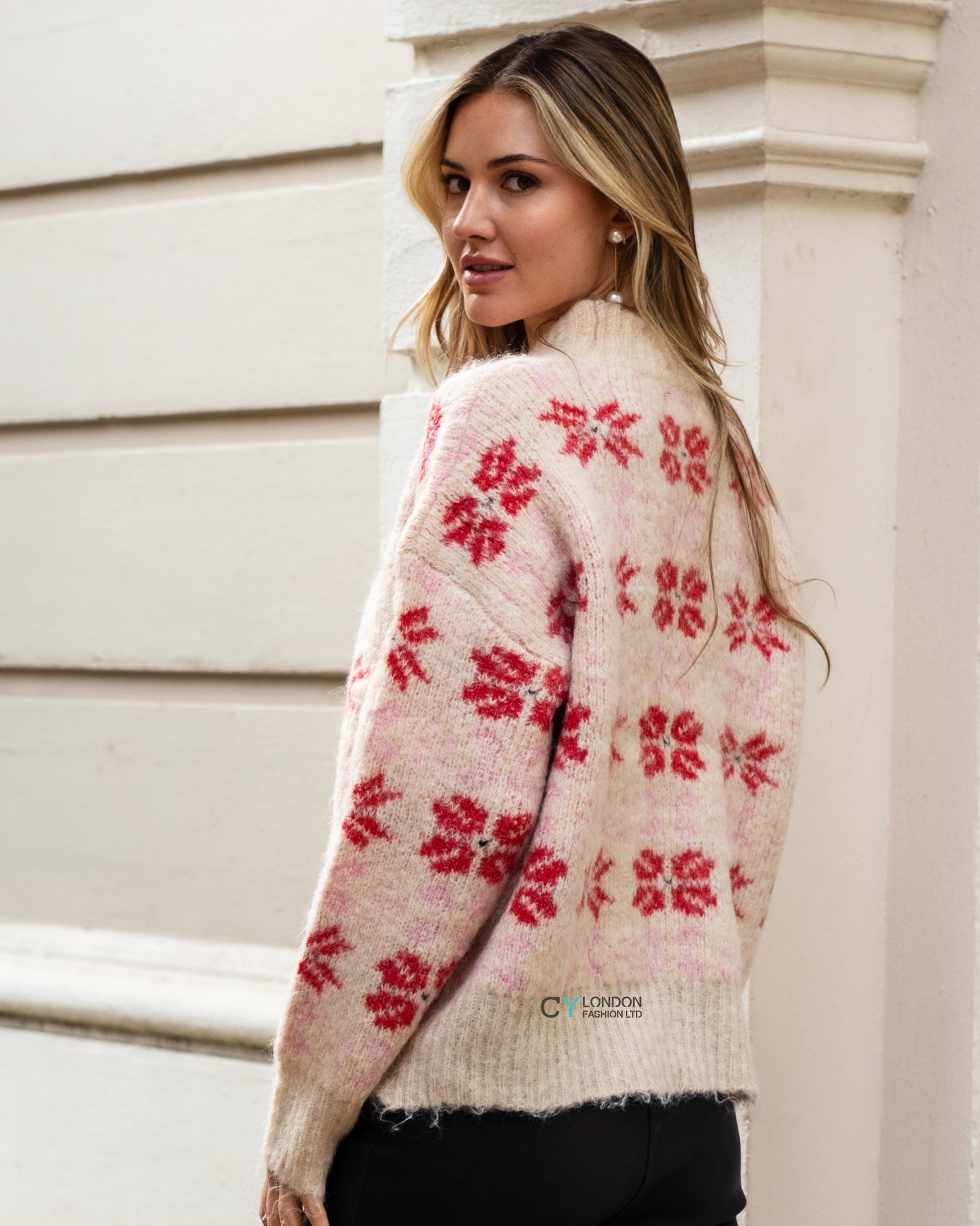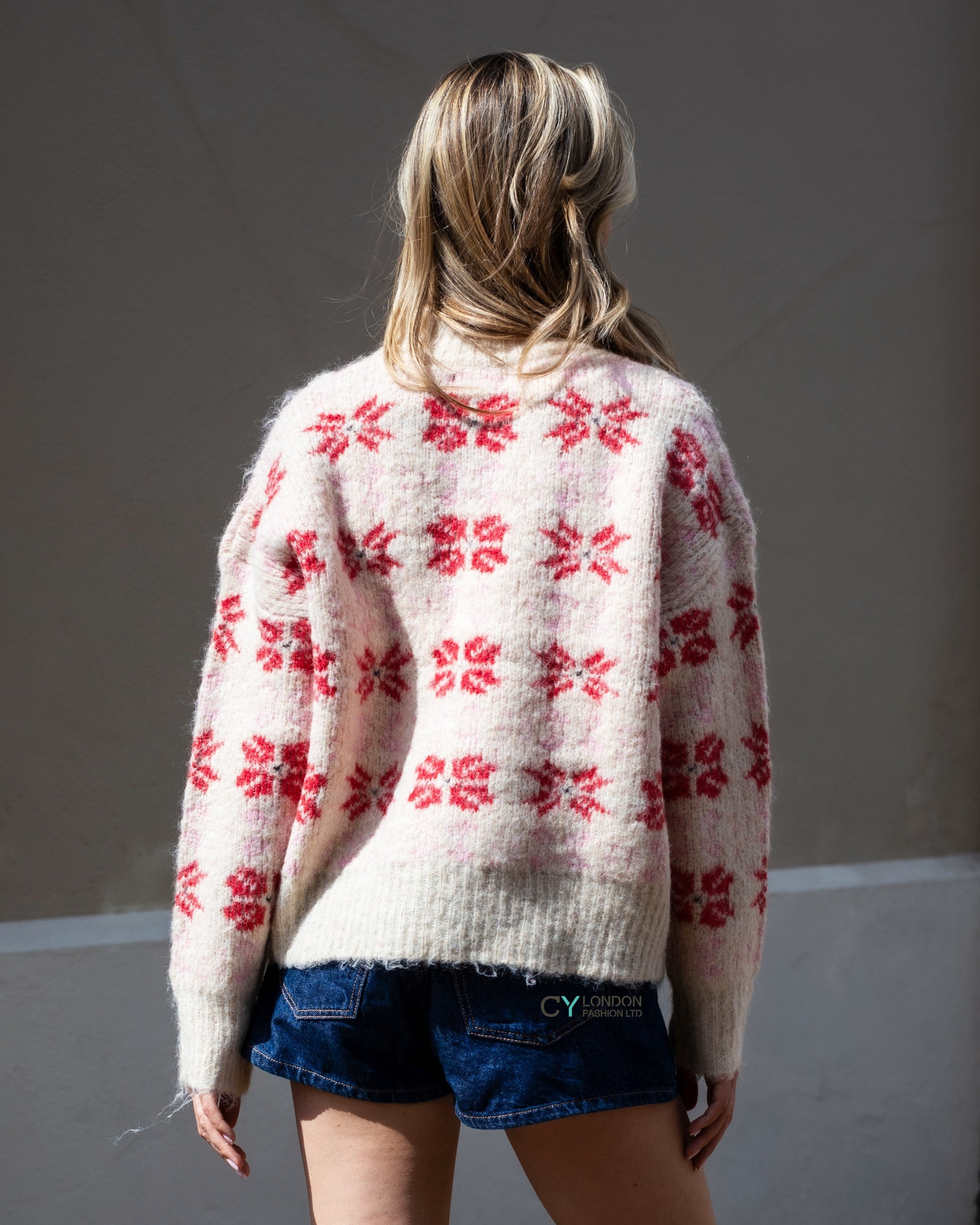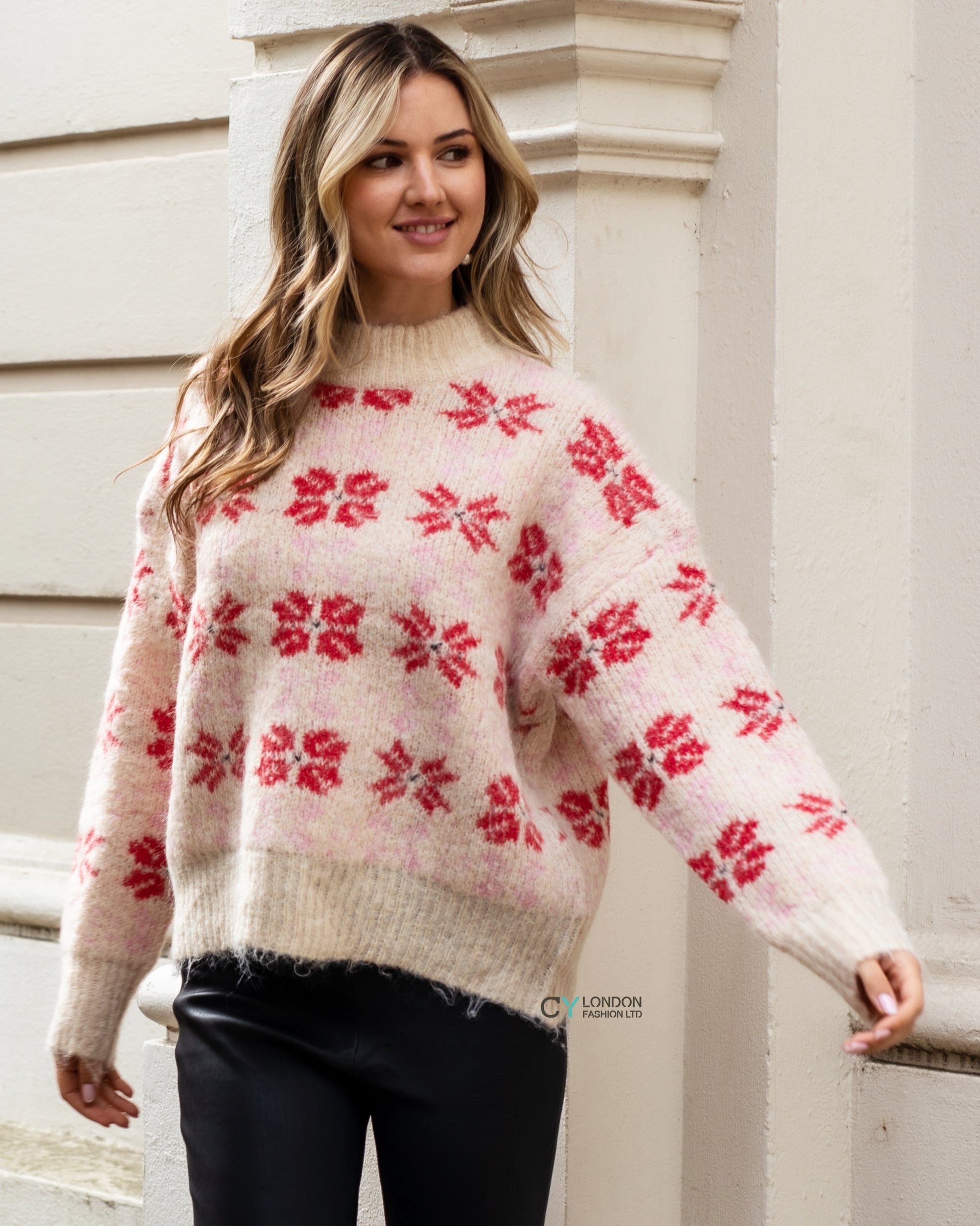 Red And Pink Floral Pattern Soft Knit Jumper