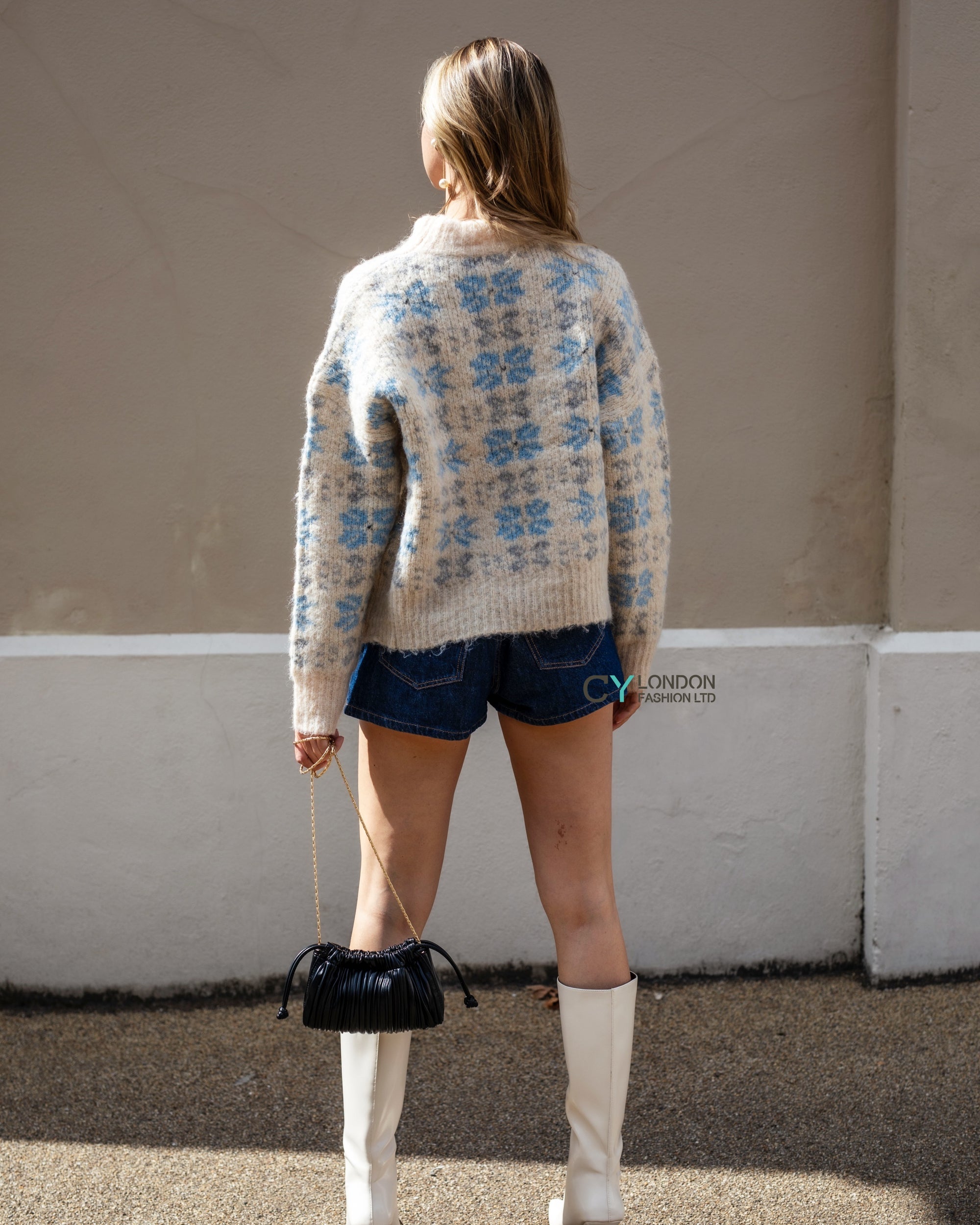 Cosy Knit Co-ords set with Floral button design in pale blue