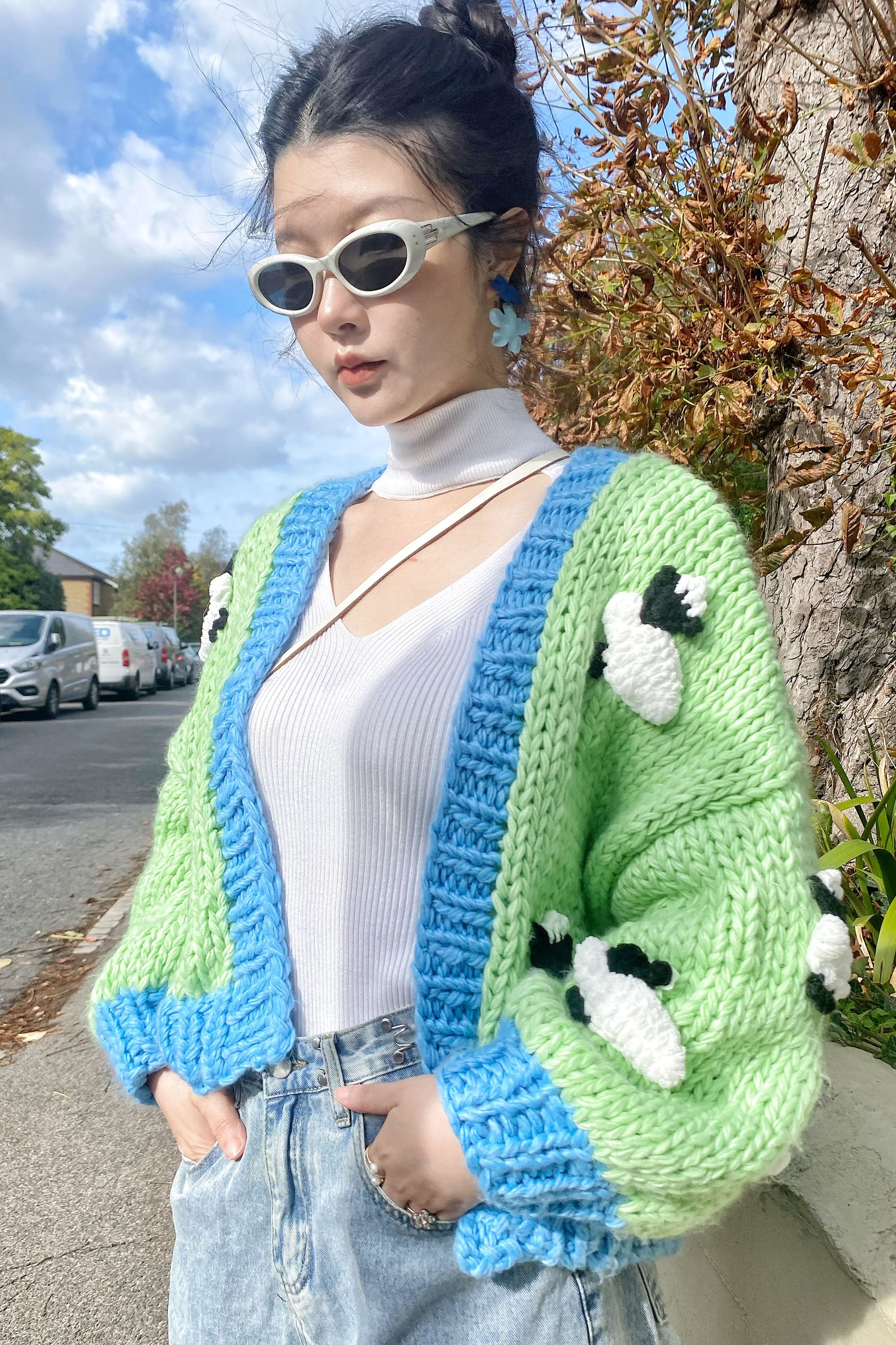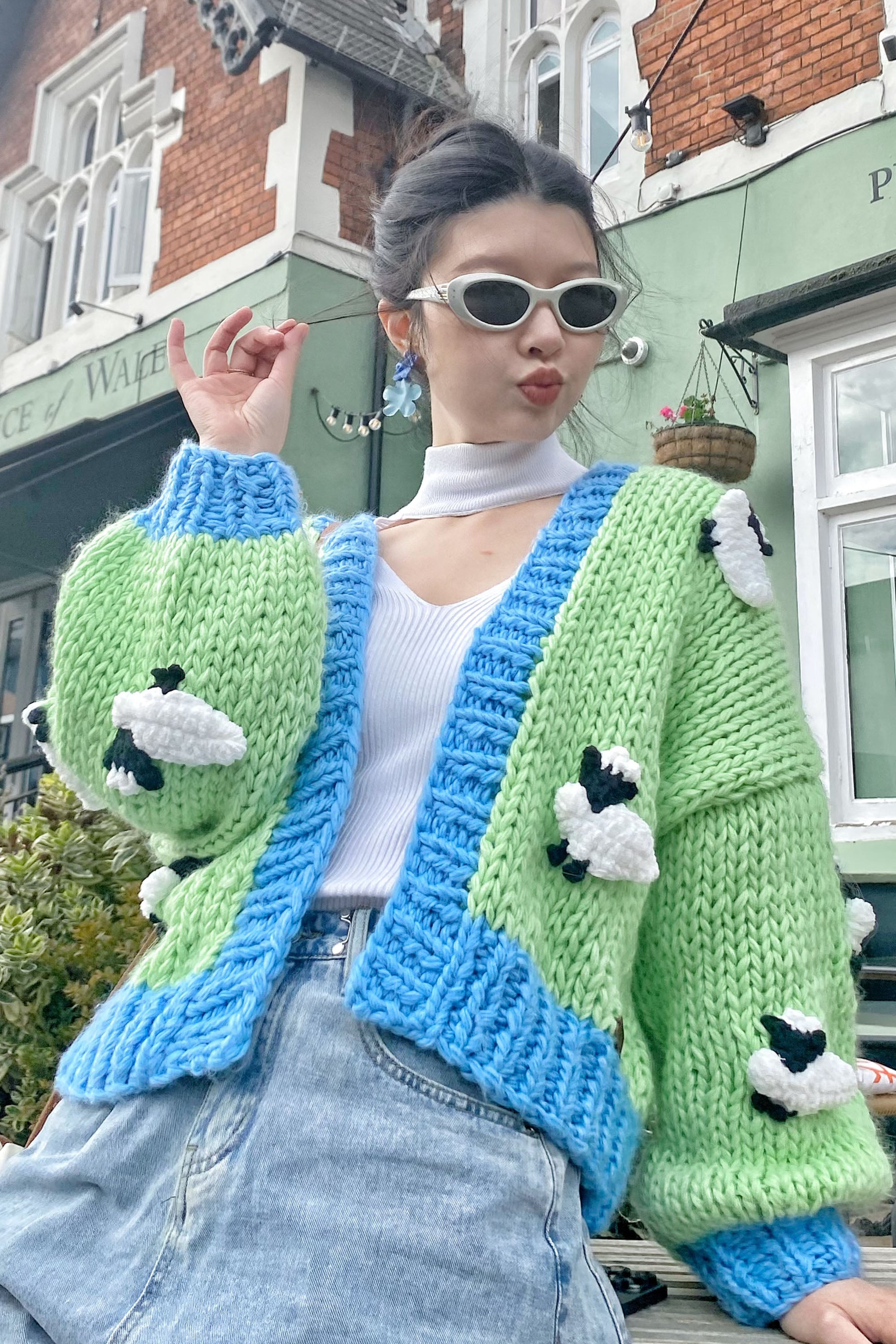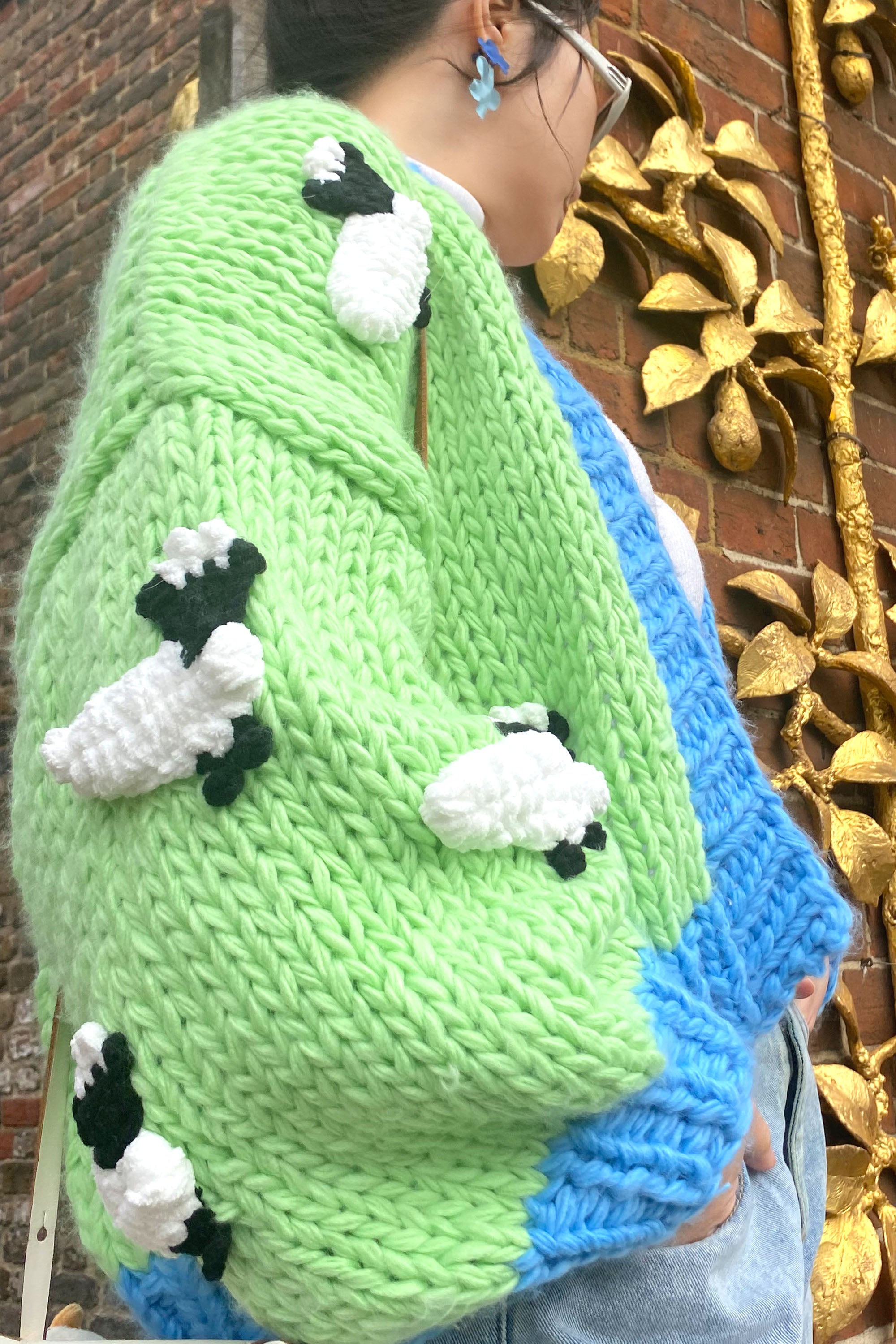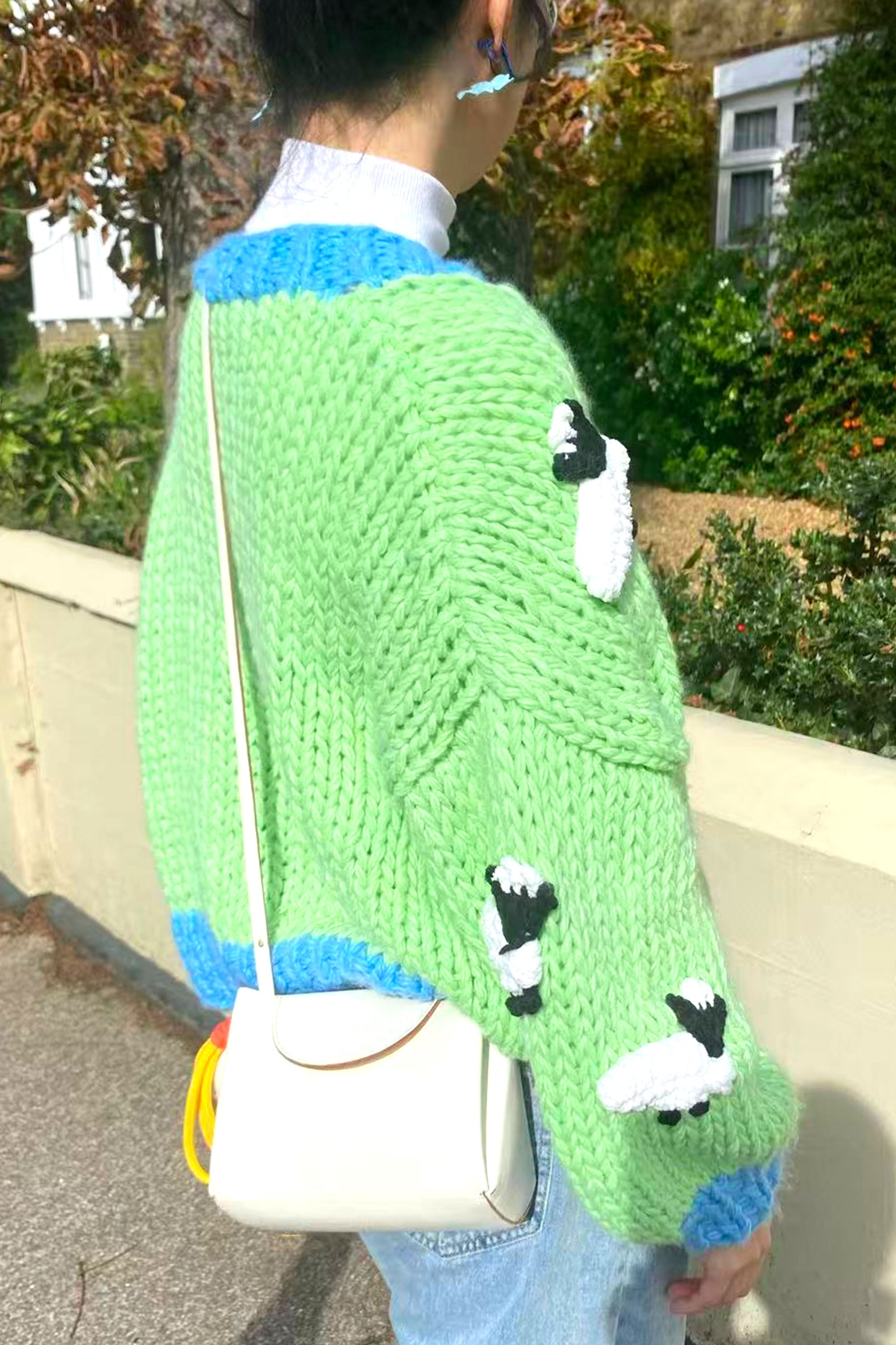 Shaun the Sheep pattern hand knit cardigan
