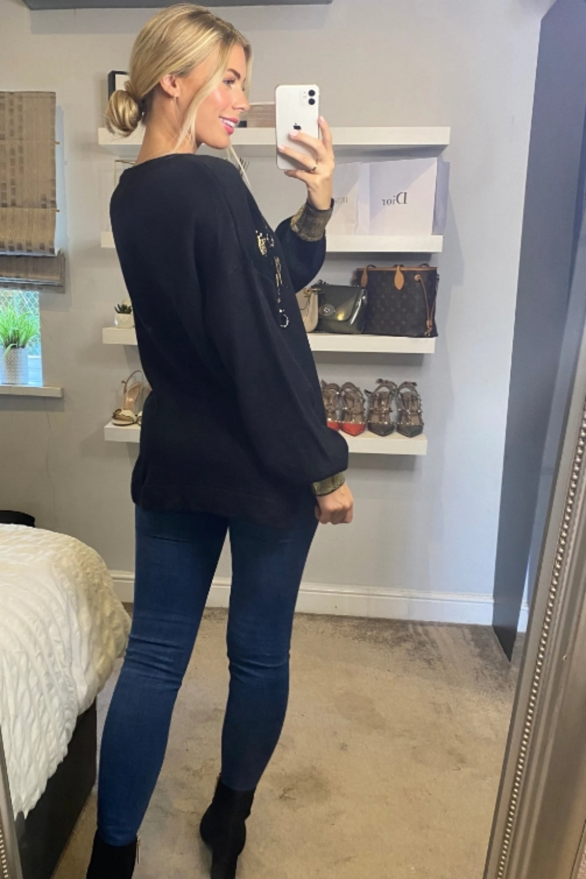 Black blue Color Tweed Effect Knitted Short Cardigan Jaccket