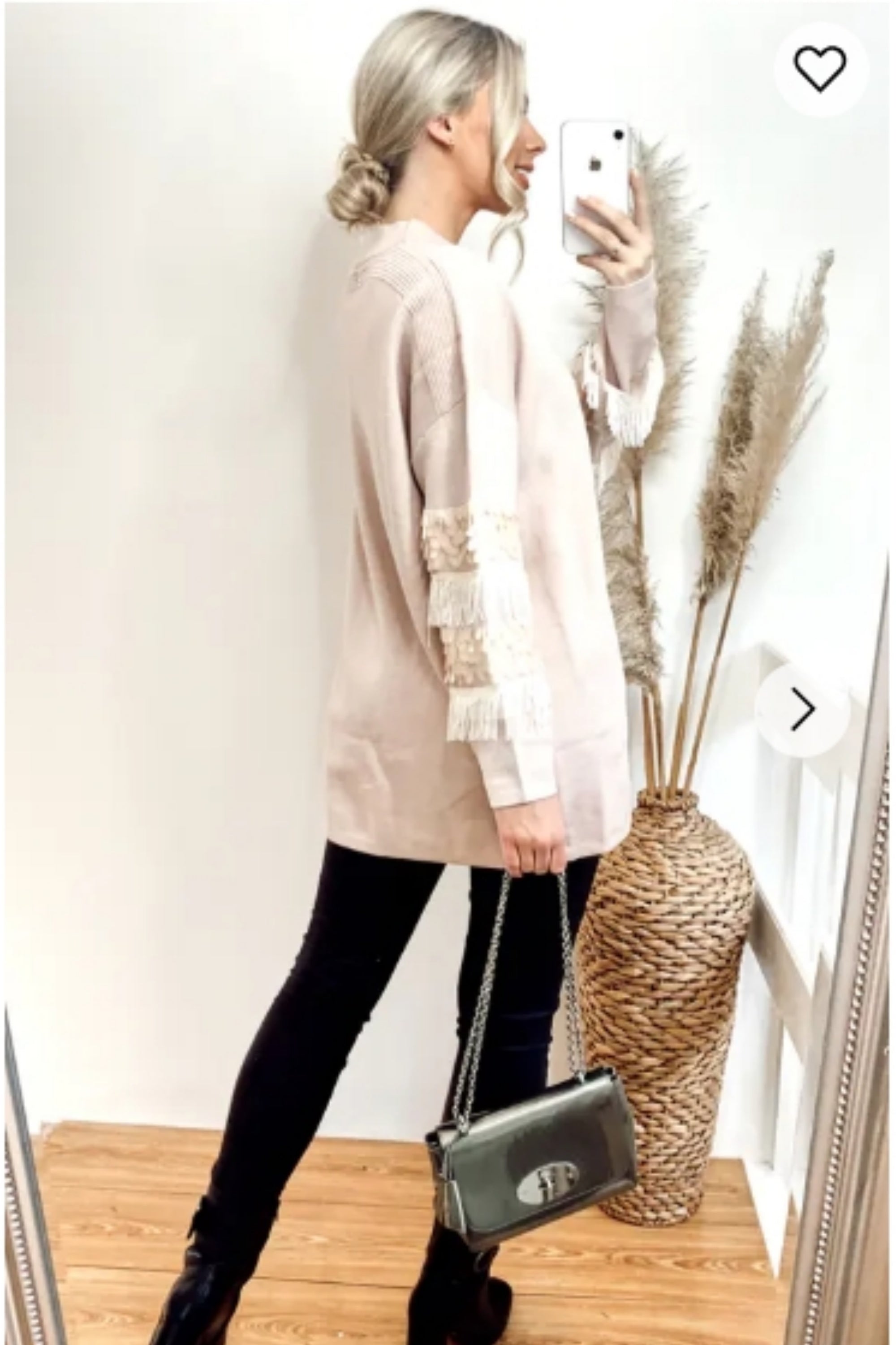 White pink Color Tweed Effect Knitted Short Cardigan Jaccket